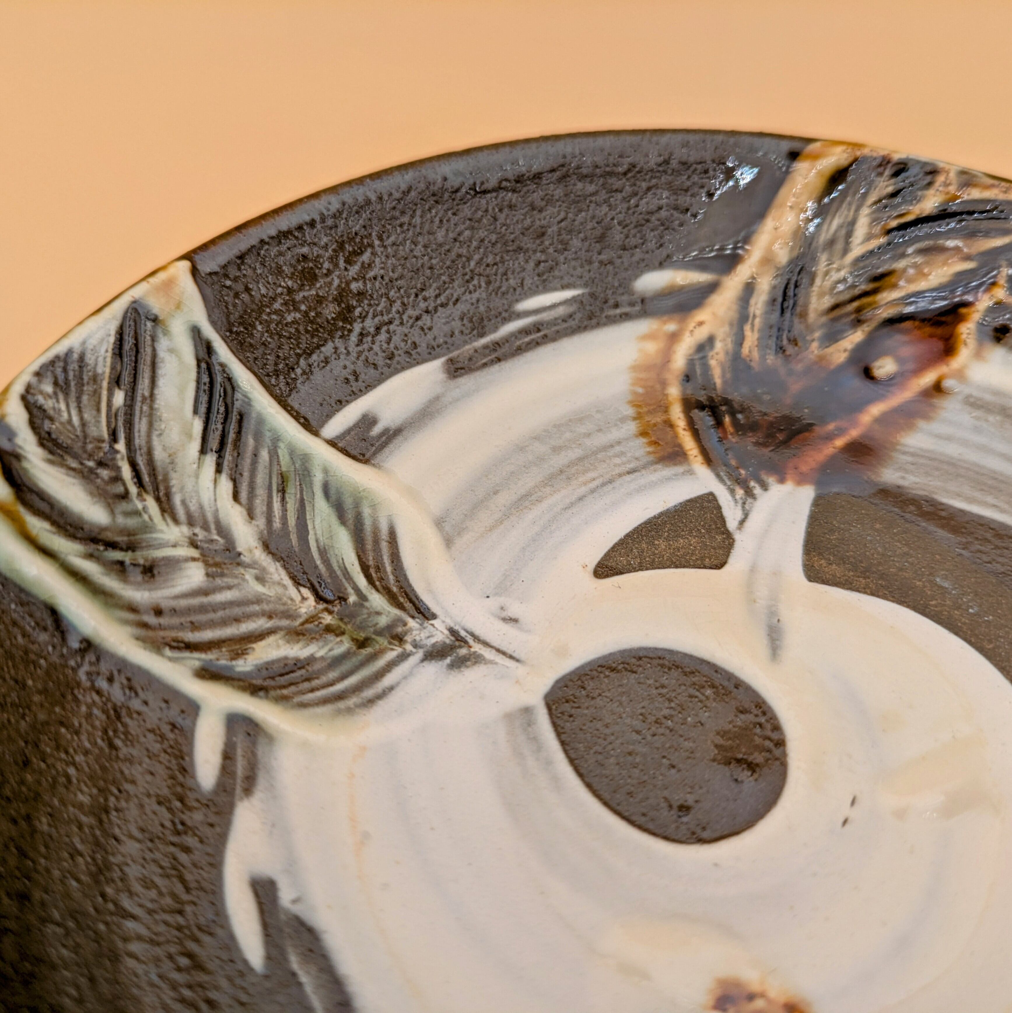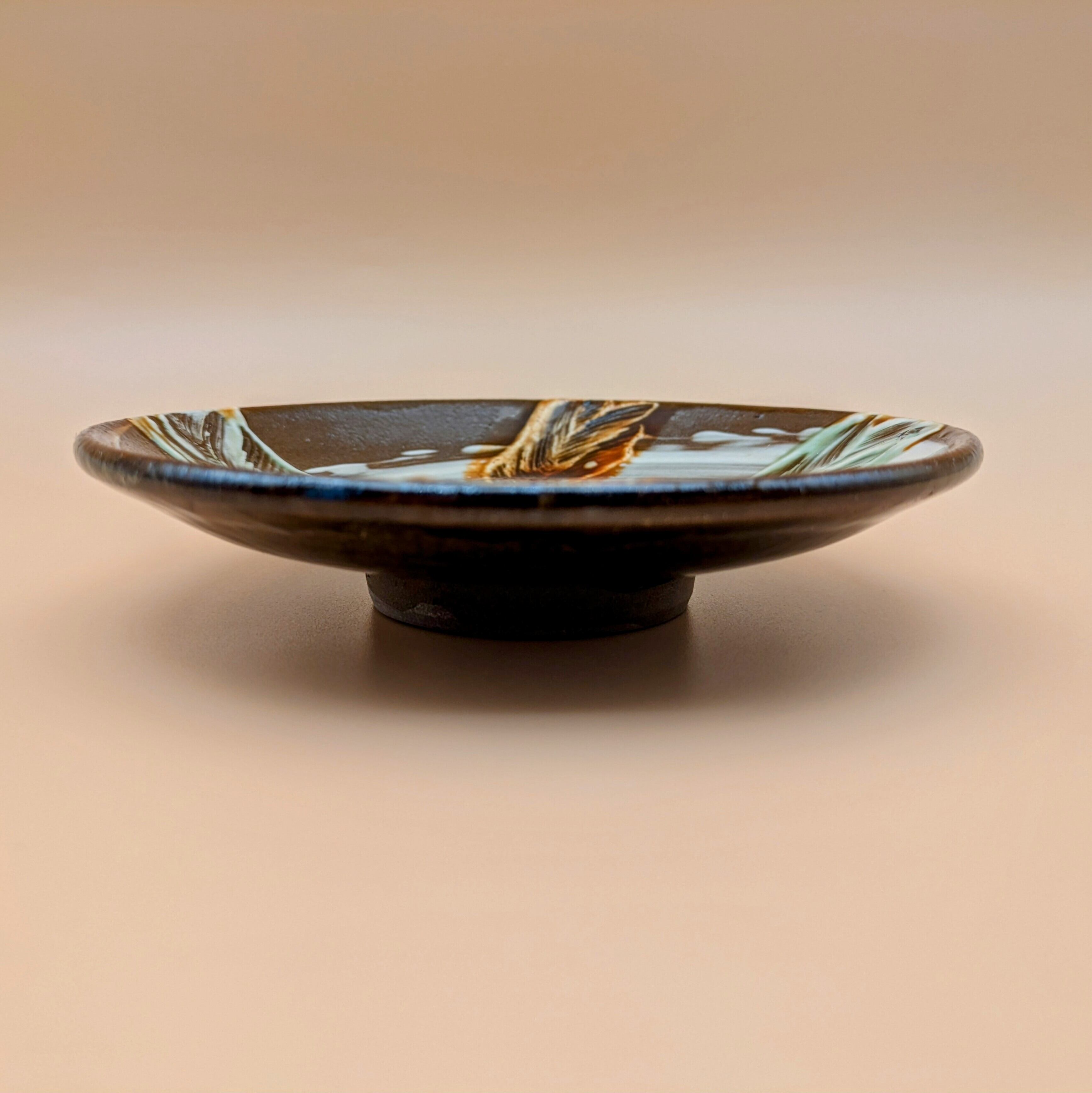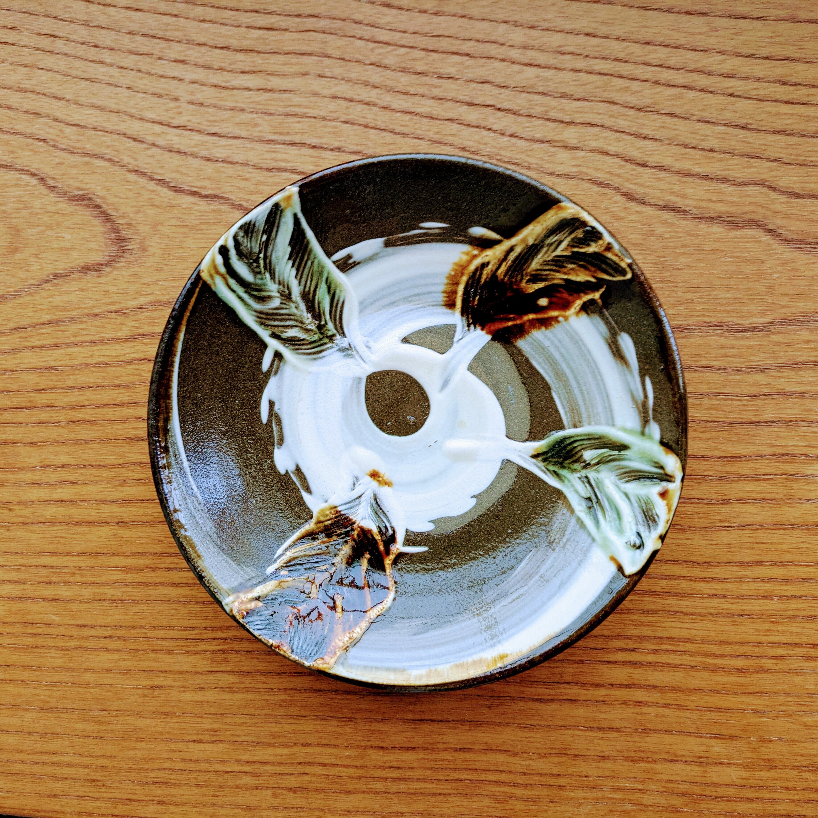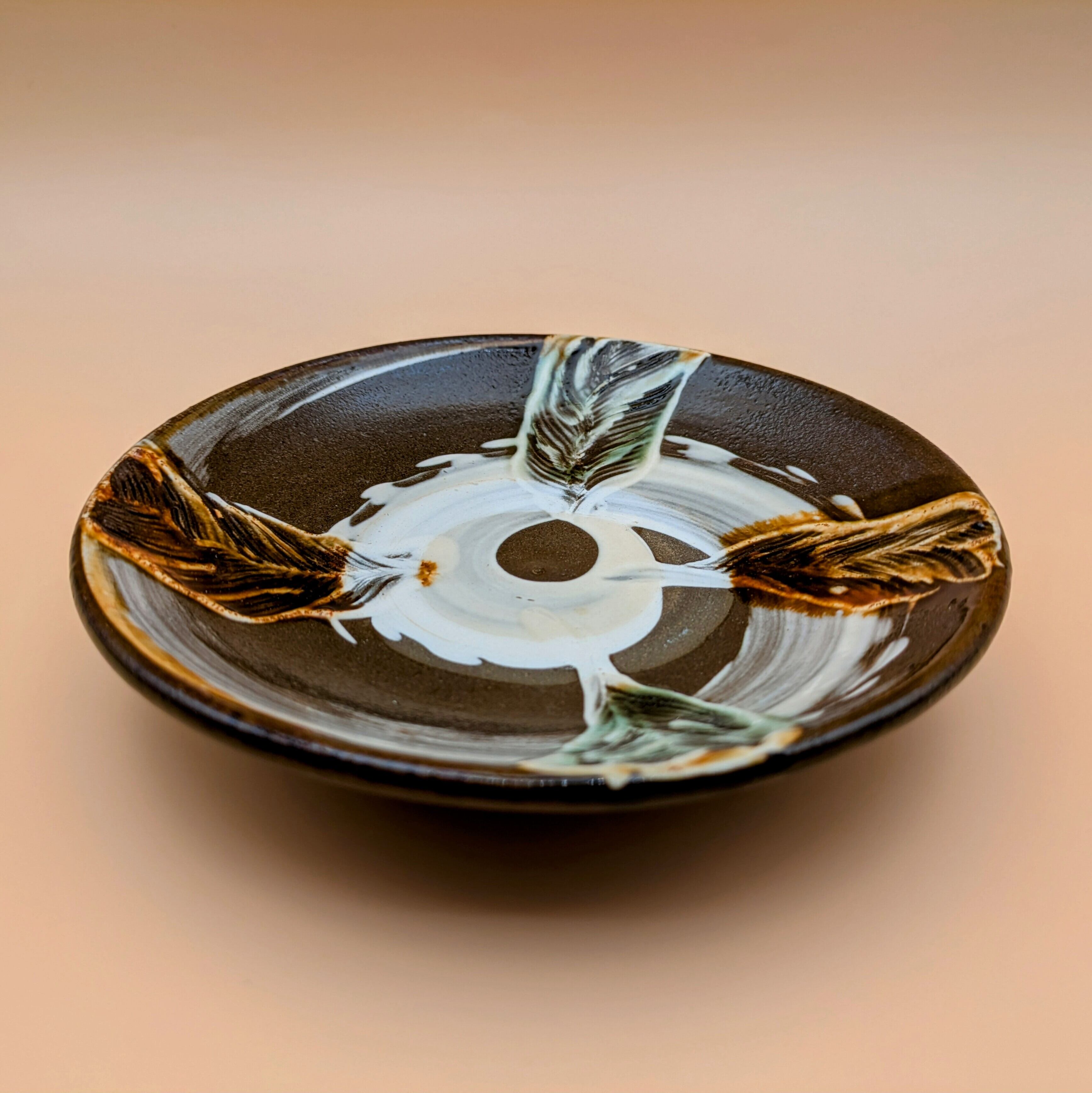 平皿5寸 小鹿田焼(刷毛目・葉紋様) 直径15.5cm 高さ3.5cm 重量216g