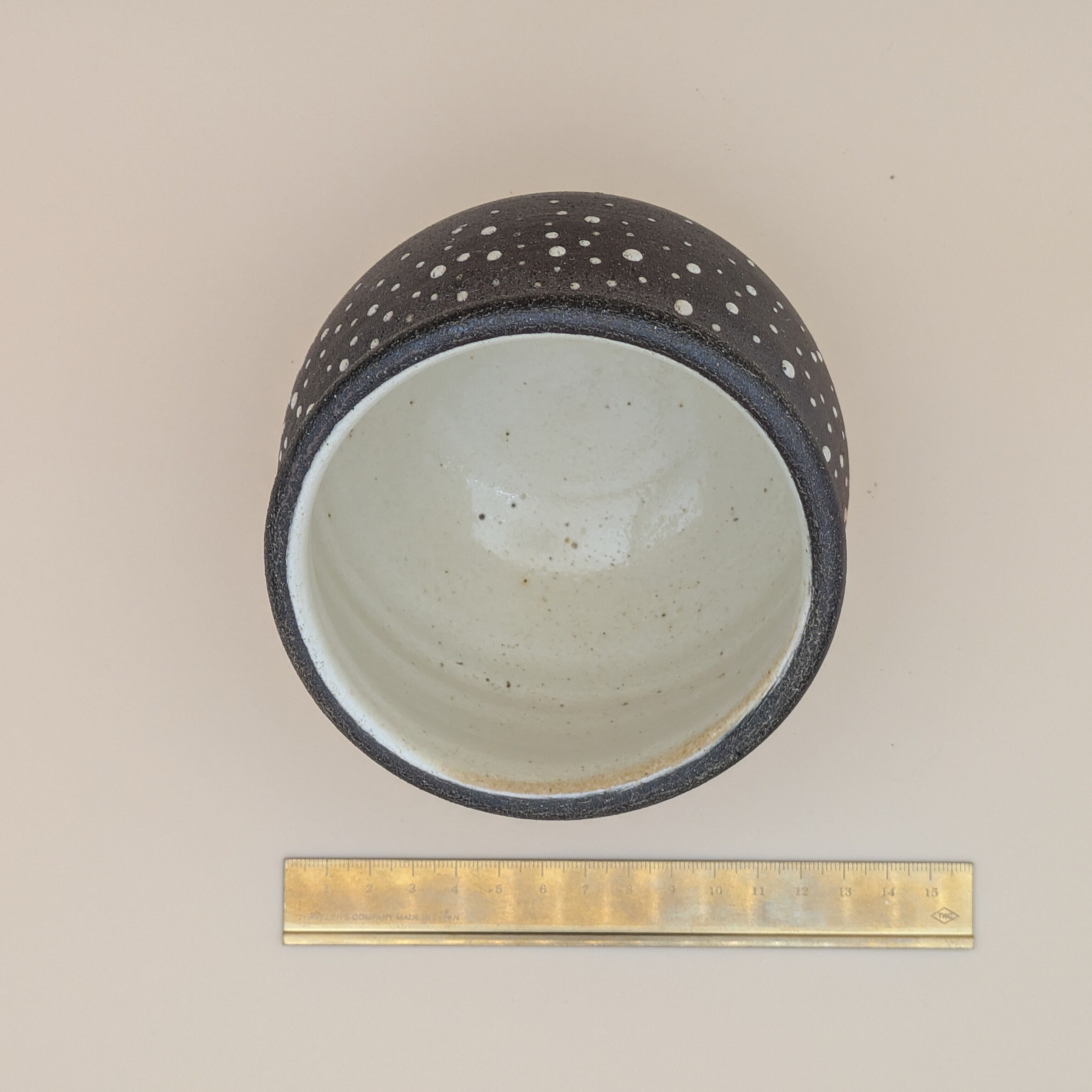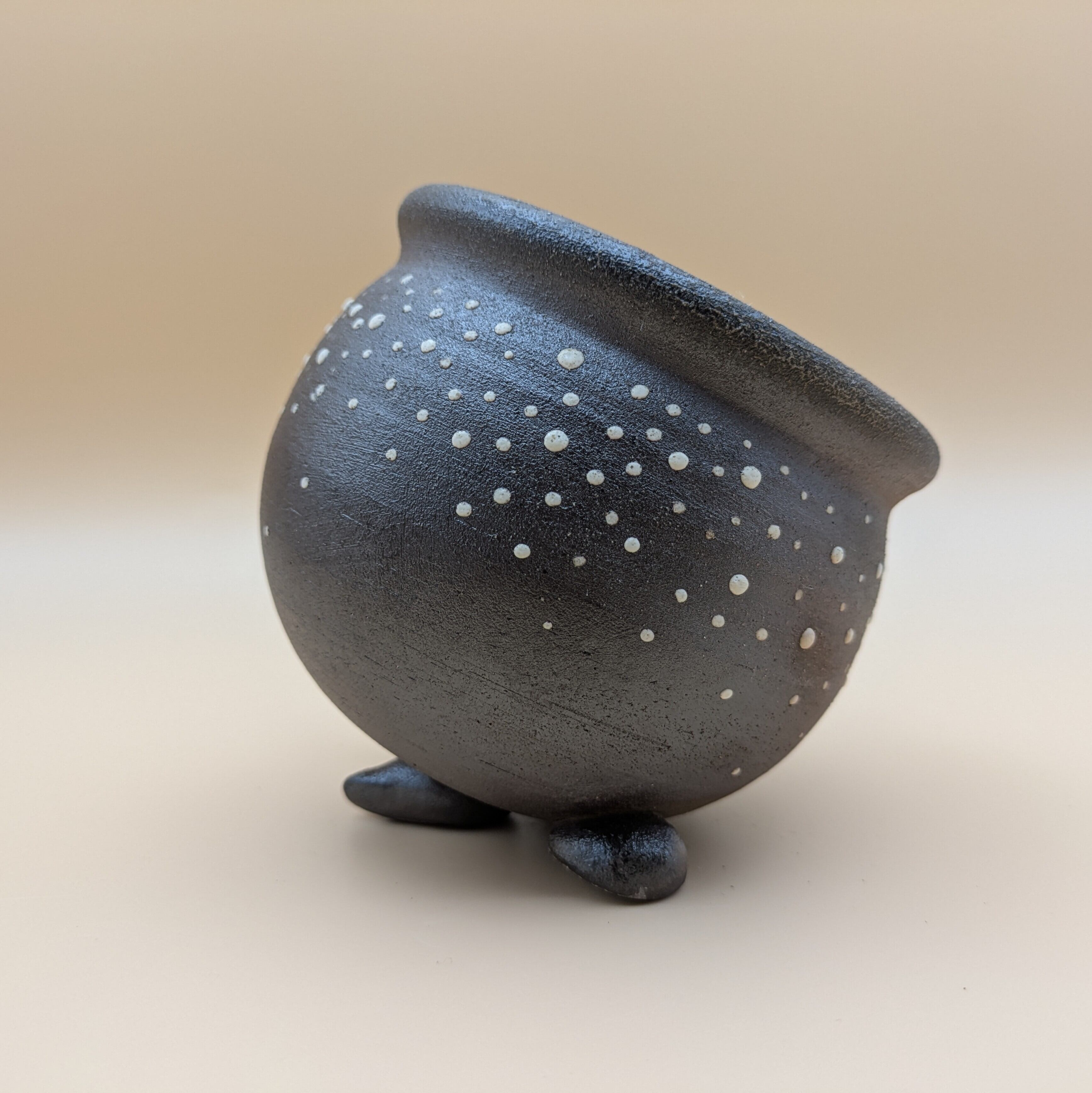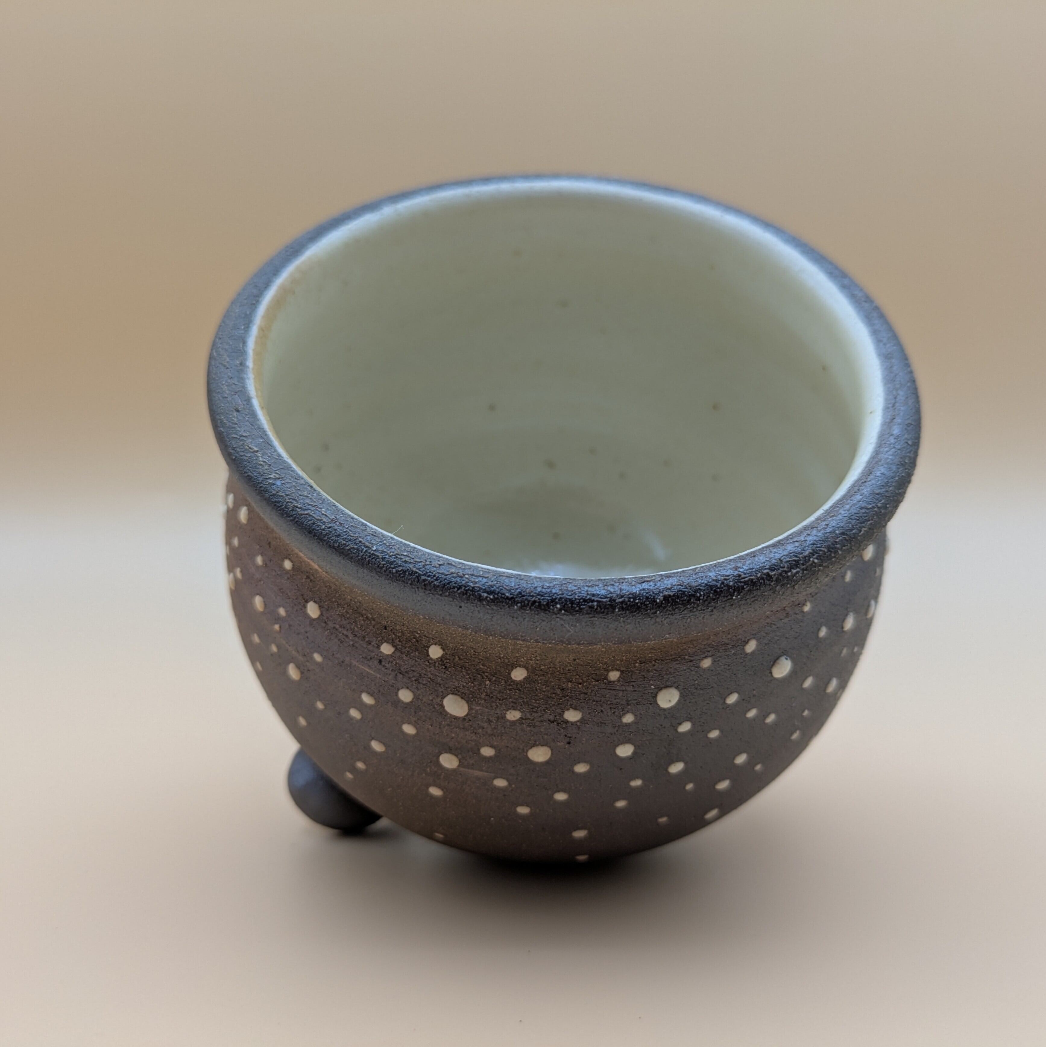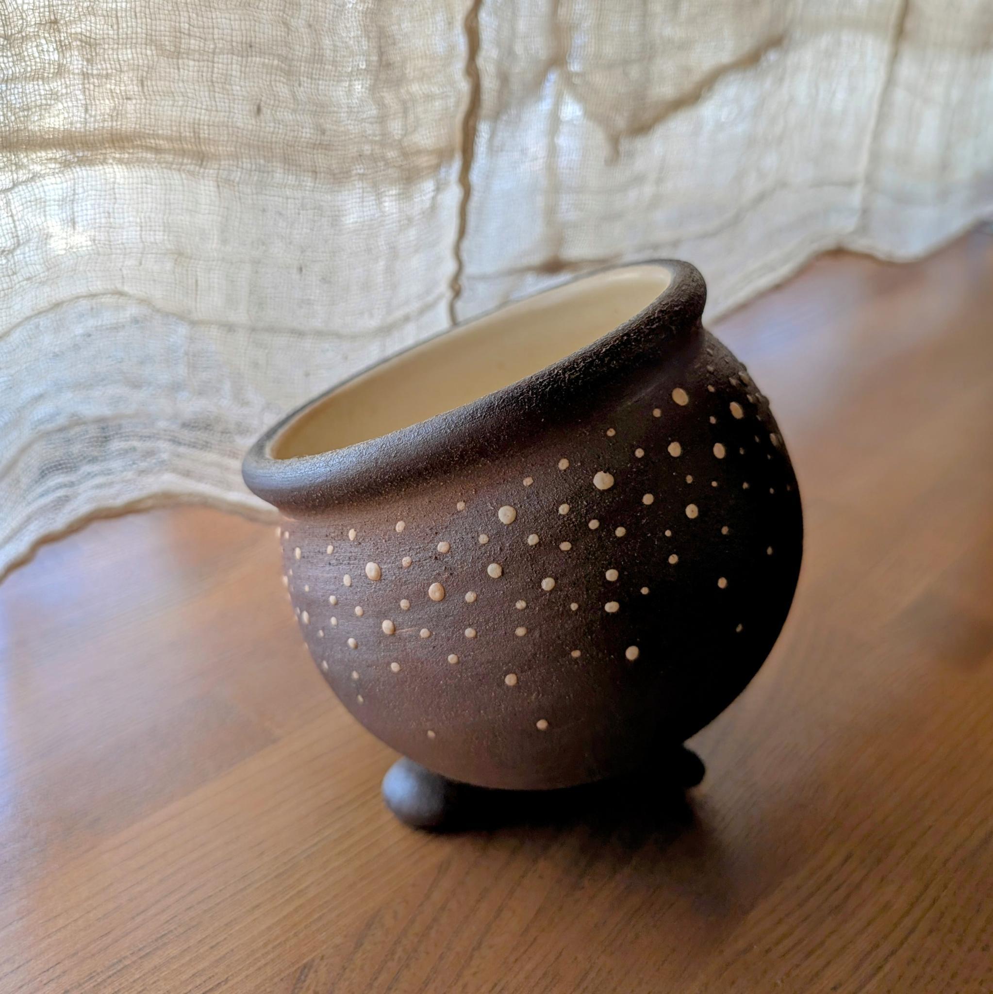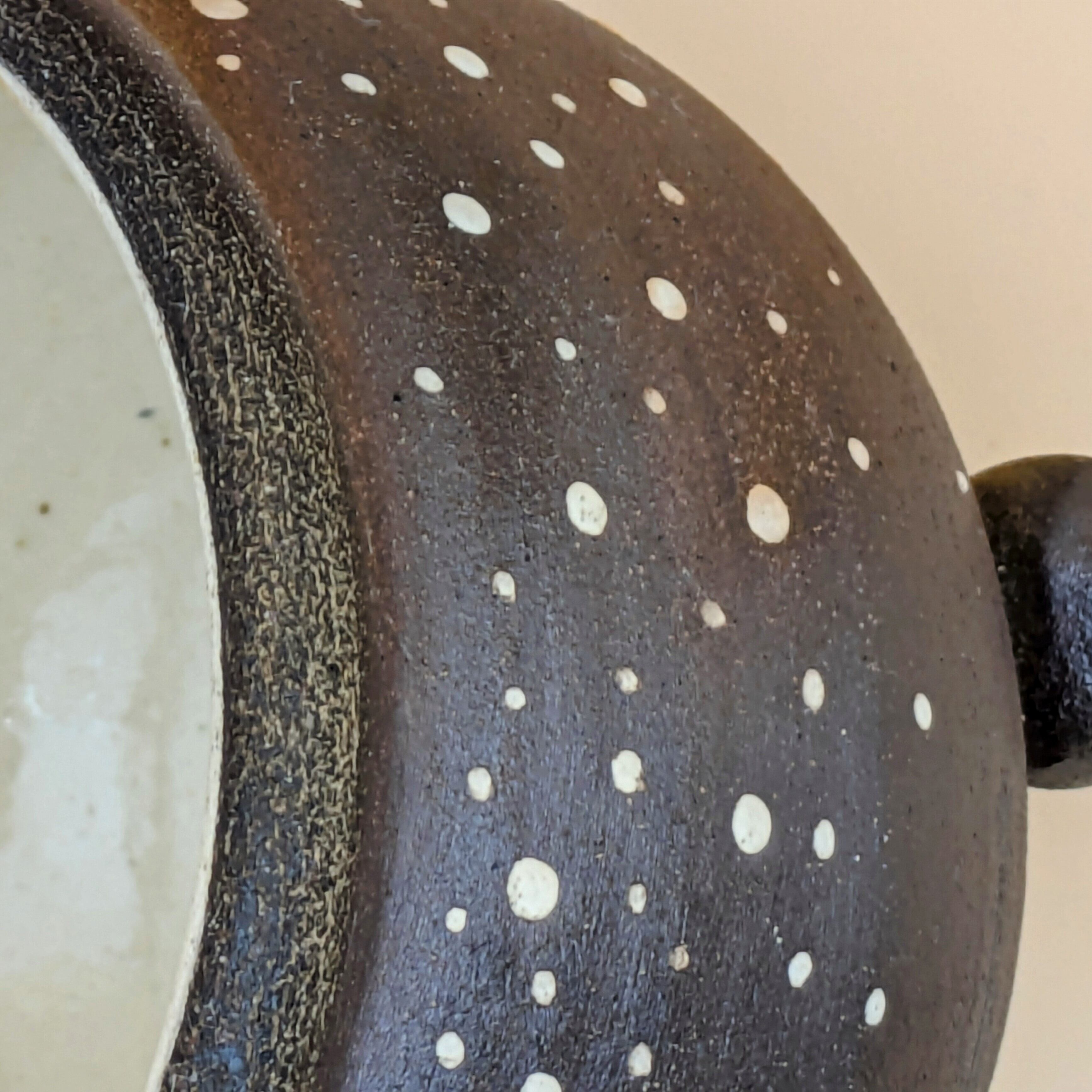 物入れ3.5寸 小石原焼(茶釉・白ドット) 直径11cm 高さ17cm~7.5cm 重量344g