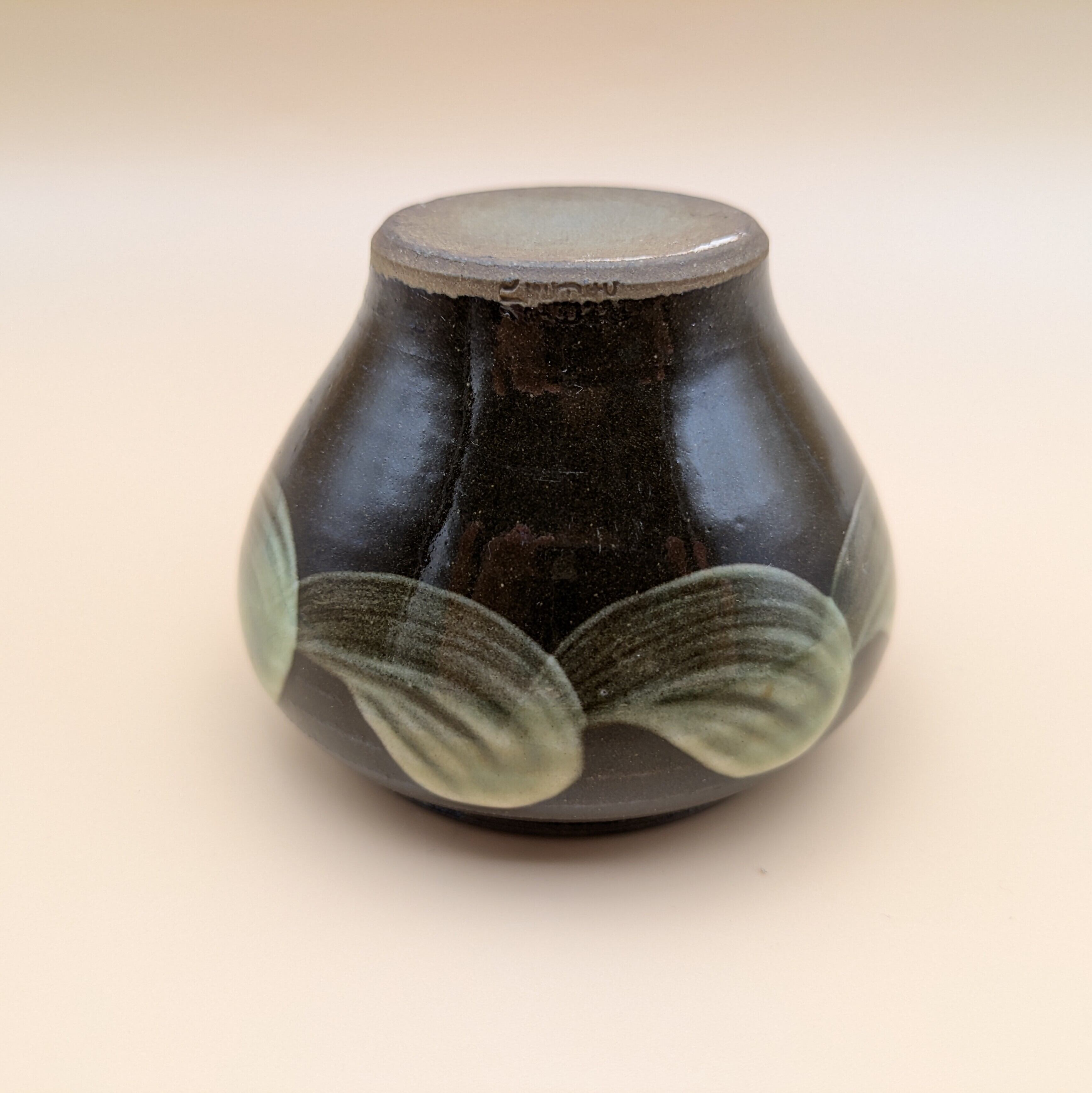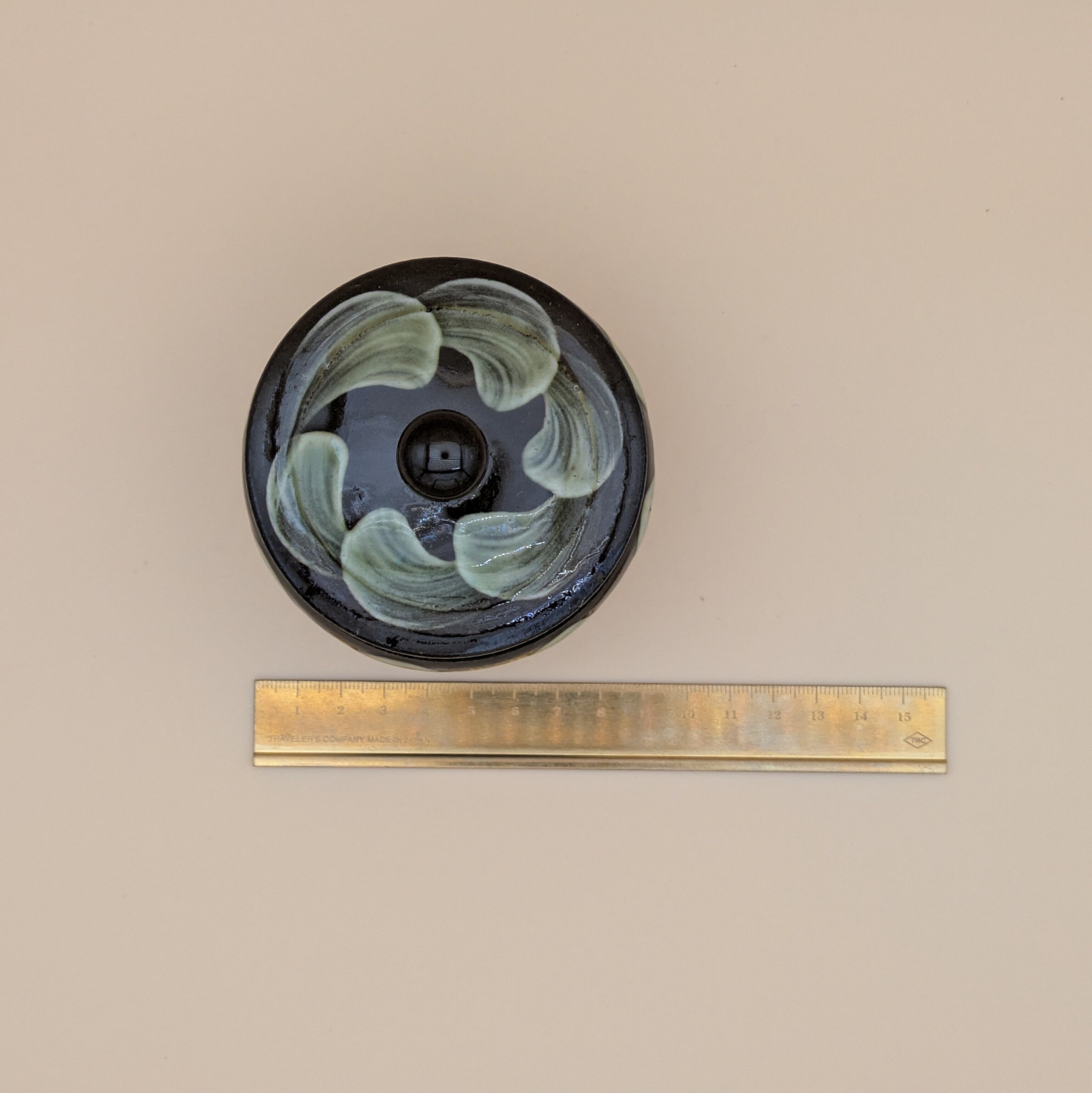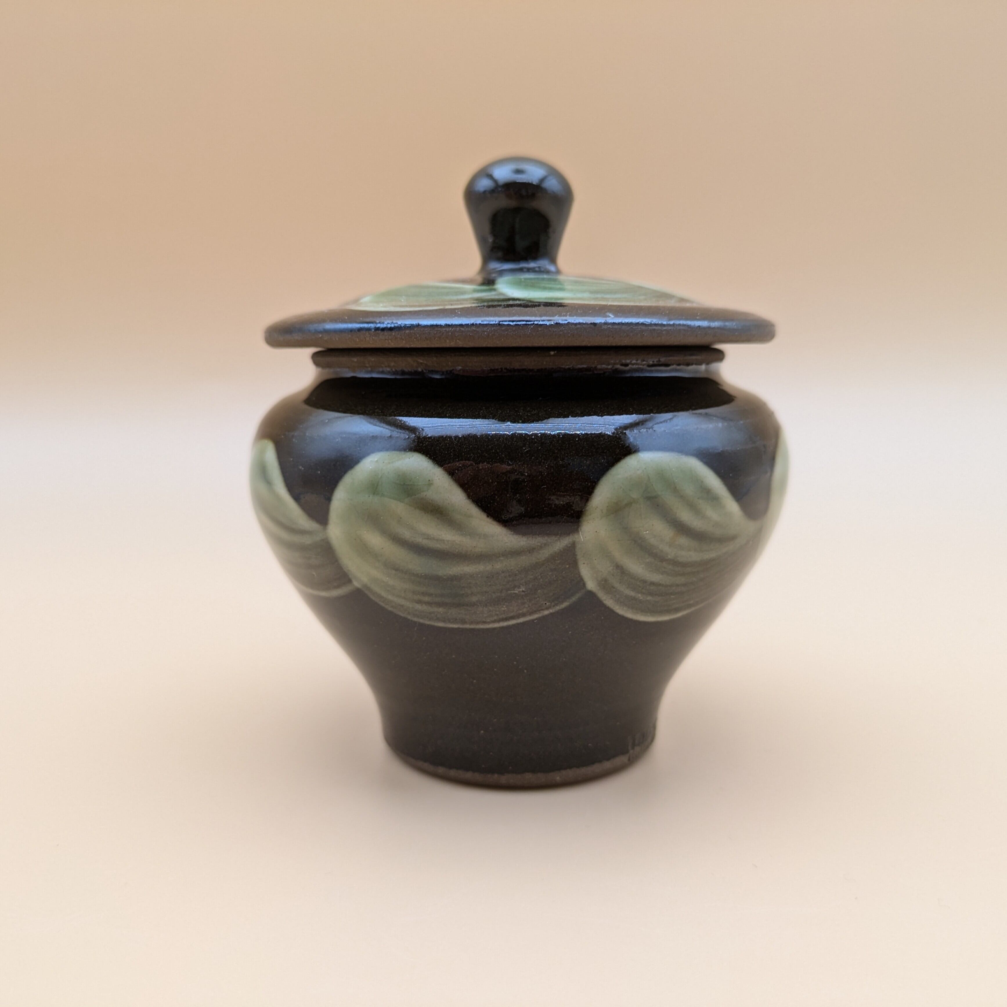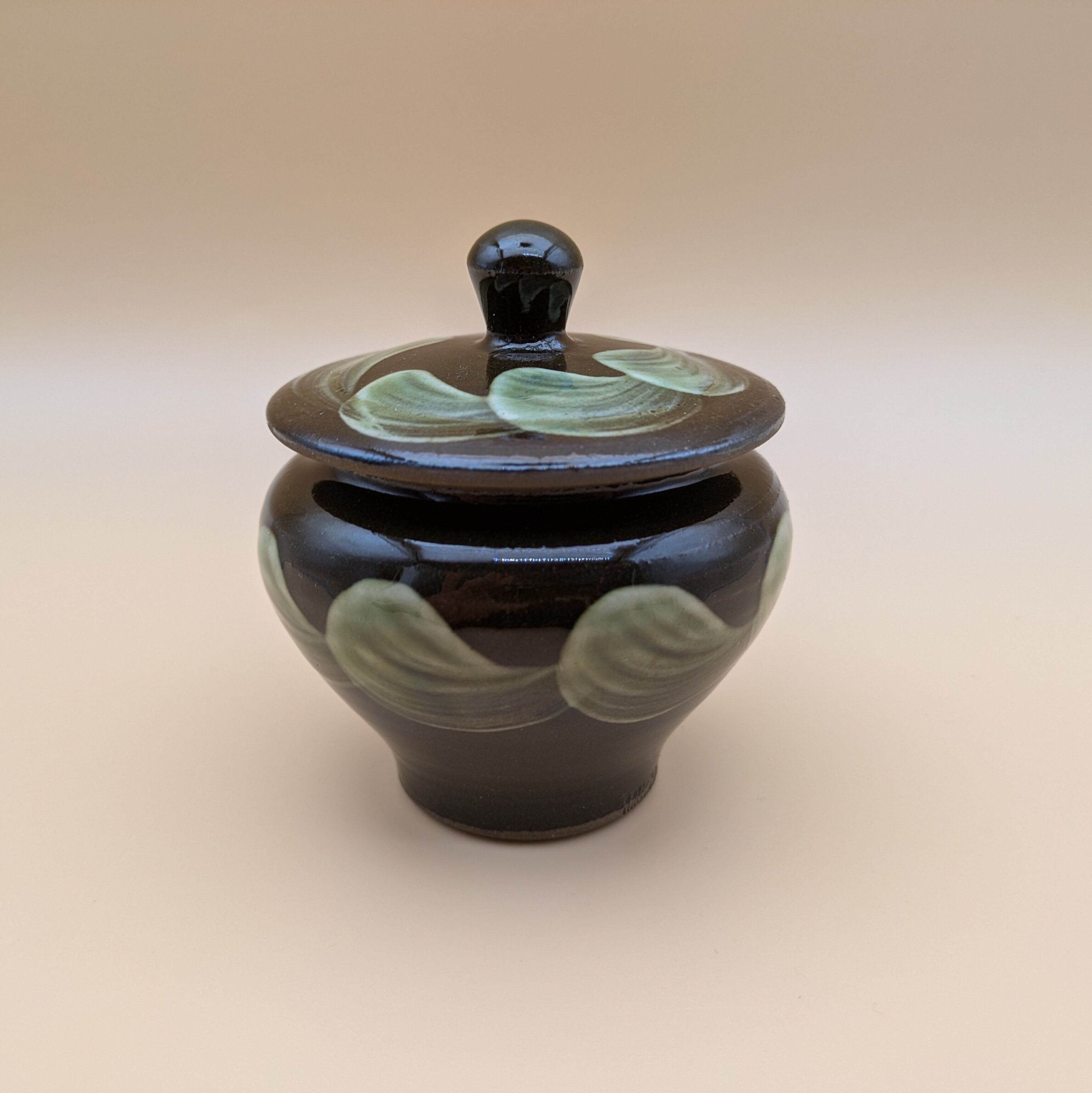 蓋つき壺 小鹿田焼(茶釉・緑刷毛目) 最大径8.5cm 開口部外径6.6cm内径5.6cm