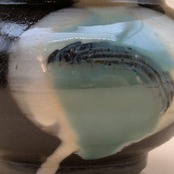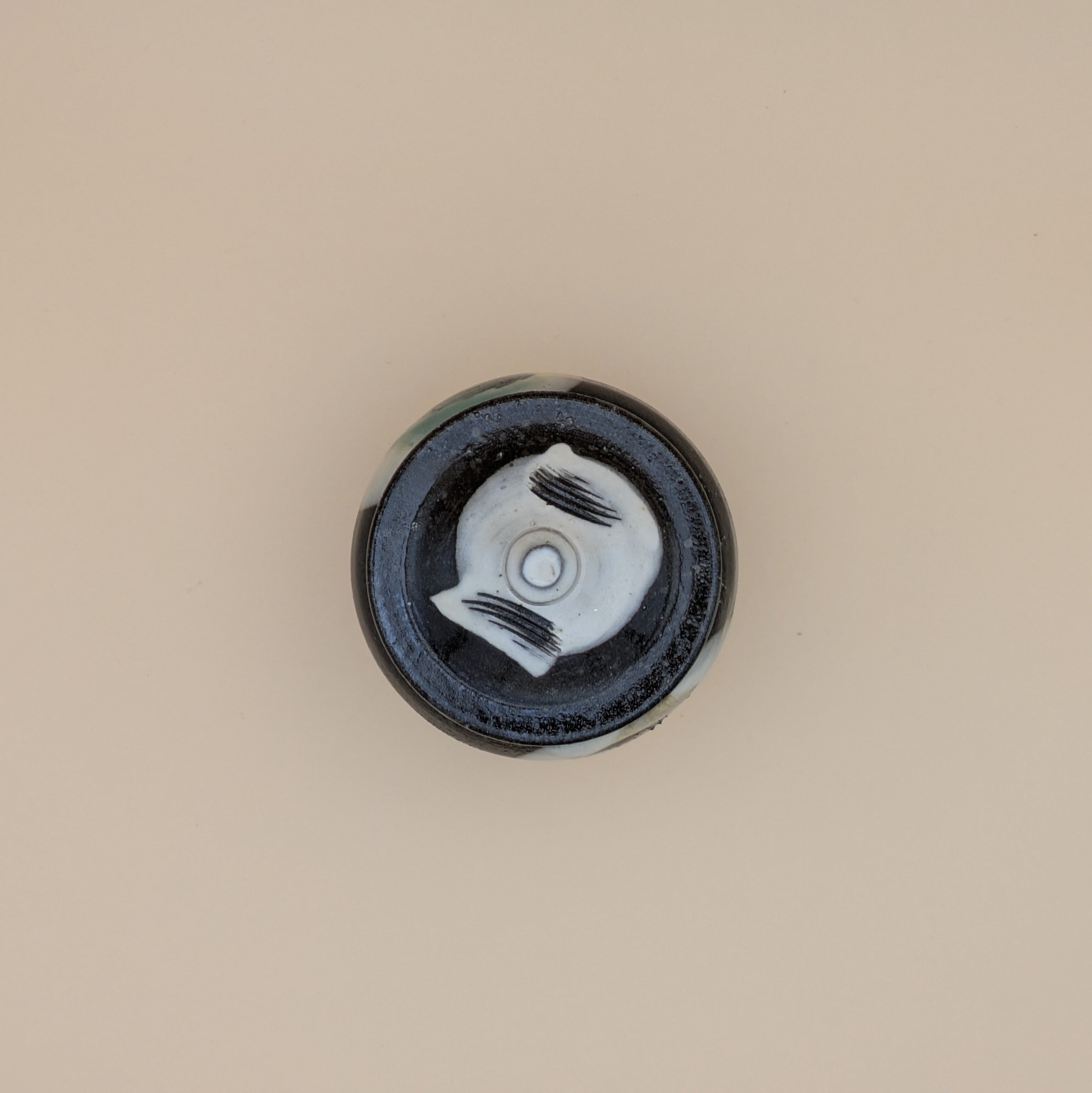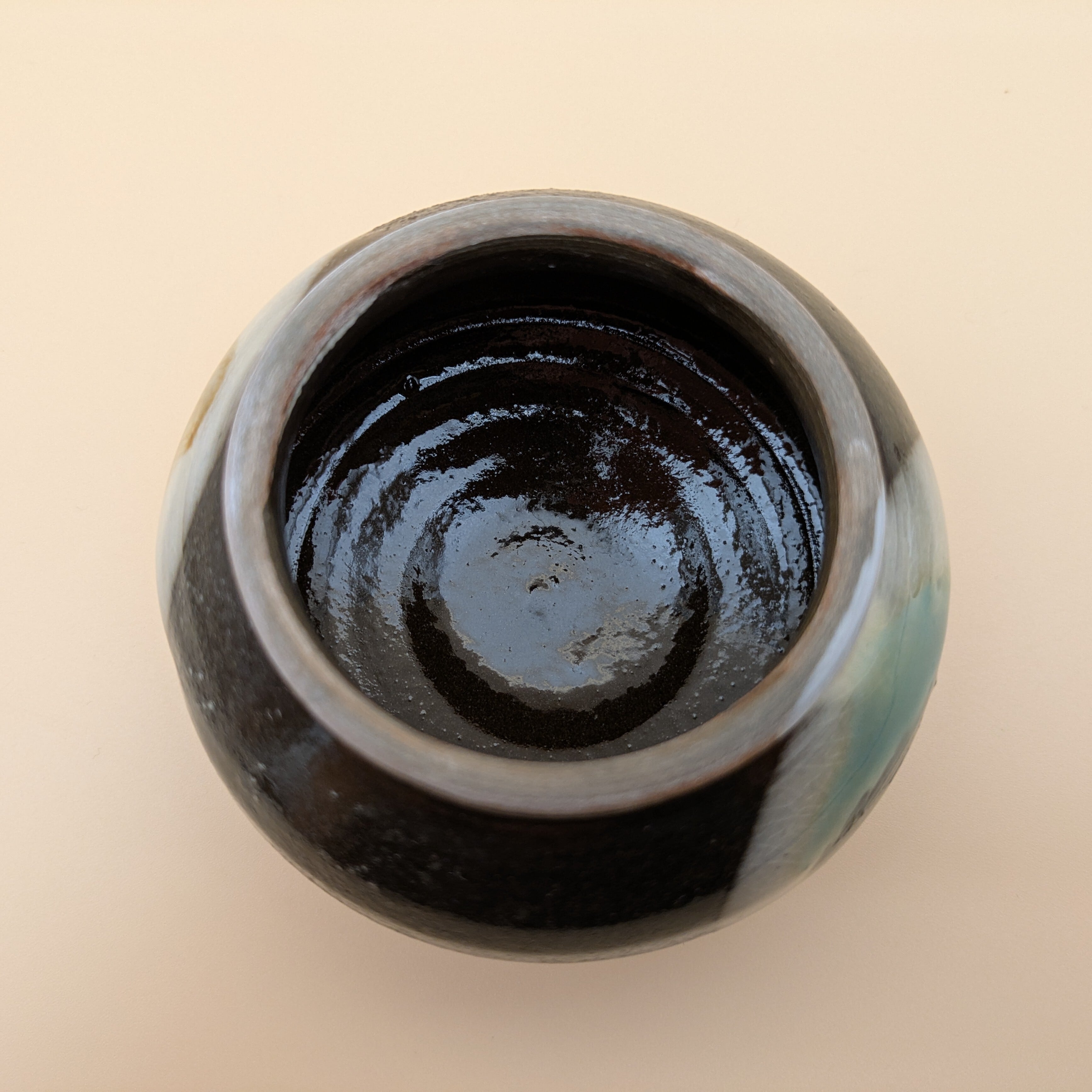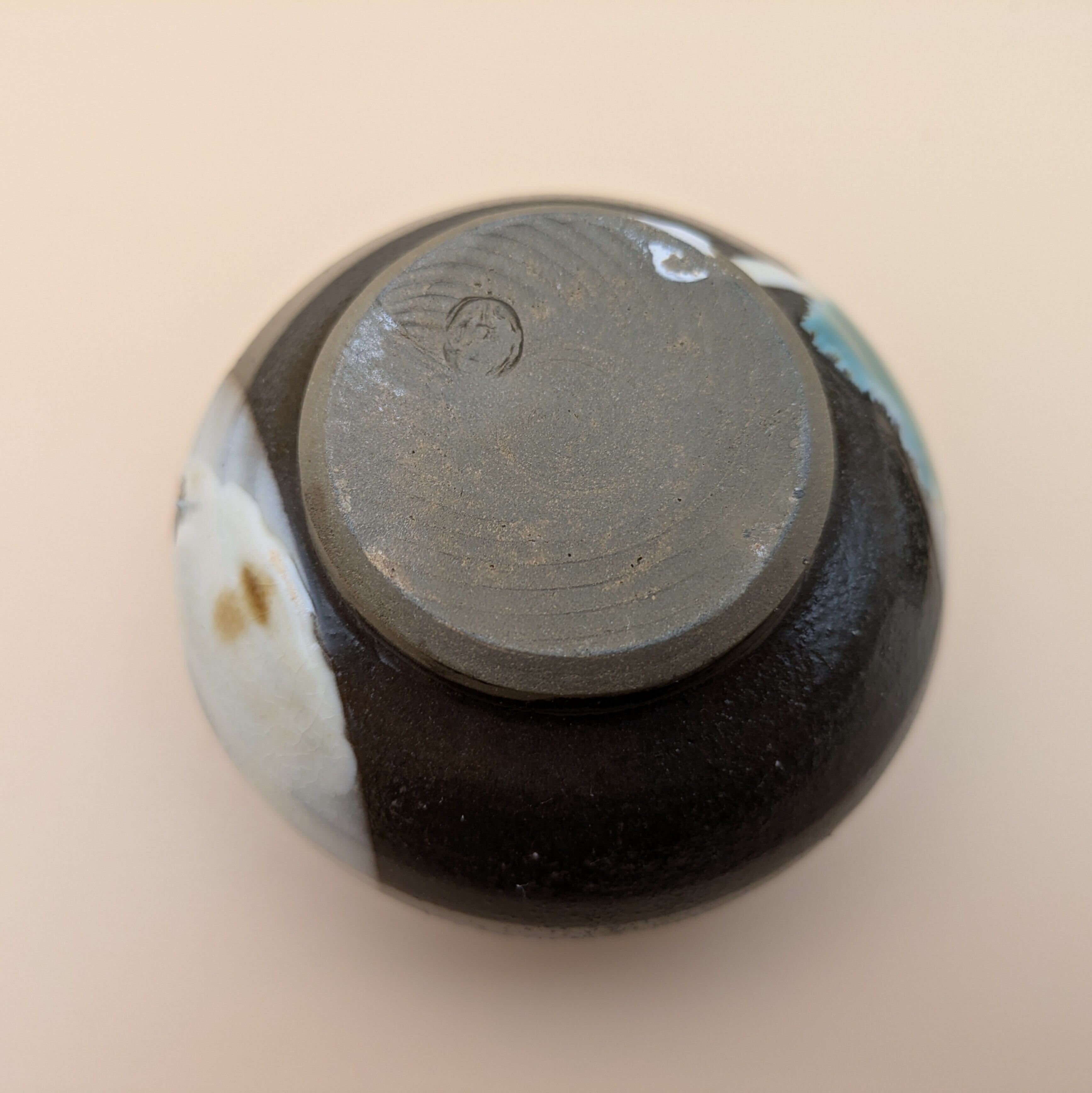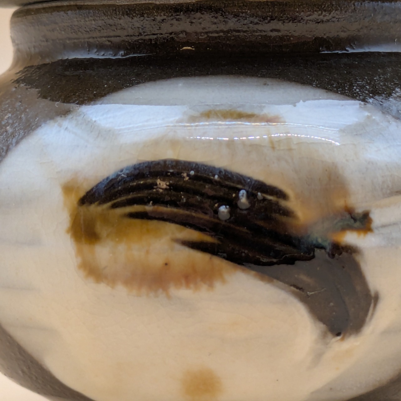 蓋つき壺 小鹿田焼(茶釉・白に黒刷毛目) 最大径8.8cm 開口部外径5.9cm内径4.8cm