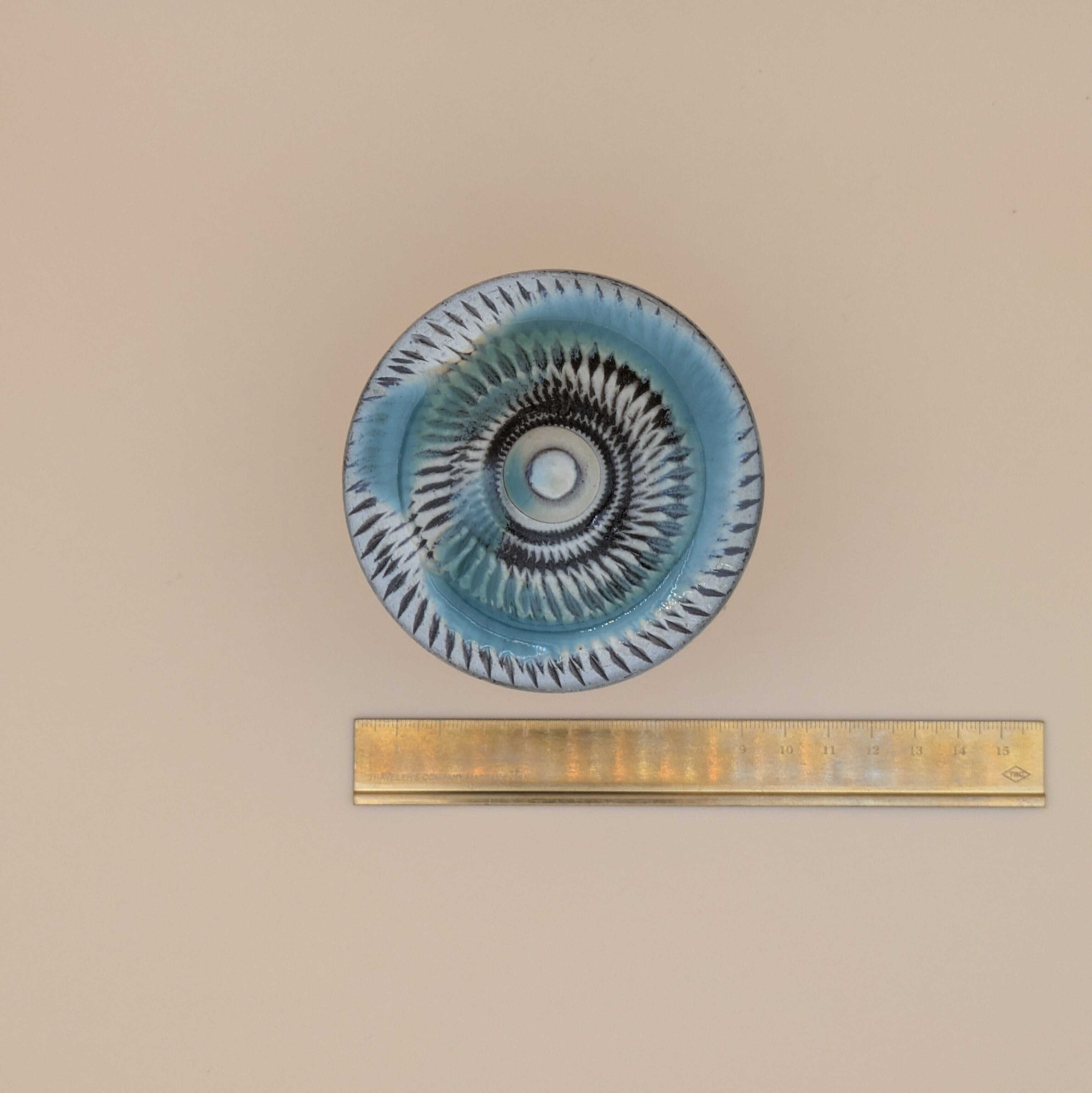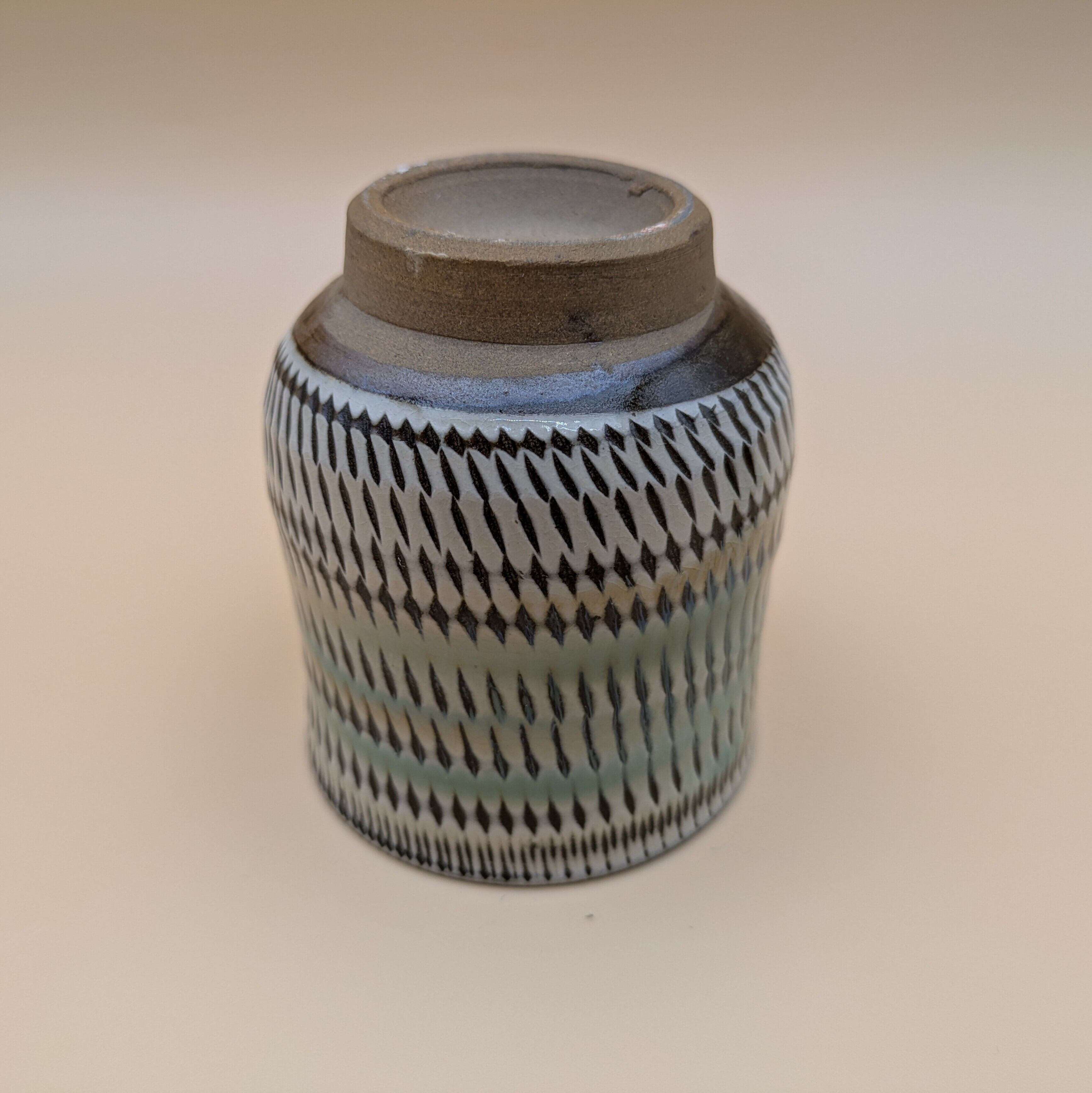 蓋つき湯呑 小鹿田焼(白地に緑釉・飛び鉋) 最大径8.5cm 開口部外径7.1cm内径6.0cm