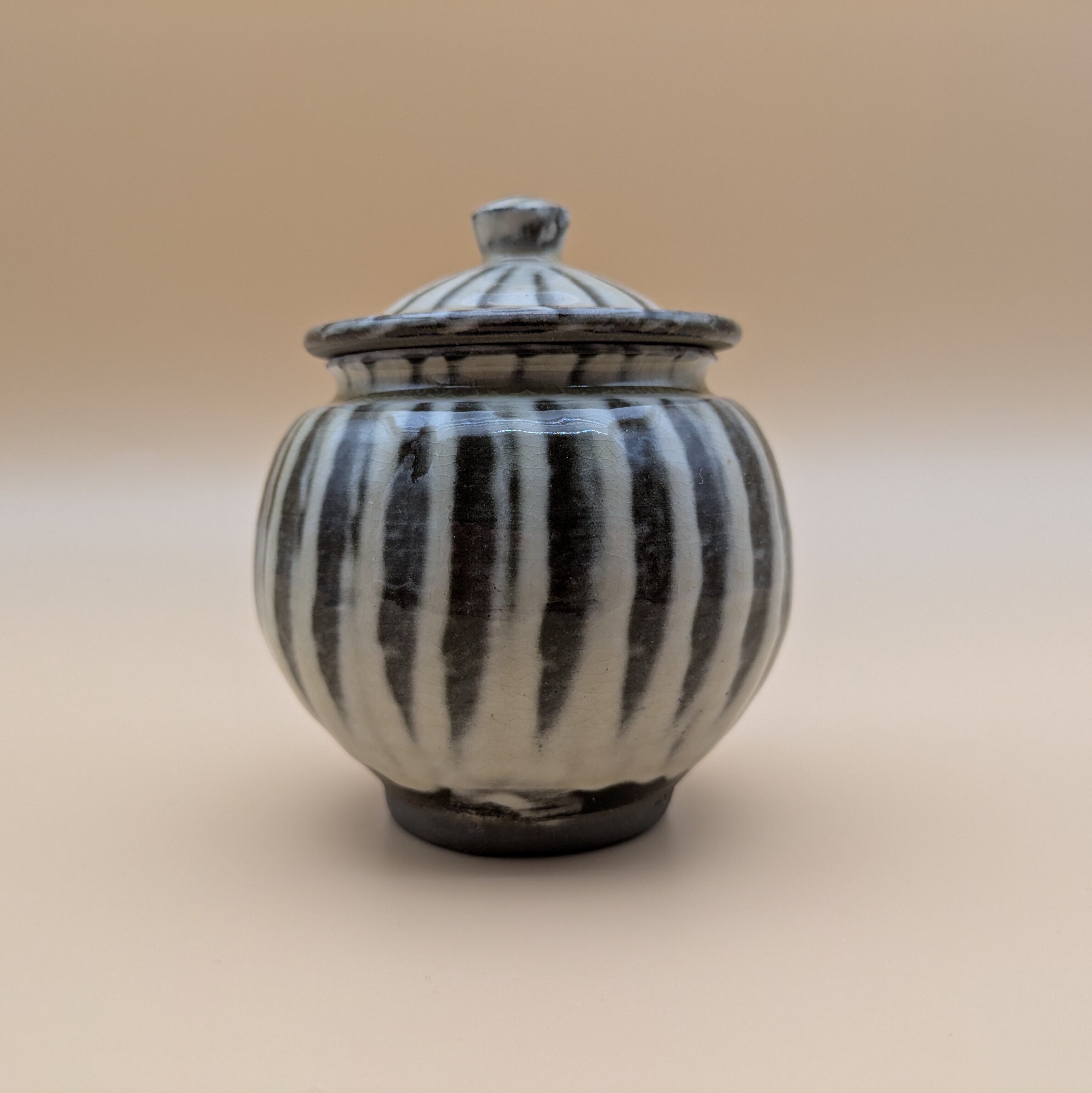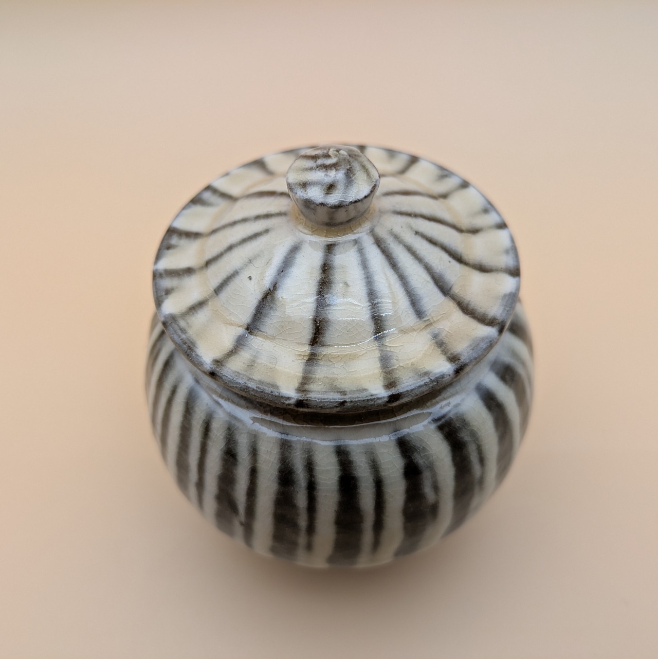 蓋つき壺 小鹿田焼(白釉流し掛け) 最大径7.8cm 開口部外径5.8cm内径4.7cm