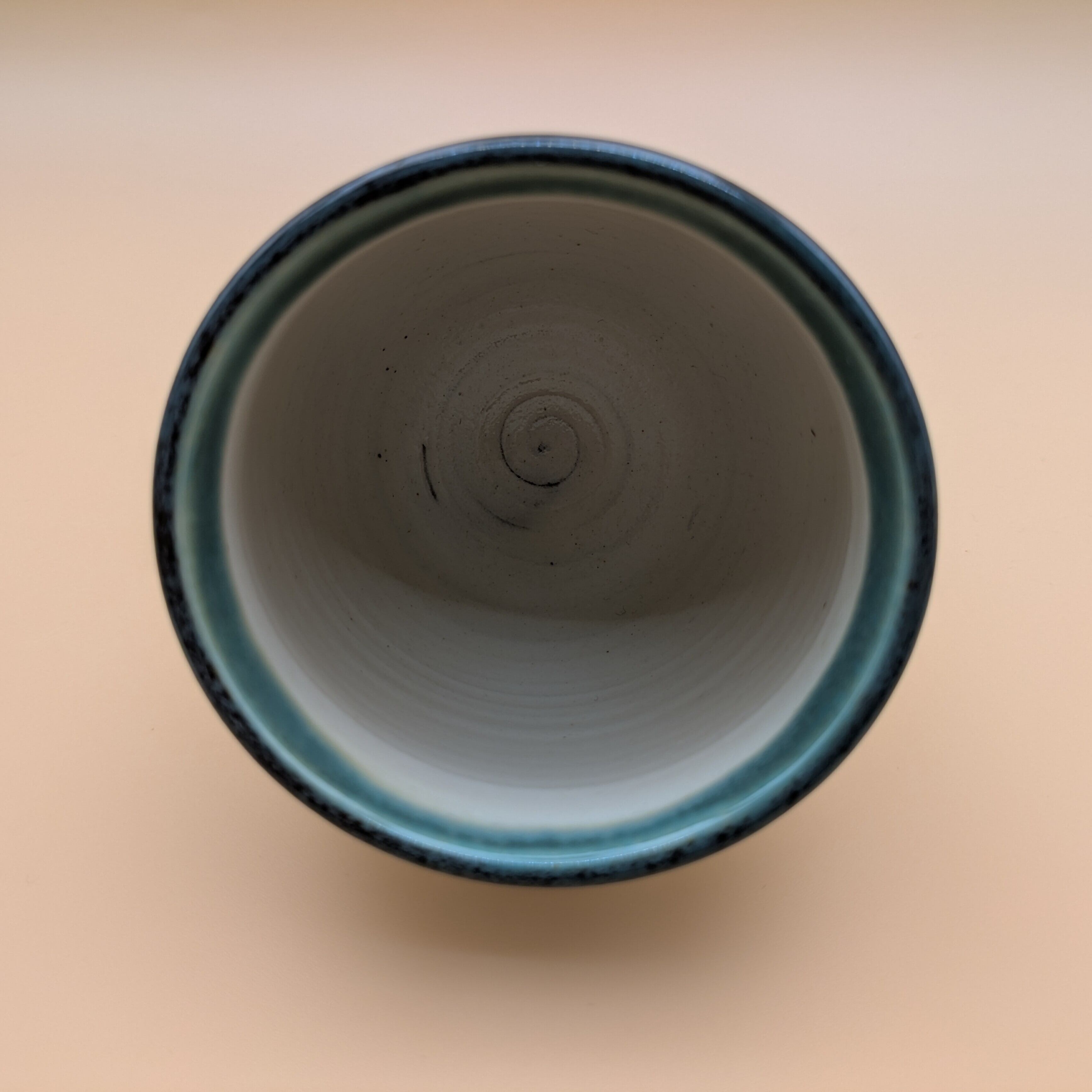 湯呑 小鹿田焼(白地に緑釉・暴れ鉋)開口部径7.7cm 内径6.7cm 最大径8cm