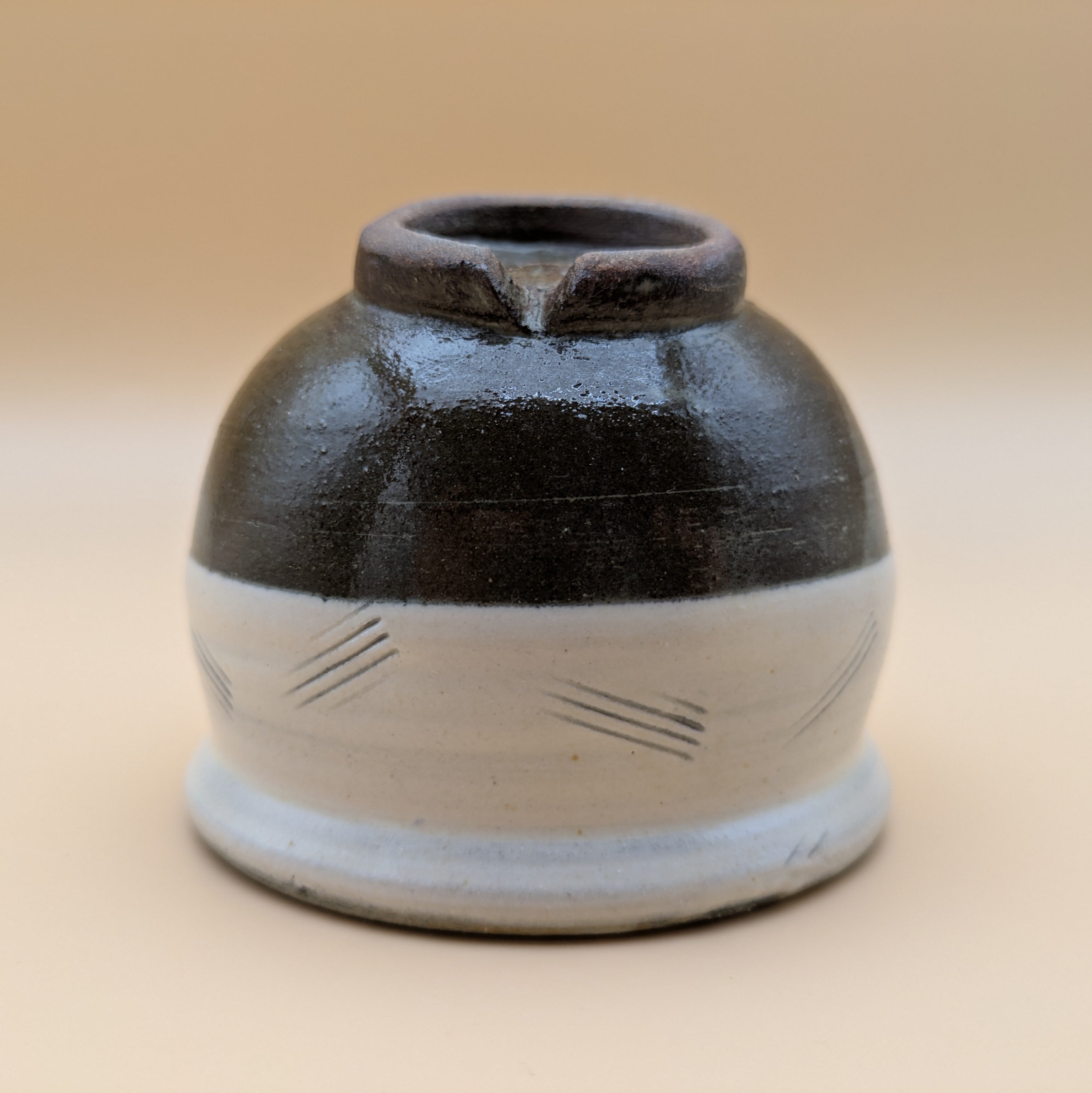 物入れ3寸 小石原焼(白釉・茶釉・袖描き) 直径9.3cm 底径4.5cm