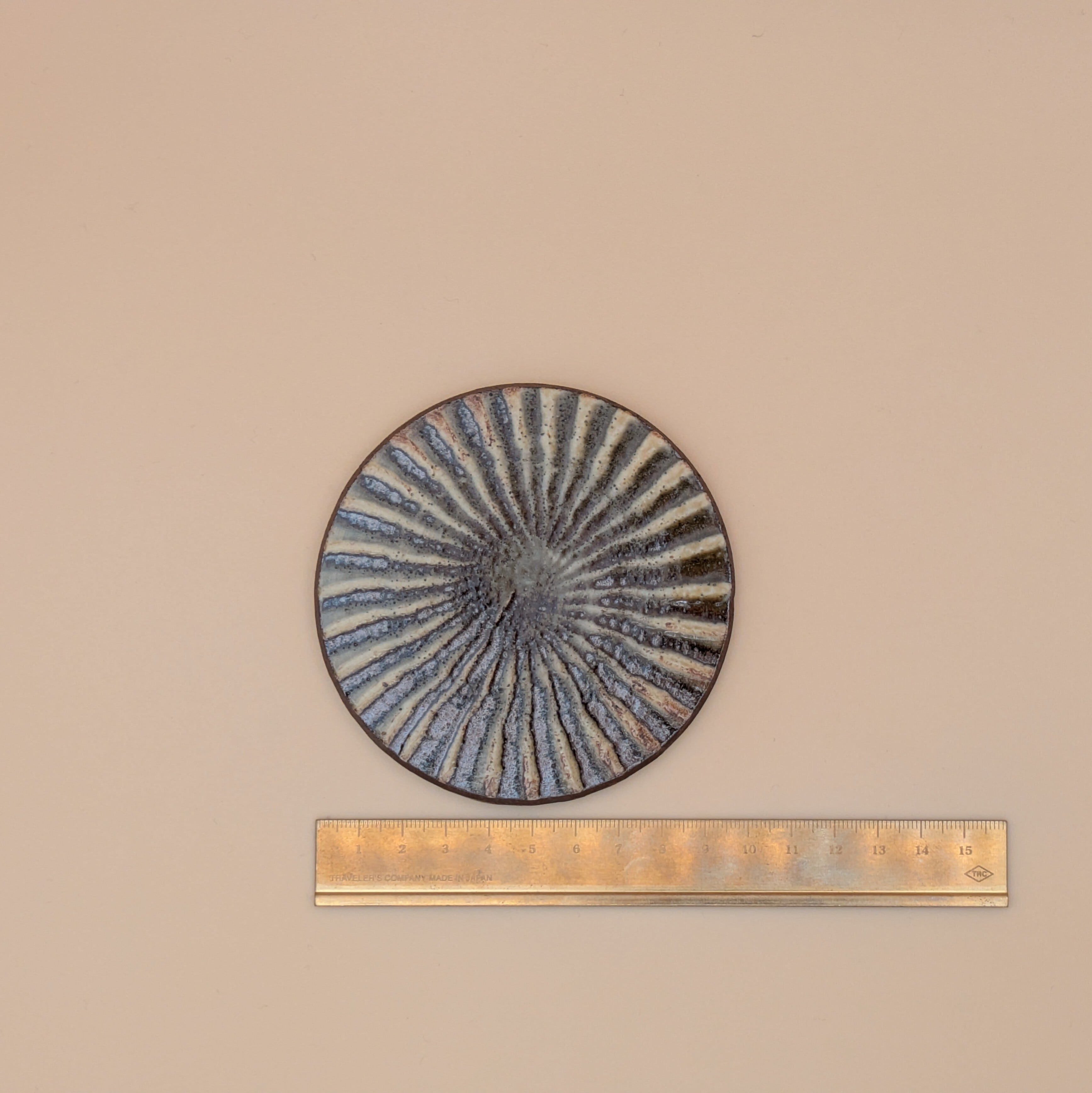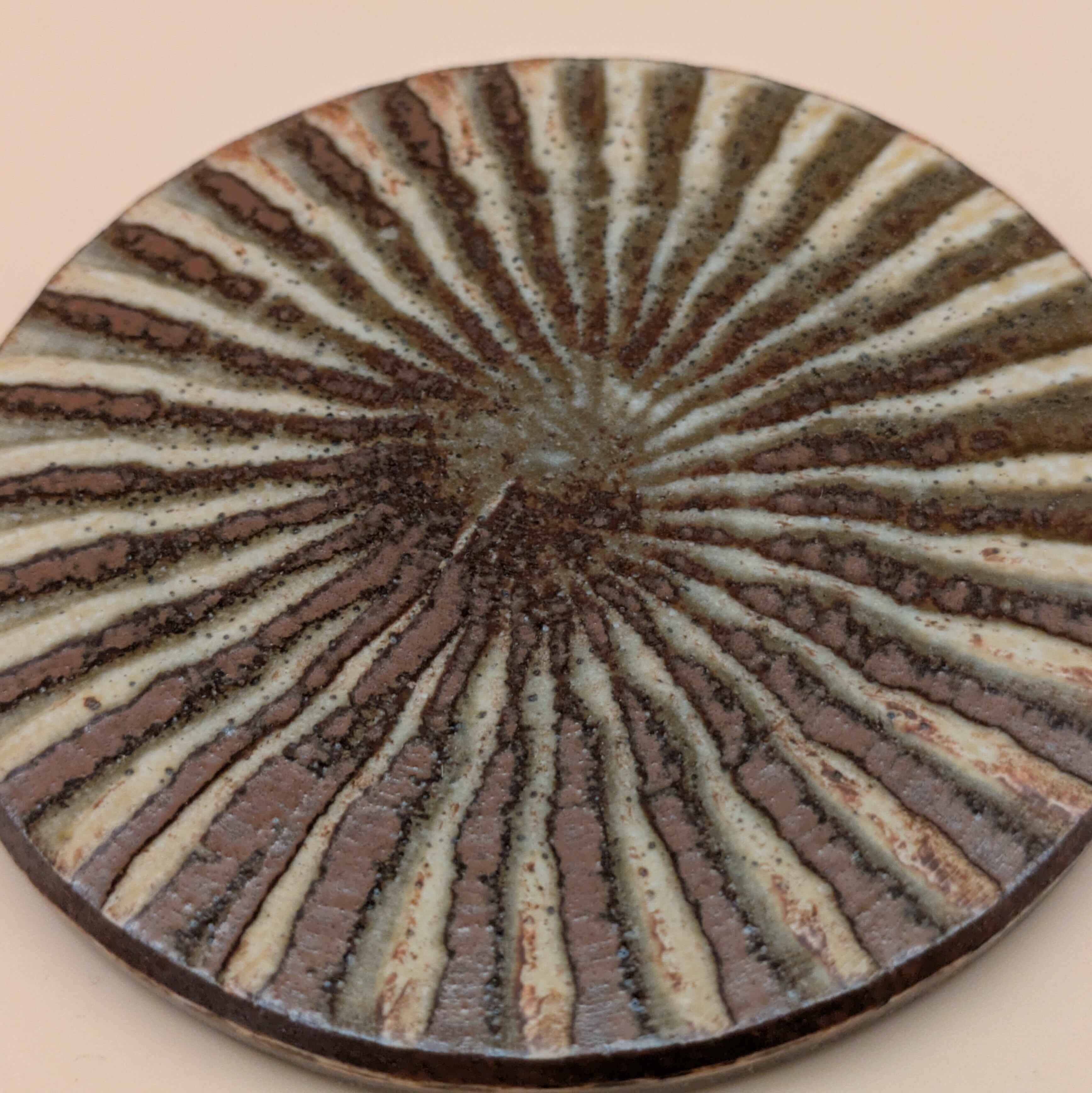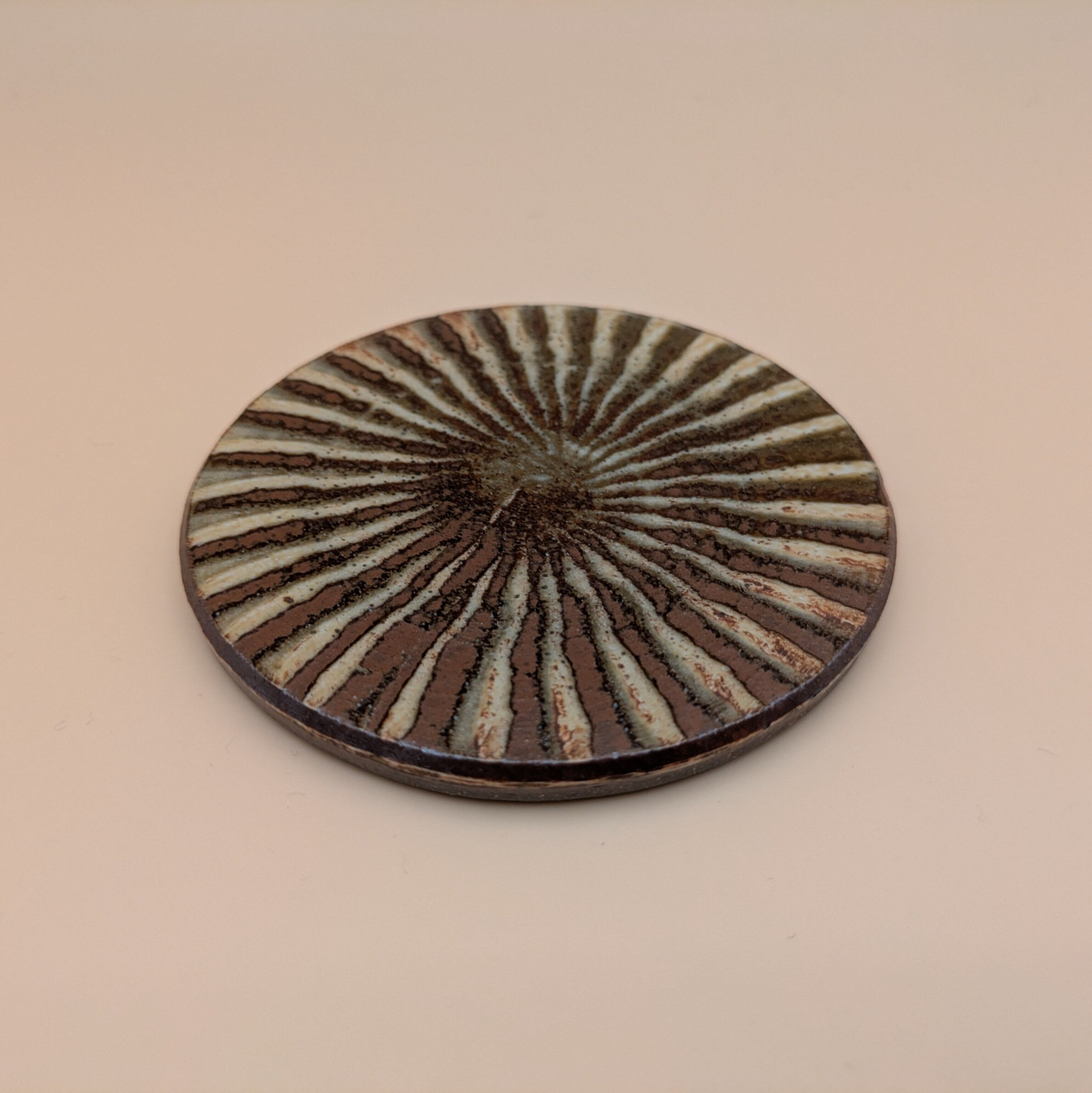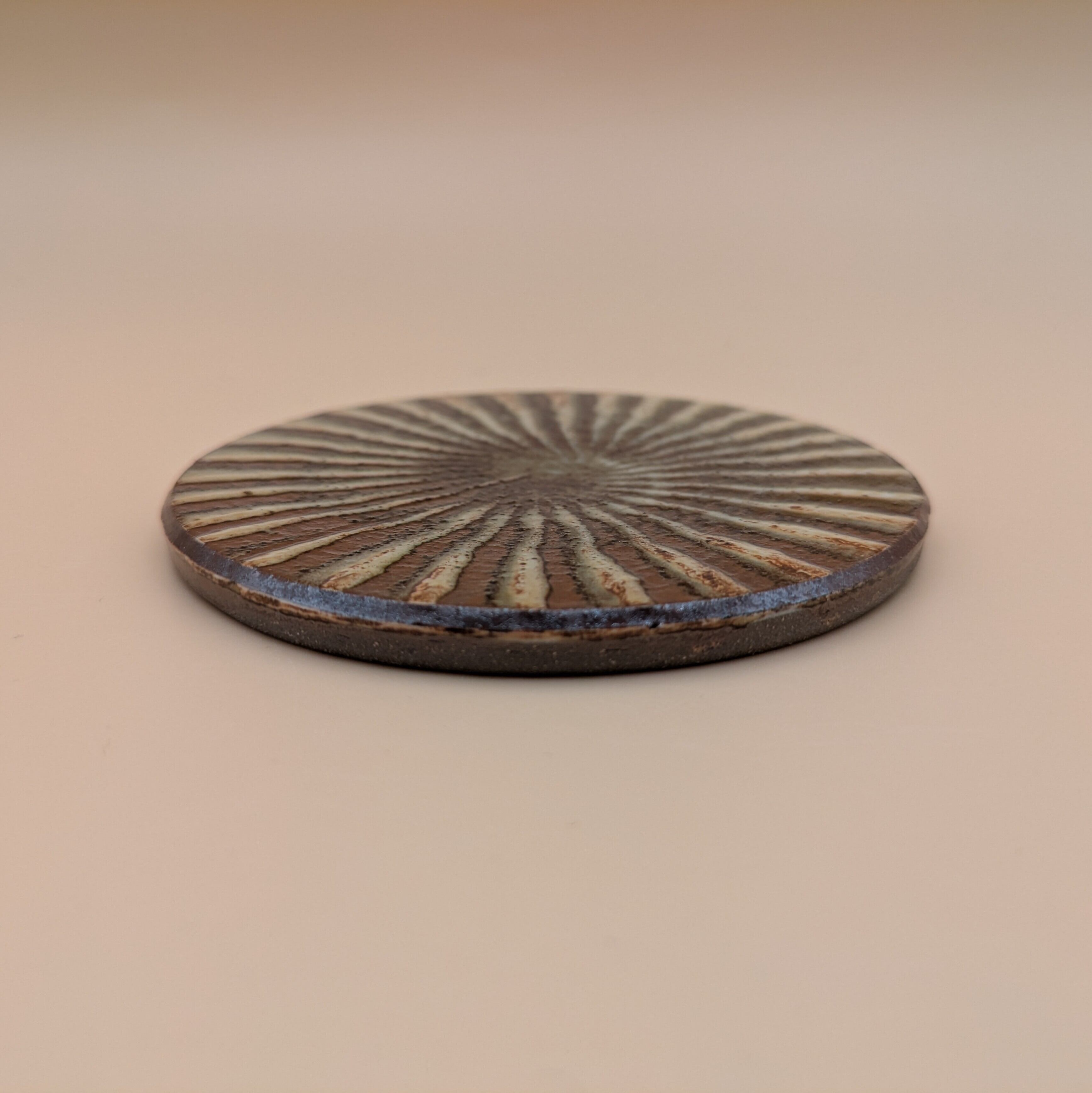 コースター 小石原焼(茶釉・刷毛目) 直径9.6cm 高さ0.5cm 重量110g