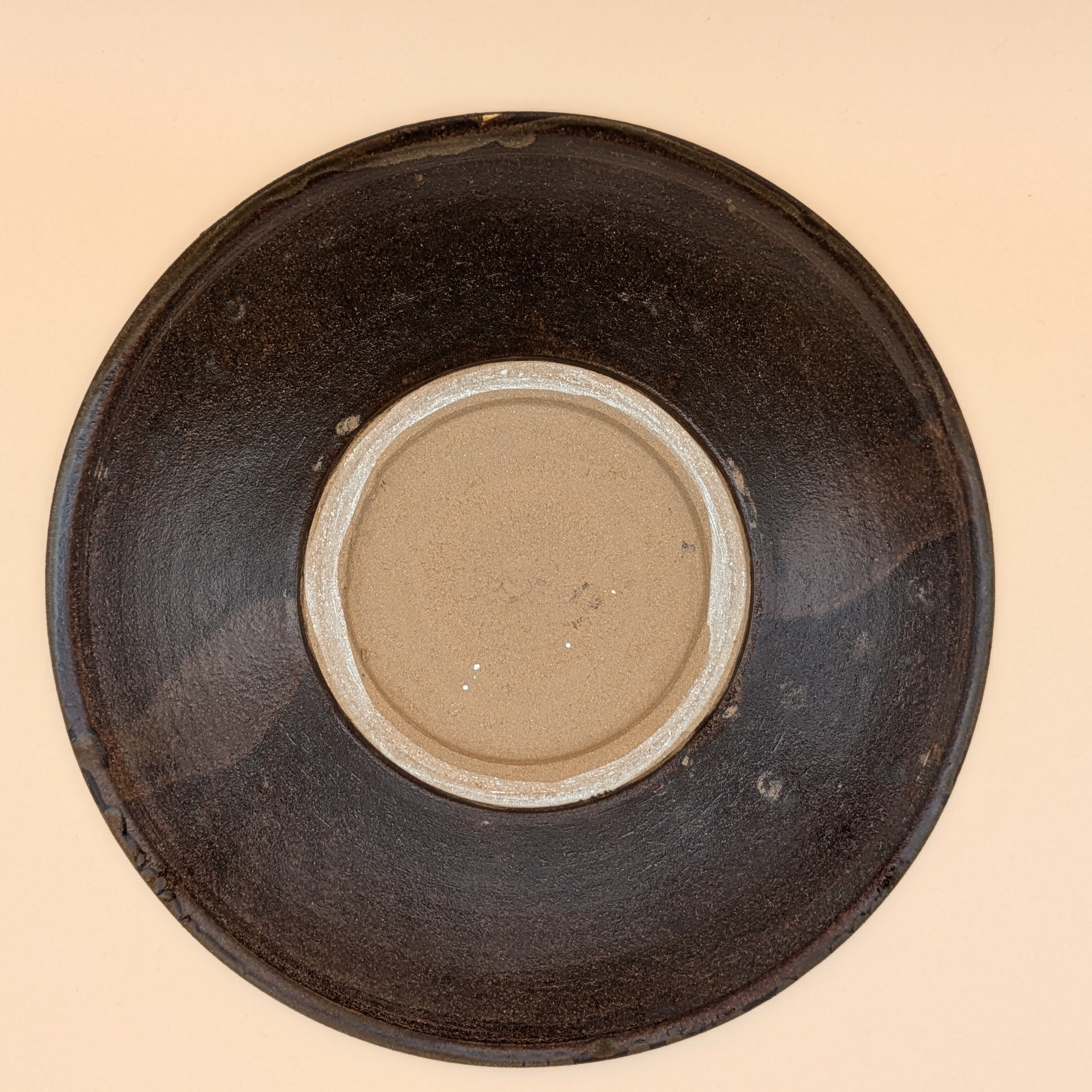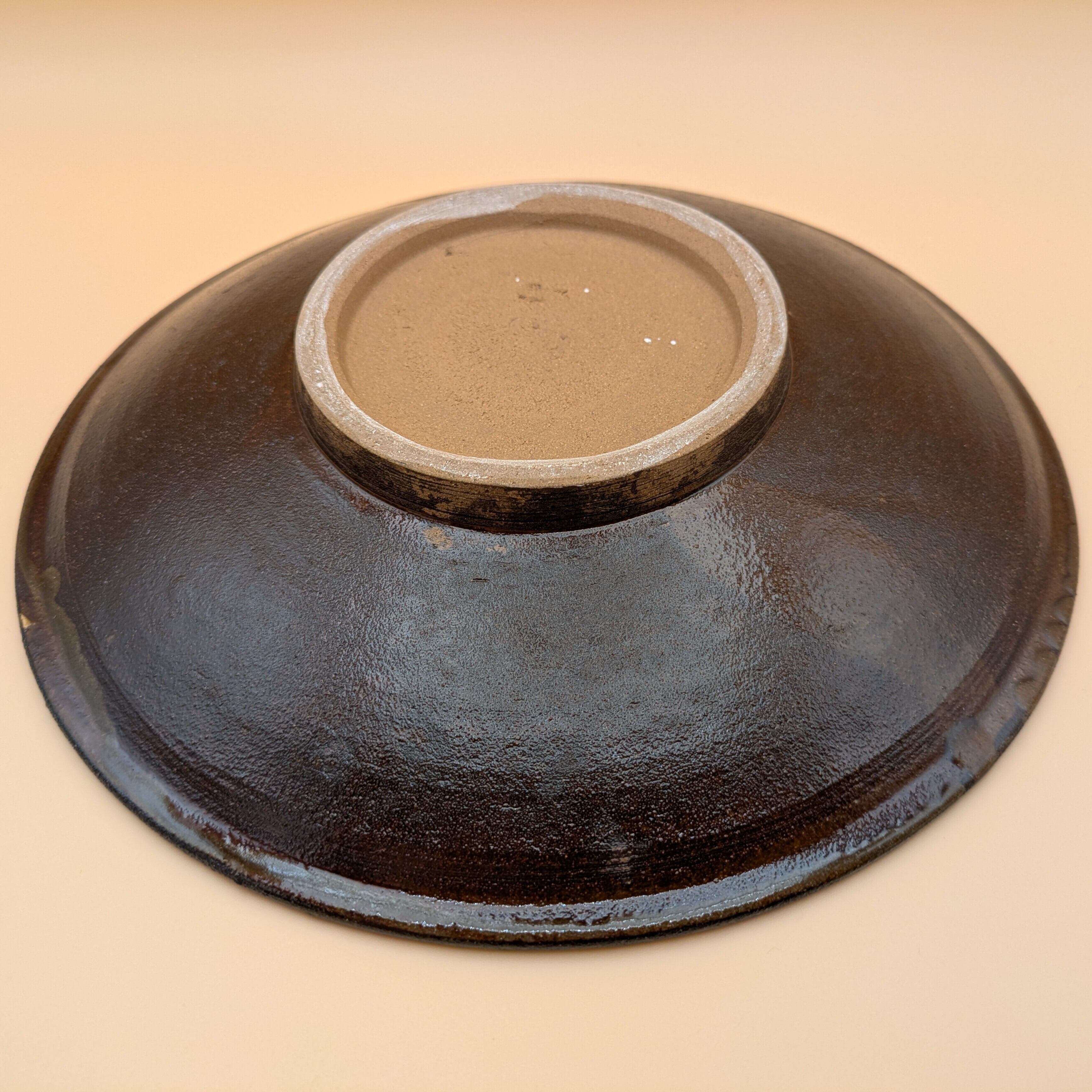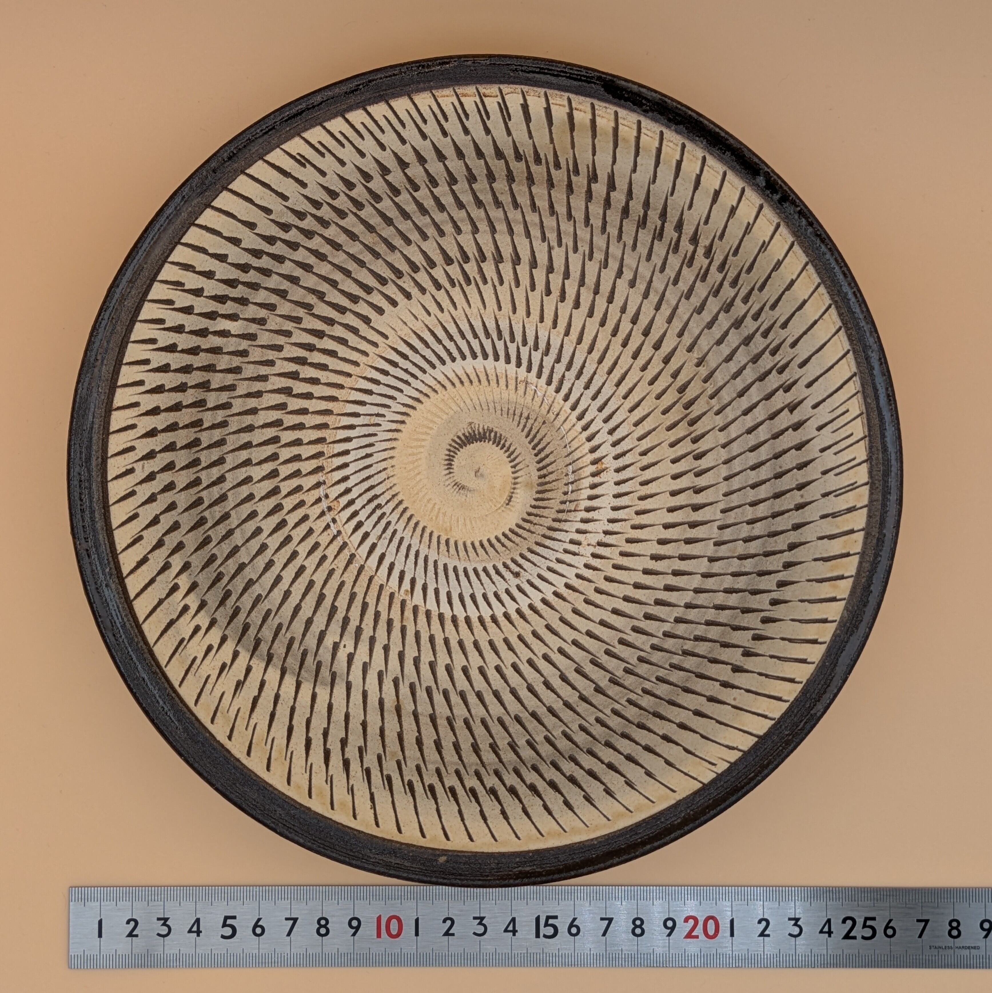 盛皿8寸 小鹿田焼(白釉・茶縁・飛び鉋01) 直径24.5cm 高さ4.3cm 重量553g
