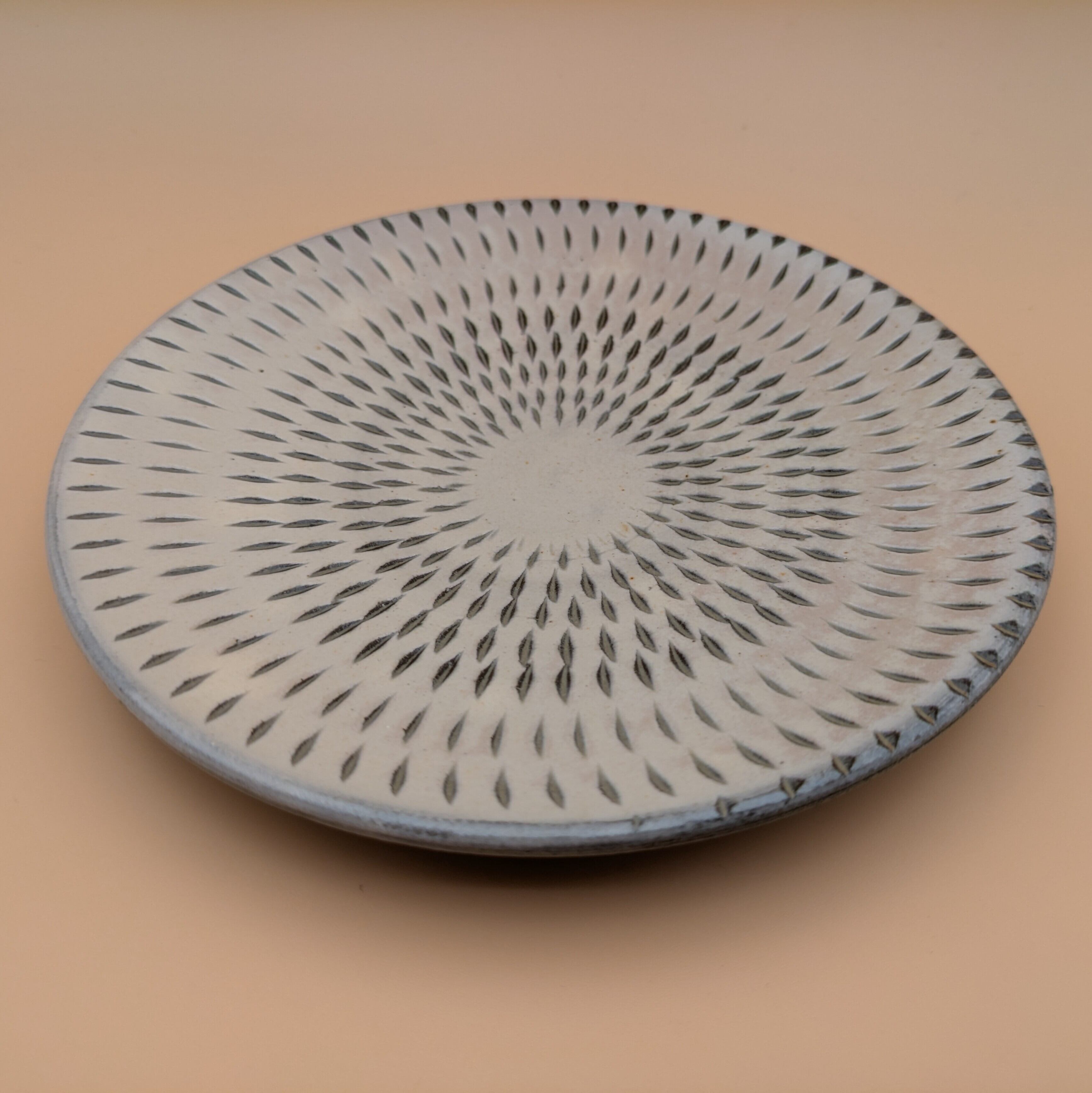 平皿6寸 小石原焼(白 飛び鉋01) 直径17.2cm 高さ2.4cm 重量336g
