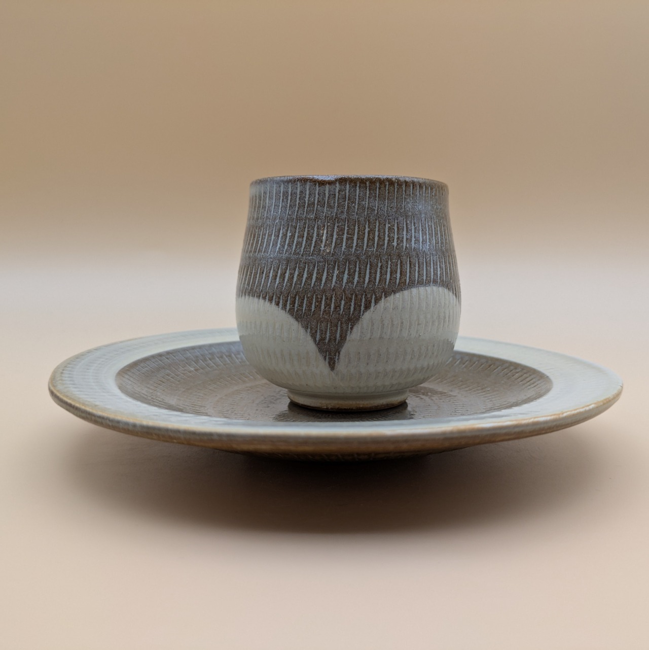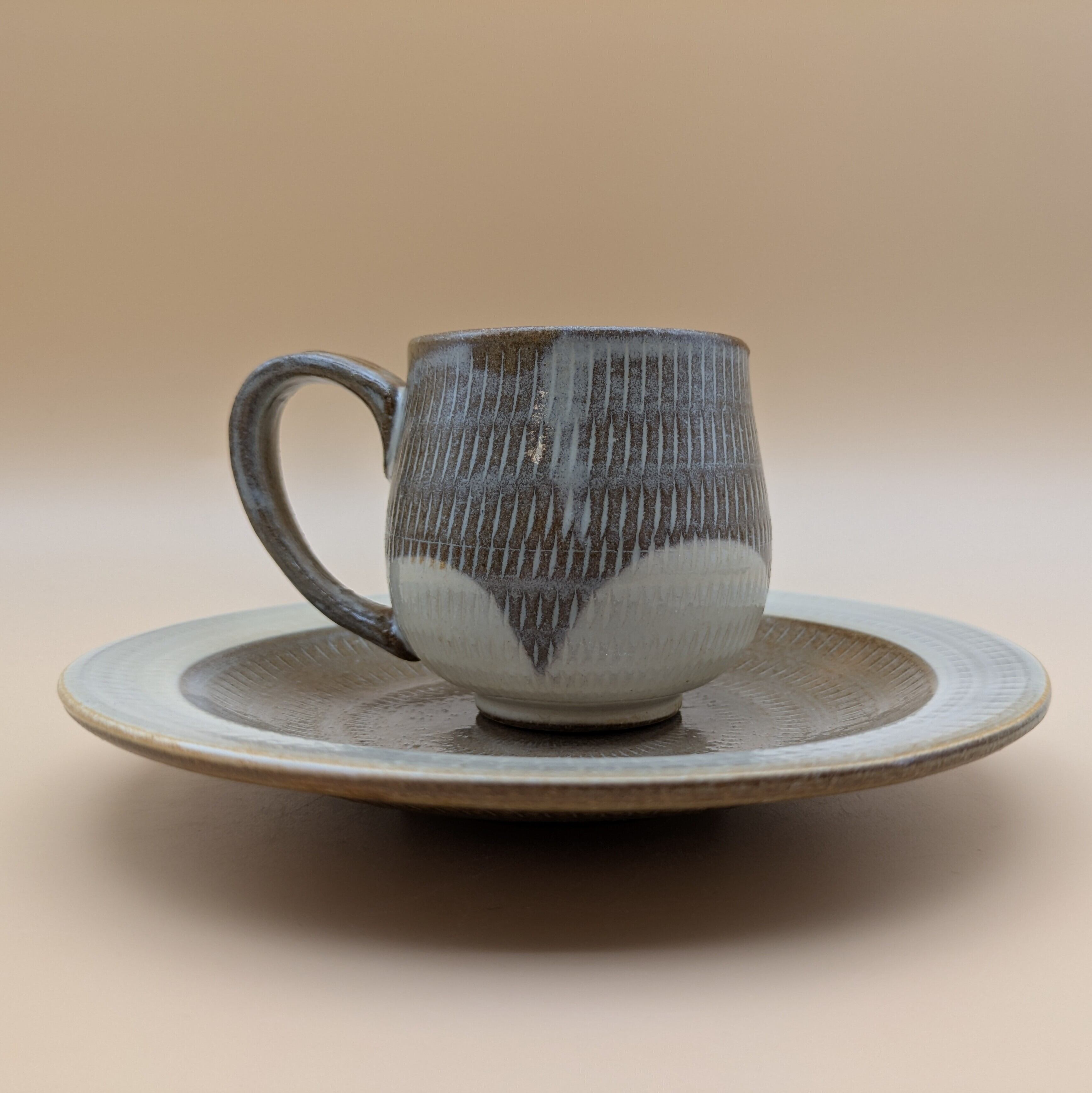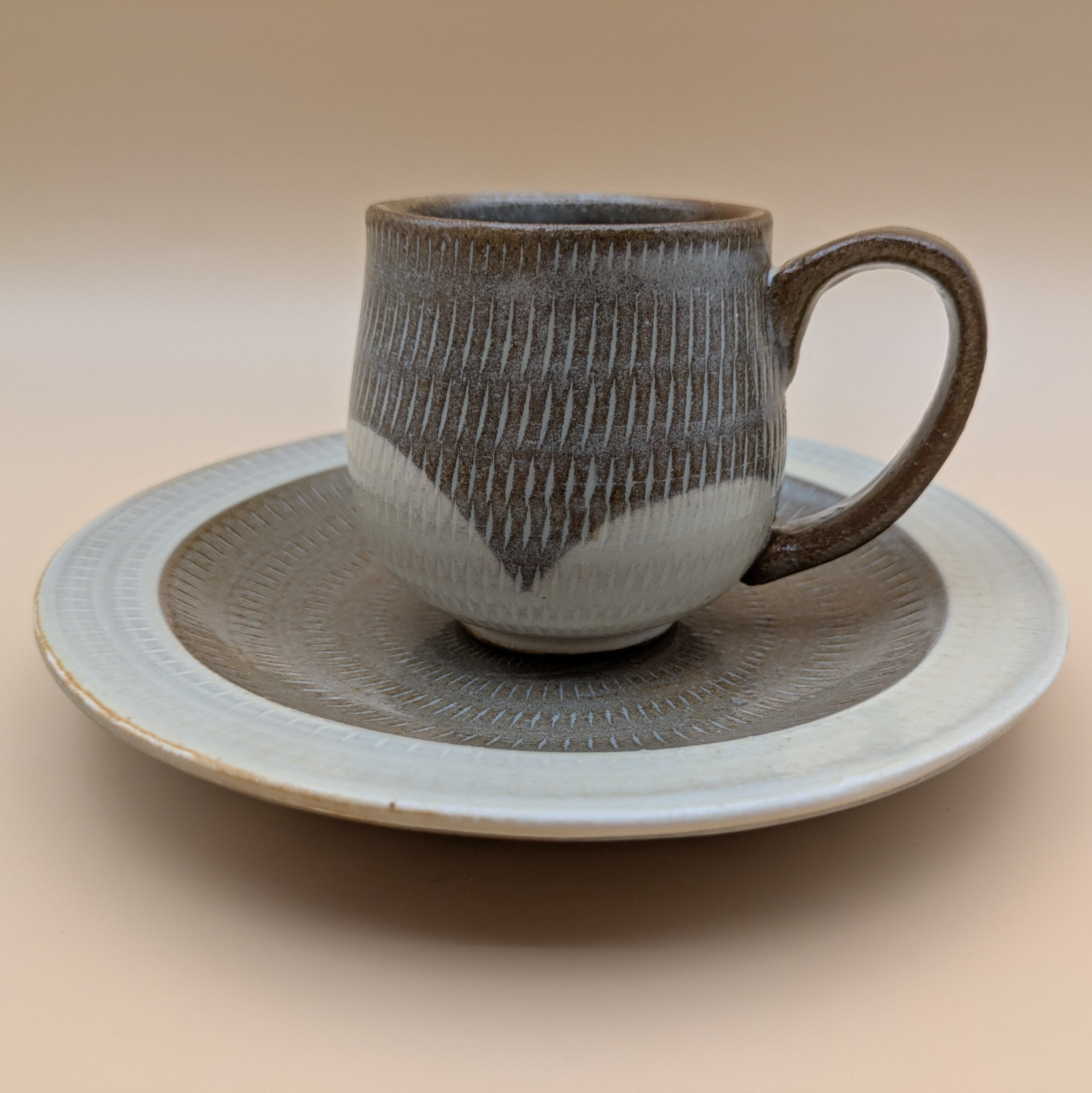 コーヒーカップ&ソーサー 小石原焼(白釉・茶釉・飛び鉋・光沢調)