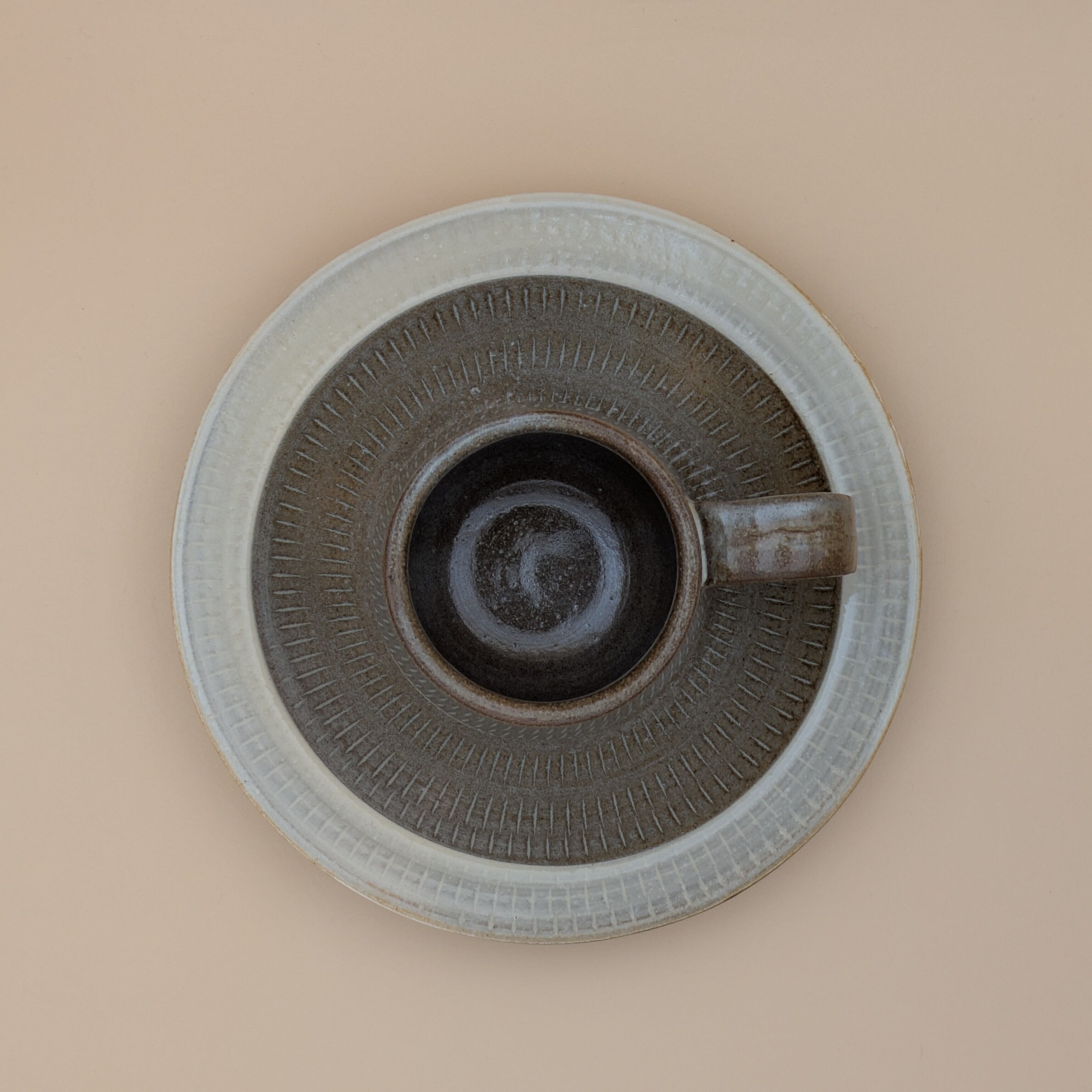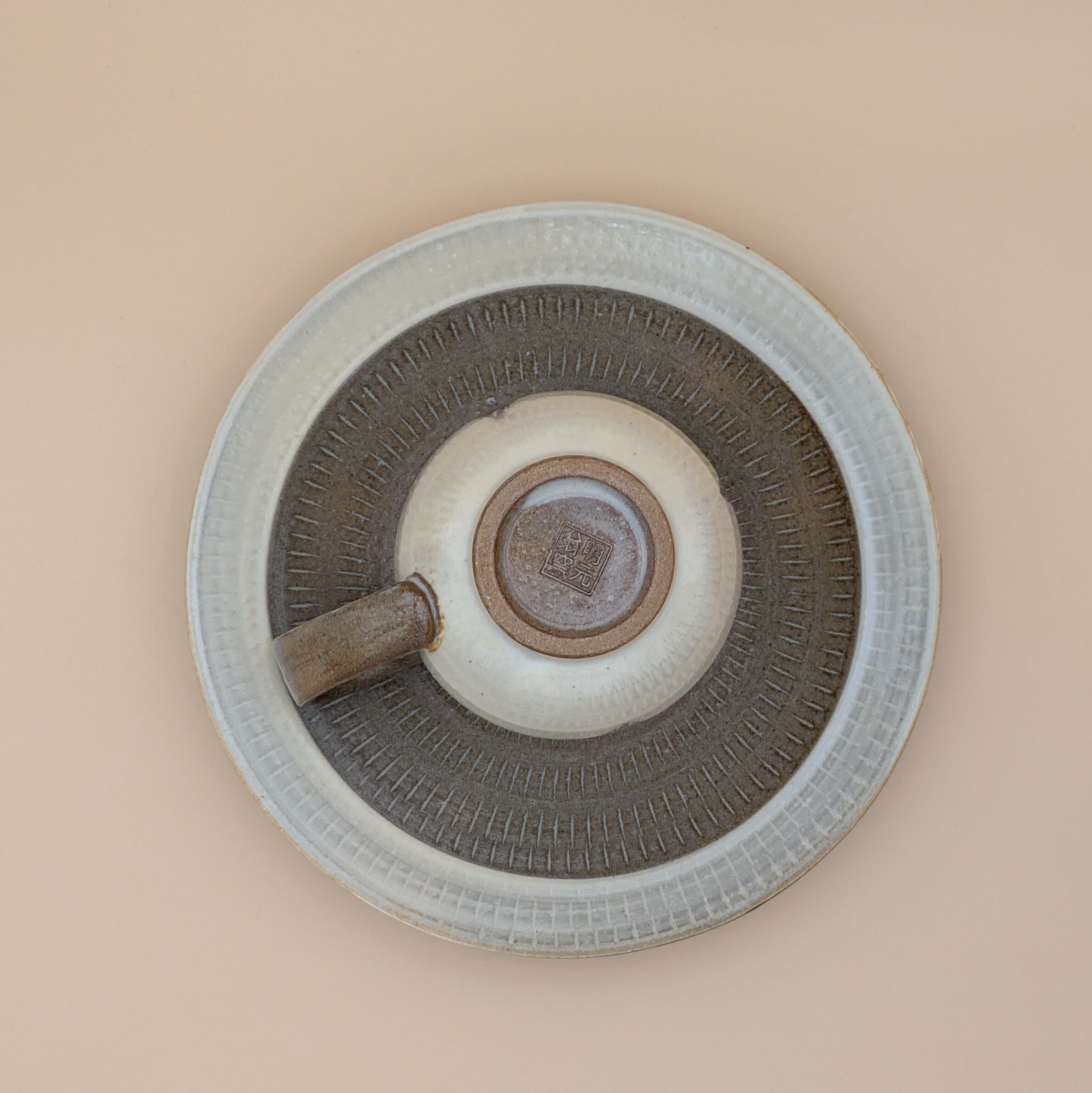 温かみと洗練が融合した、職人の手作りによるコーヒーカップ&ソーサーです。小石原焼の飛び鉋と白と茶の釉薬が織りなす文様が生み出す独特の表情は、毎日のコーヒータイムを特別なひとときに演出してくれます。