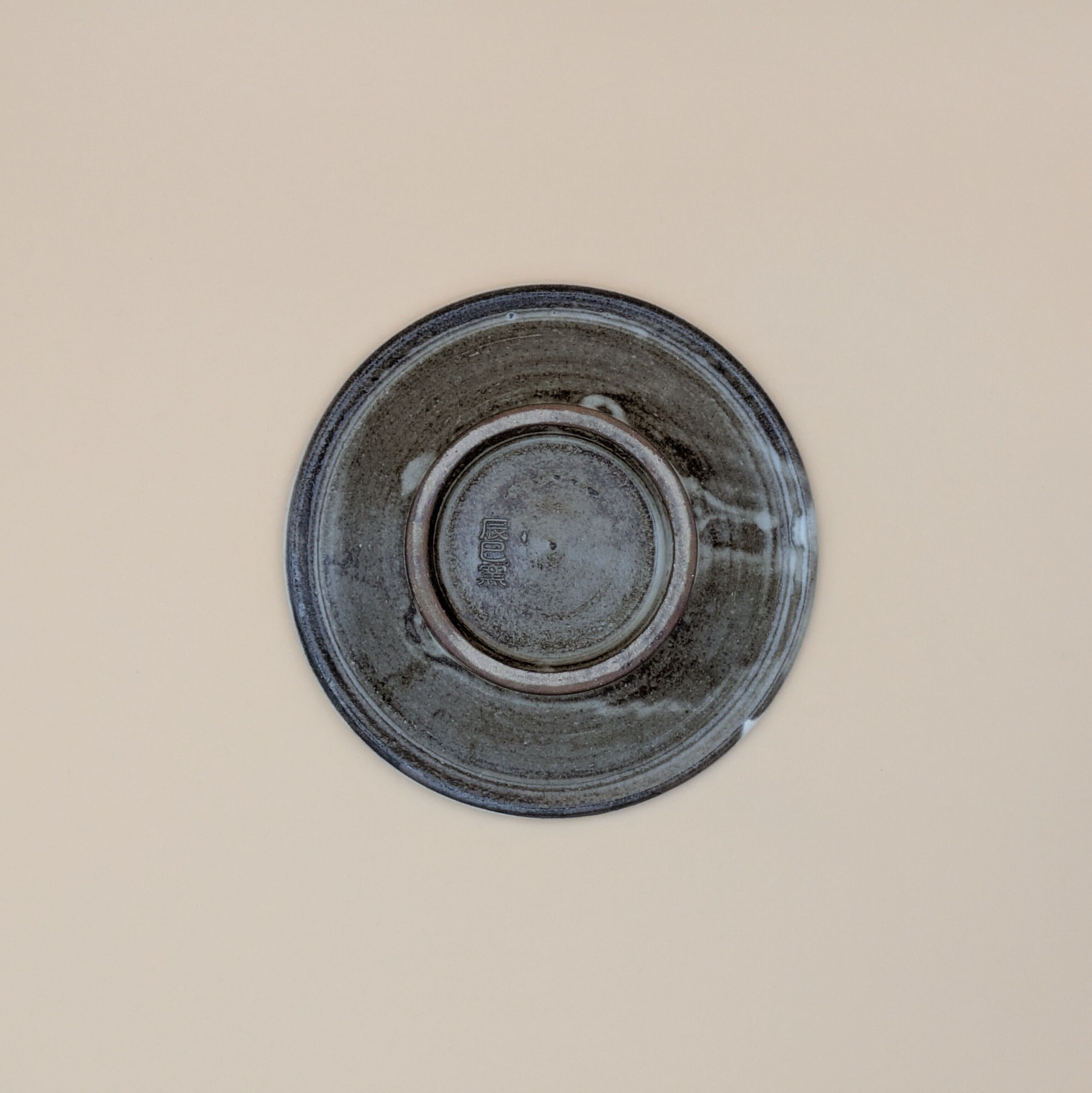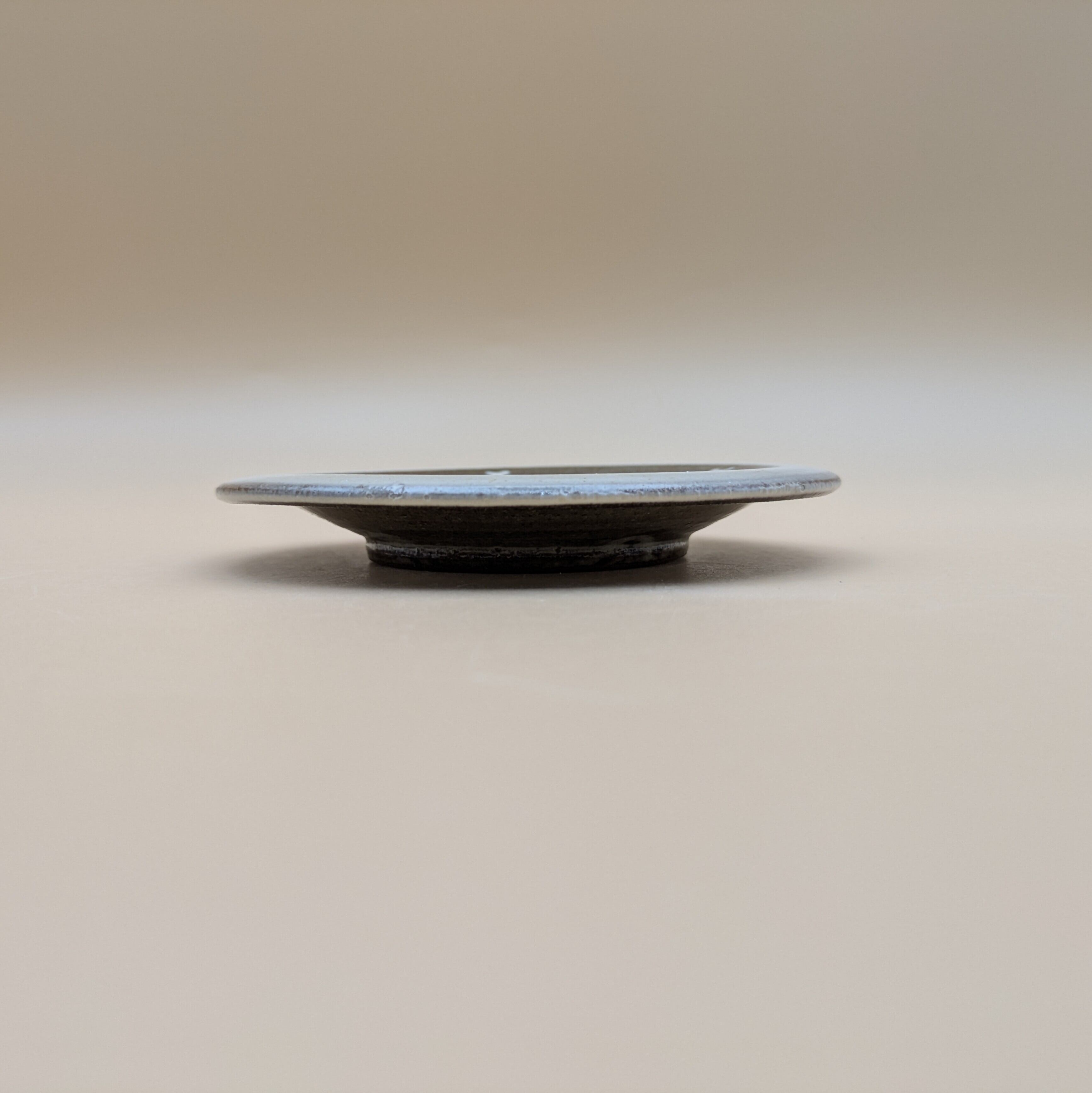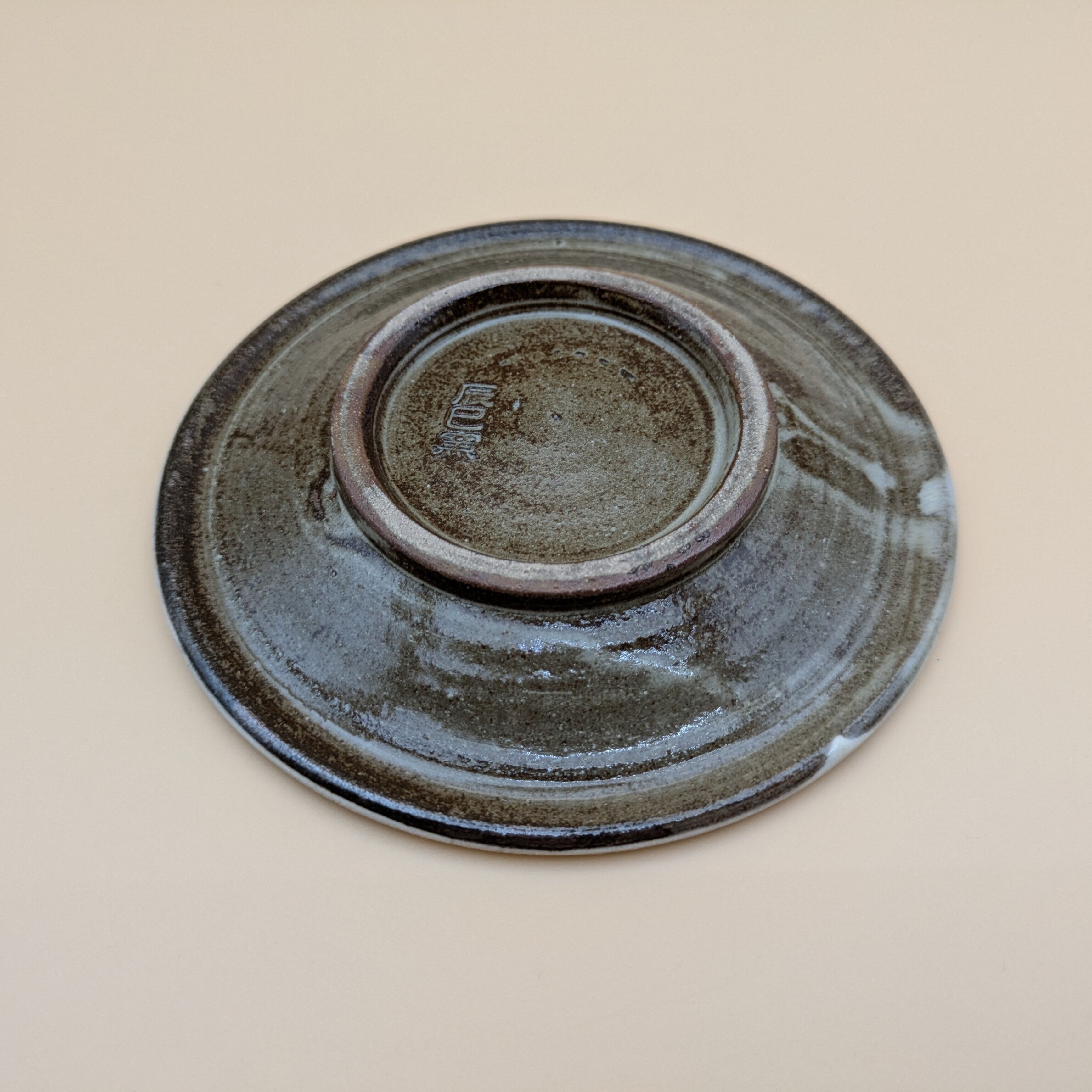 小石原焼の豆皿です。灰釉の地に白縁・白クロスがポイントの可愛らしいデザインです。手作りならではの温かみと風合いがあり、使えば使うほど味わい深さが増します。