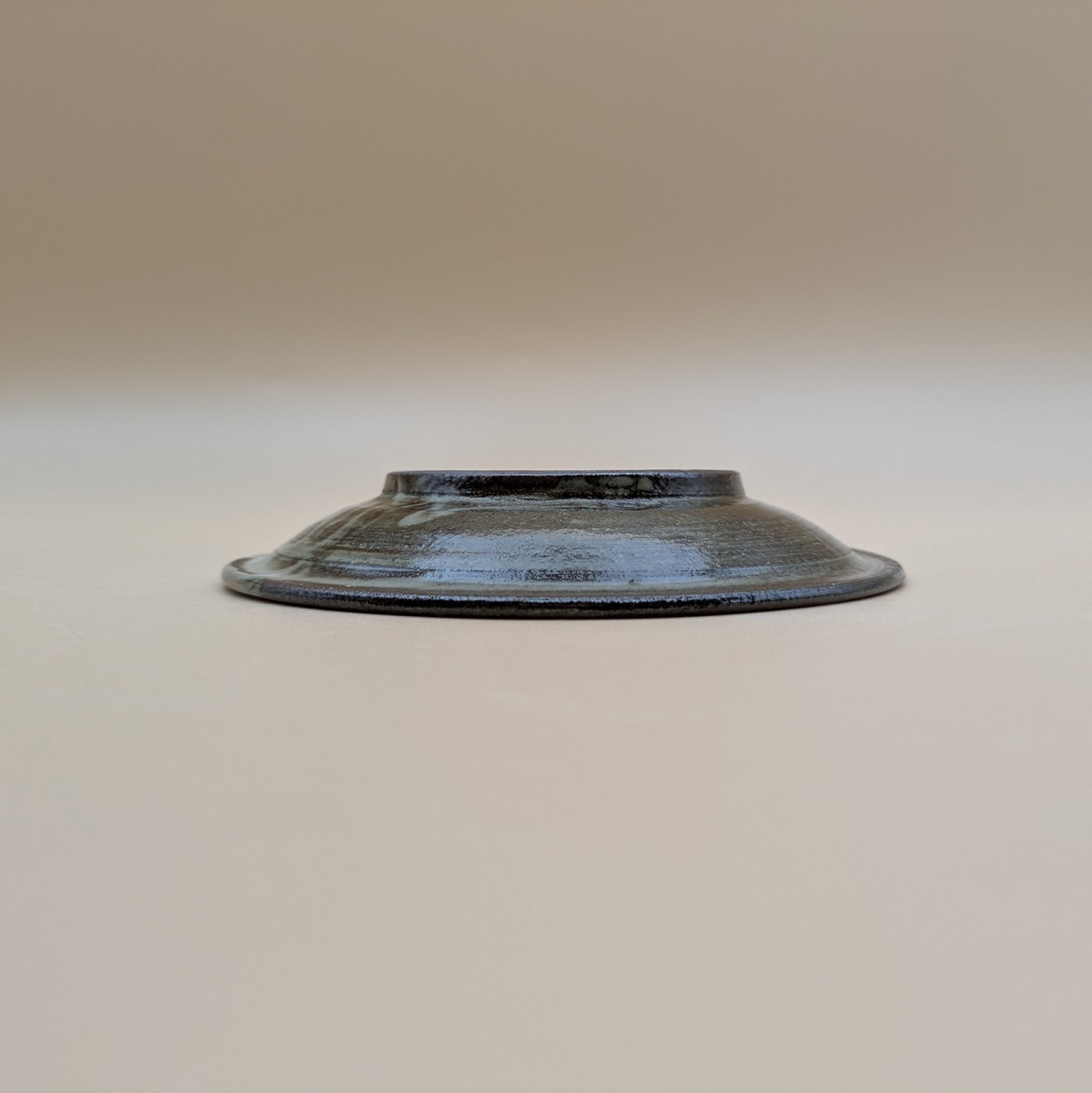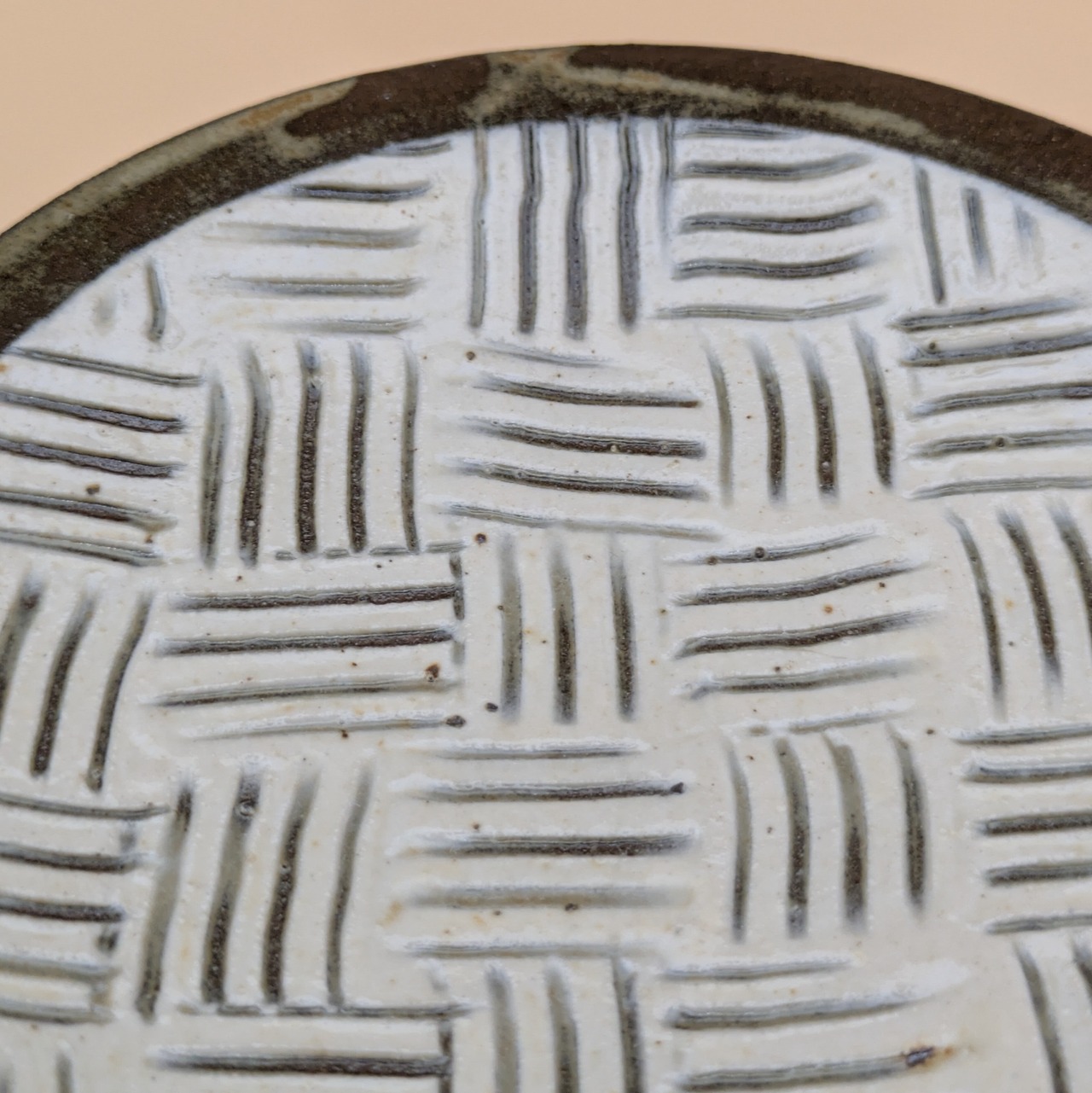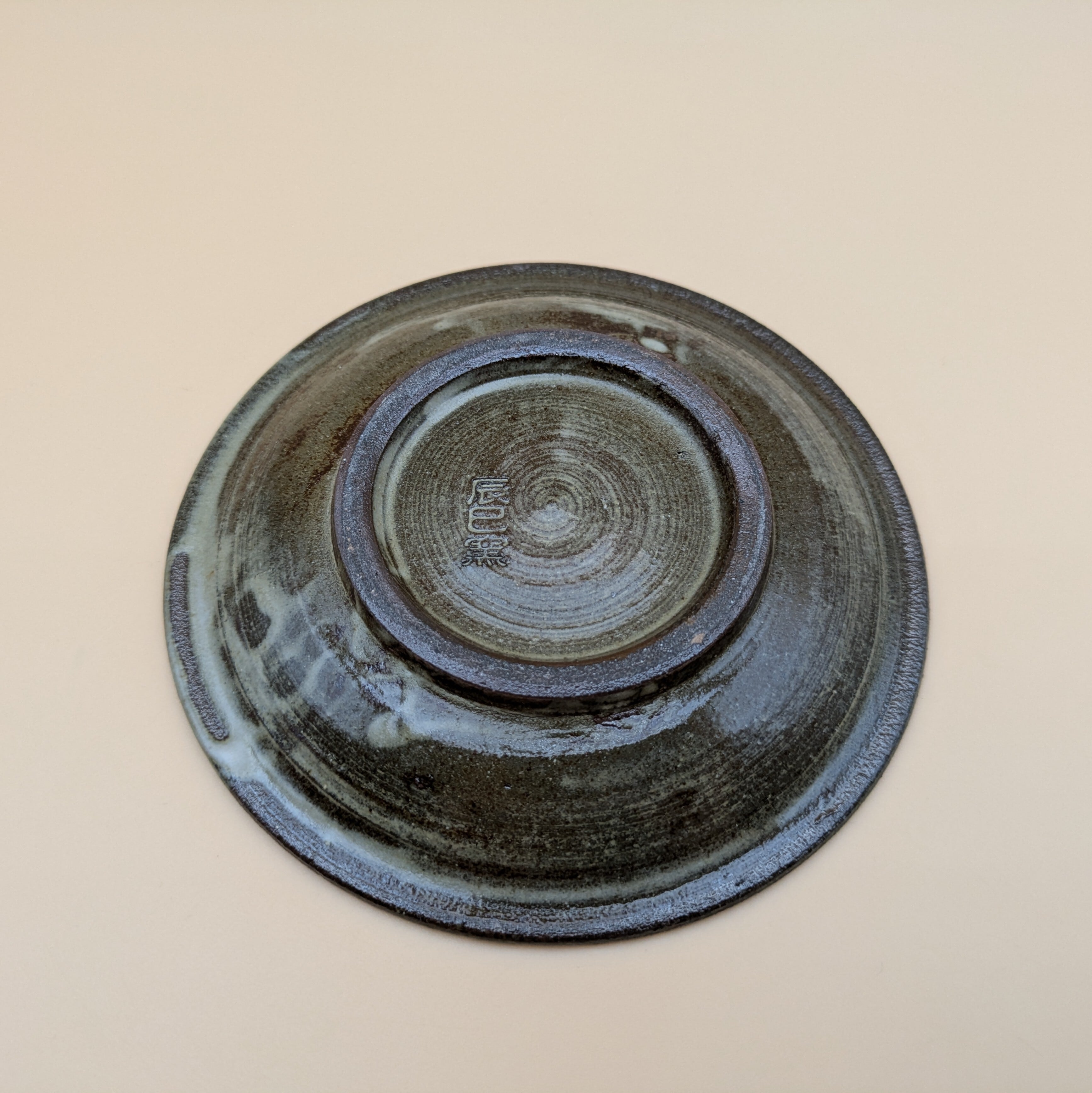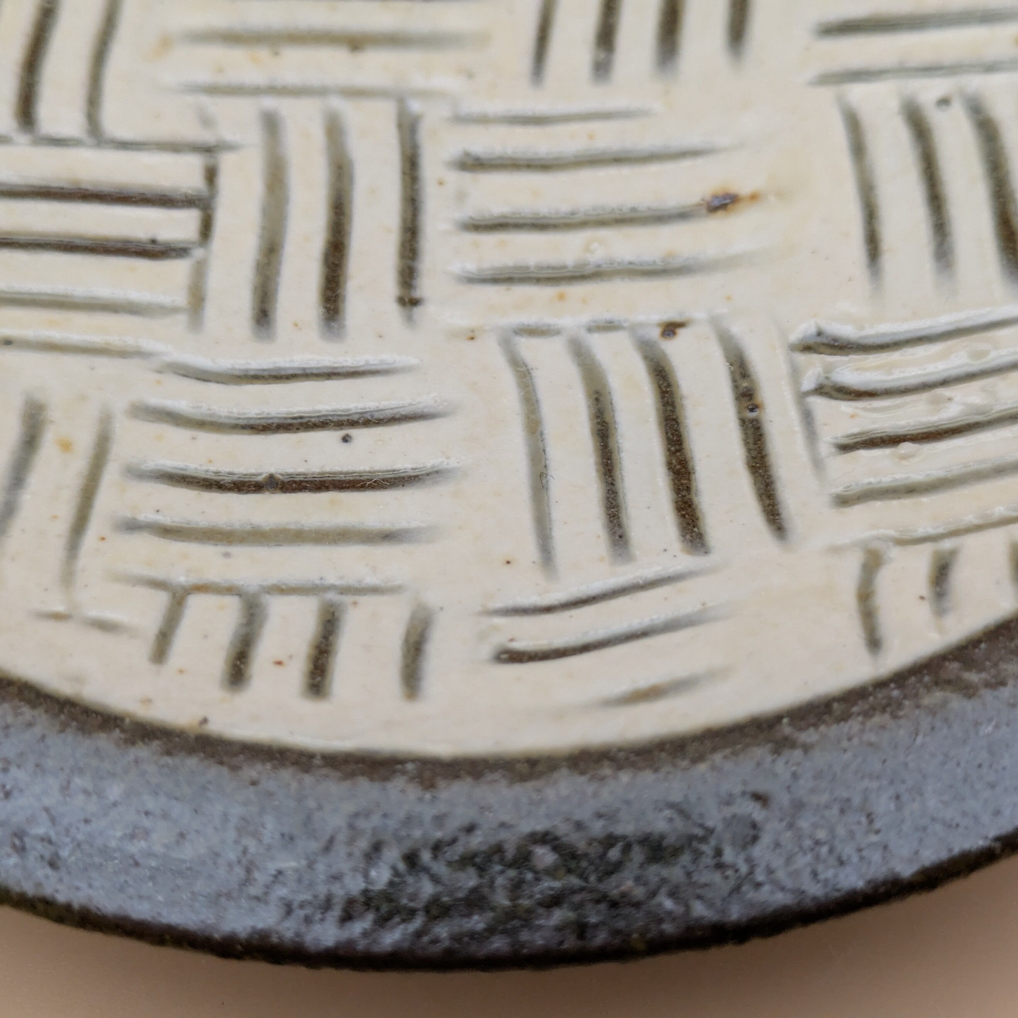 平皿4寸 小石原焼(白釉・黒縁・三本櫛描き02) 直径12.6cm 高さ2cm 重量169g