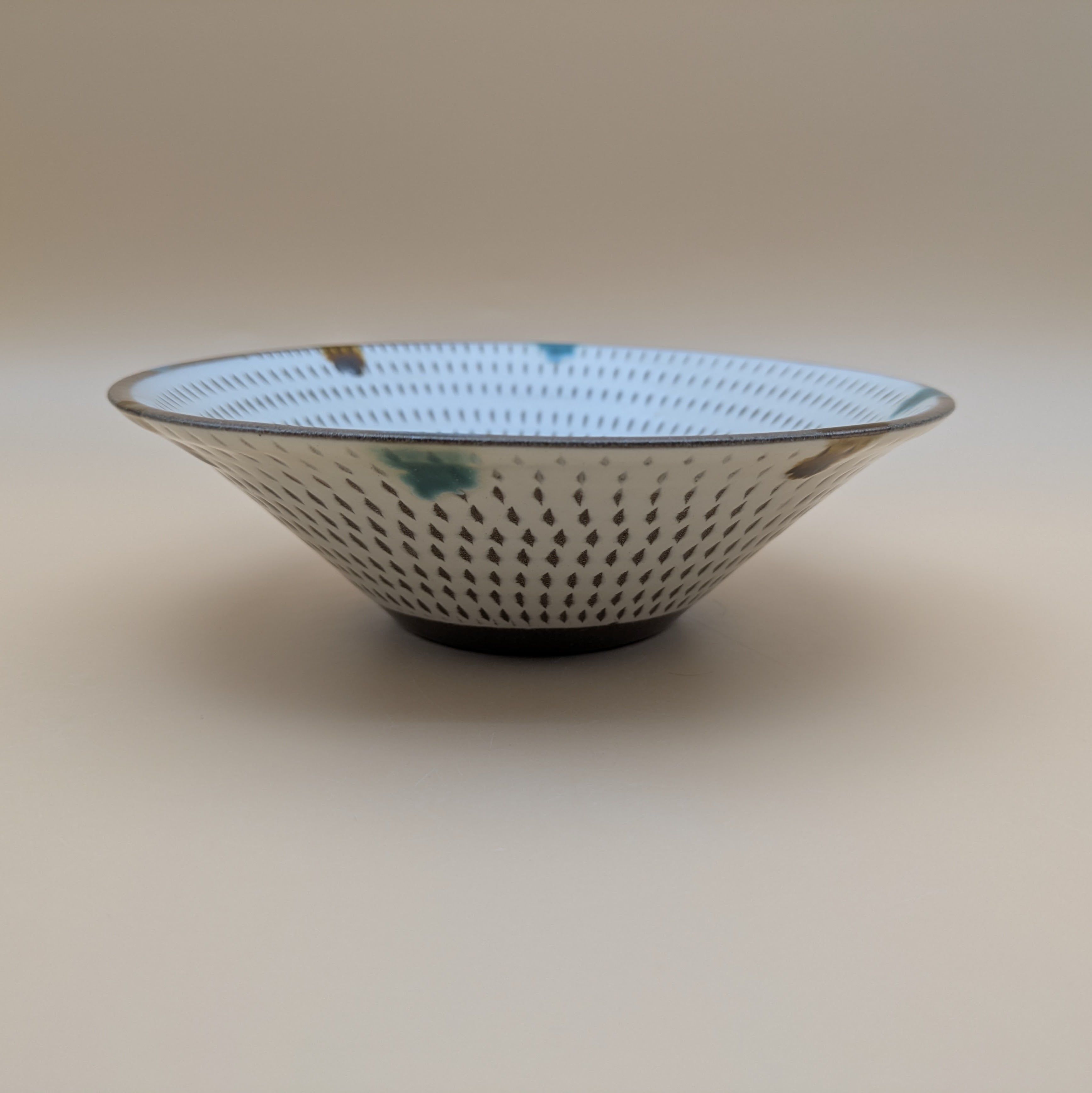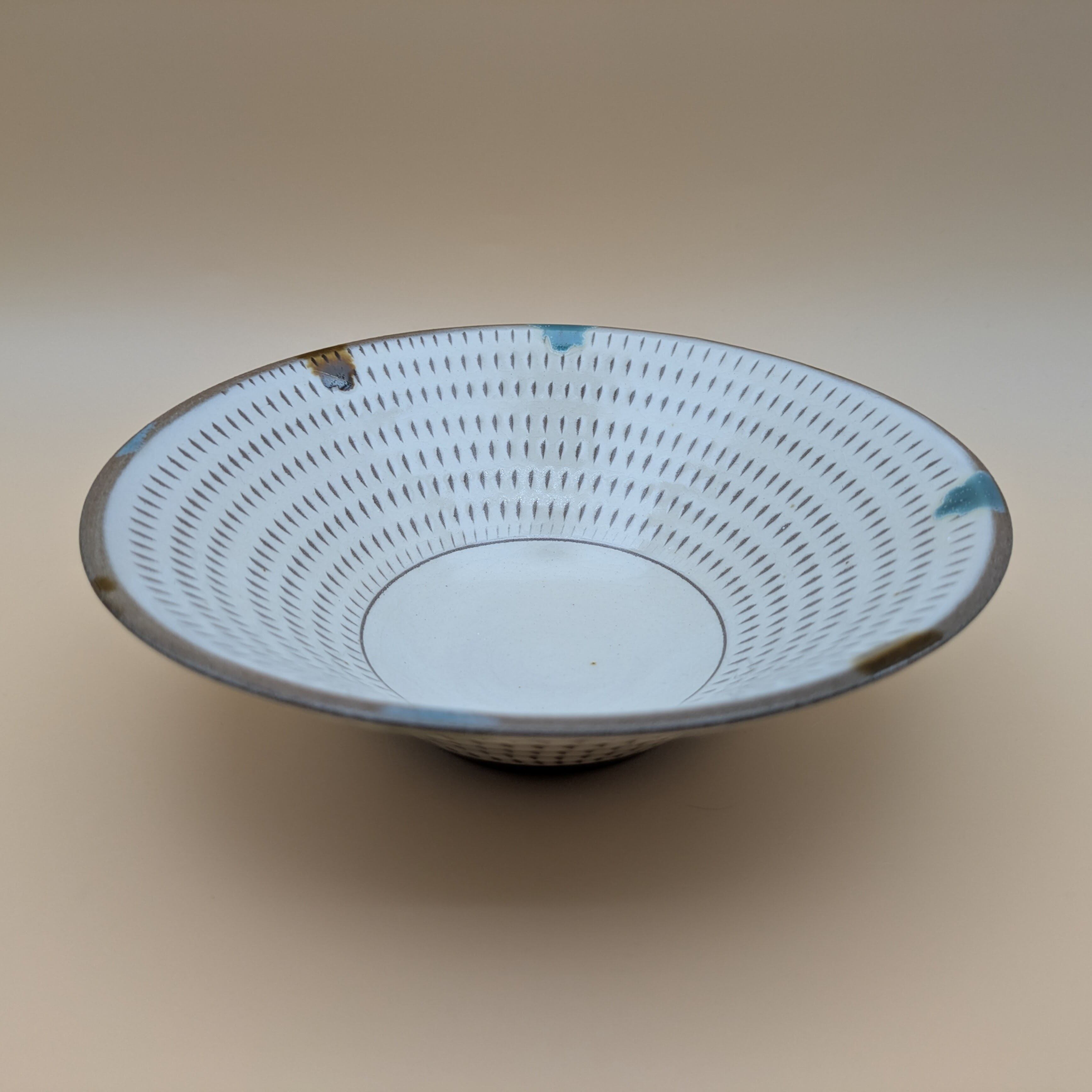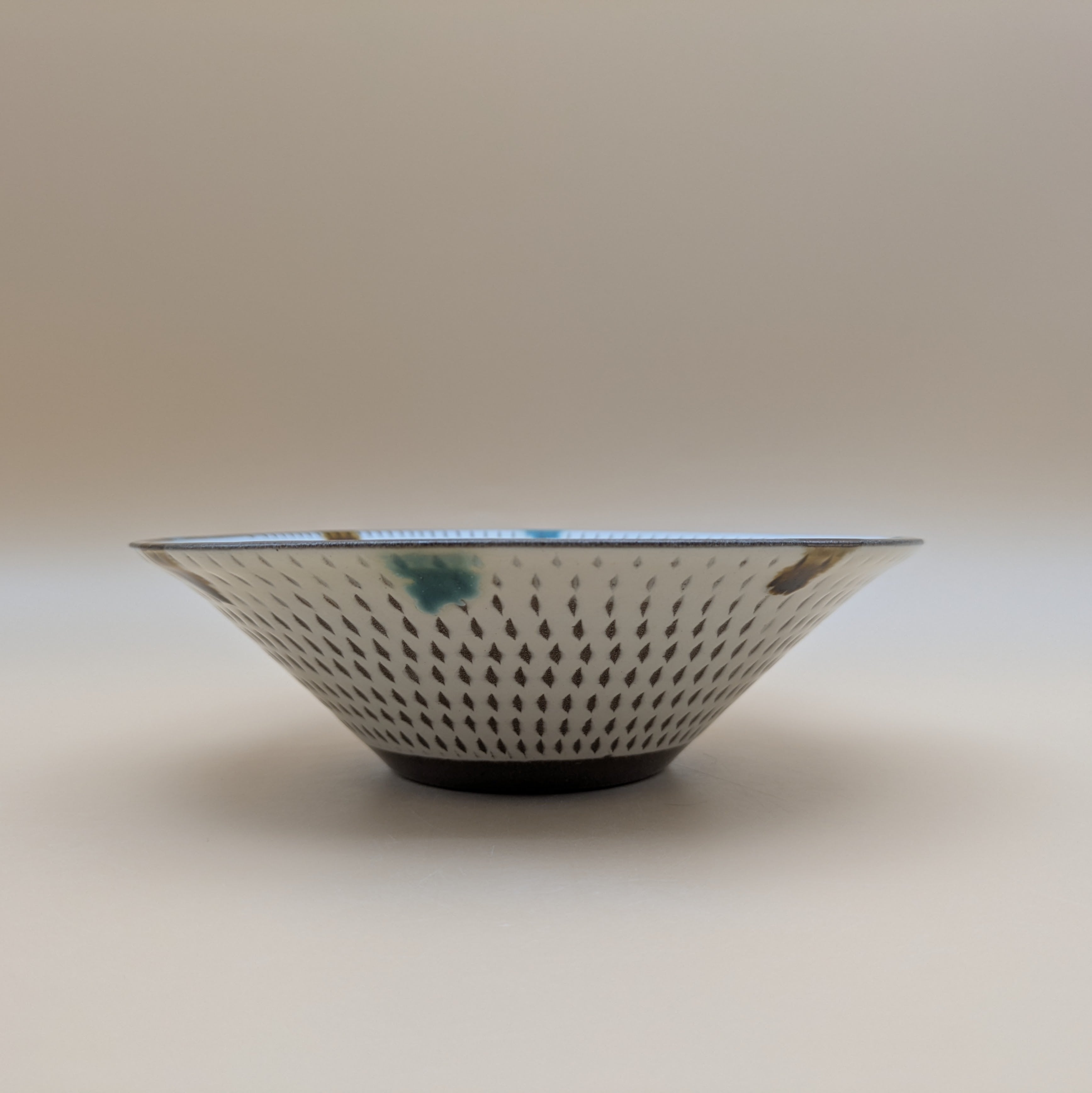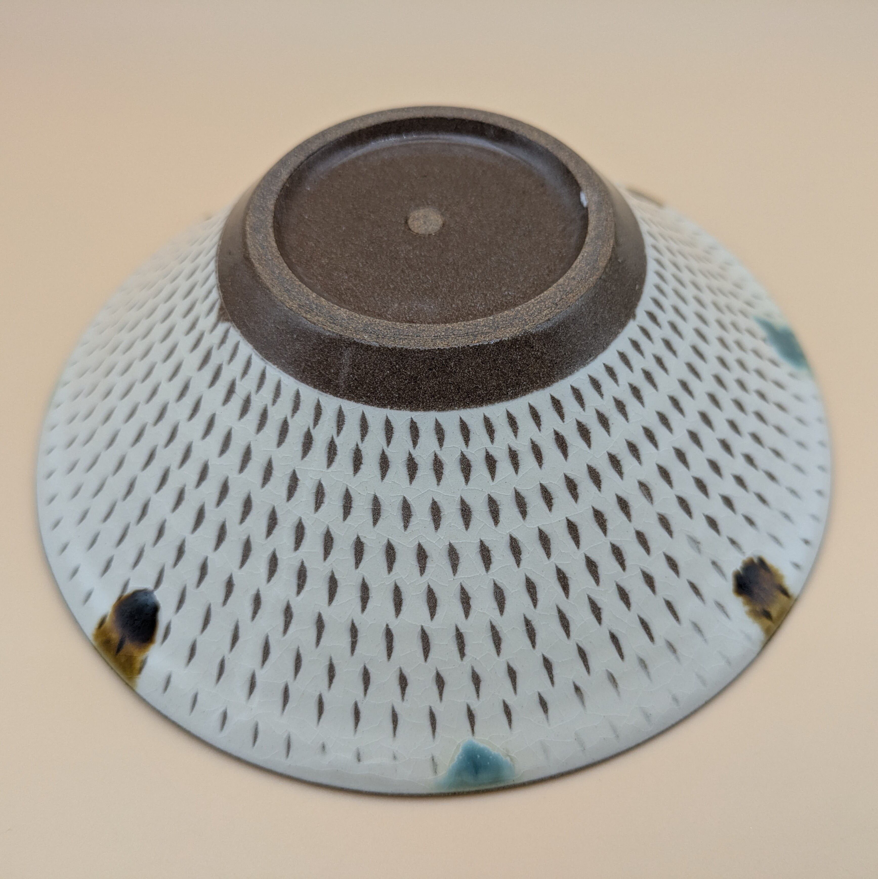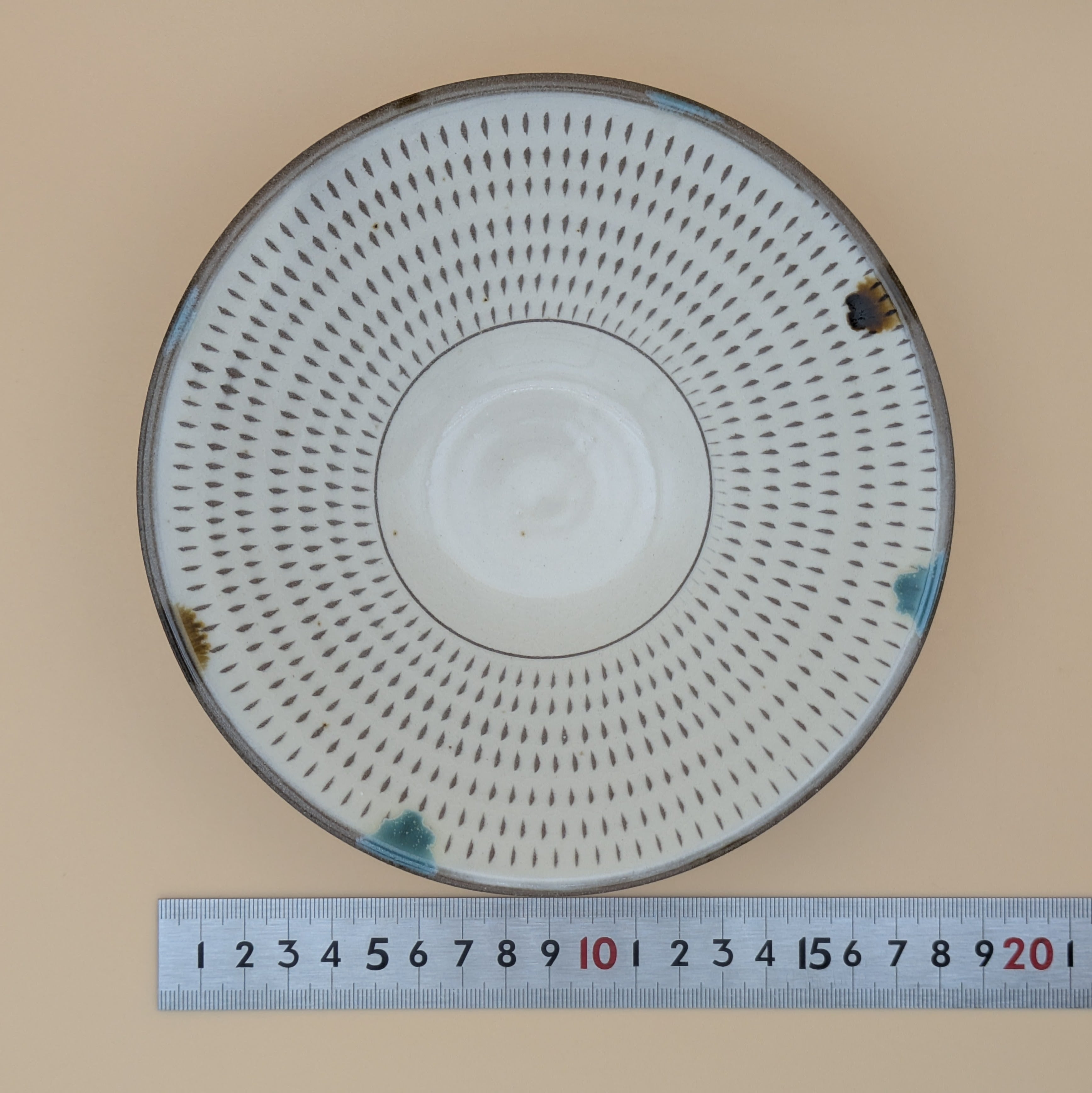深皿5.5寸 小石原焼(白釉・二彩・両面飛び鉋) 直径17cm 高さ5.6cm 重量255g