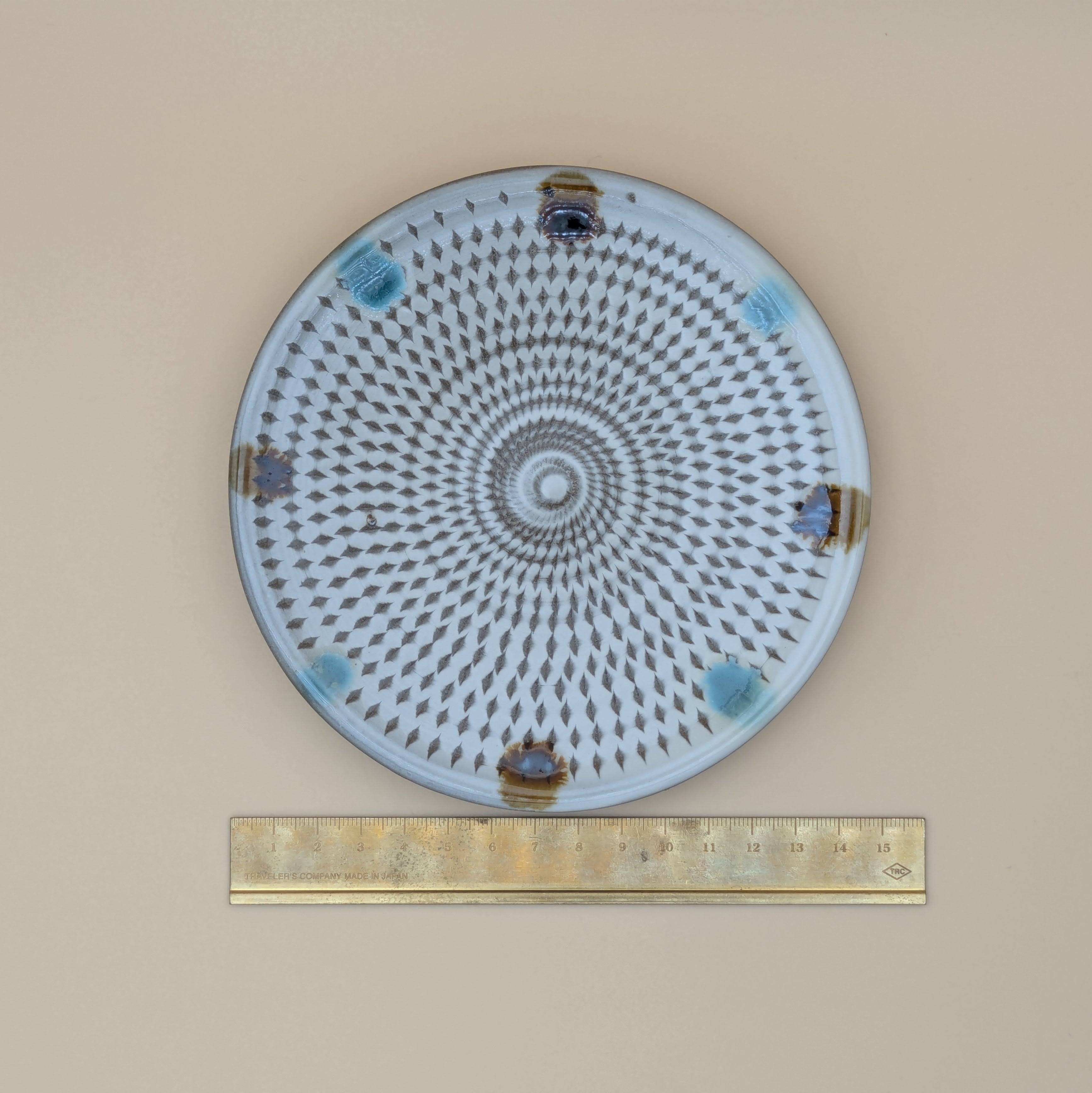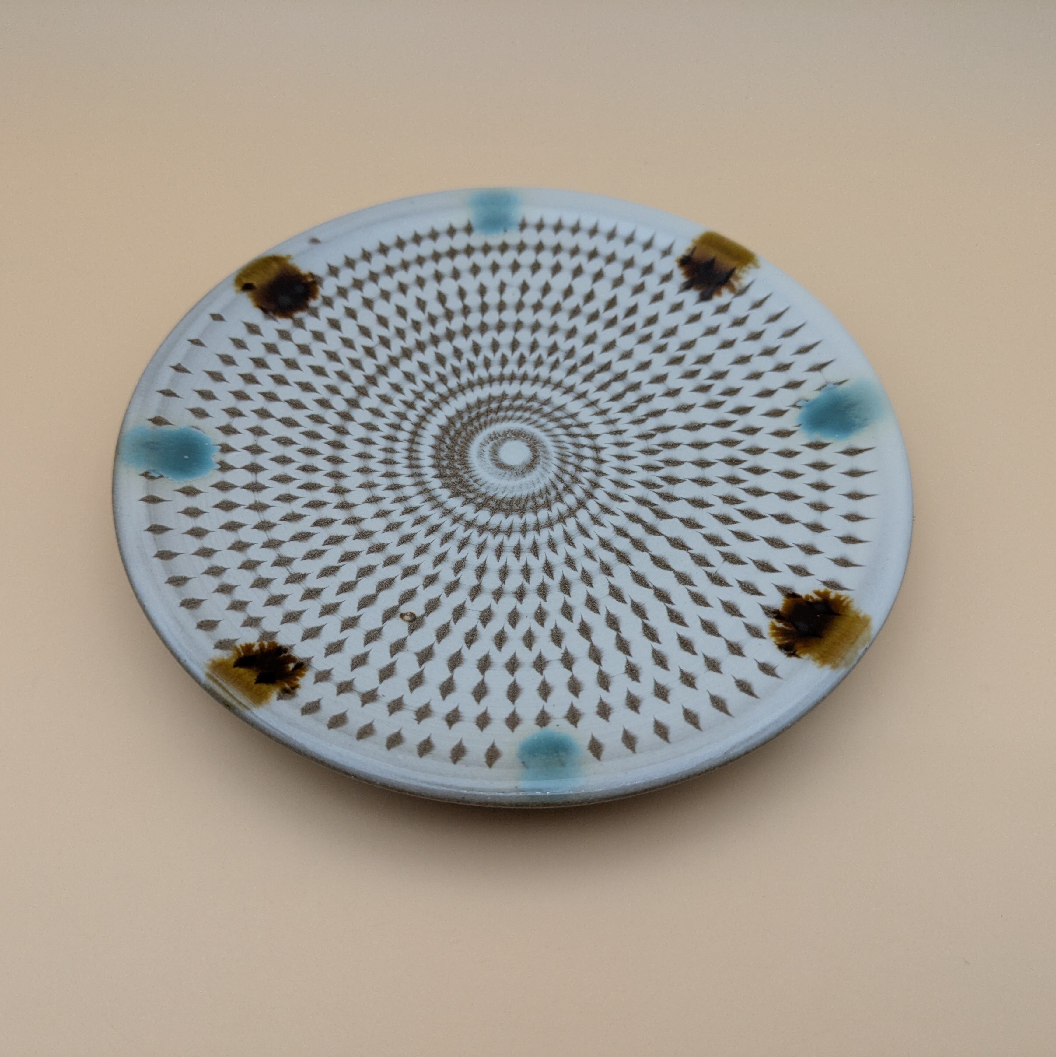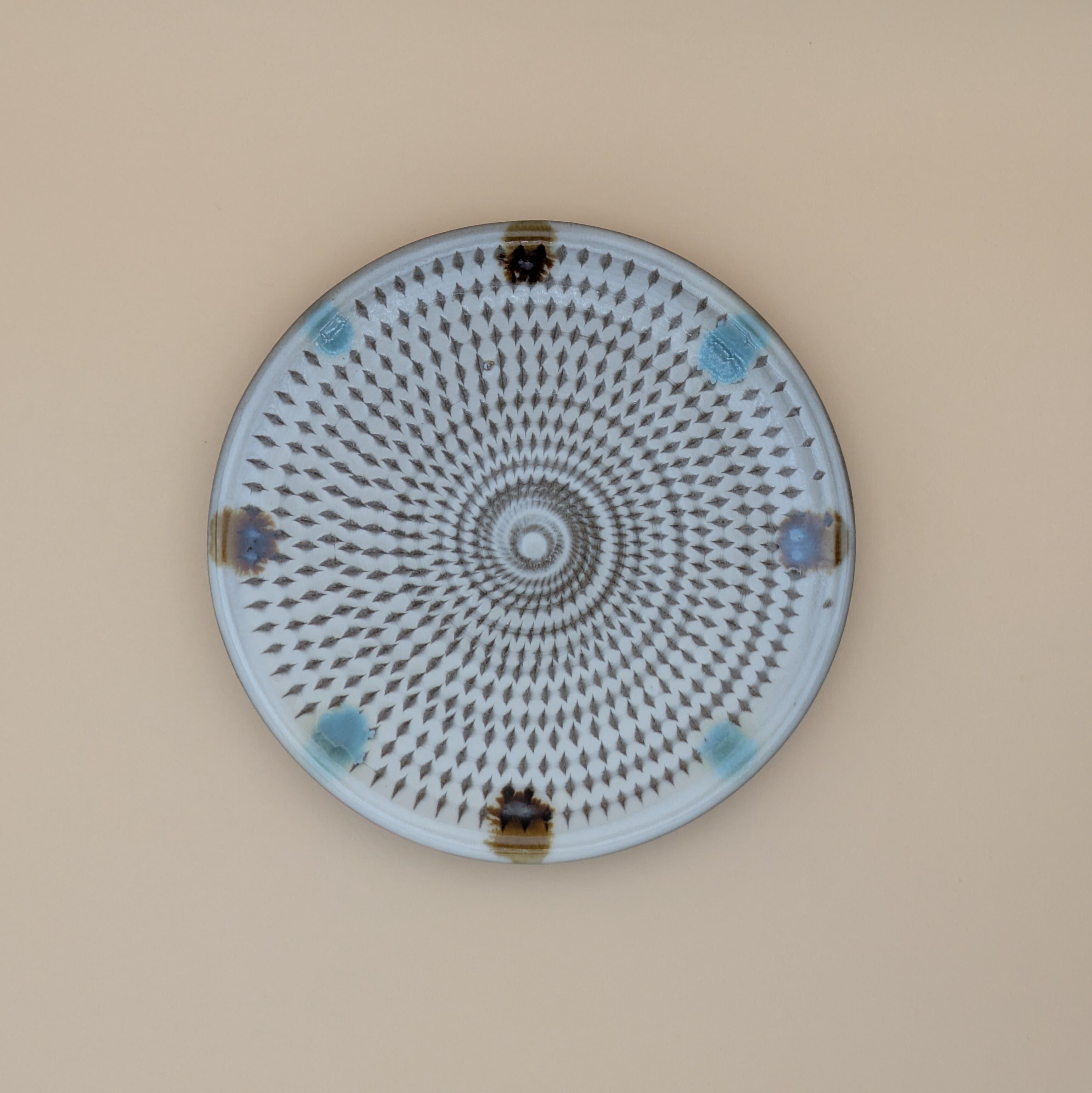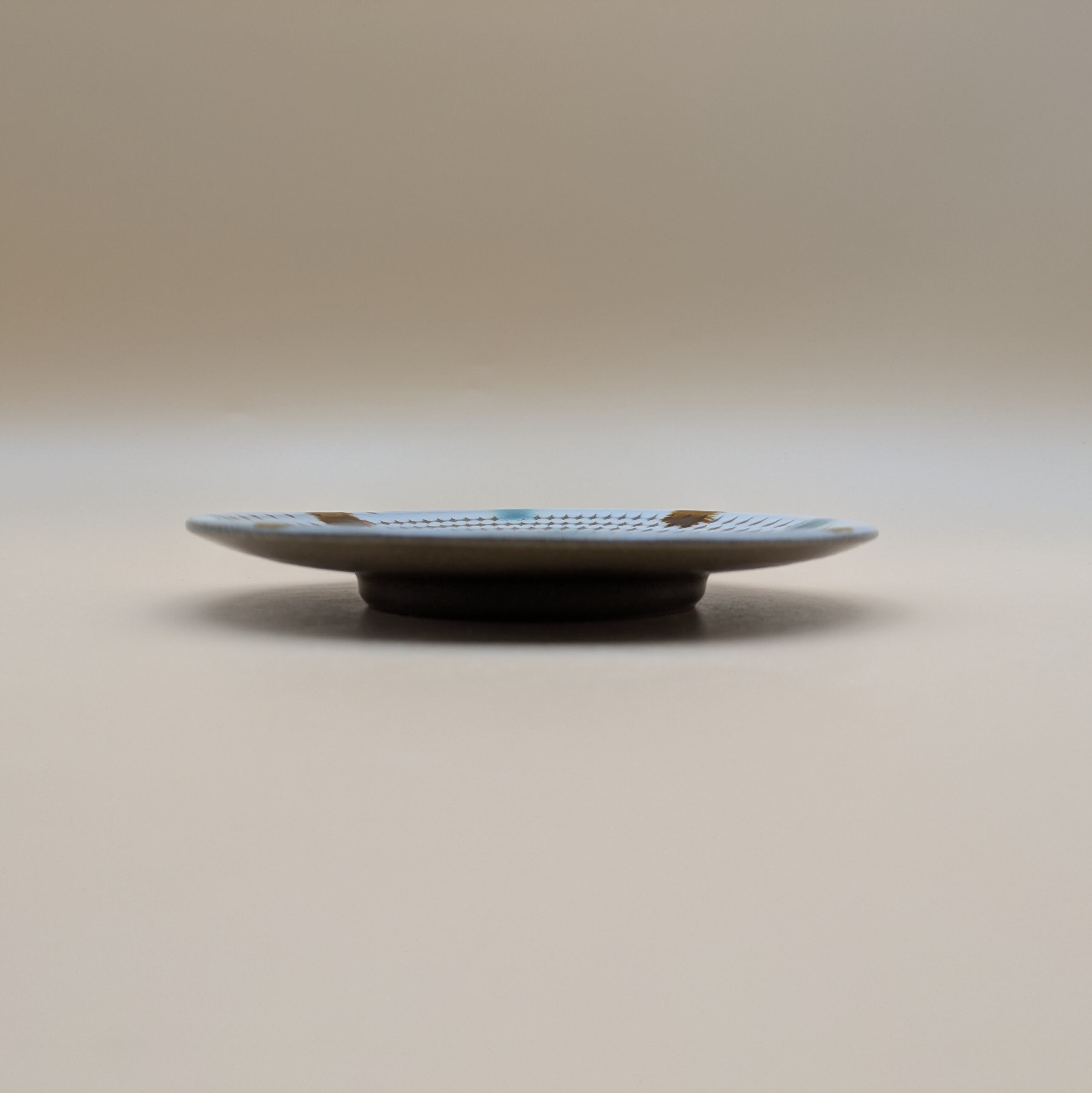 平皿4.5寸 小石原焼(白釉・二彩・飛び鉋) 直径14.4cm 高さ2cm 重量195g