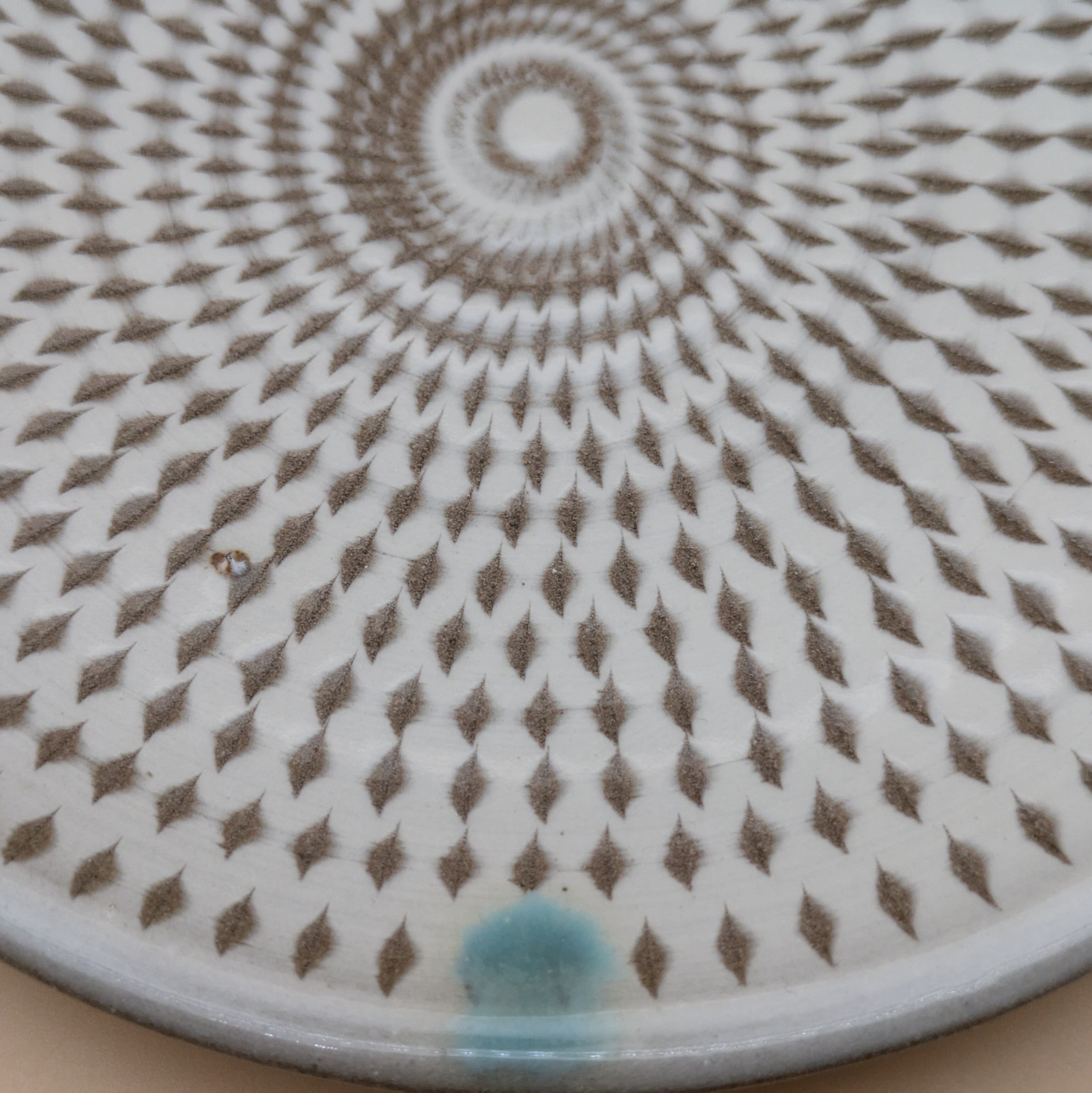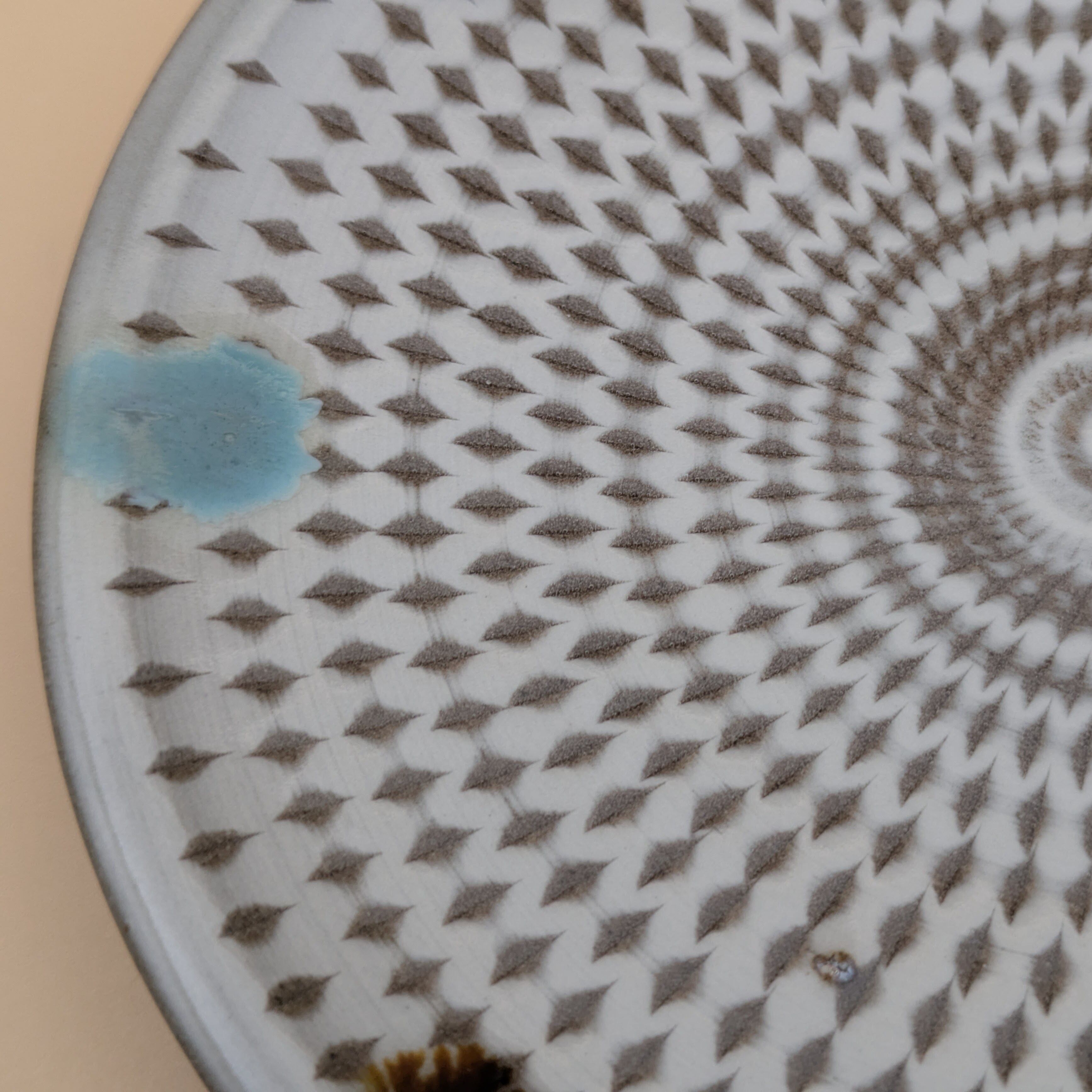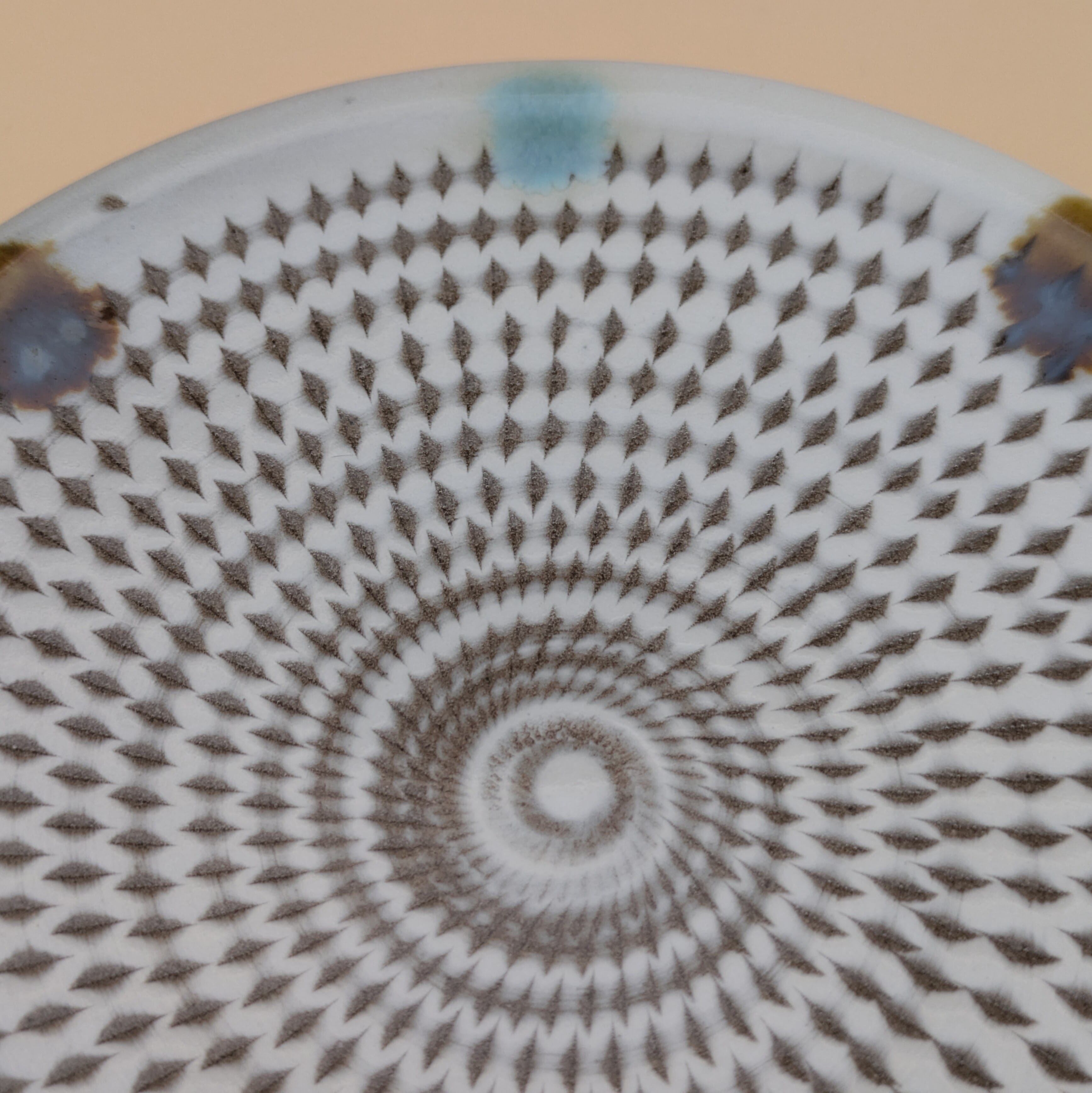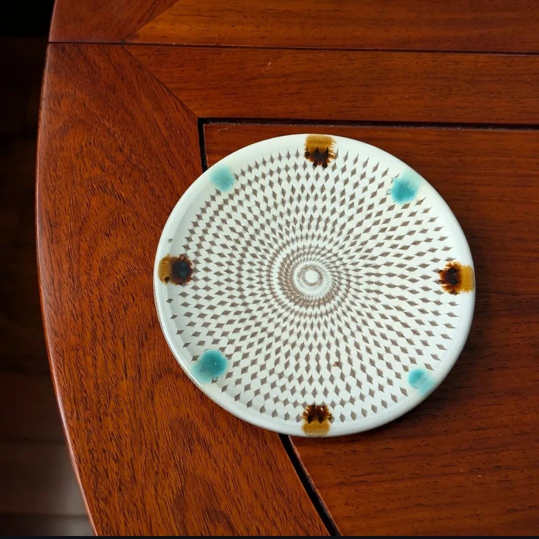 平皿4.5寸 小石原焼(白釉・二彩・飛び鉋) 直径14.4cm 高さ2cm 重量195g