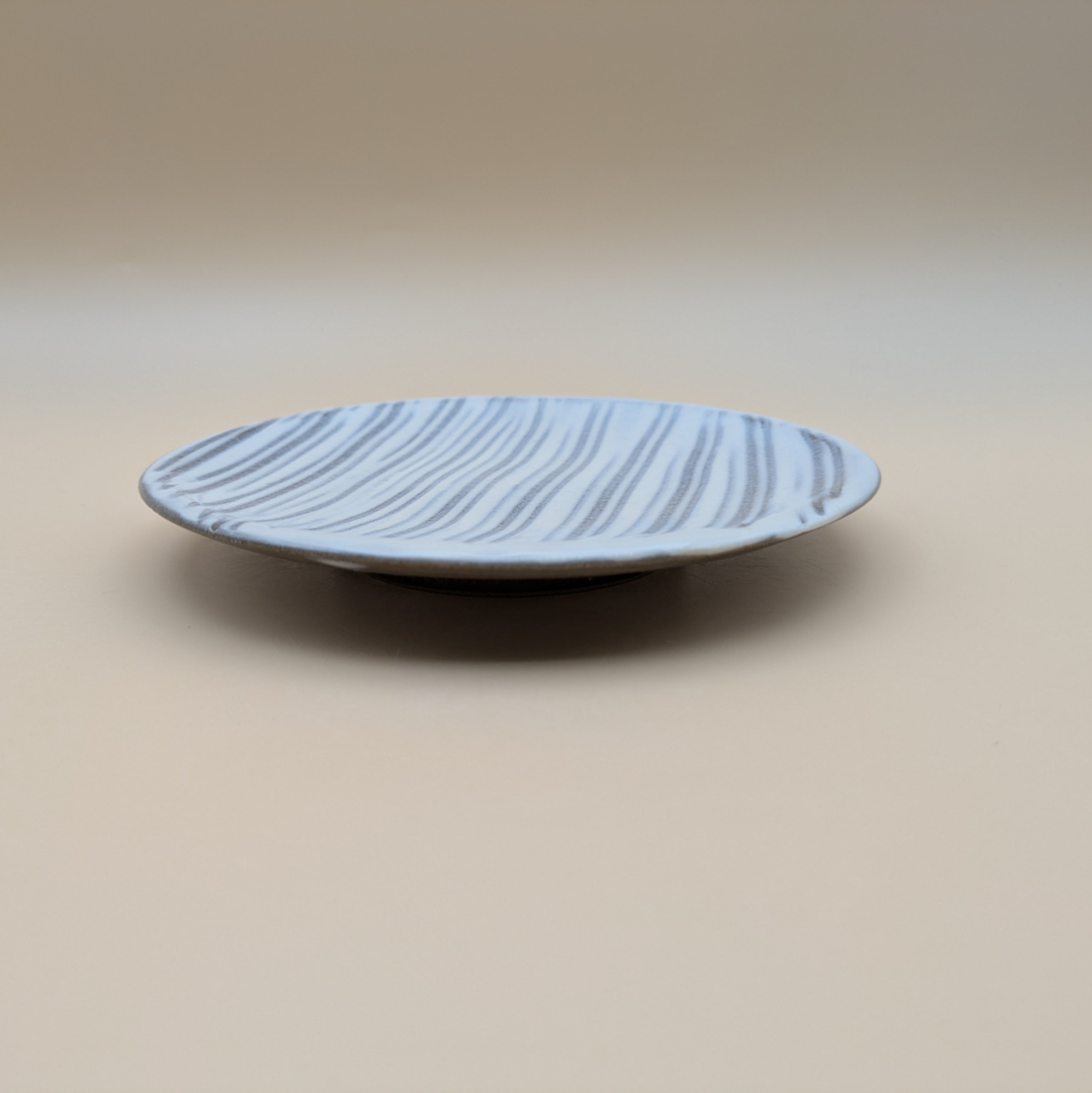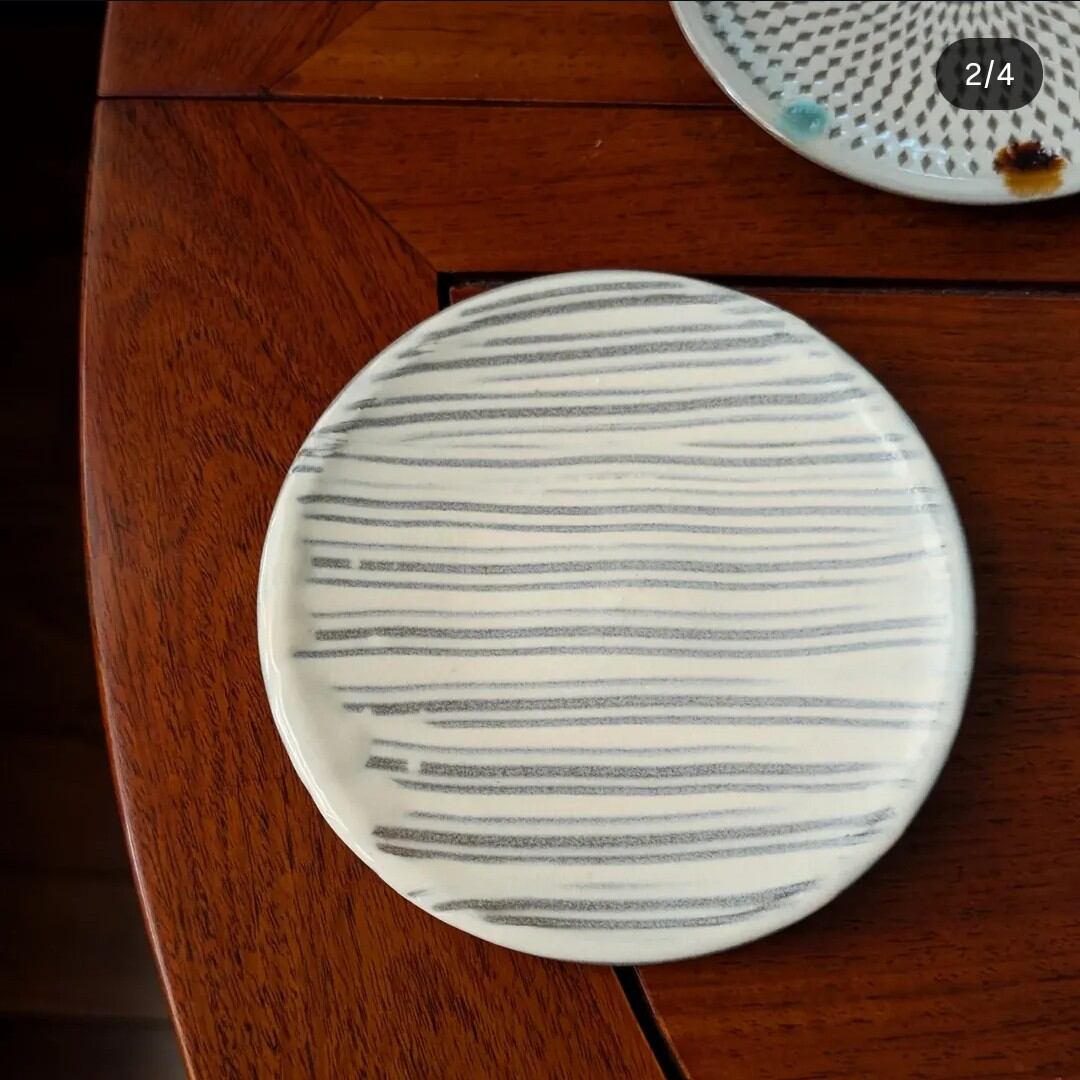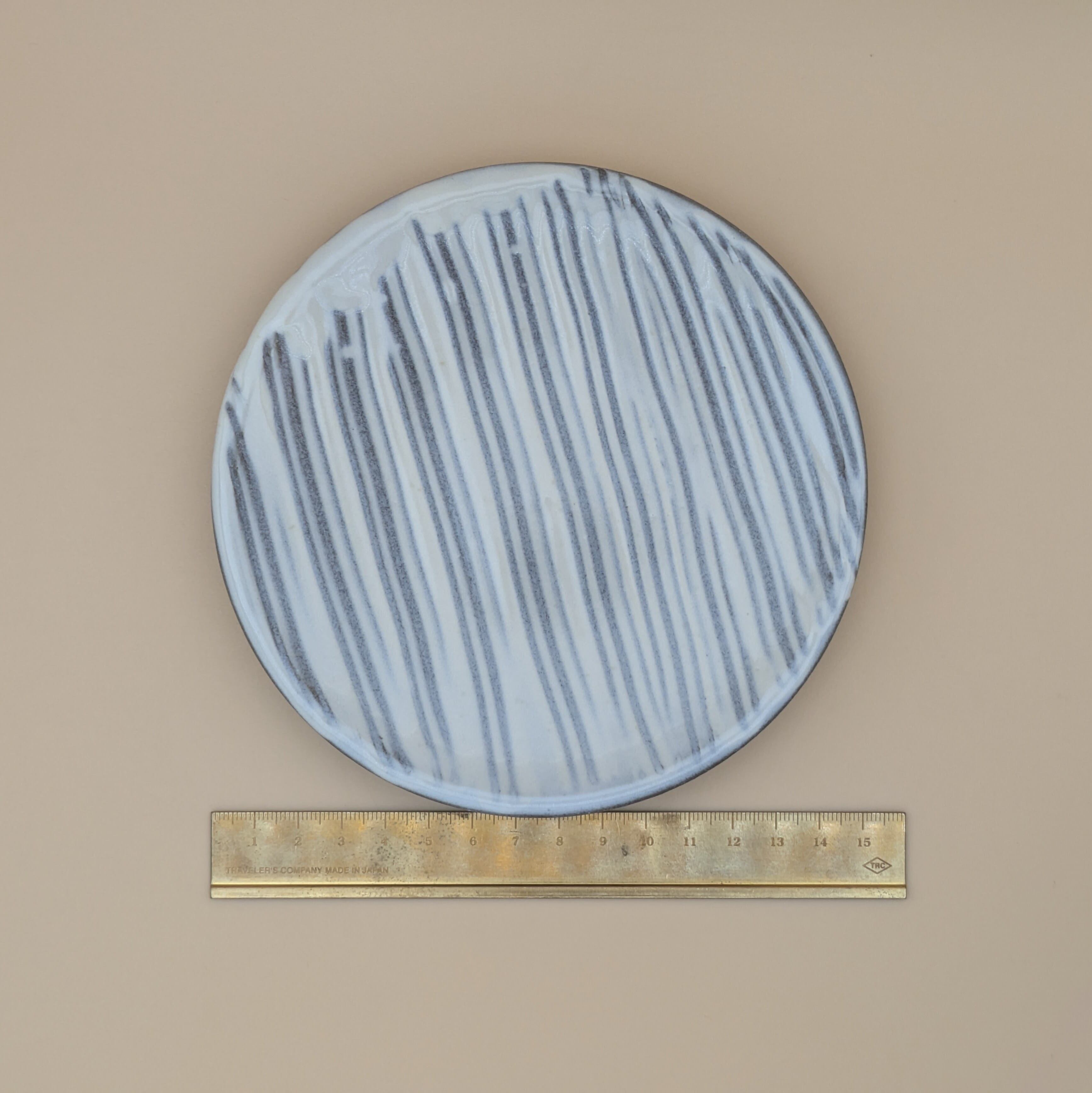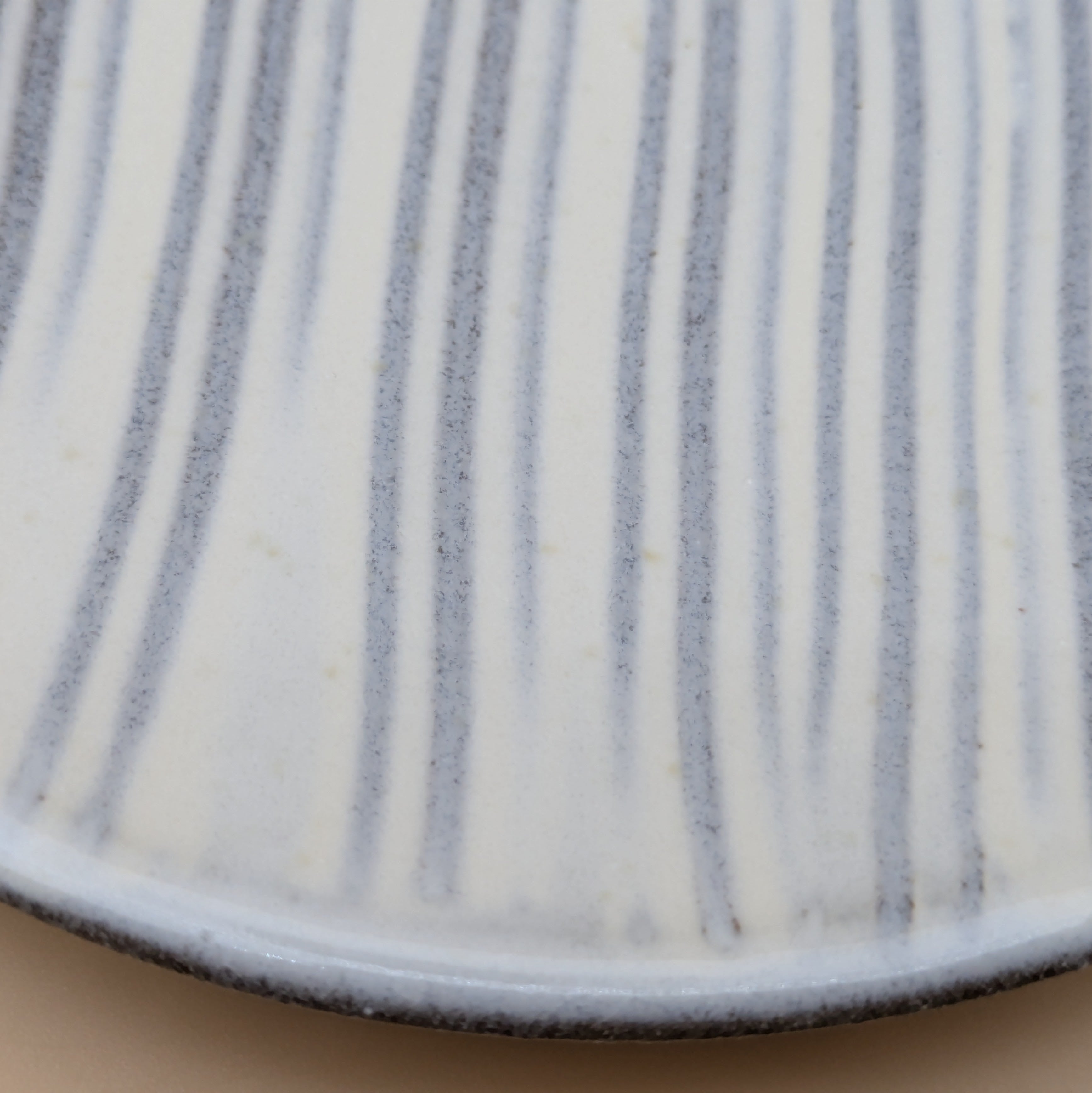 平皿4.5寸 小石原焼(白釉・三線描き01) 直径14.7cm 高さ2cm 重量207g