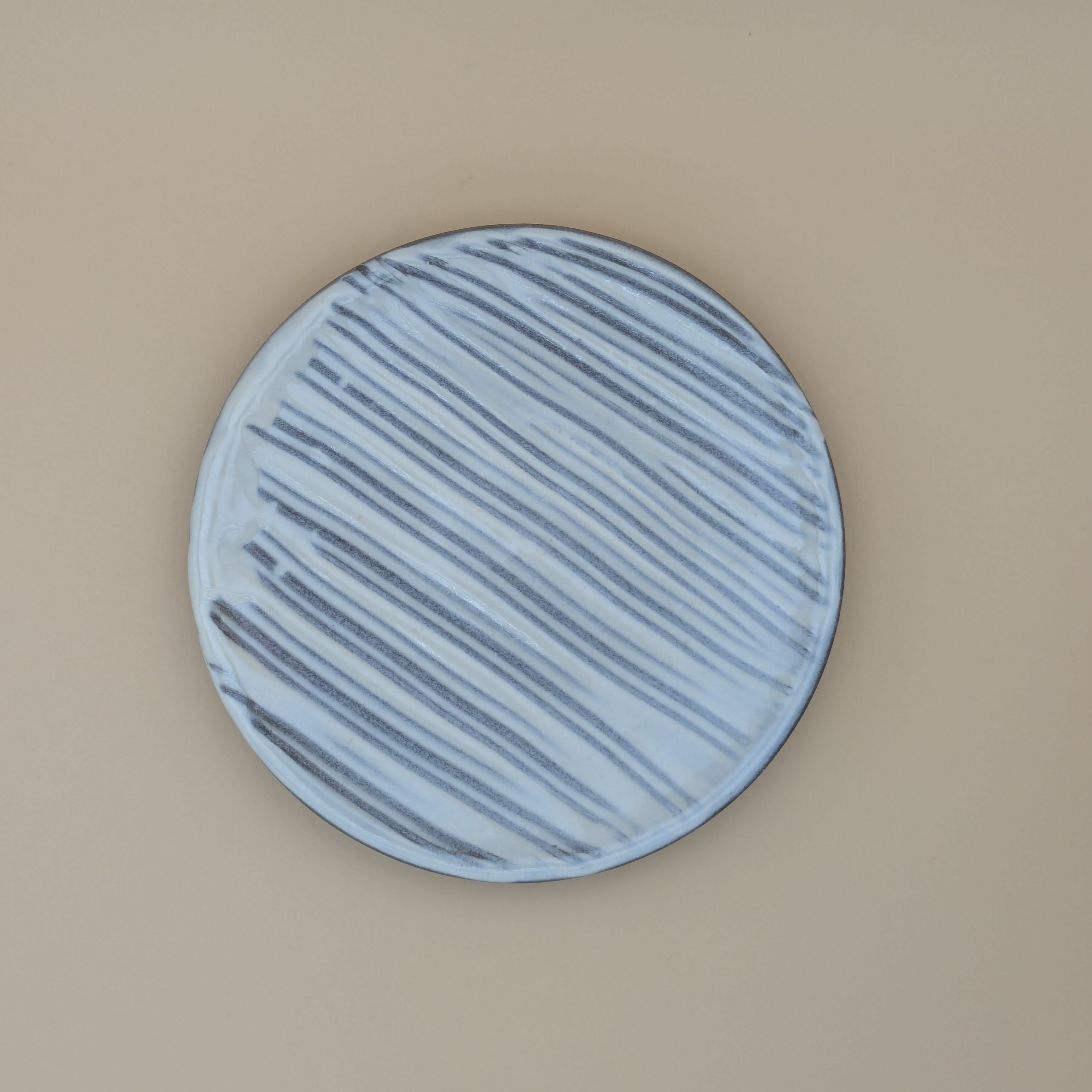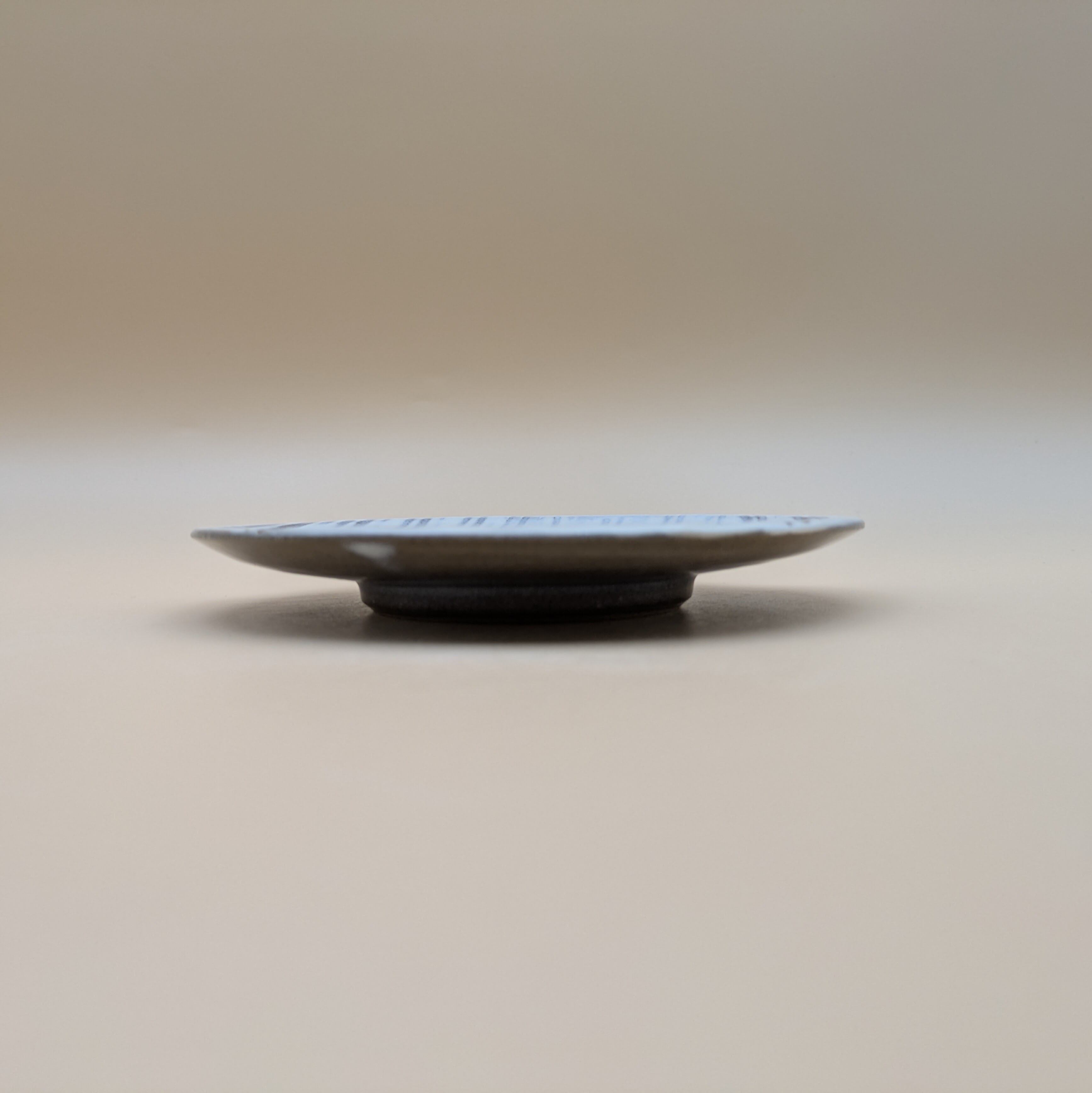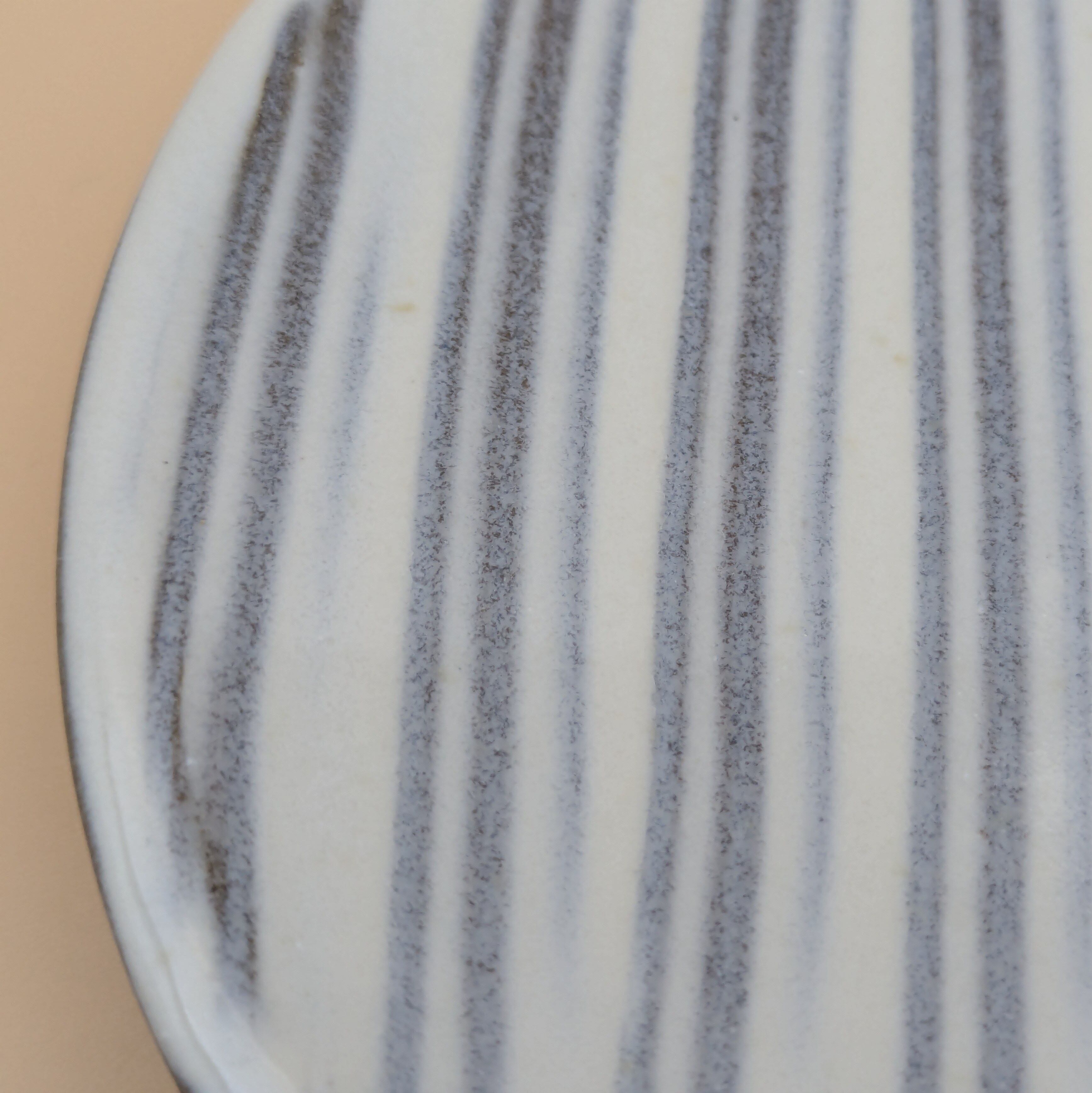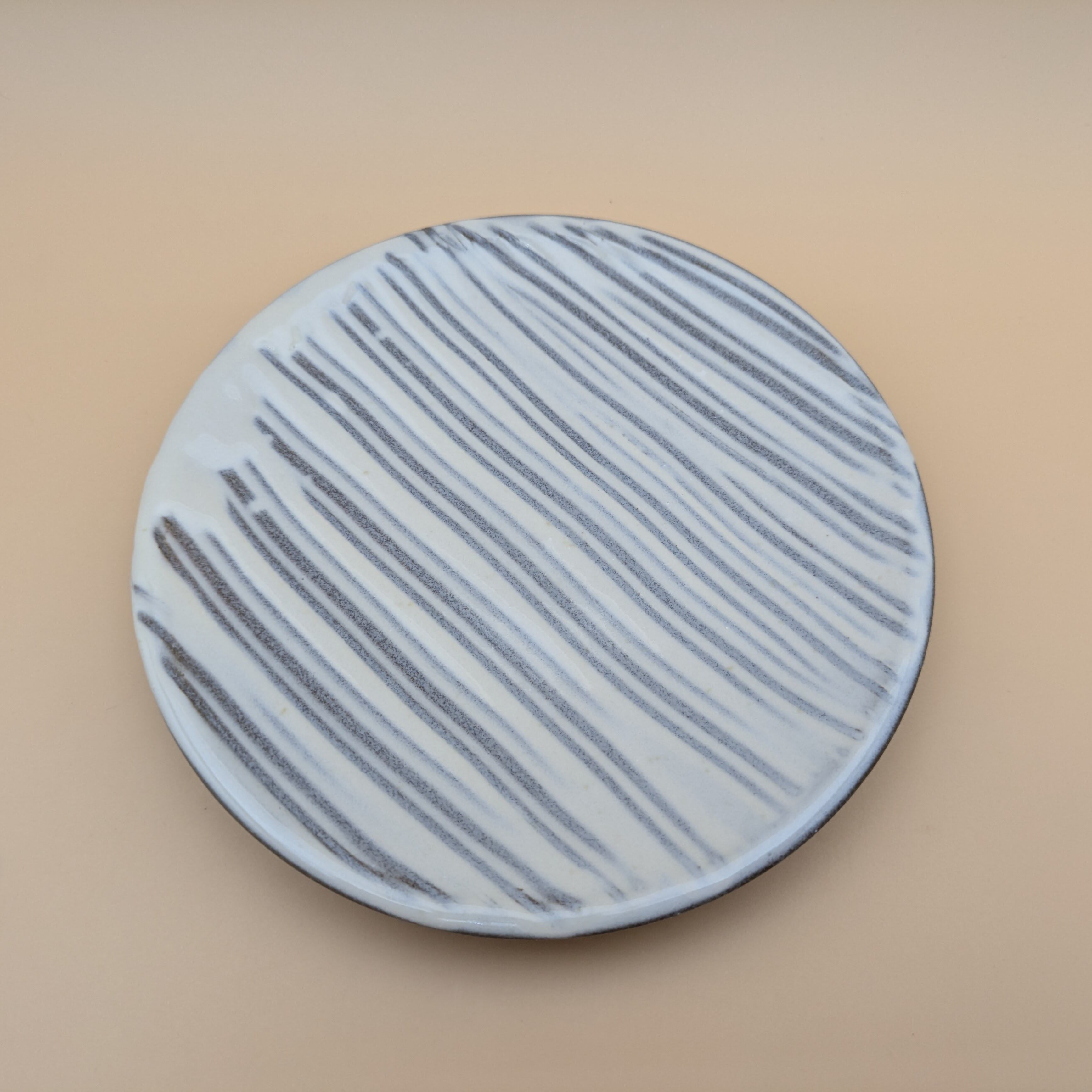 平皿4.5寸 小石原焼(白釉・三線描き01) 直径14.7cm 高さ2cm 重量207g