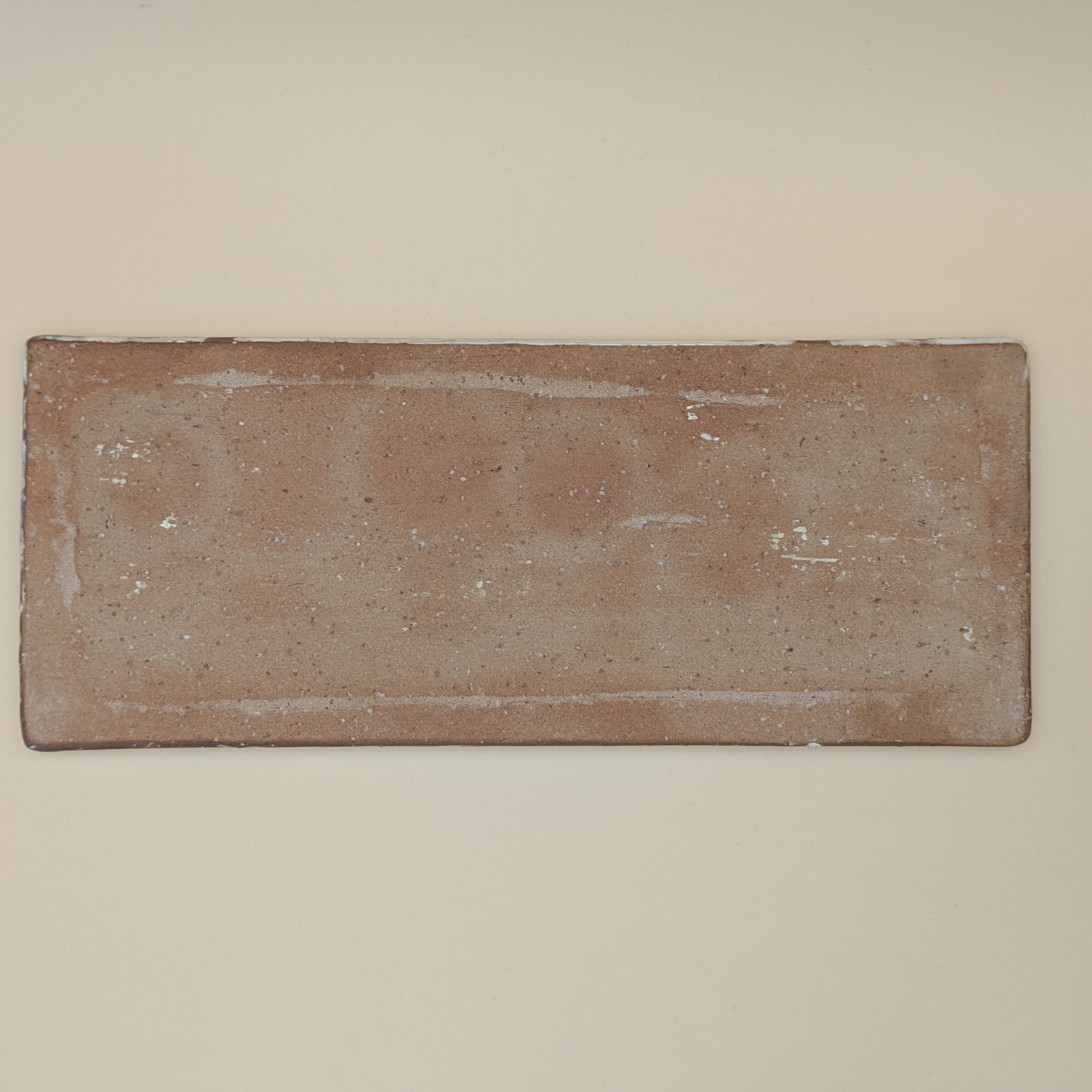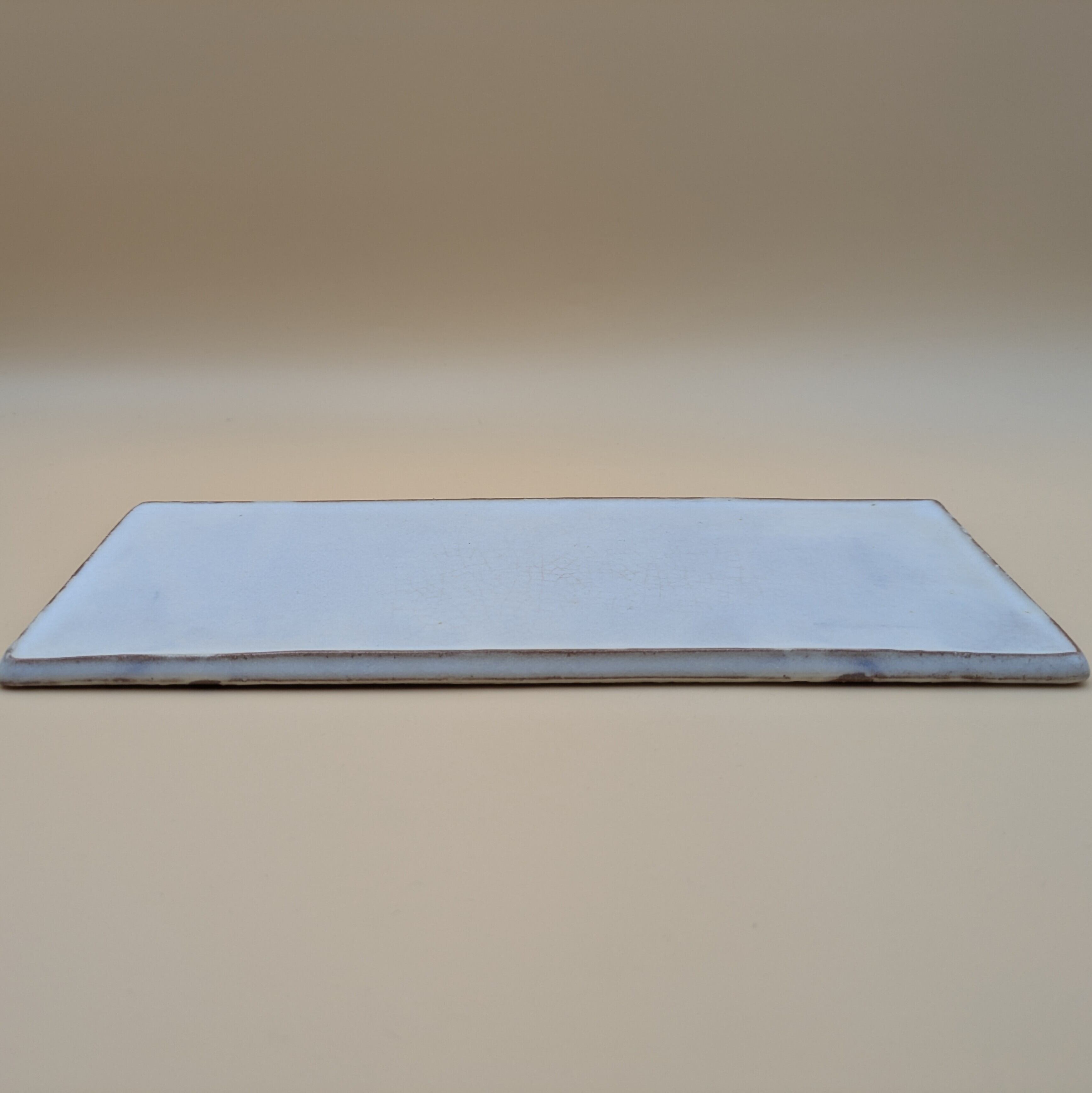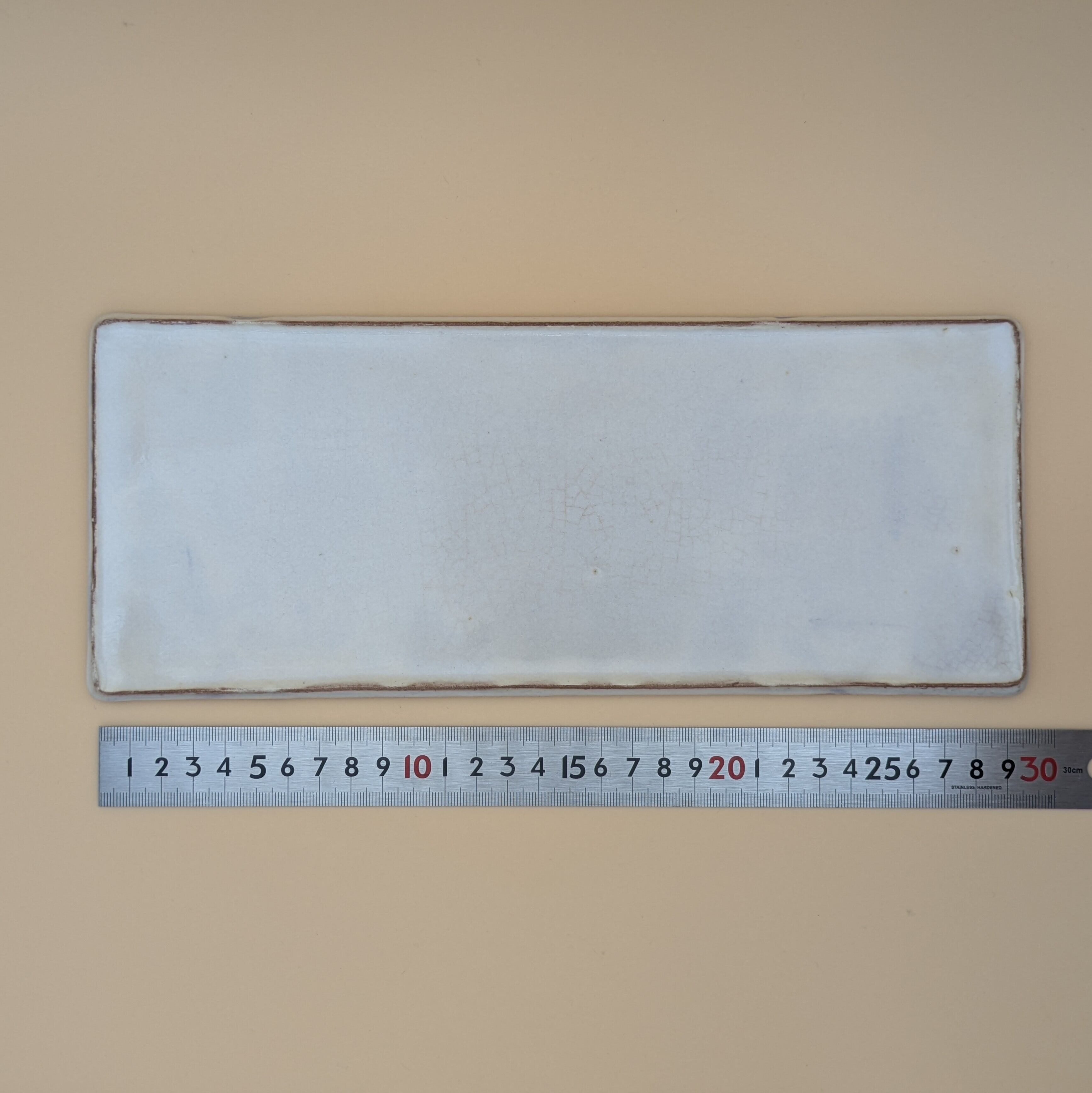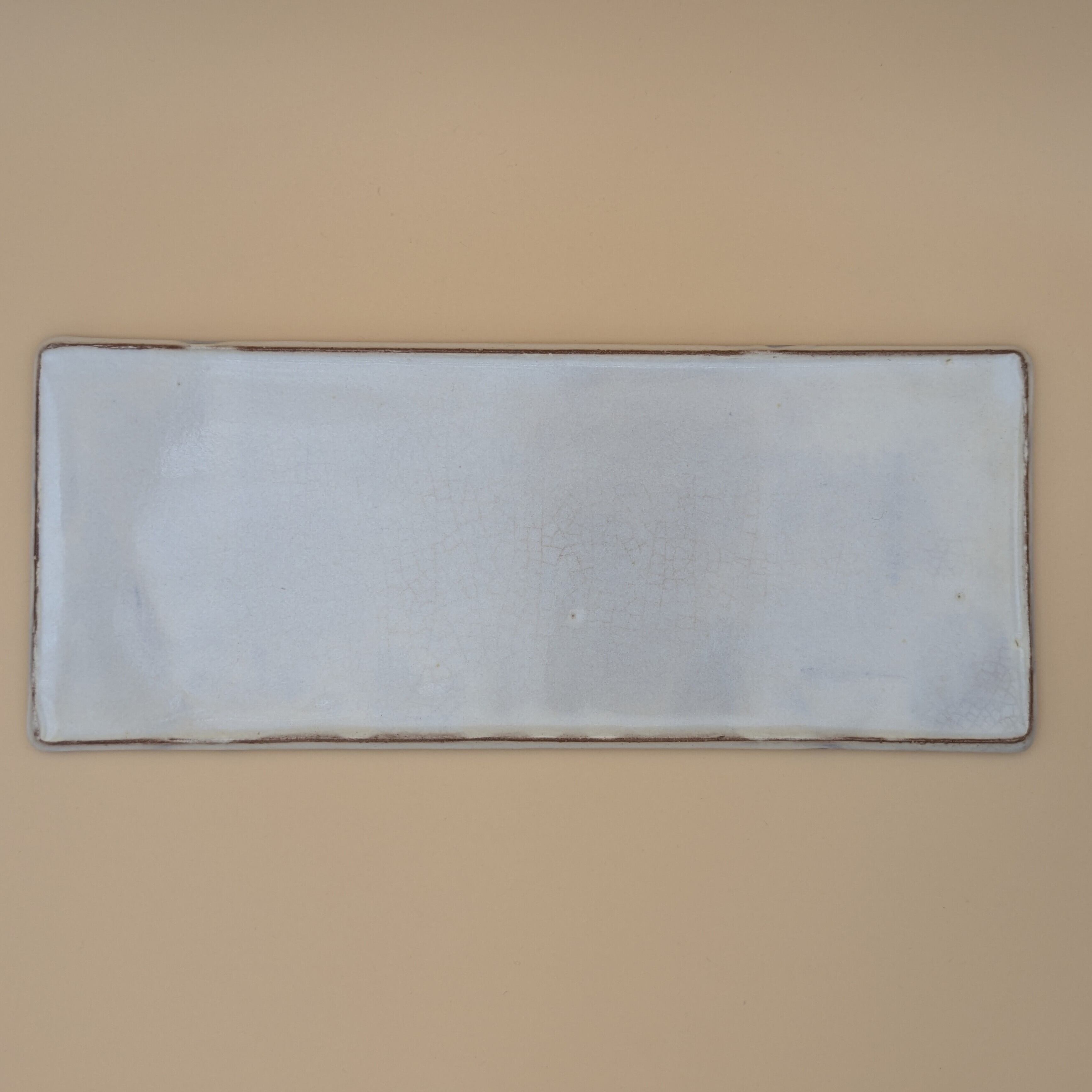 長角皿10寸 萩焼(白釉・茶縁01)横30cm 縦12.2cm 高さ1cm 重量537g