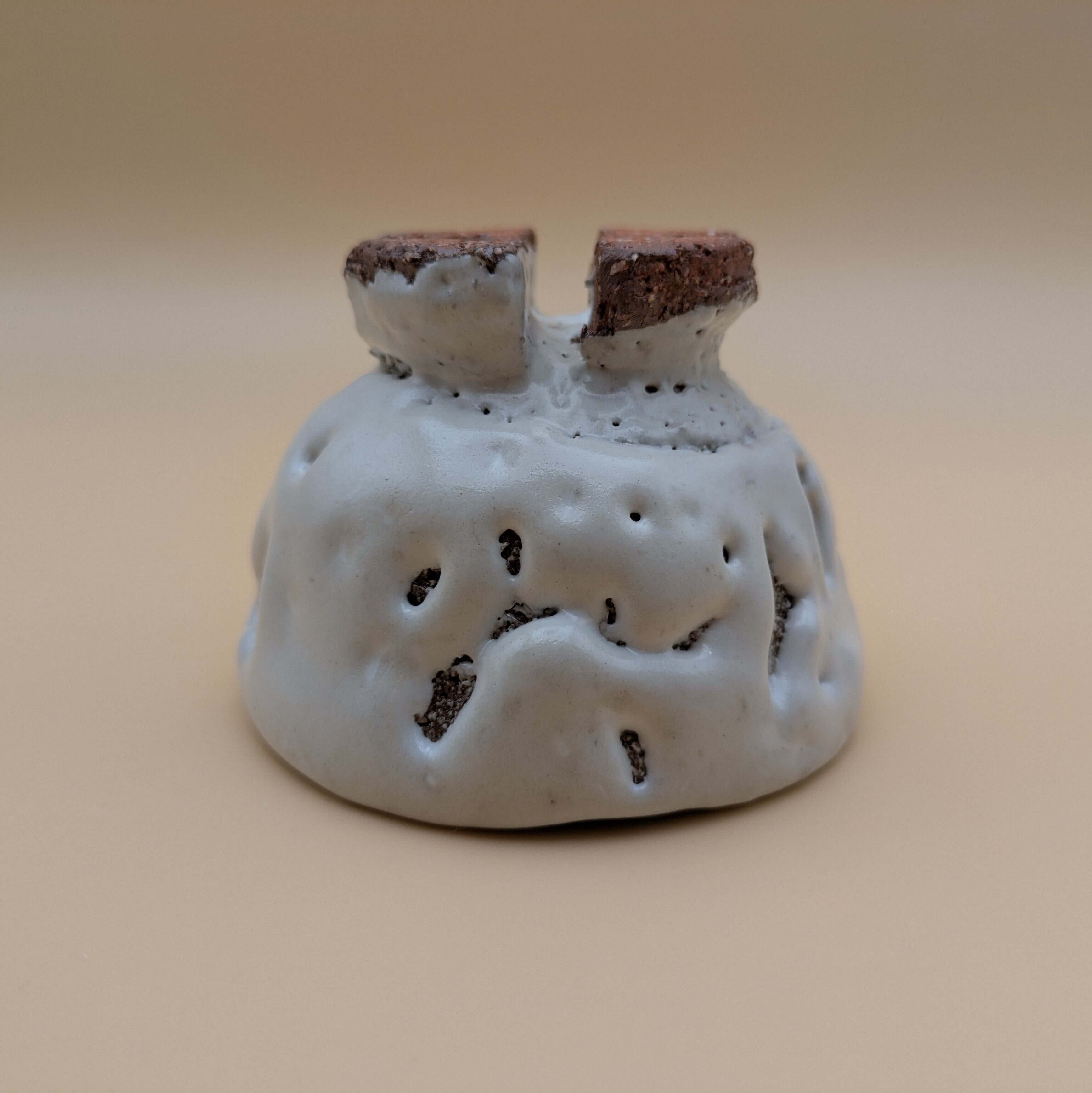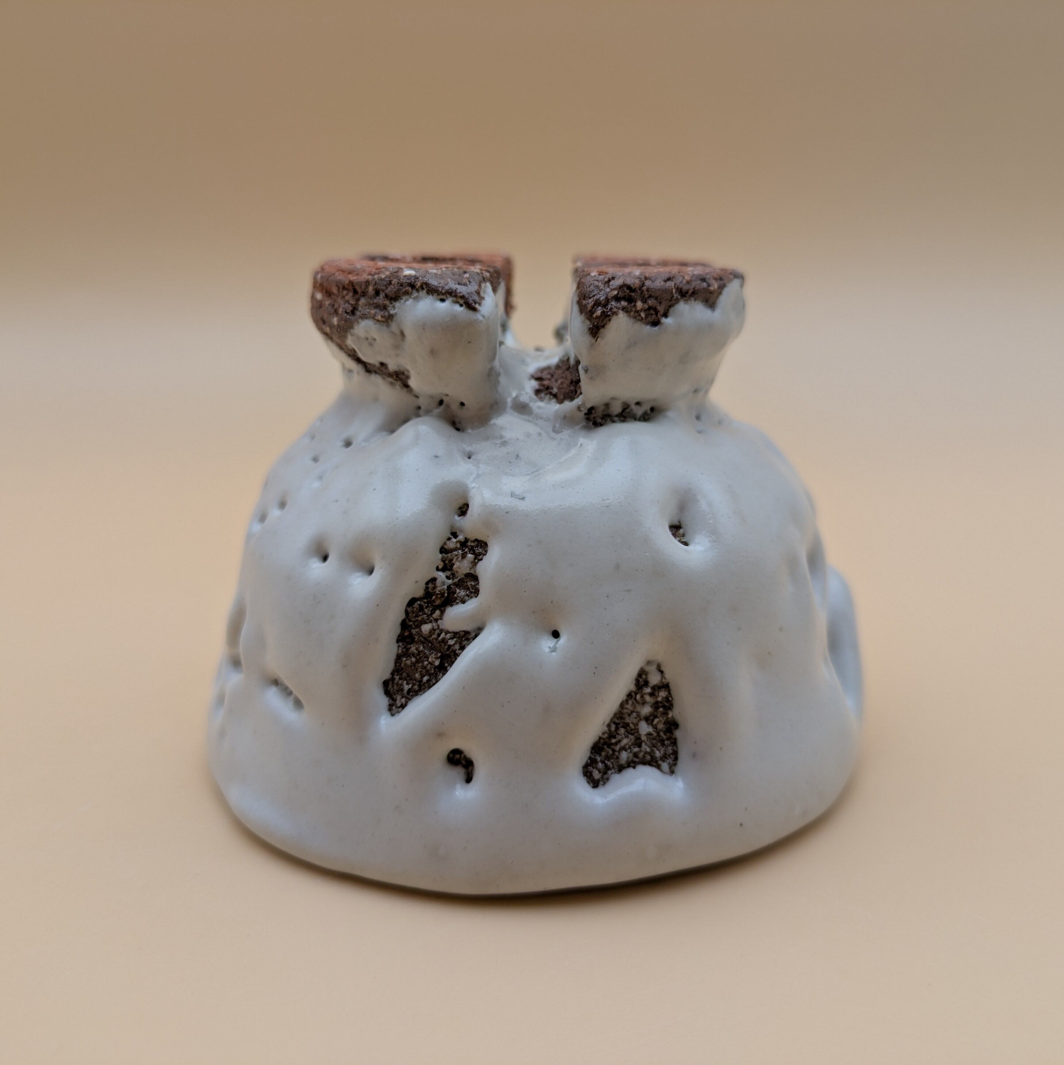 魅力的なデザインの萩焼(鬼萩)のぐい呑みです。萩焼の特徴である、素朴で温かみのある風合いがお酒の味わいを引き立てます。手に馴染む形状で、持ちやすく使いやすい一品です。