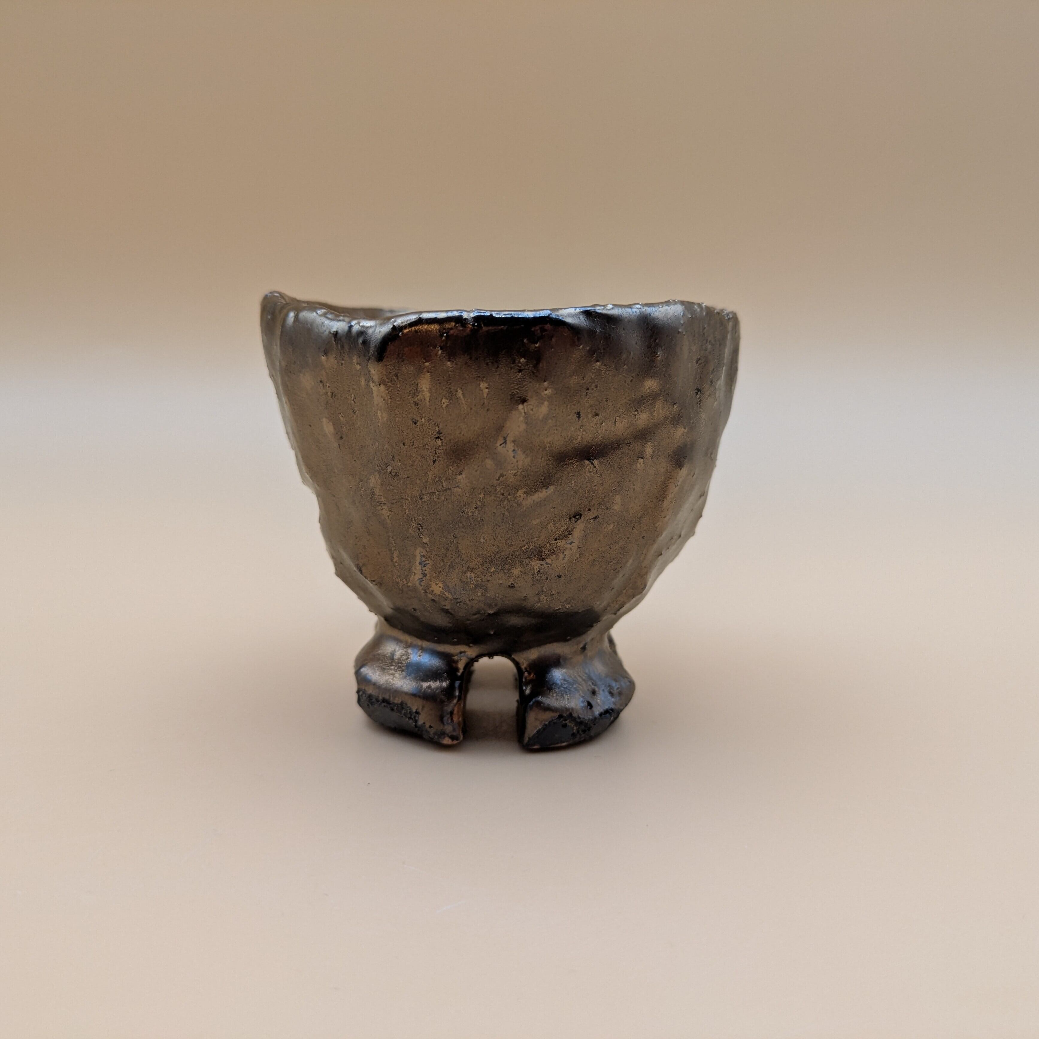 ぐい呑み 萩焼(全面 暗金色01) 直径7.7Cm 高さ6.5cm 重量143g