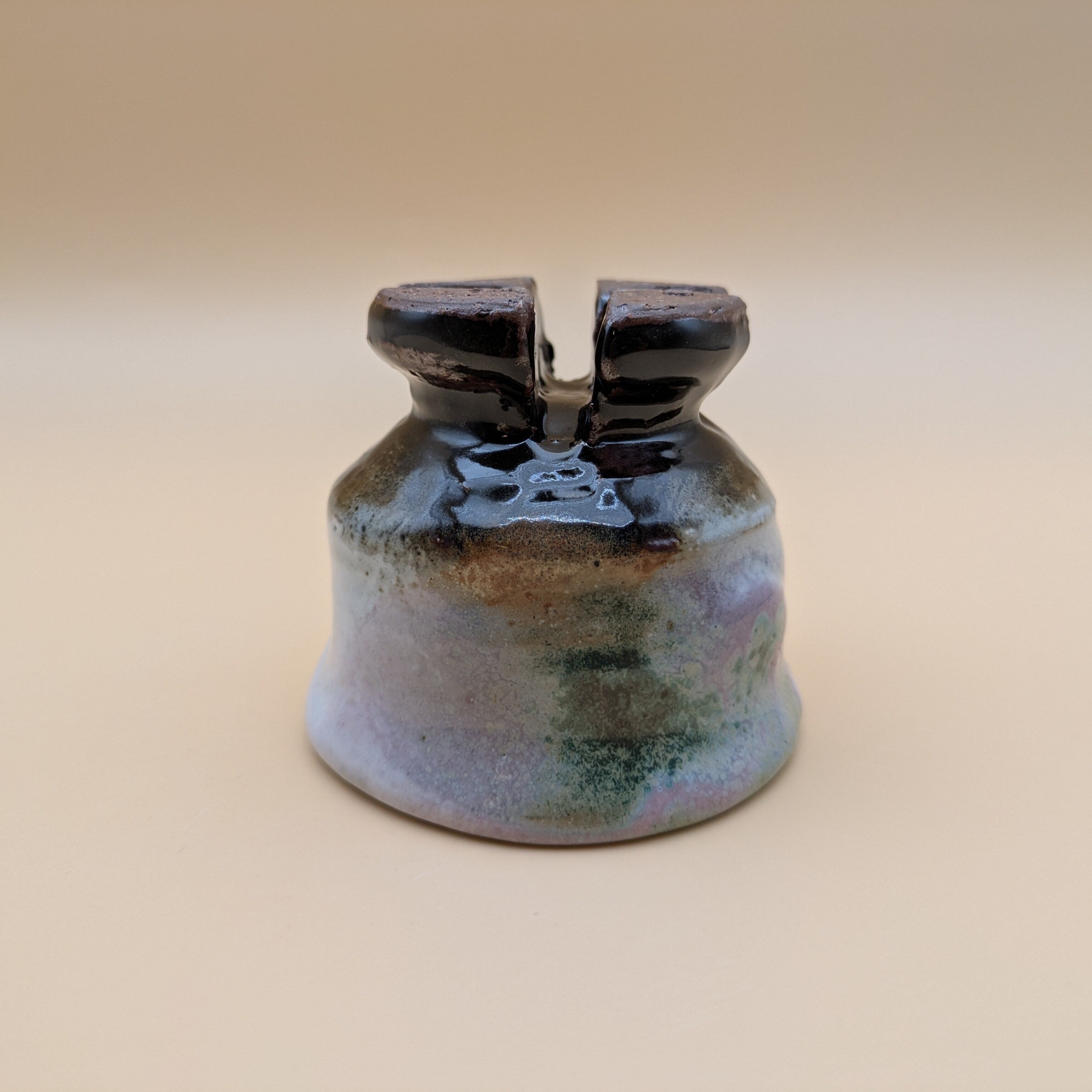 魅力的なデザインの萩焼のぐい呑みです。萩焼の特徴である、素朴で温かみのある風合いがお酒の味わいを引き立てます。手に馴染む形状で、持ちやすく使いやすい一品です。