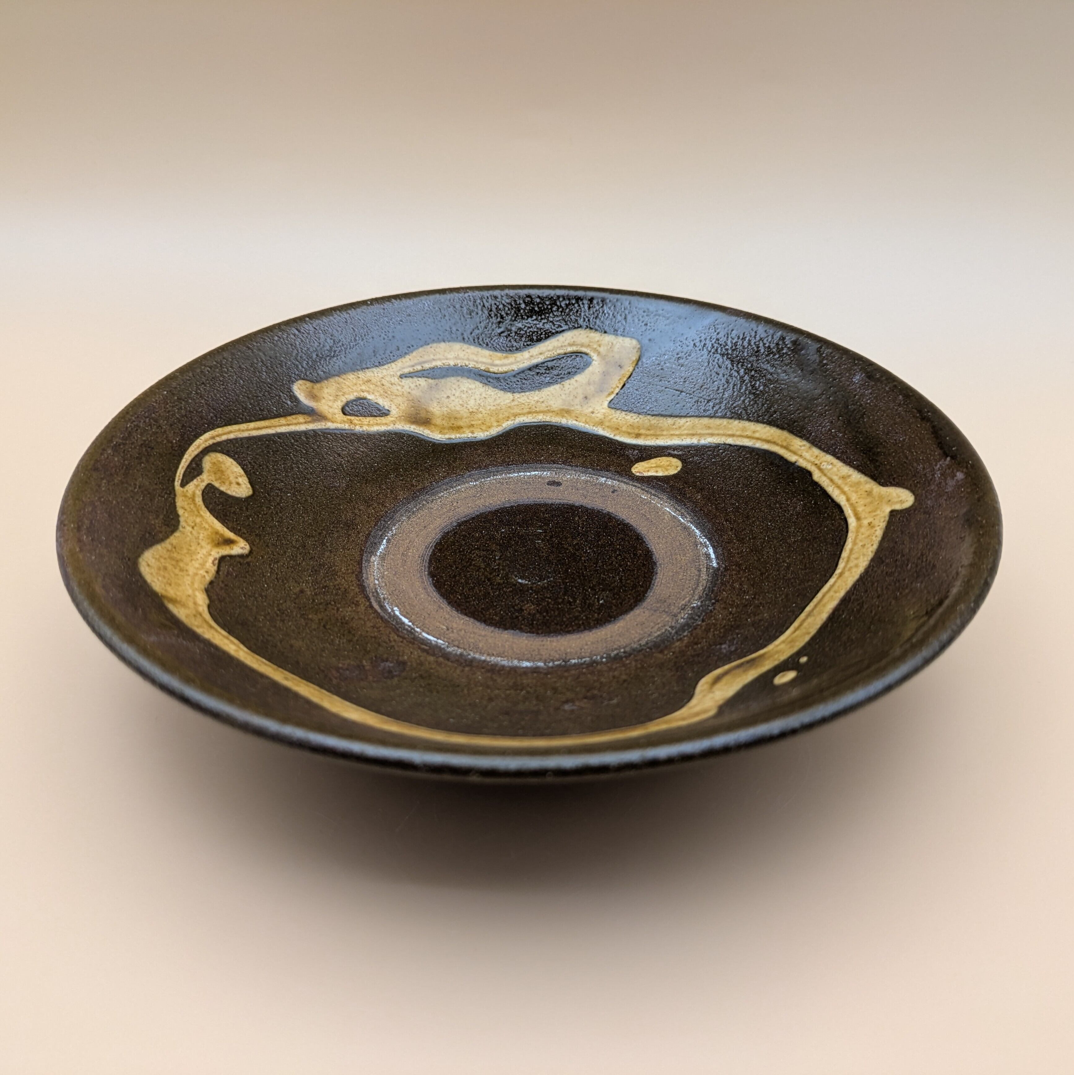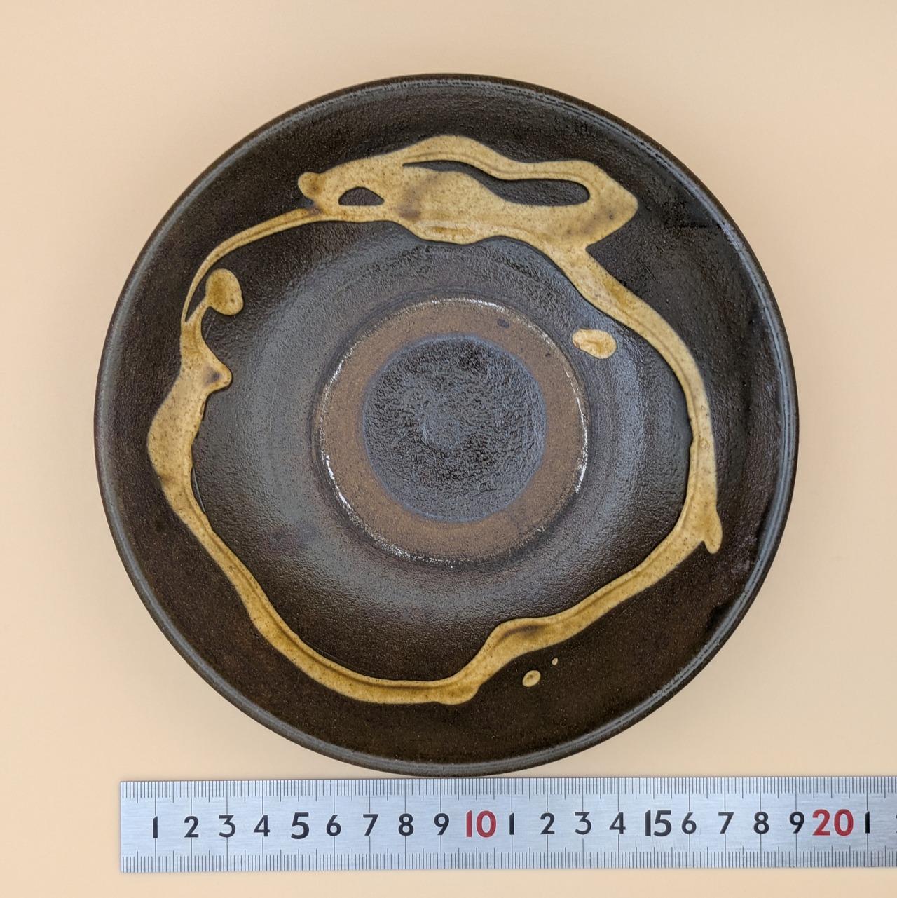 平皿6寸 小鹿田焼(茶・スリップウエア02) 直径18.5cm 高さ4.3cm 重量283g