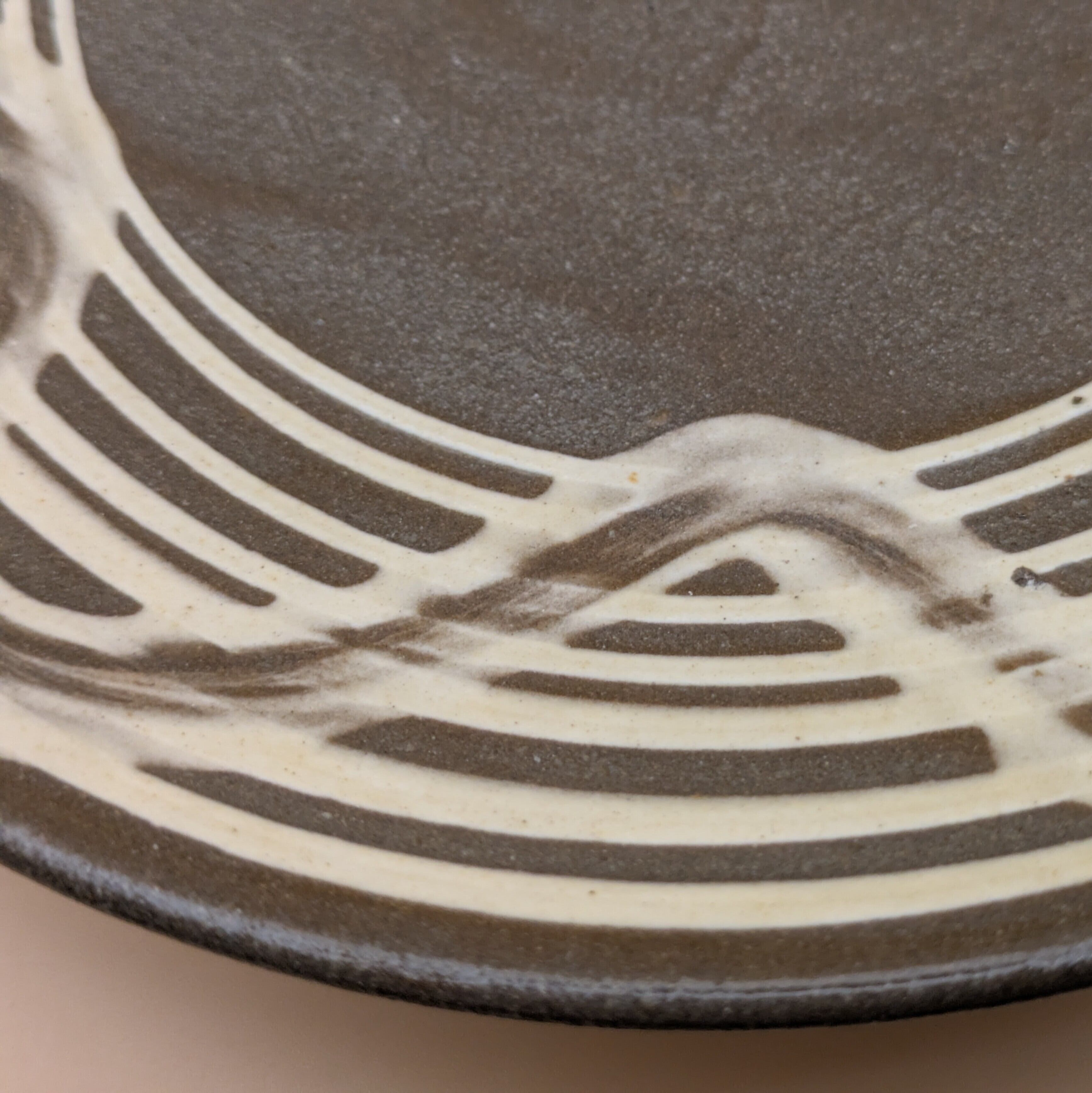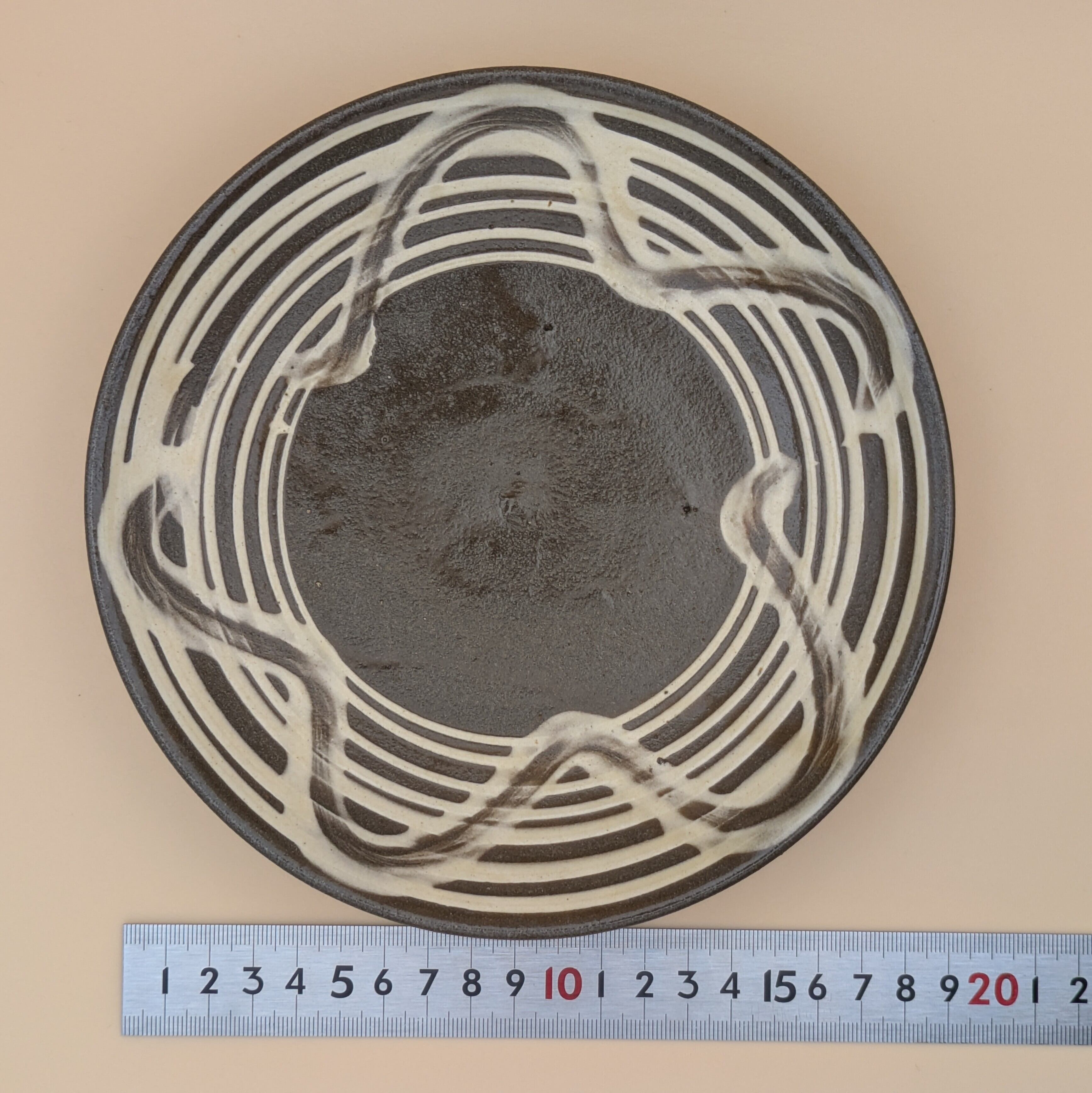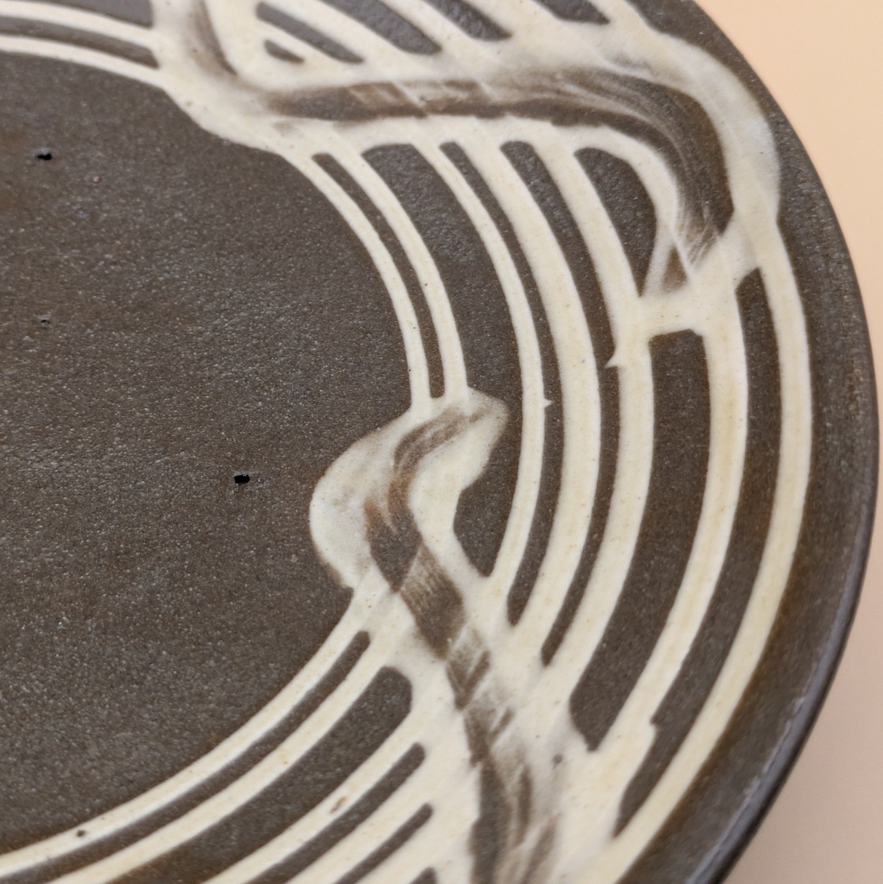 平皿6寸 小鹿田焼(茶・櫛描きスリップウエア01)