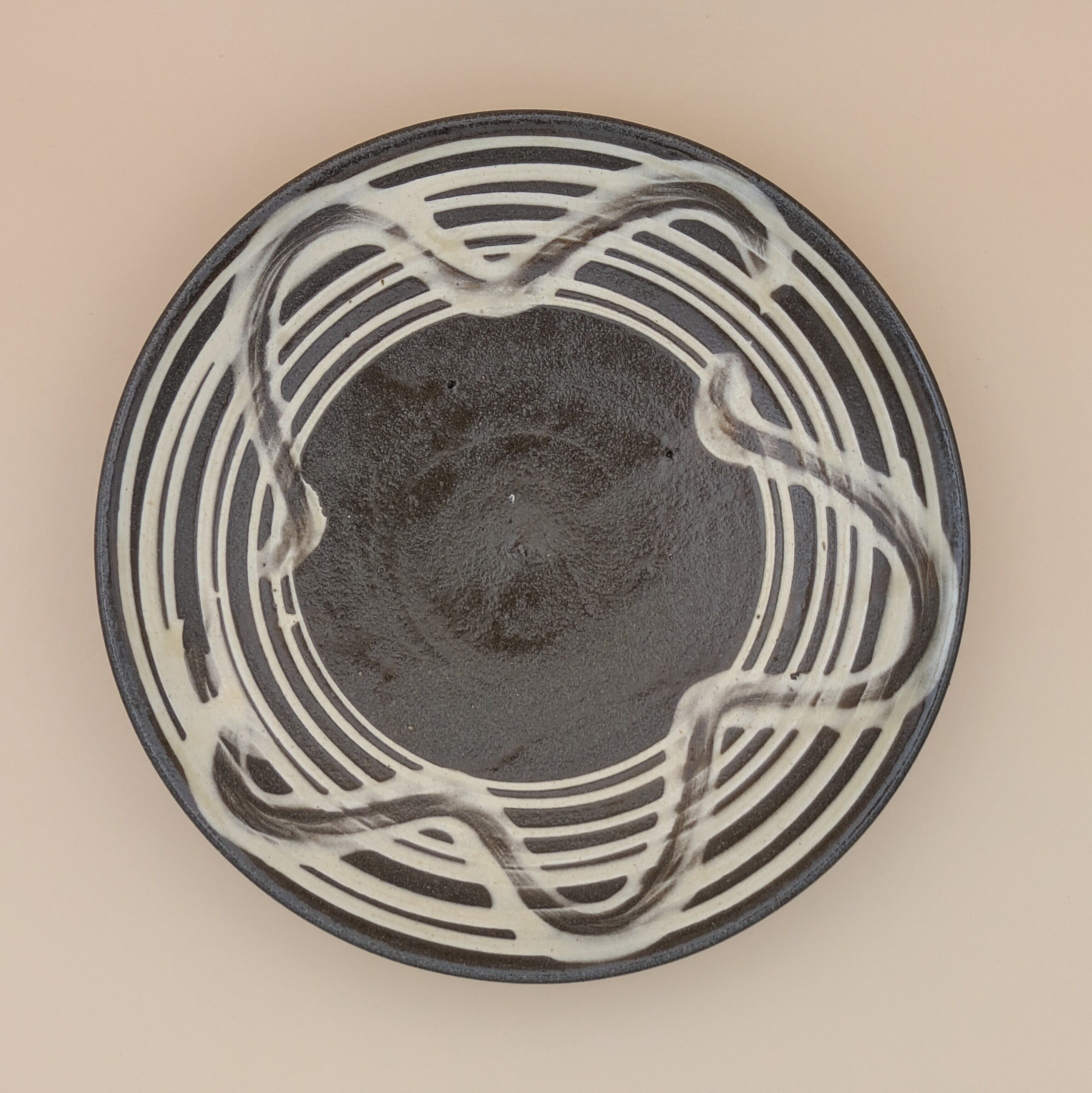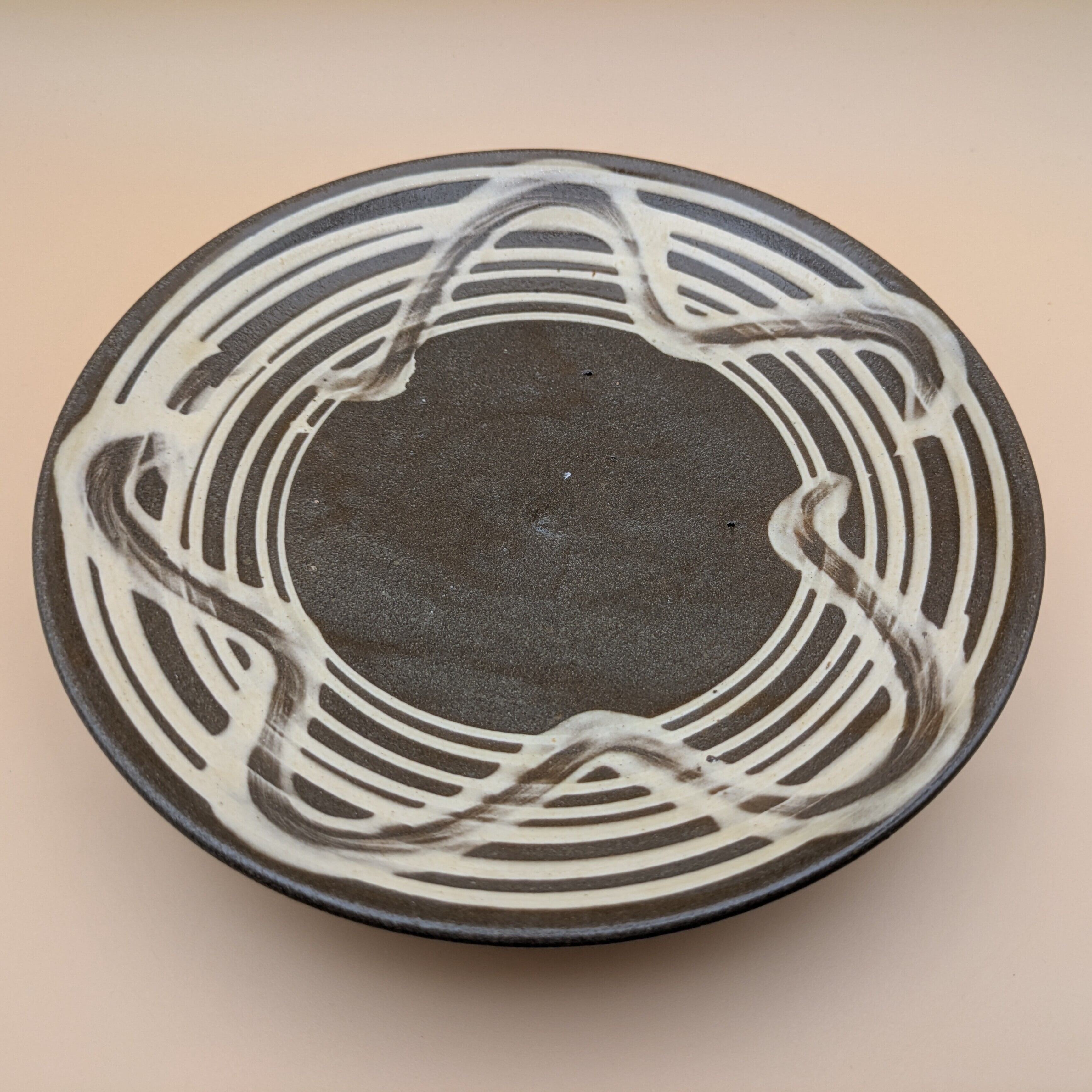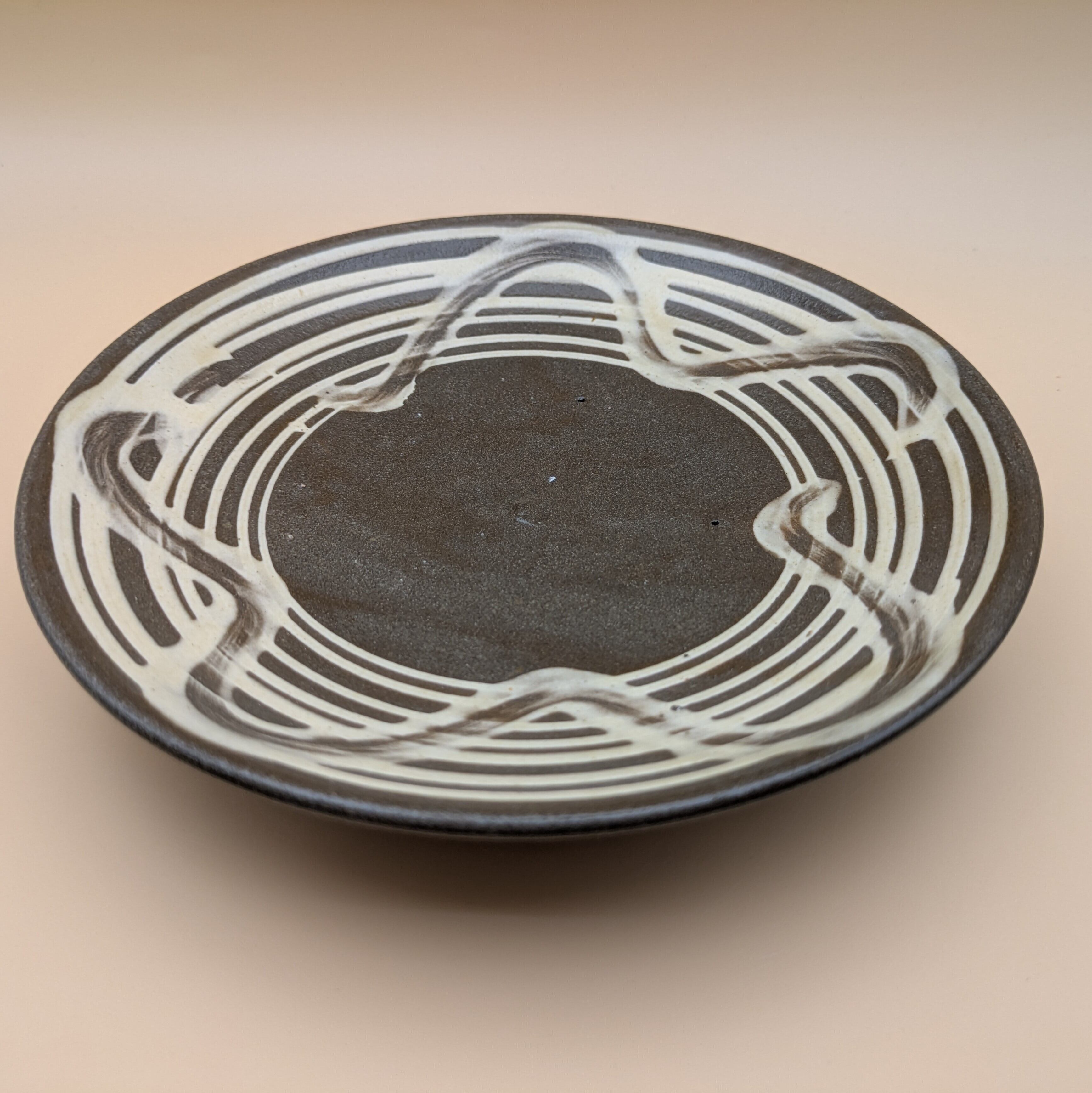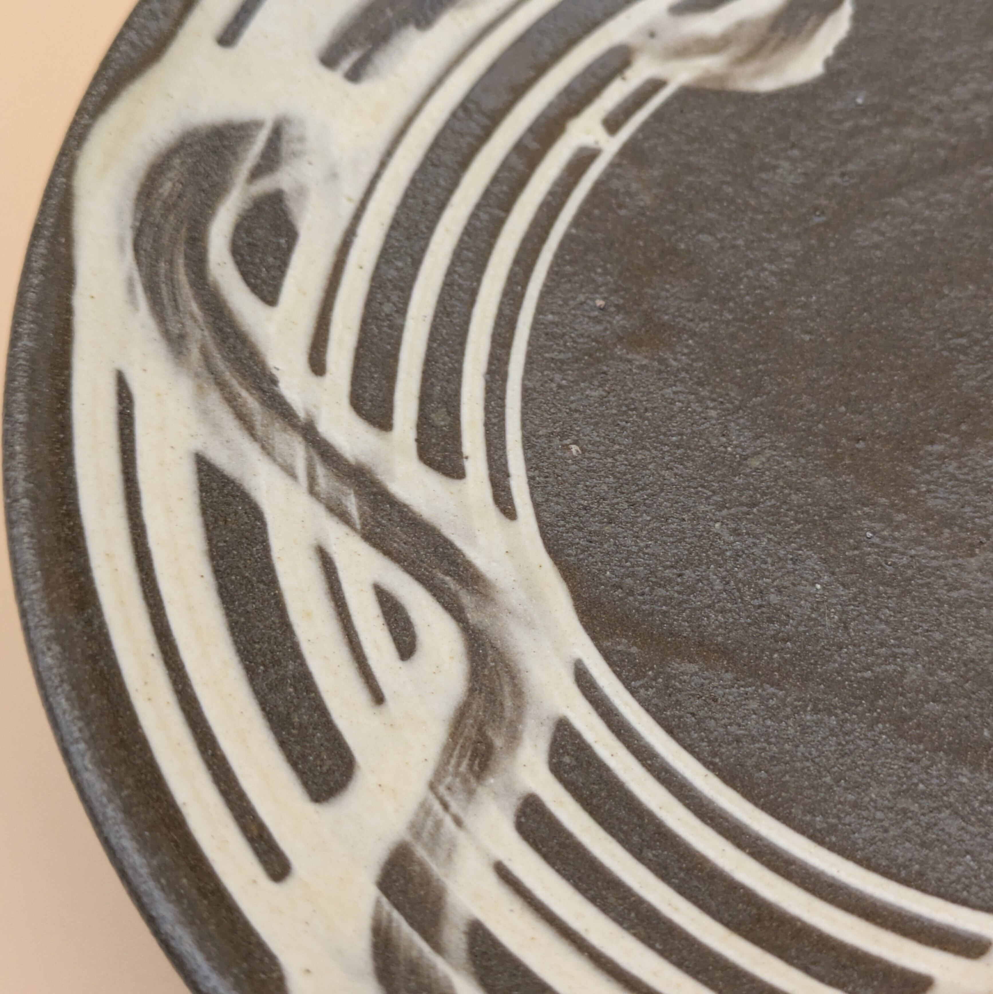 平皿6寸 小鹿田焼(茶・櫛描きスリップウエア01)