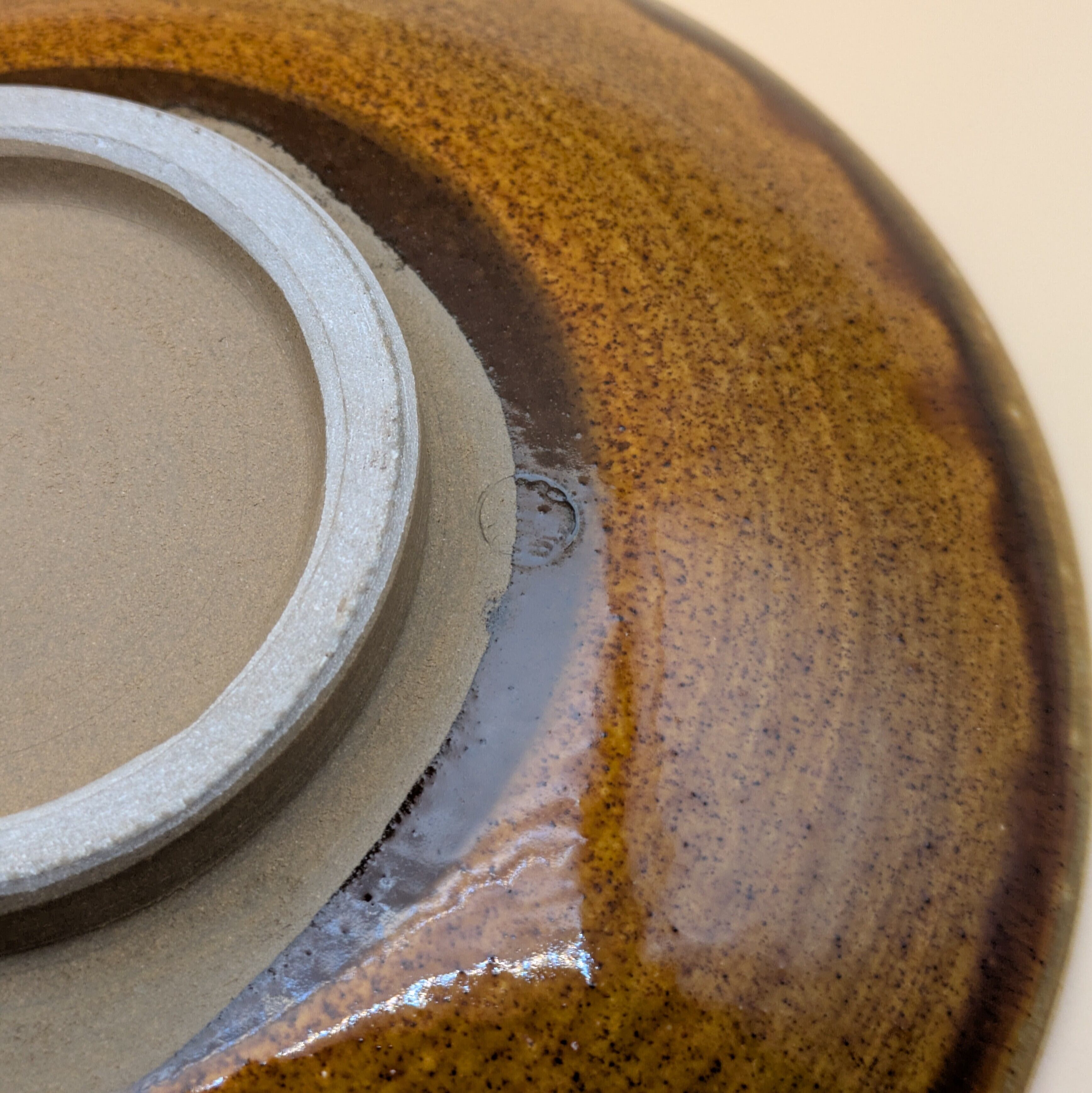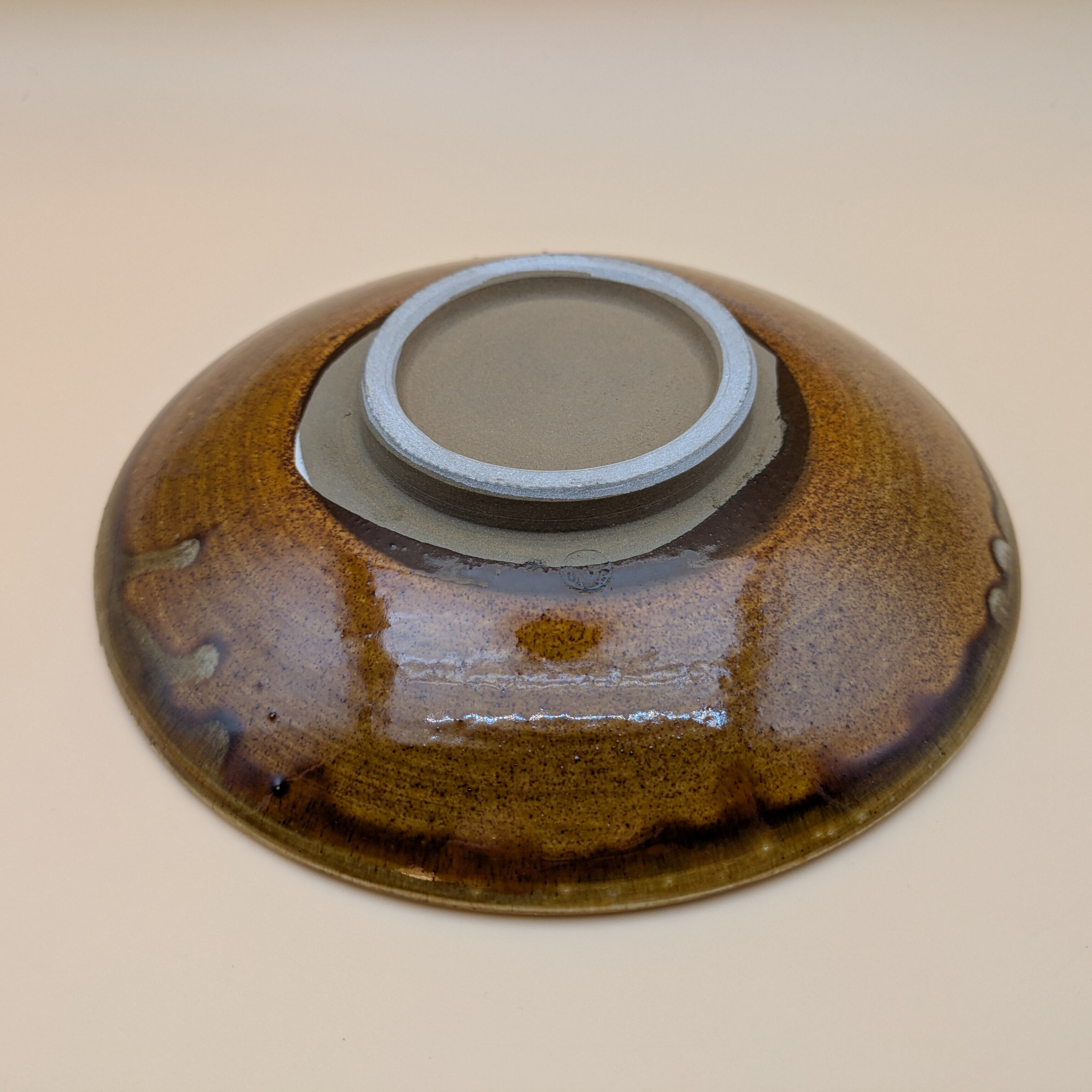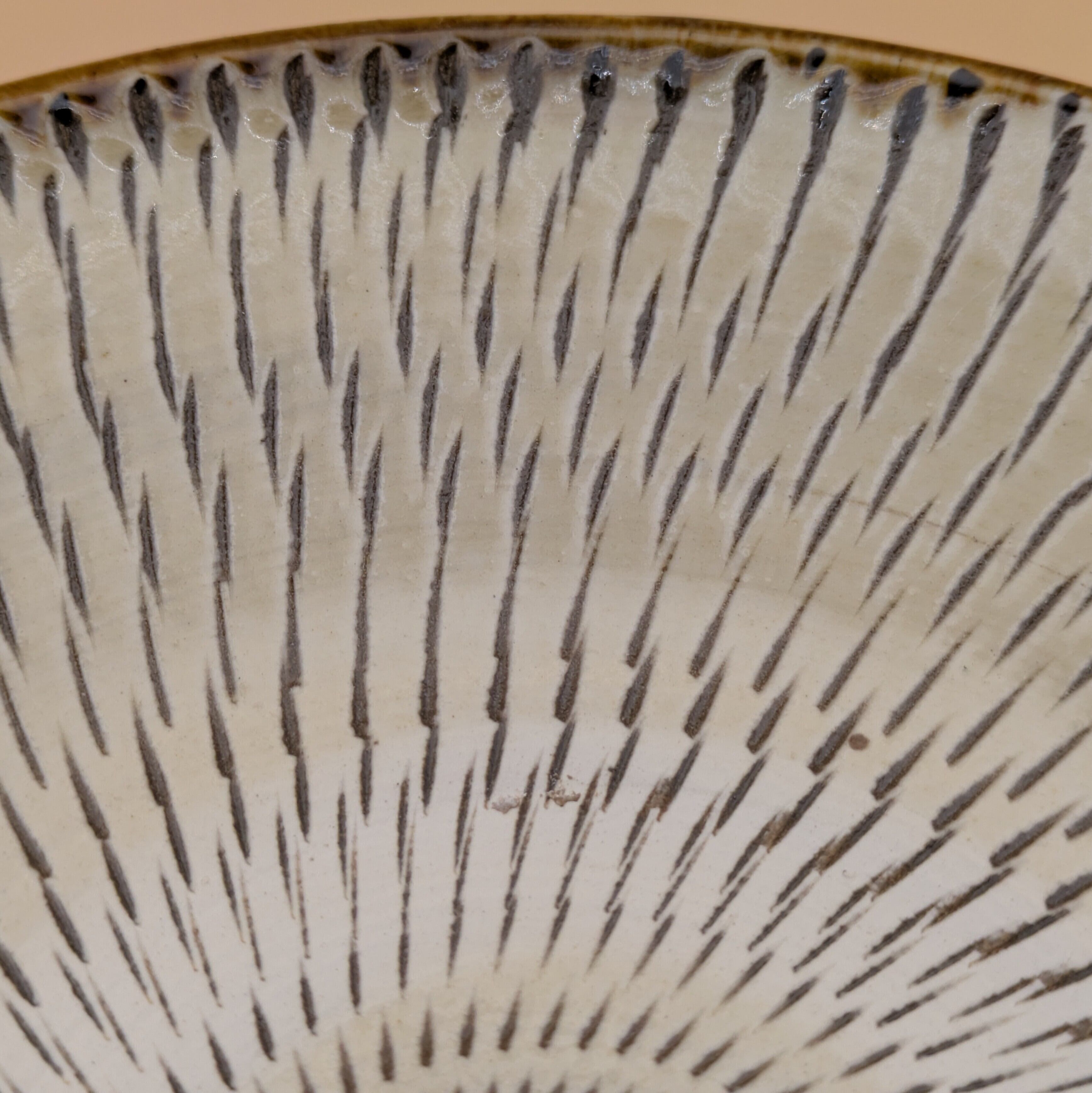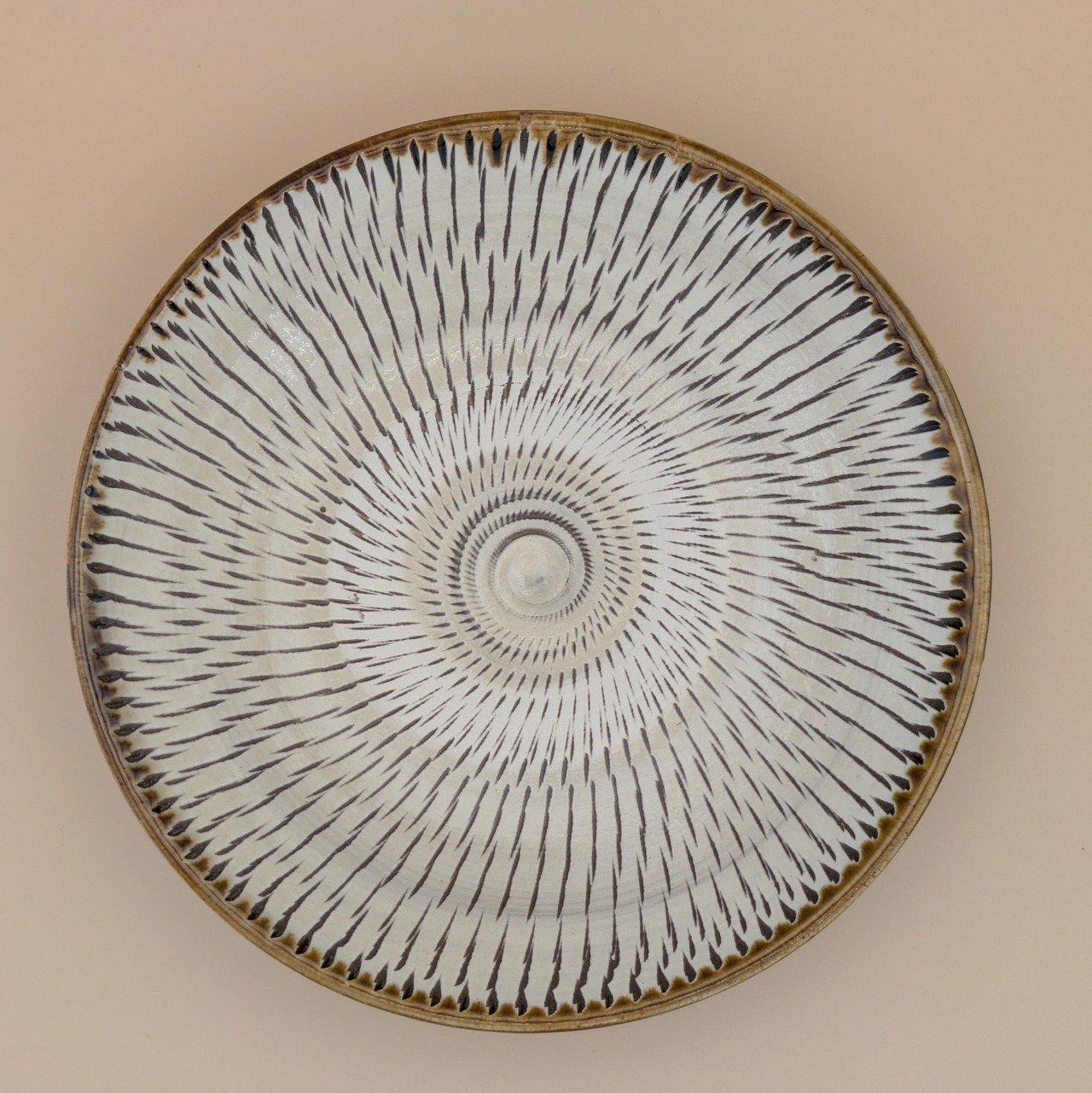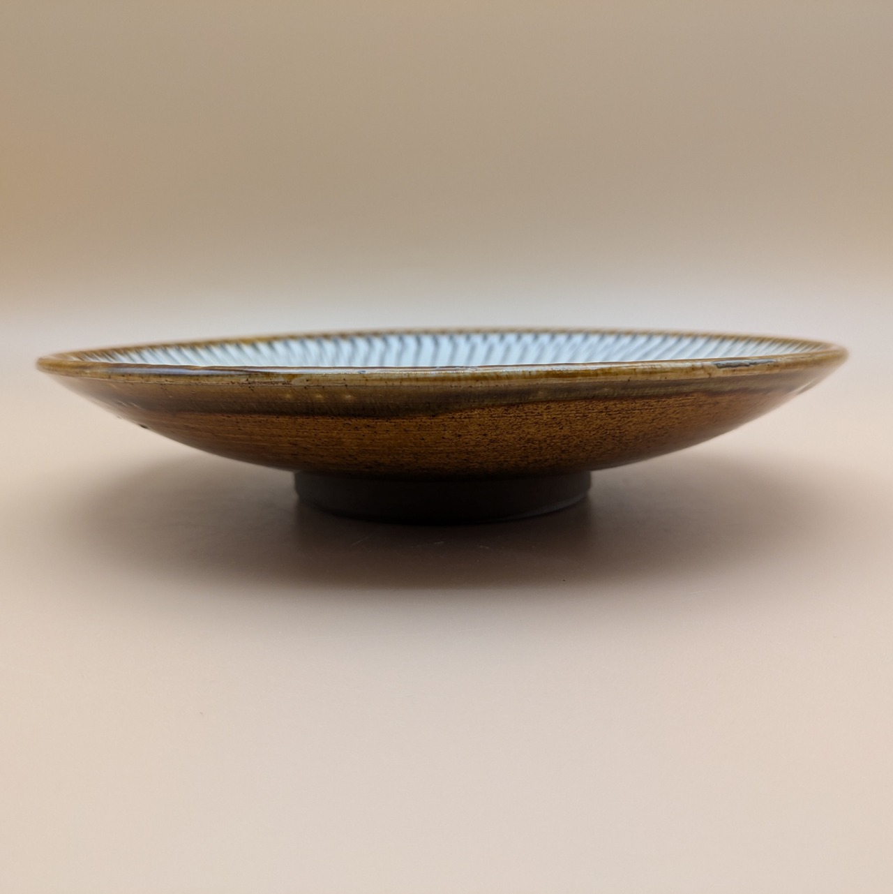 平皿6.5寸 小鹿田焼(縁茶・白飛び鉋) 直径19.8cm 高さ3.8cm 重量438g