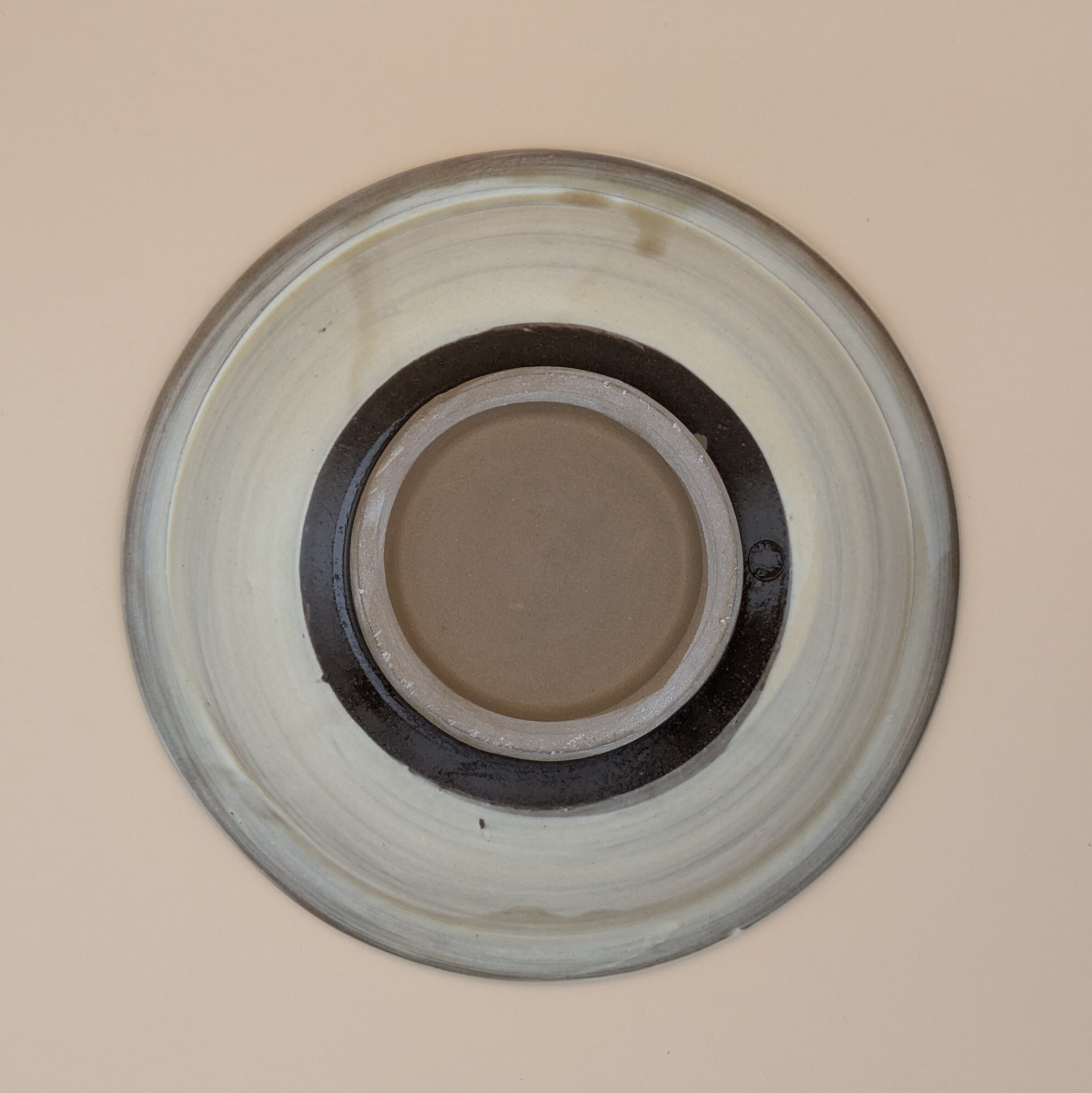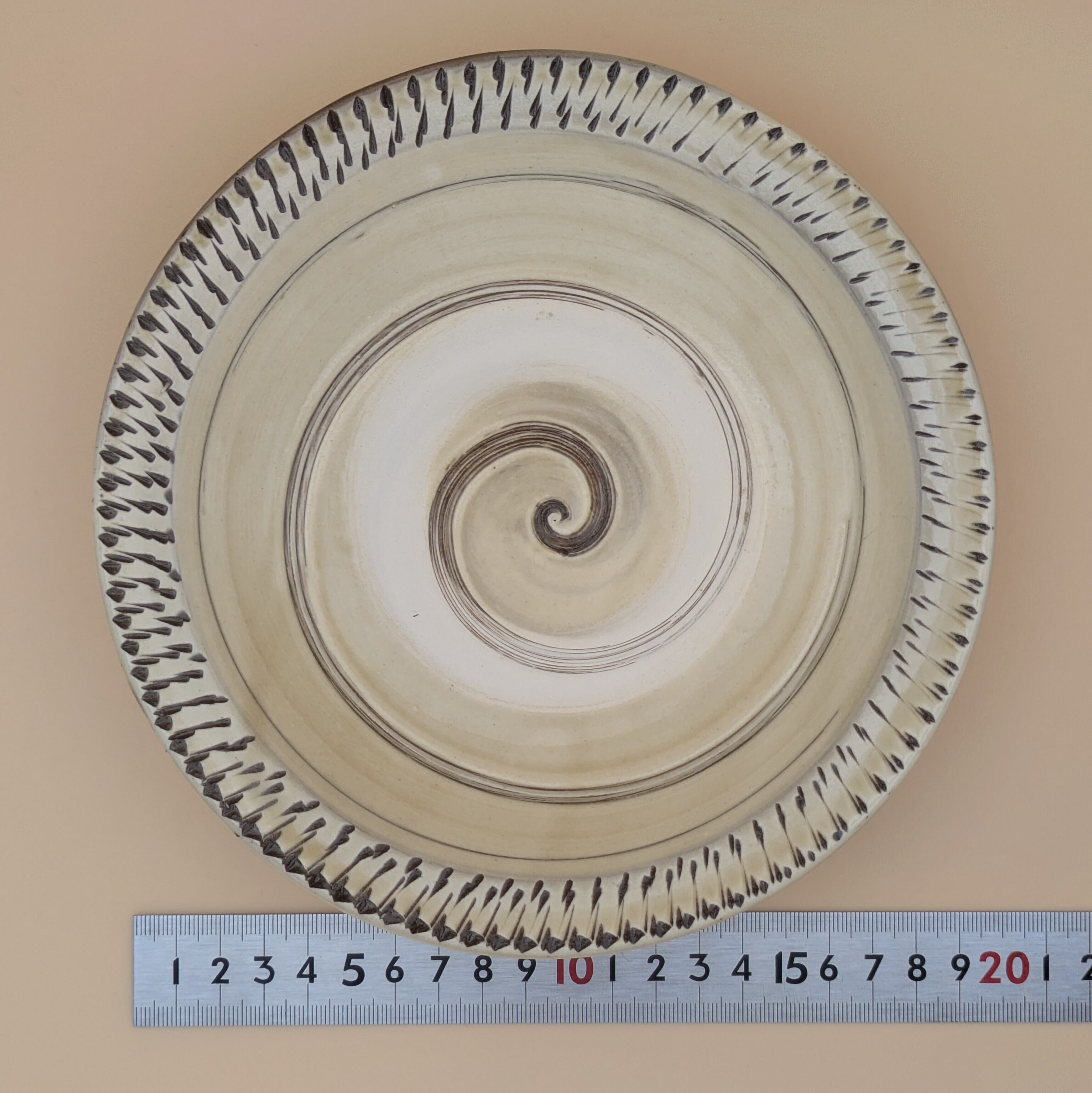 深皿6.5寸 小鹿田焼(縁飛び鉋・白地に渦巻01) 直径19.5cm 高さ4.2cm 重量383g