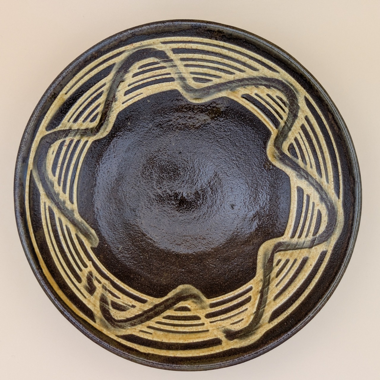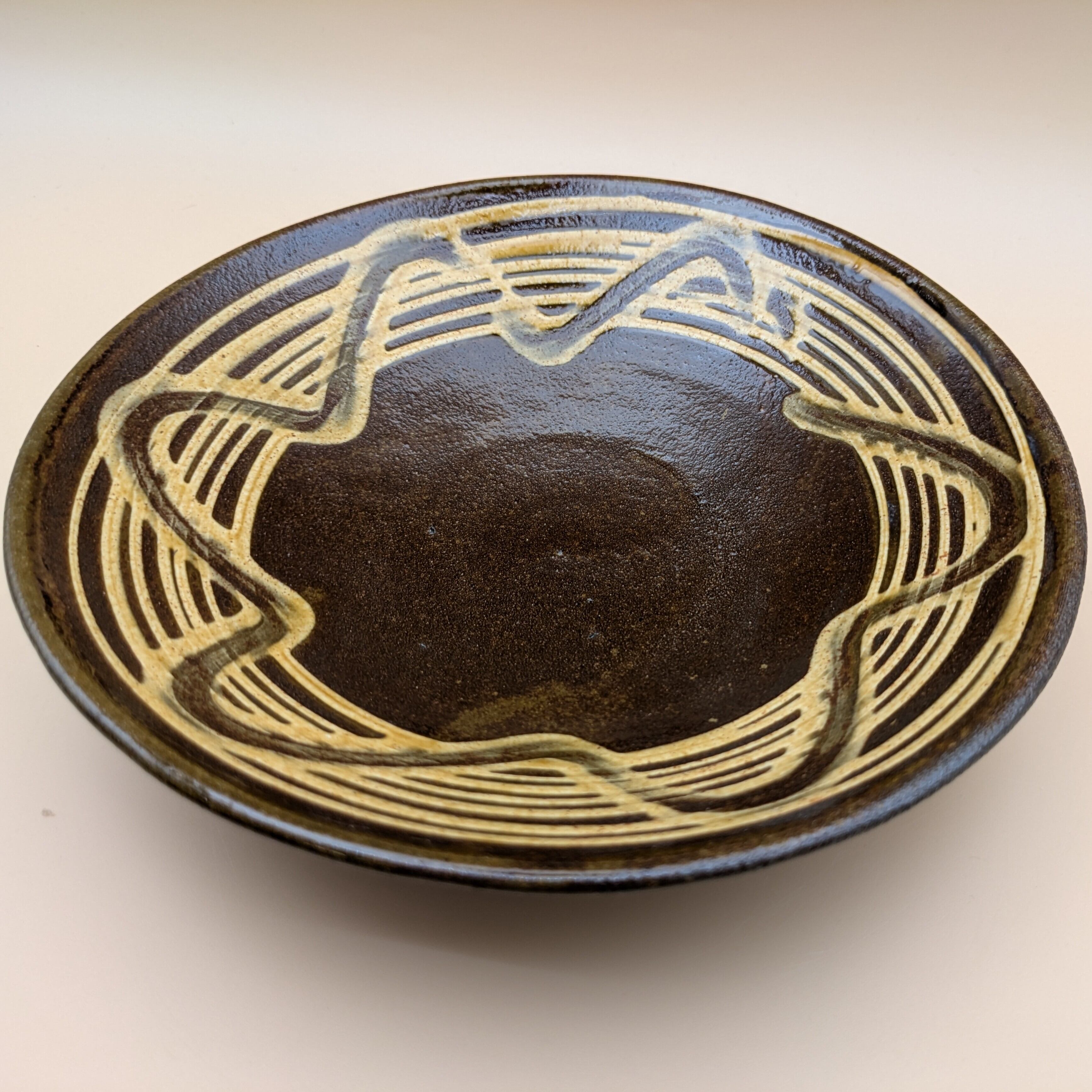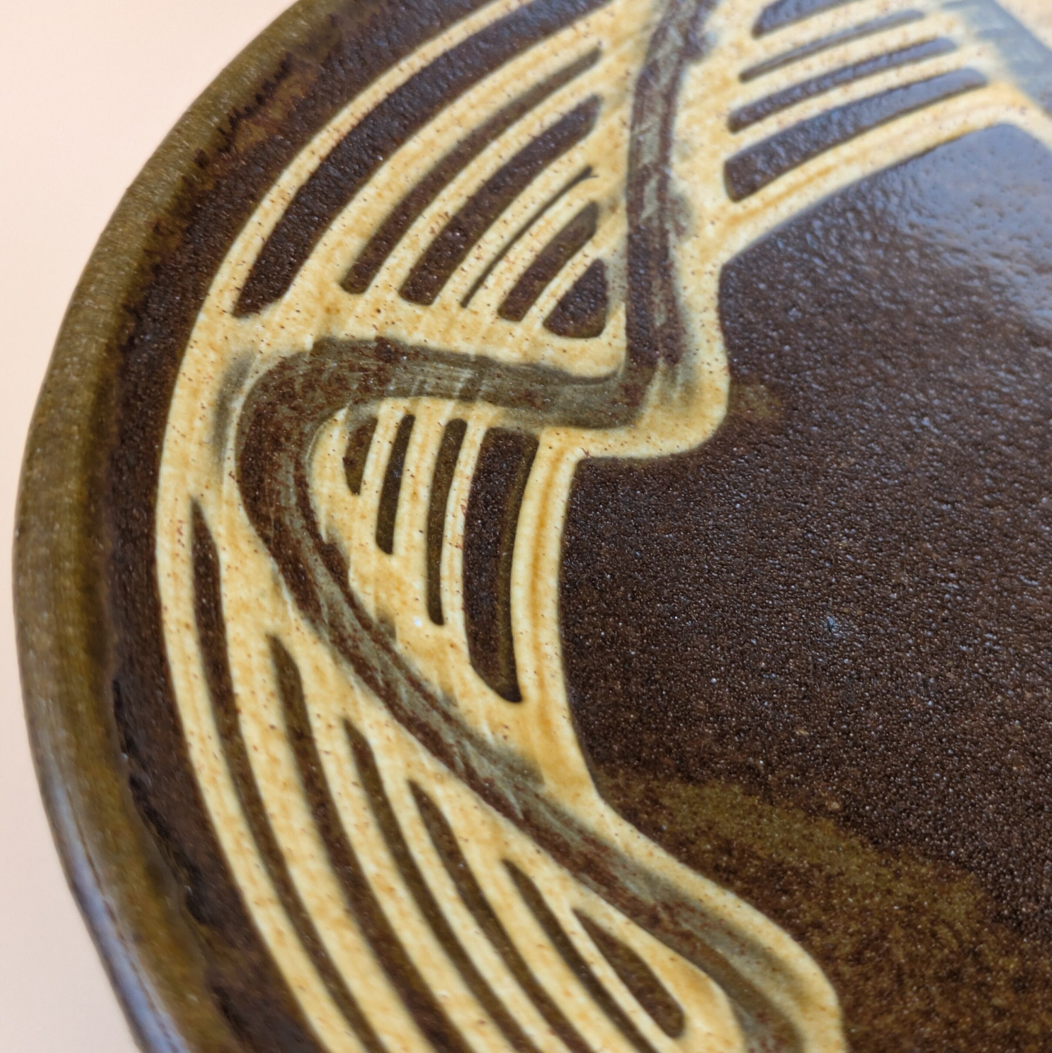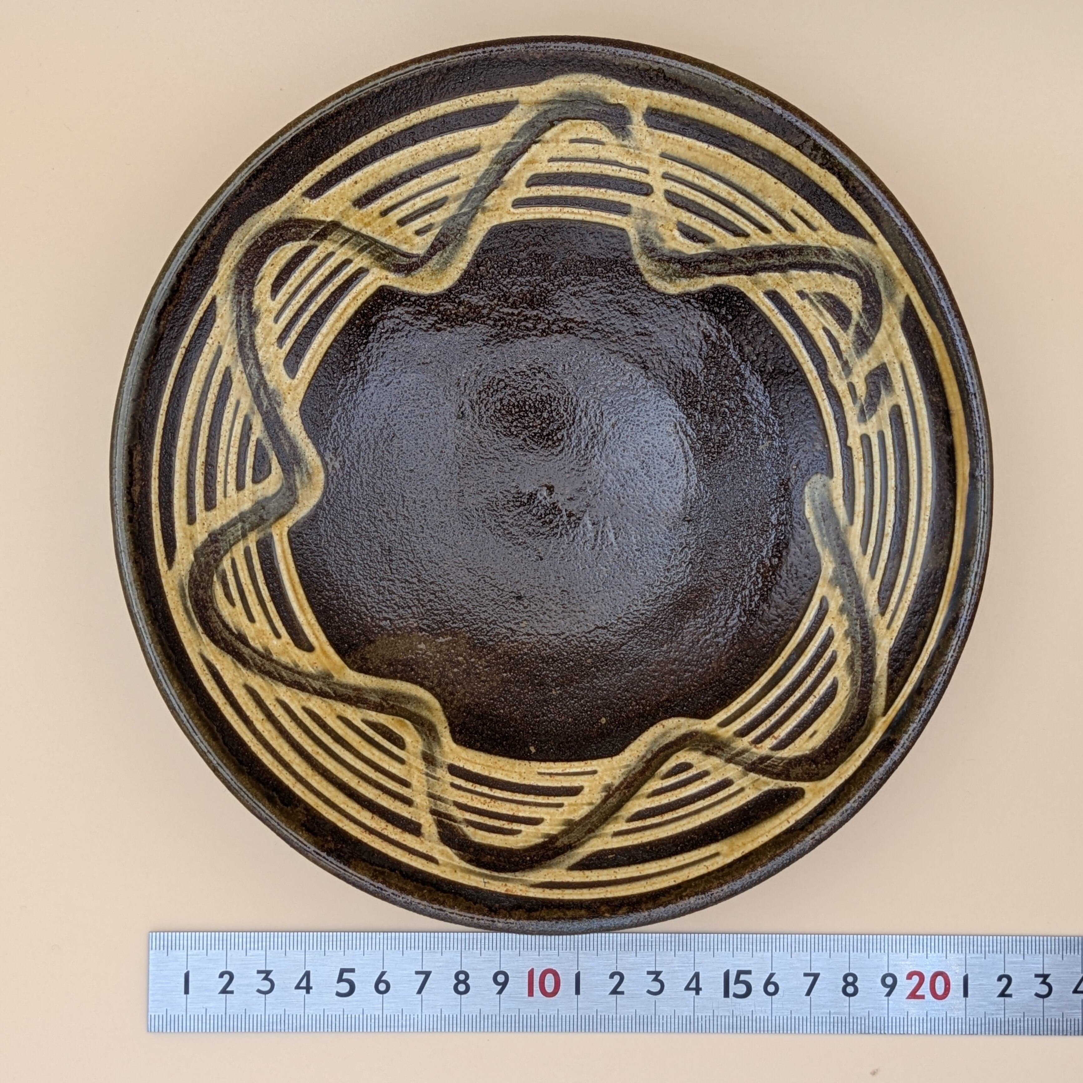 深皿7寸 小鹿田焼(茶・櫛描き) 直径21cm 高さ5.2cm 重量420g