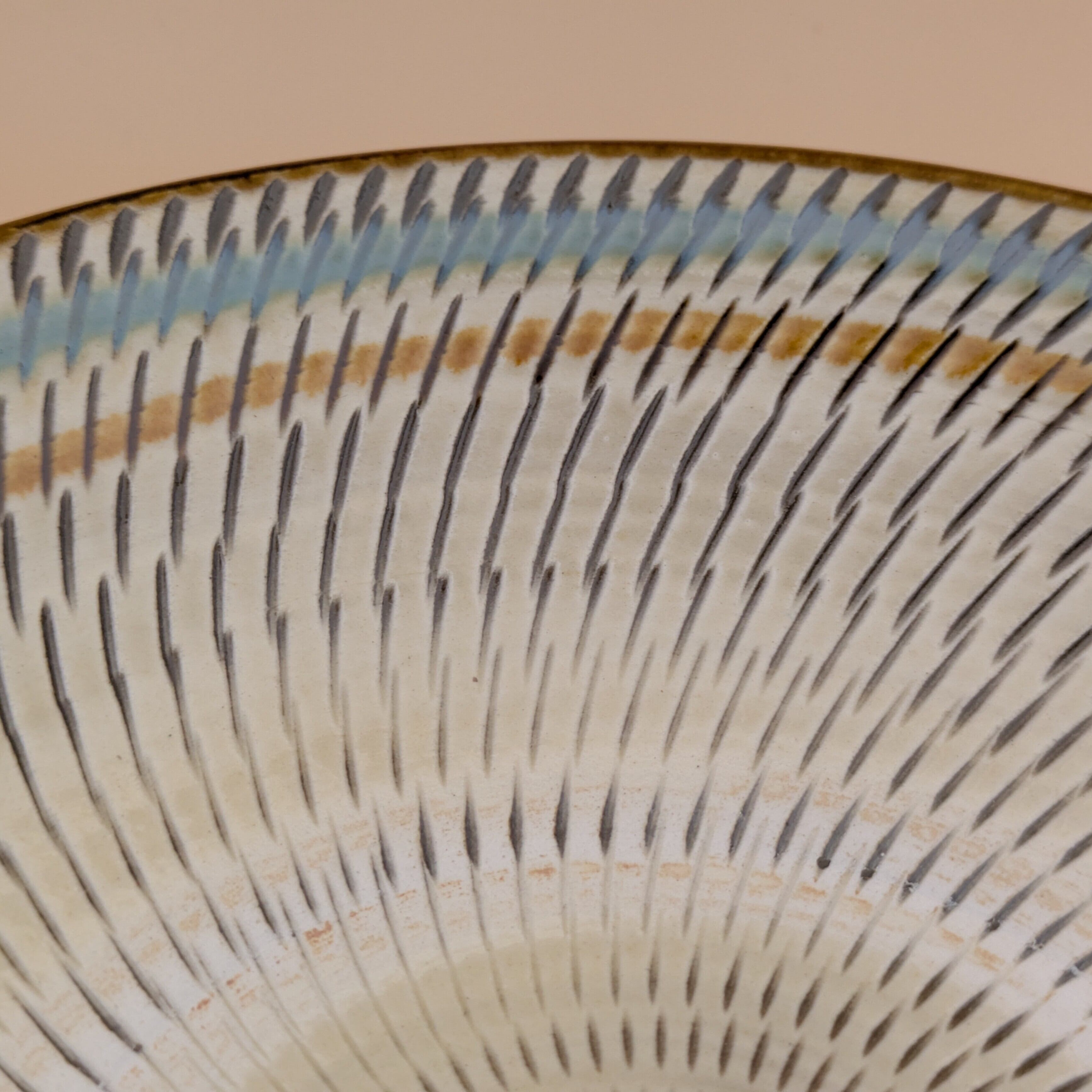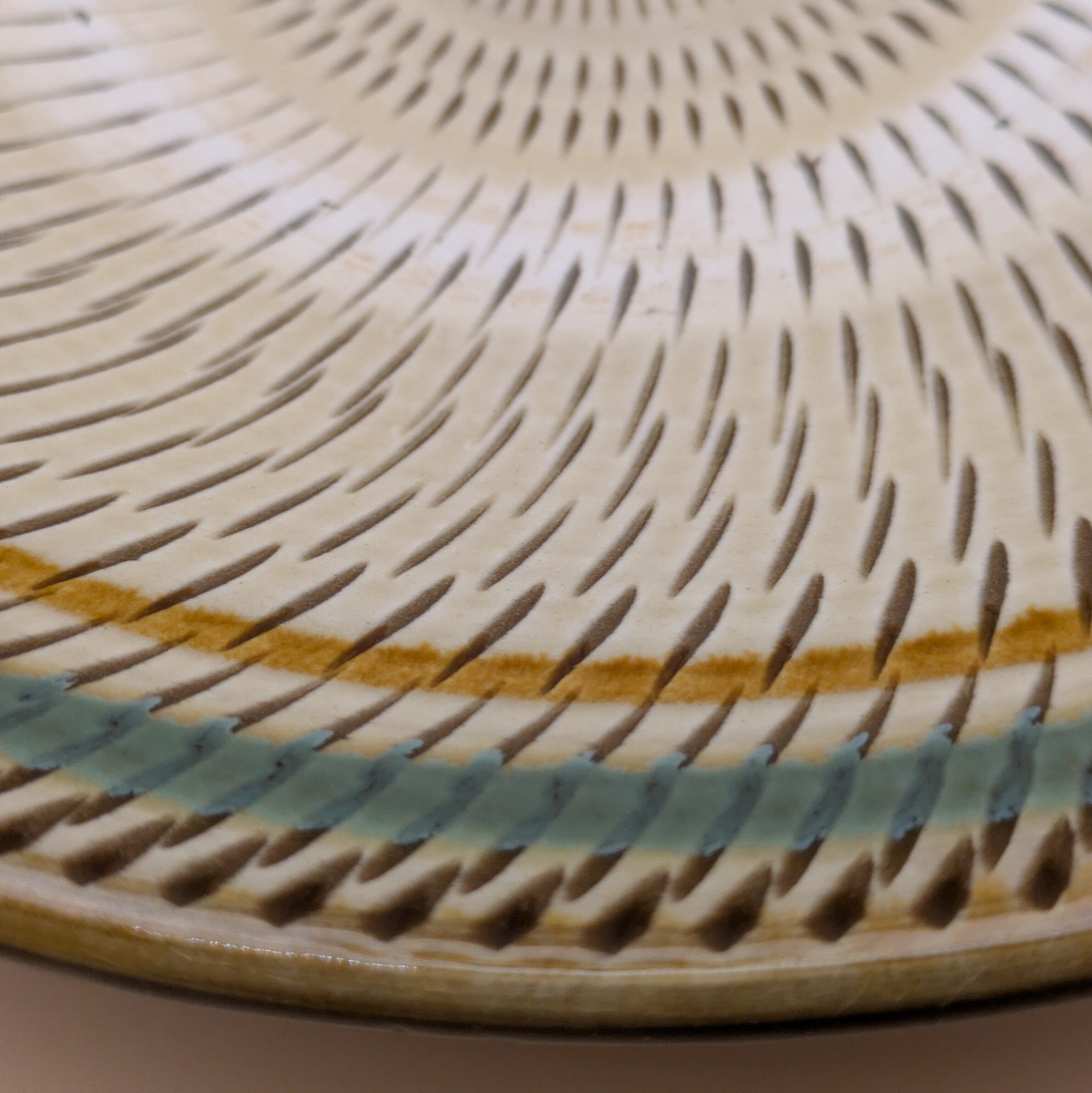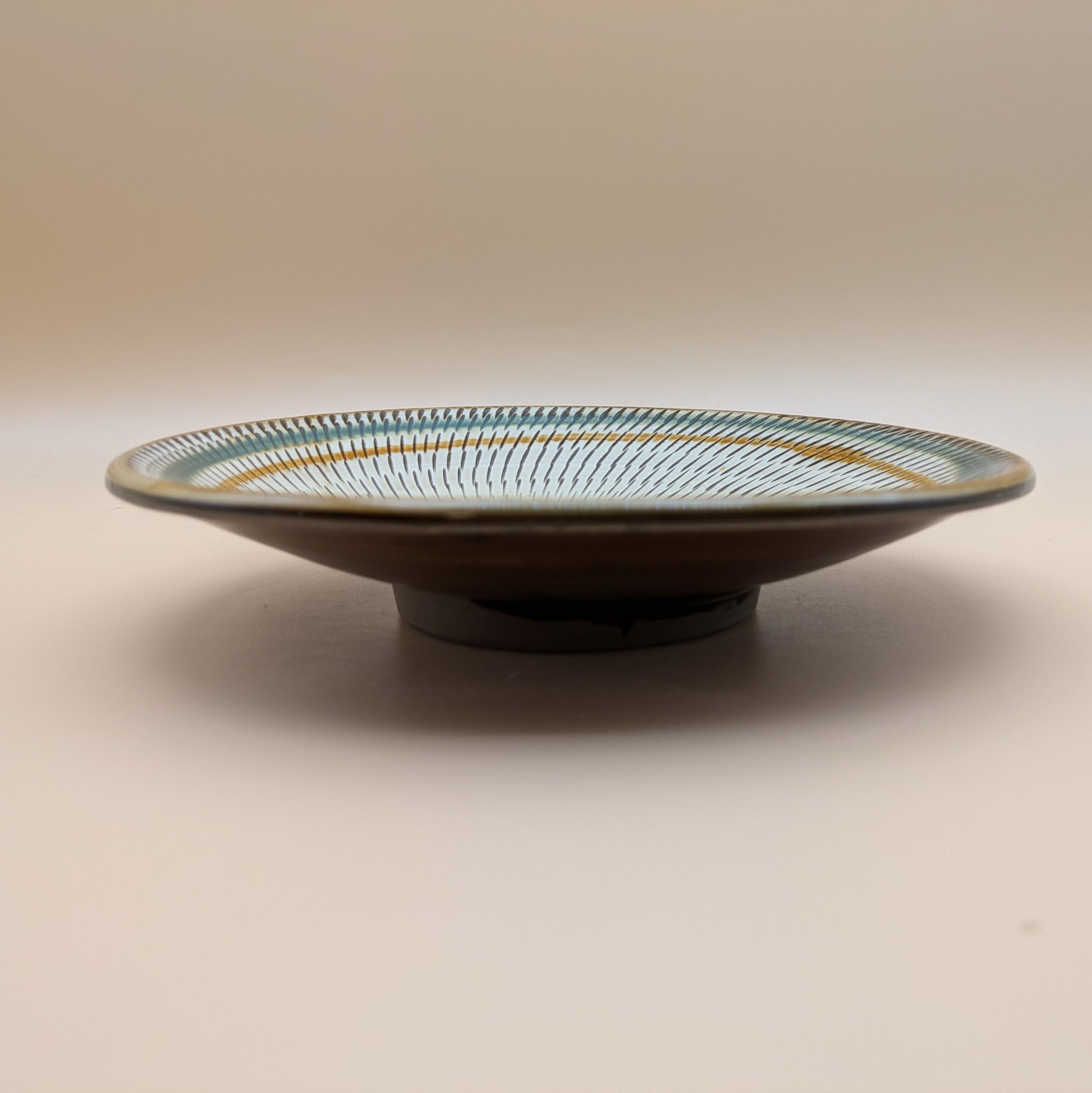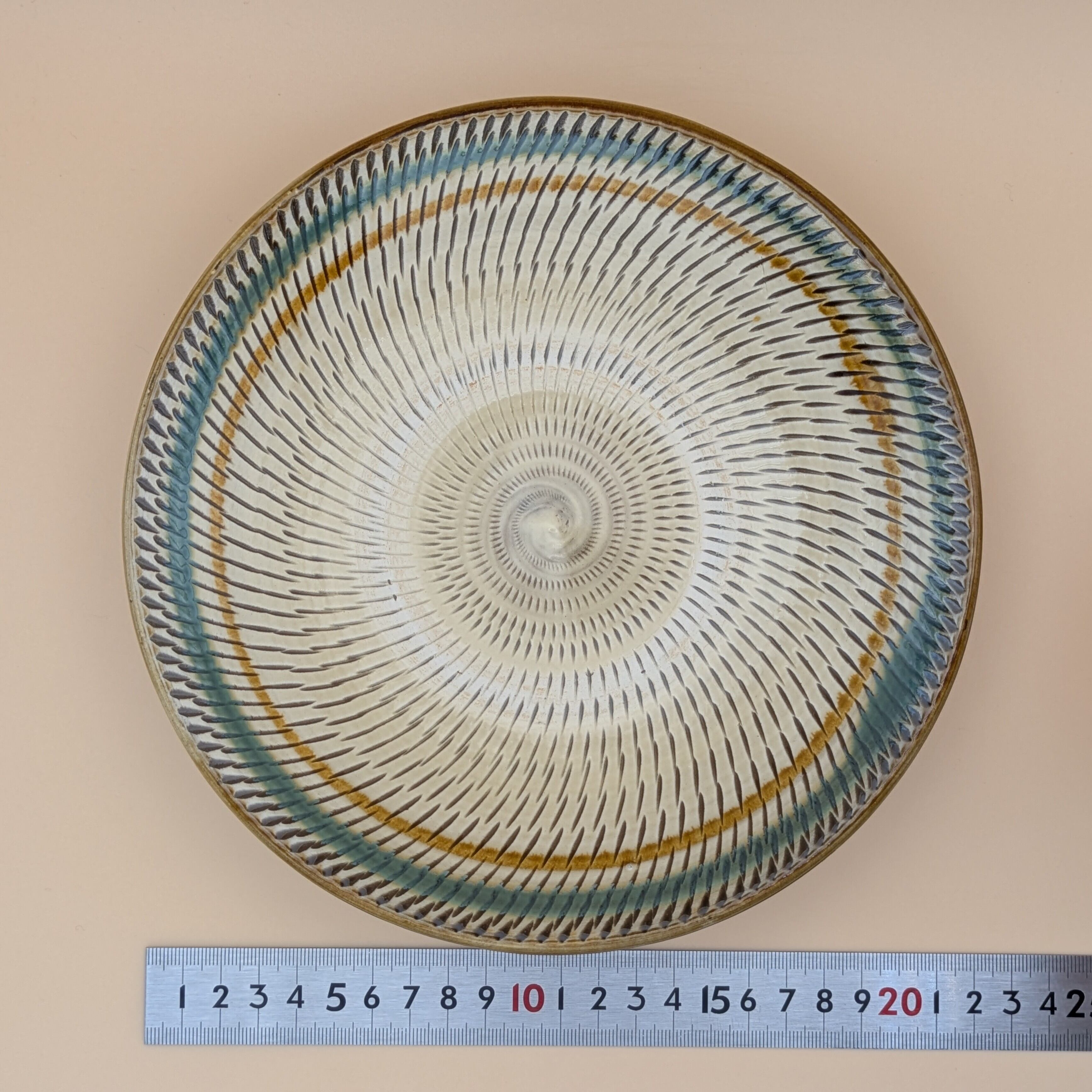 深皿7寸 小鹿田焼(縁三彩・飛び鉋) 直径21.2cm 高さ4.2cm 重量457g