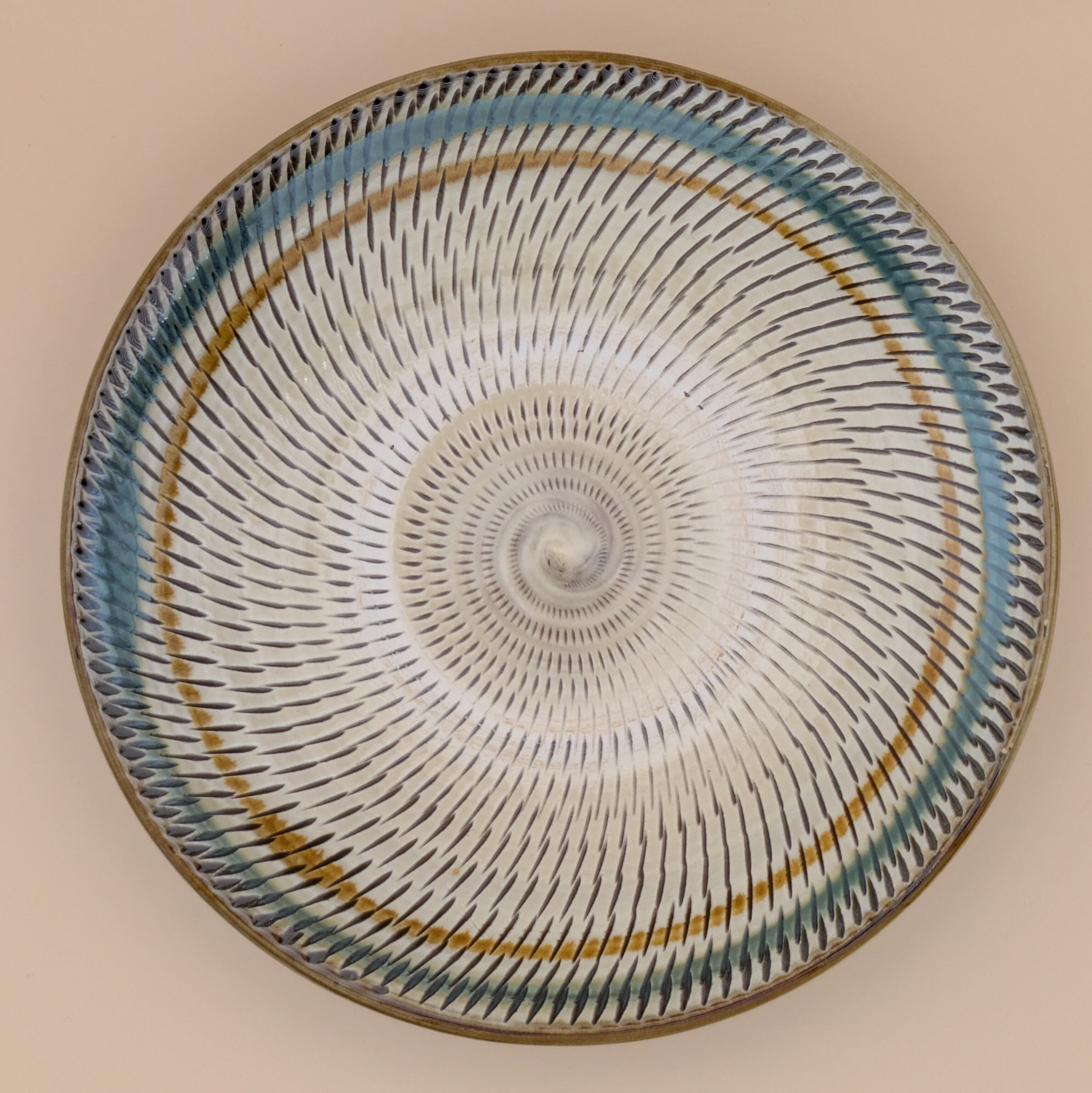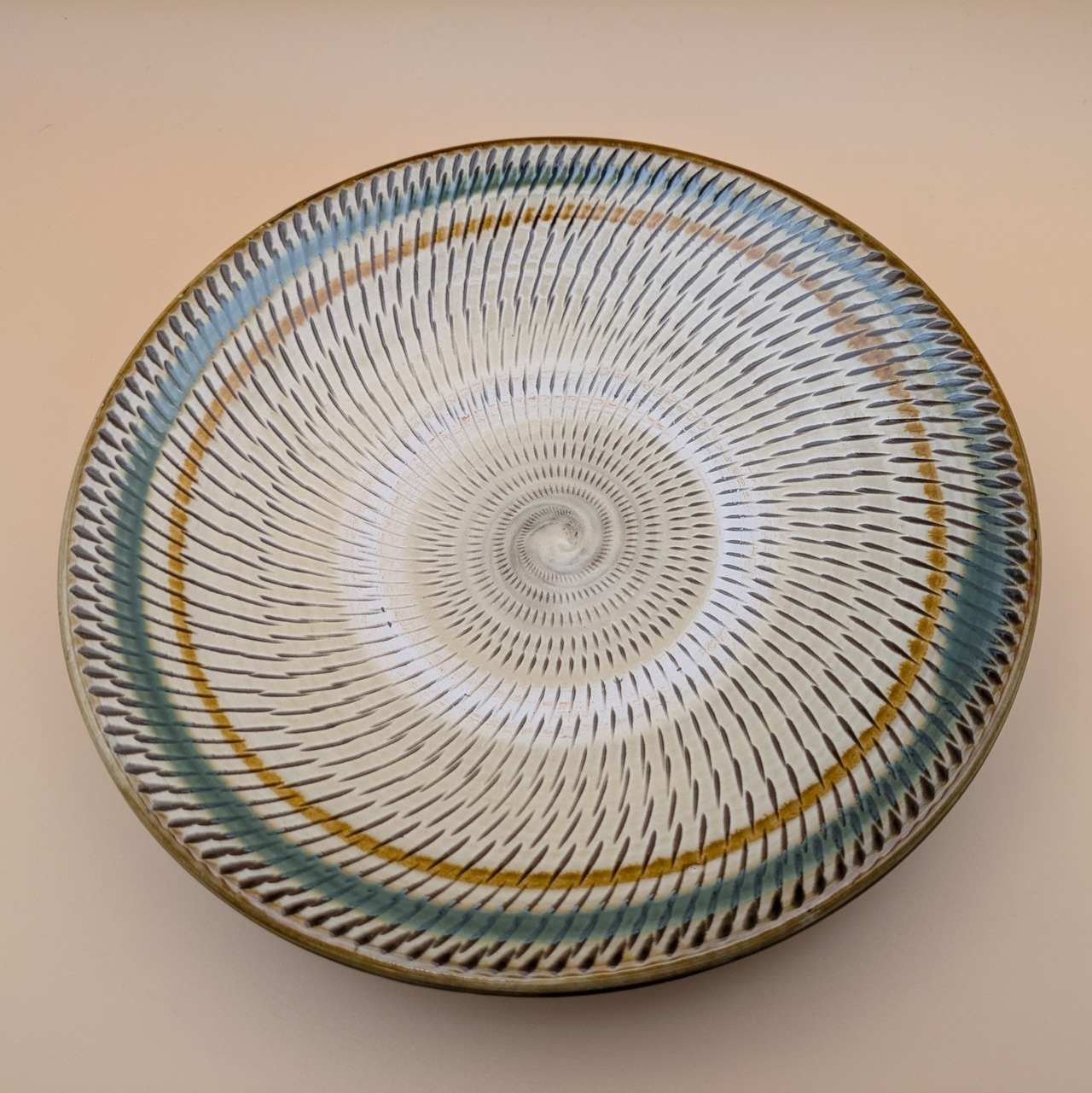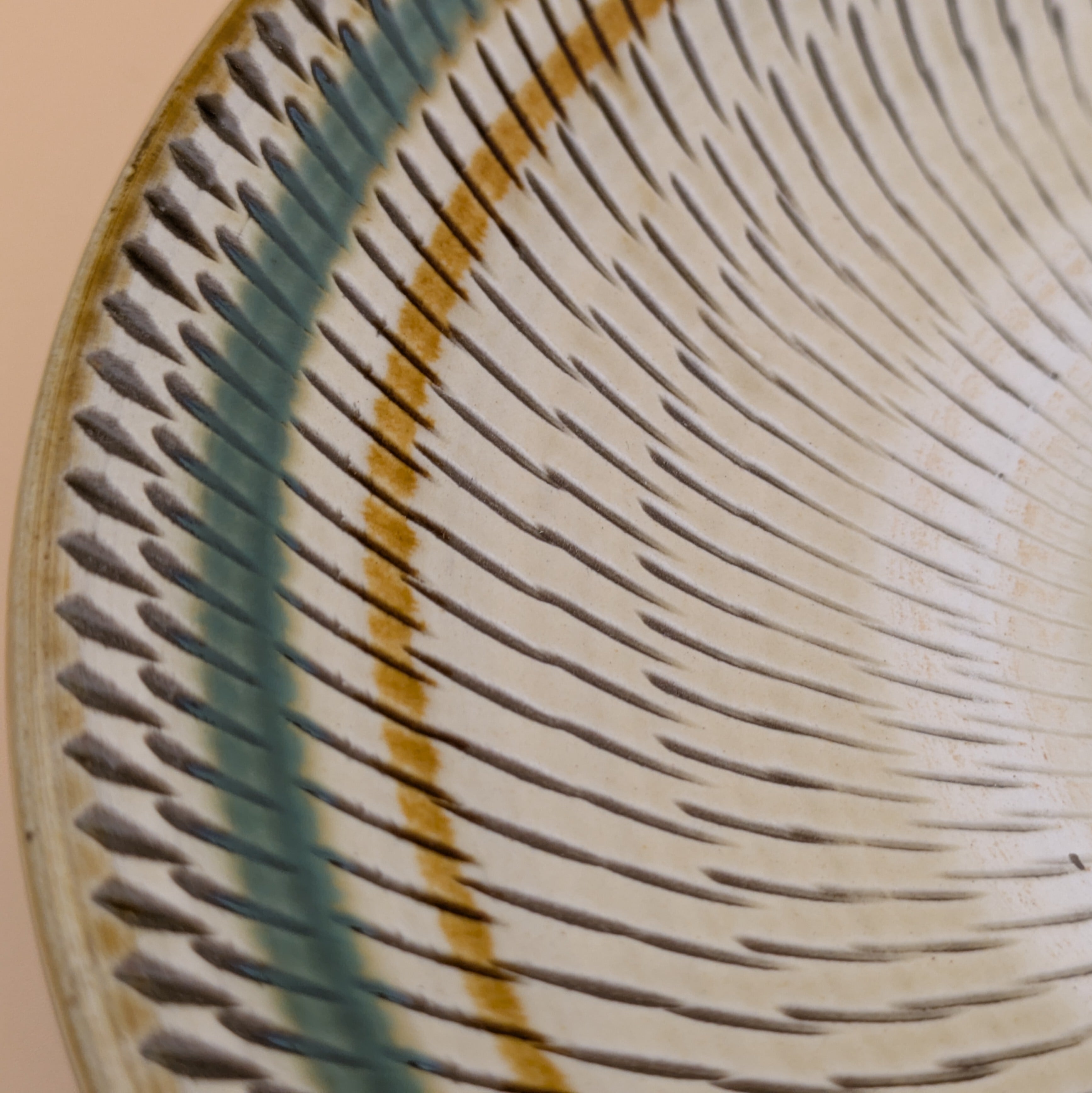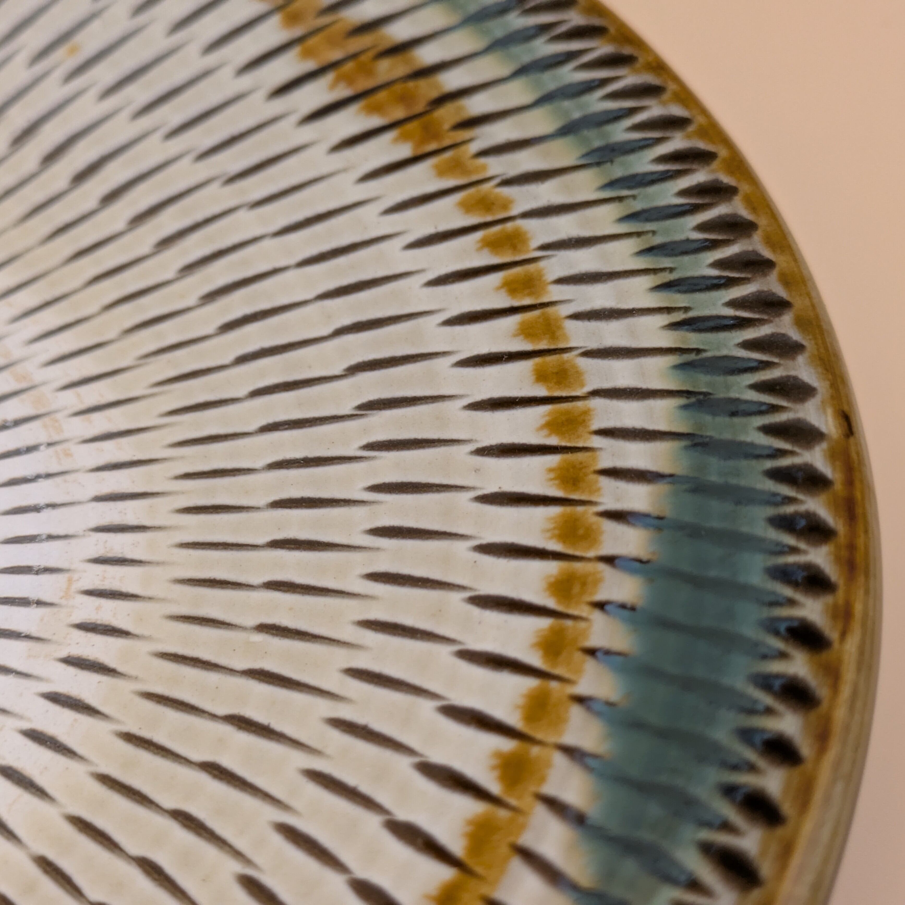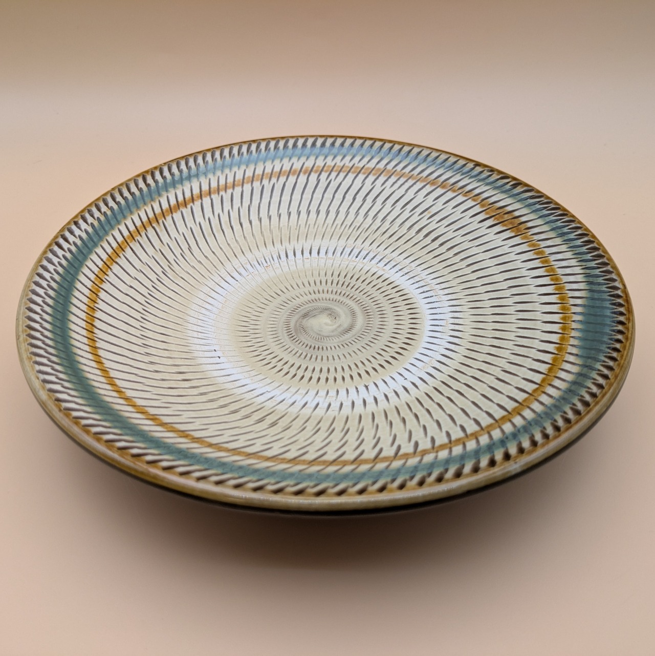 深皿7寸 小鹿田焼(縁三彩・飛び鉋) 直径21.2cm 高さ4.2cm 重量457g