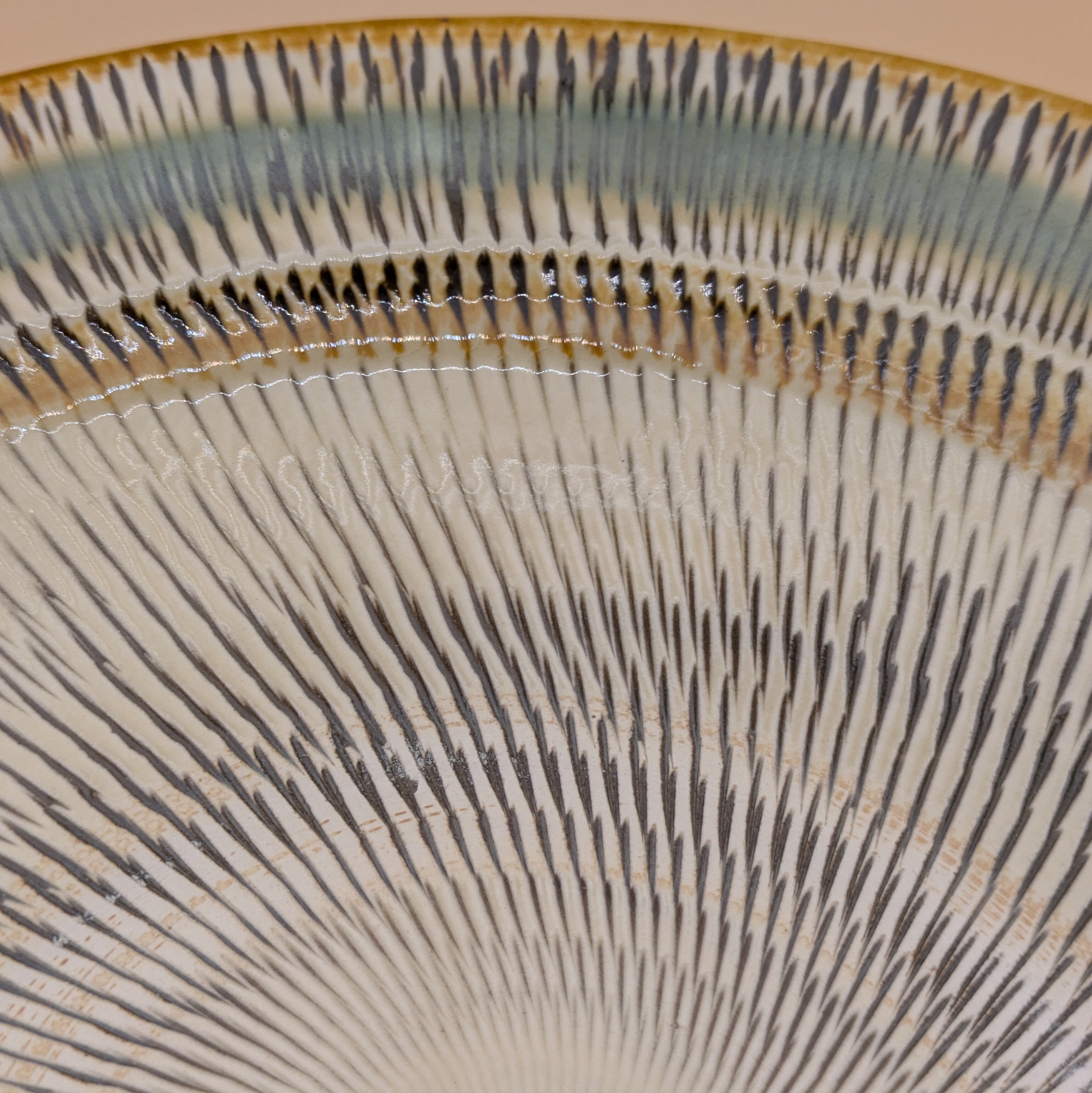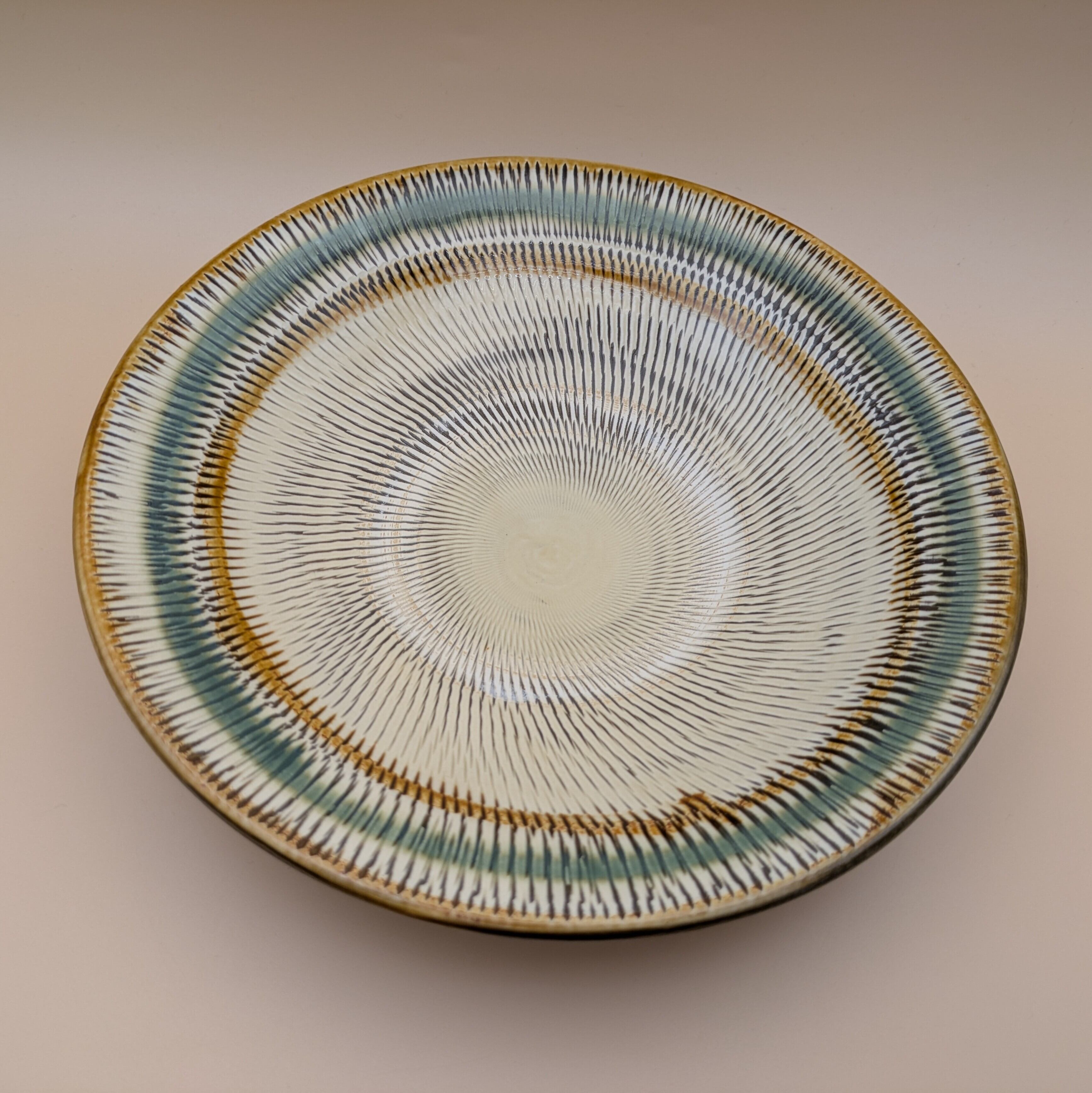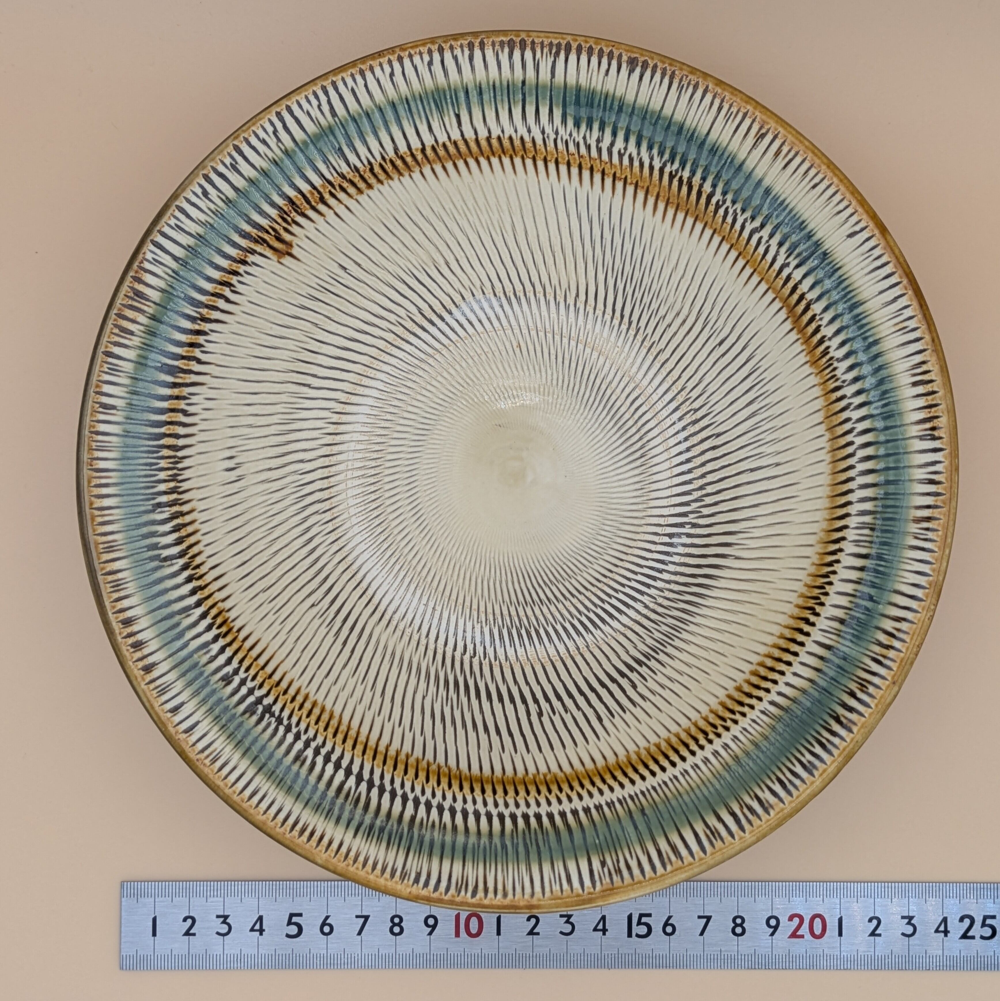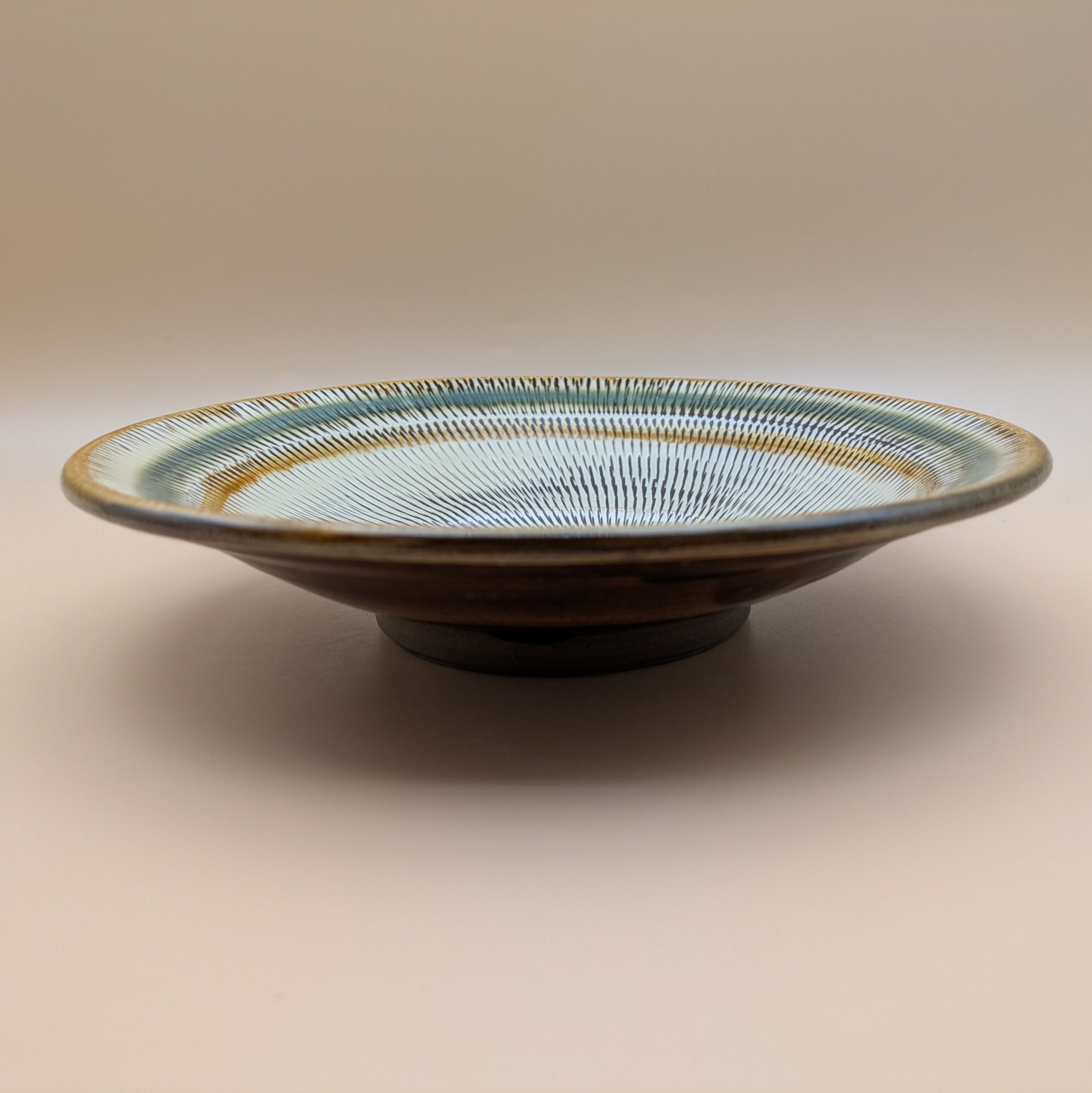 深皿8寸 小鹿田焼(縁三彩・飛び鉋) 直径23.5cm 高さ5.5cm 重量554g
