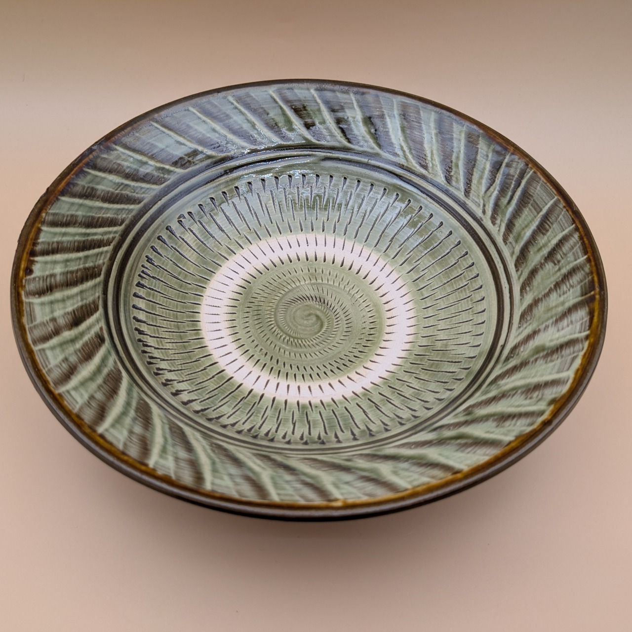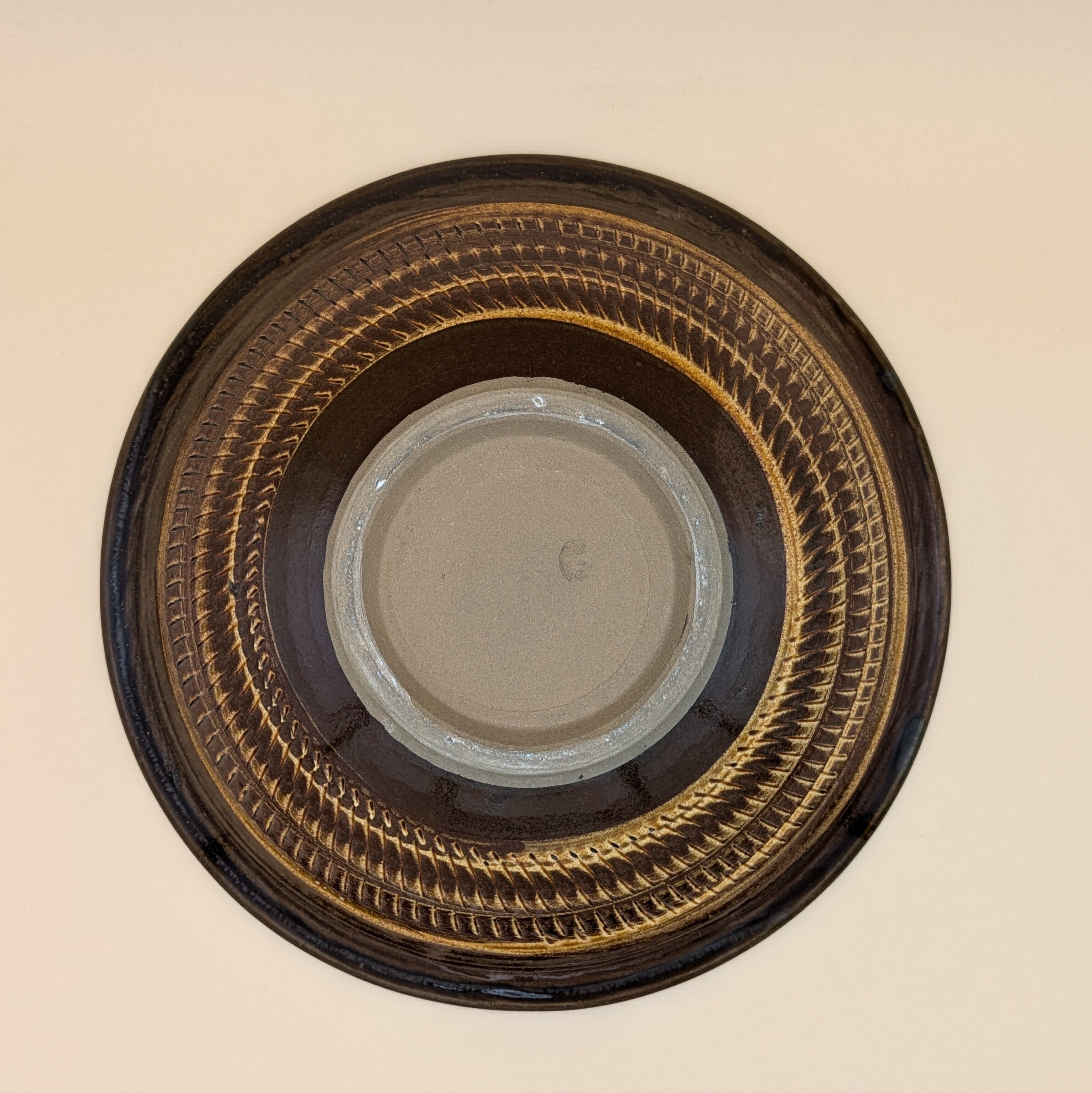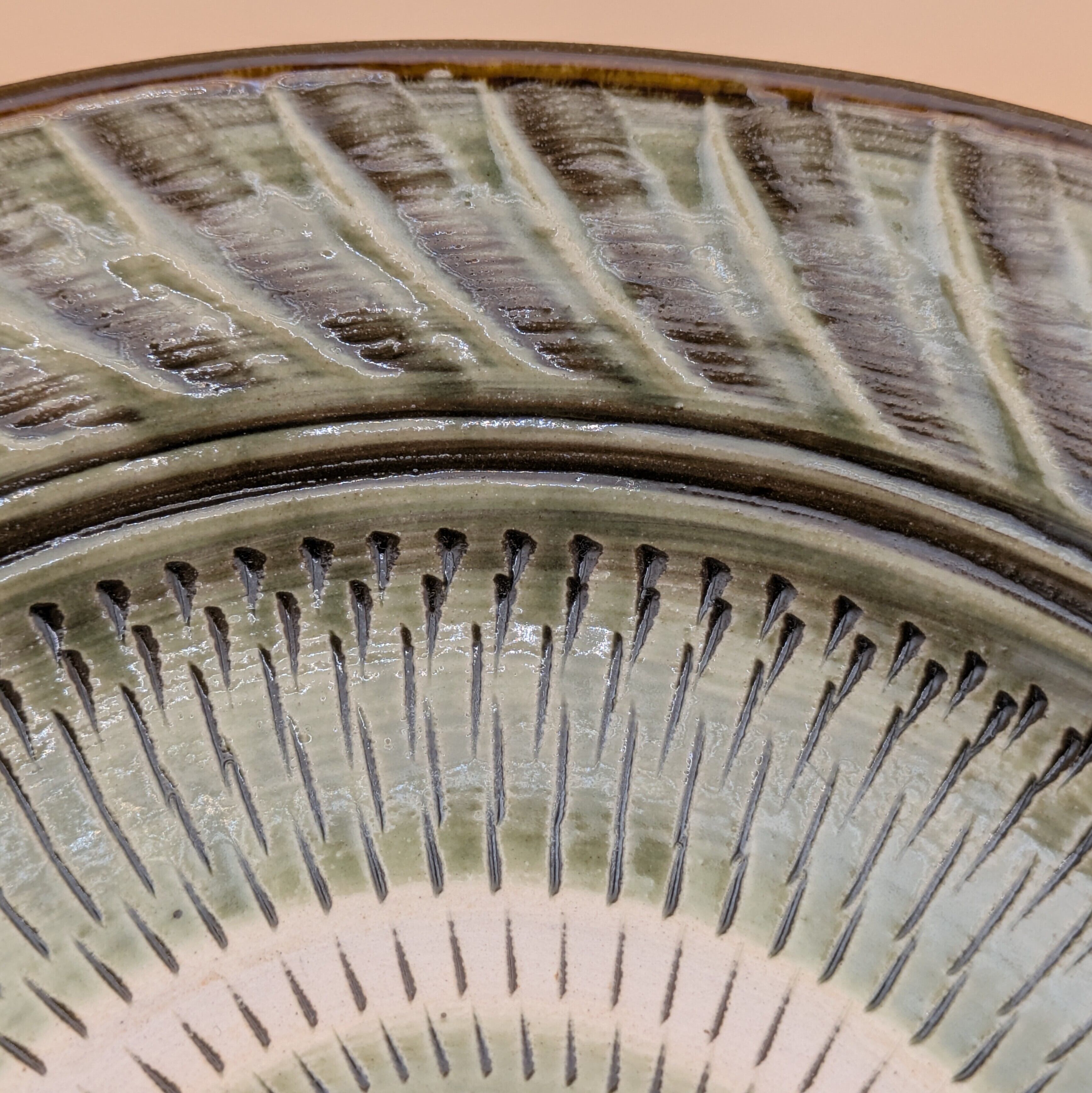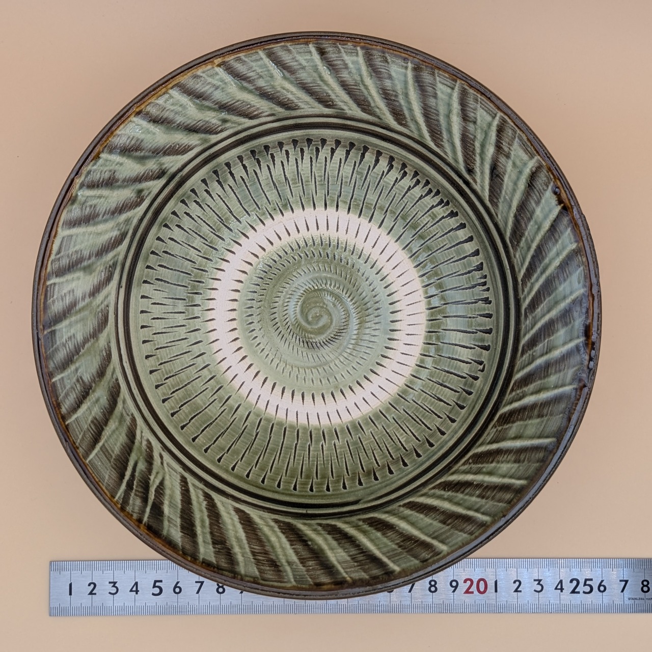 深皿8寸 小鹿田焼(縁刷毛目・表裏飛び鉋01) 直径24cm 高さ6.5cm 重量582g