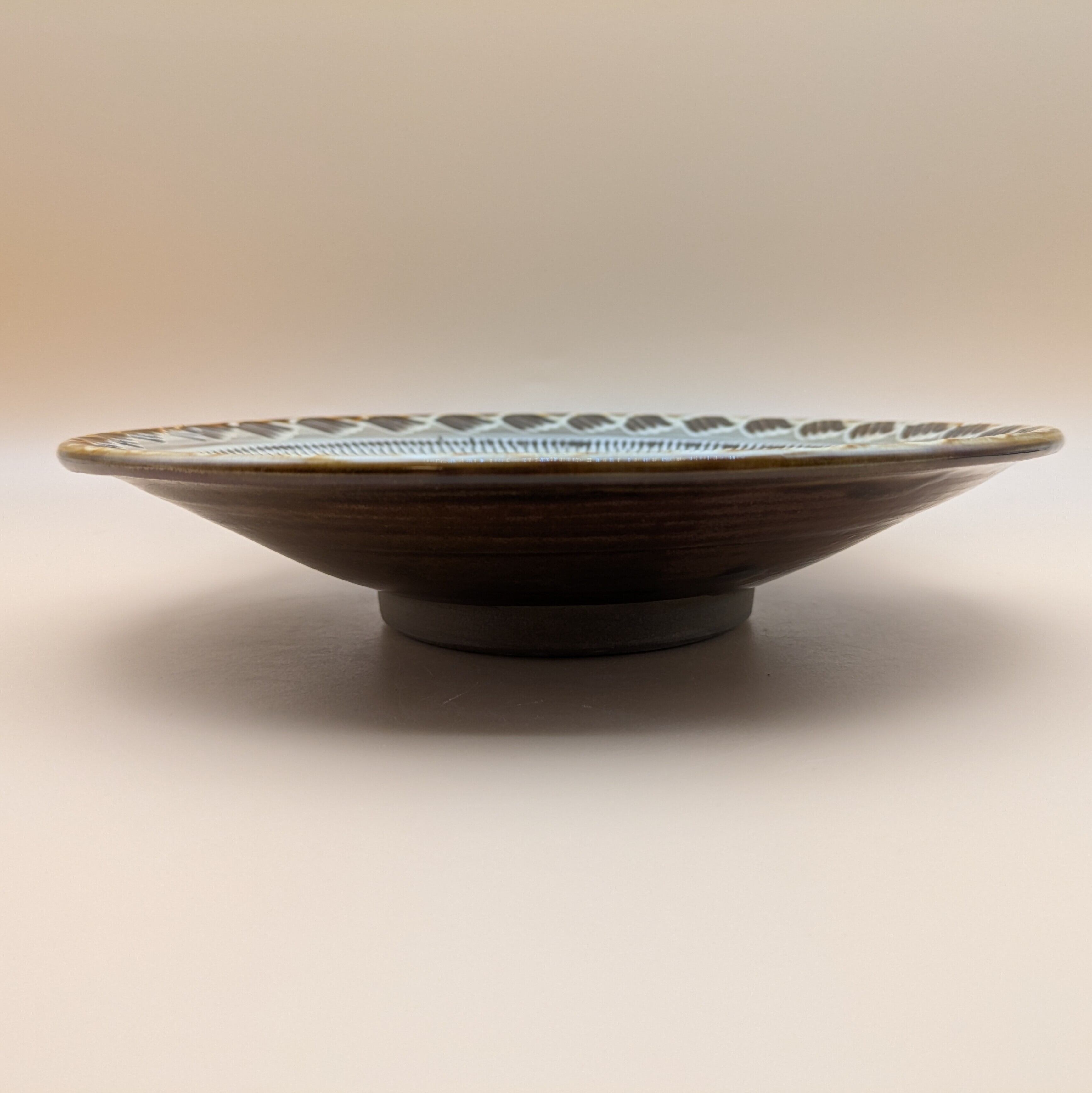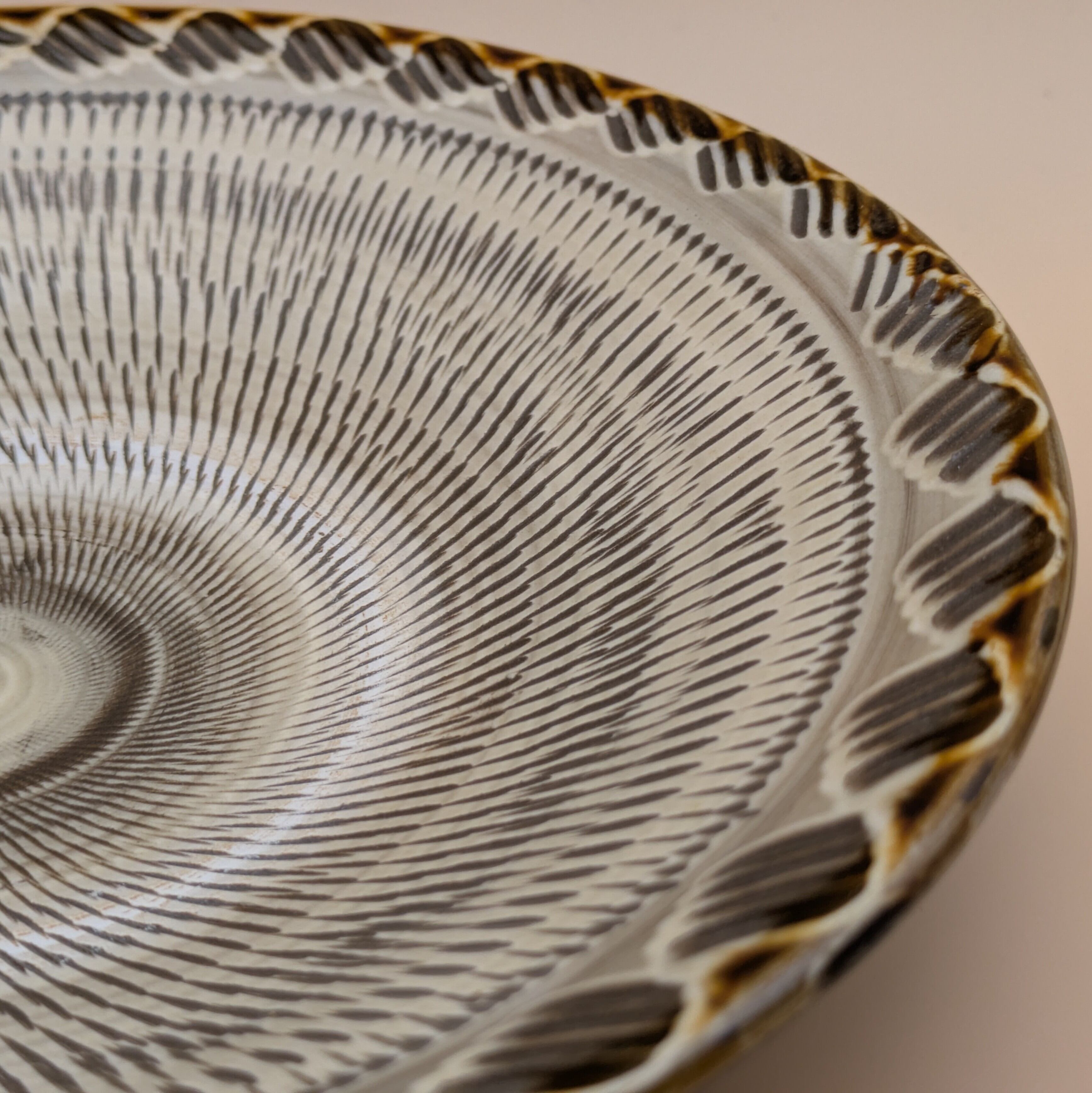 浅鉢8寸 小鹿田焼(縁4本櫛模様・飛び鉋02) 直径24.0cm 高さ5.0cm 重量593g