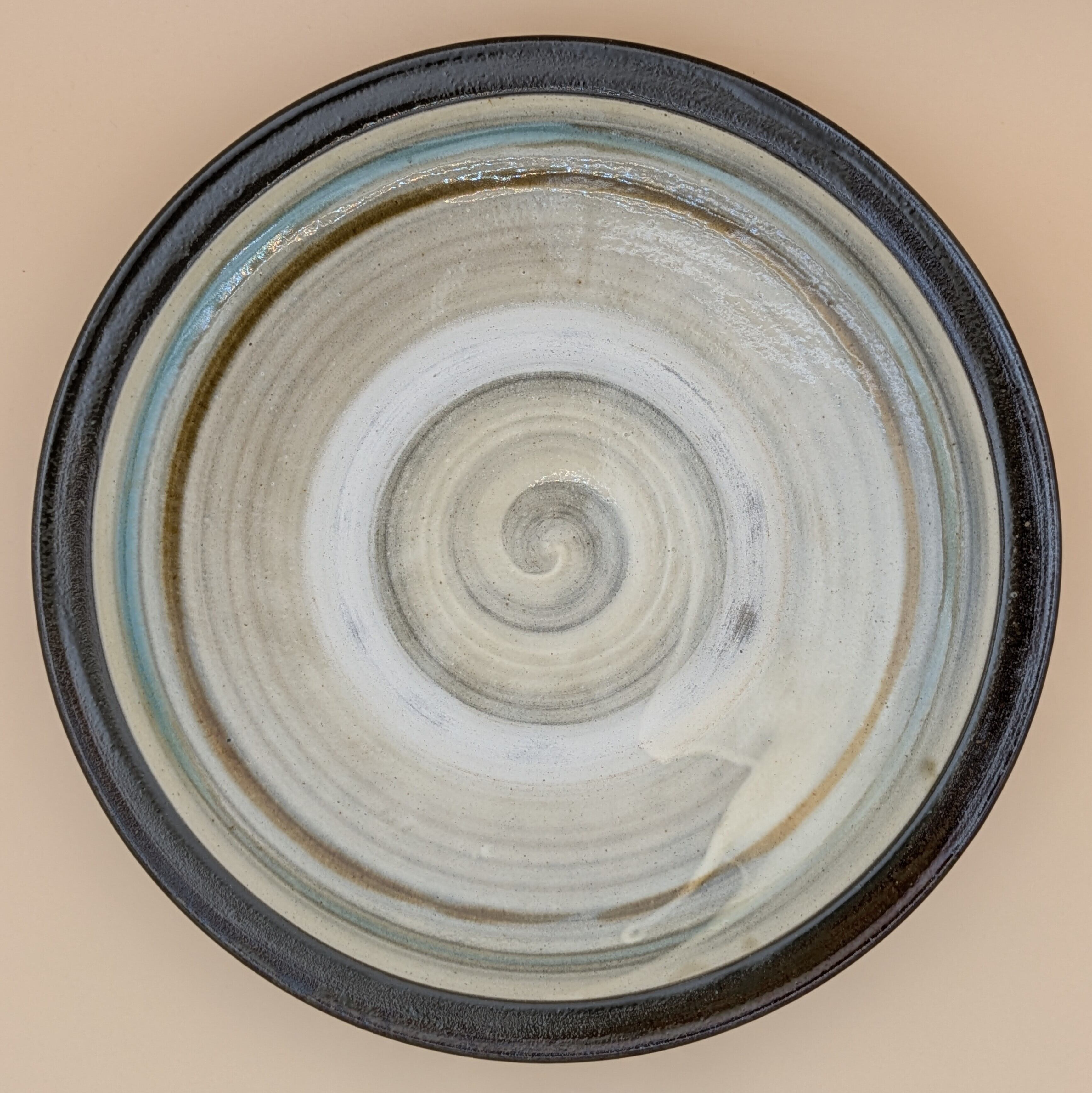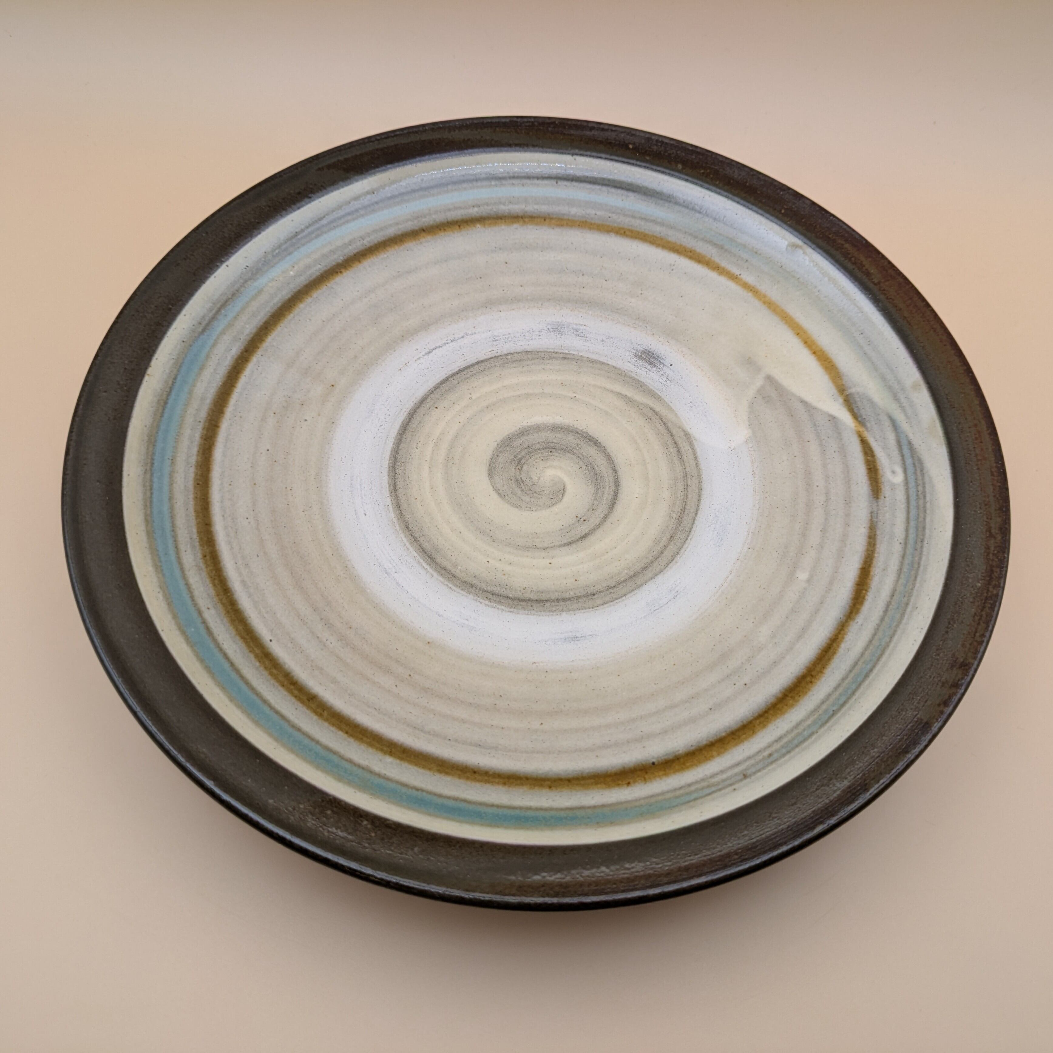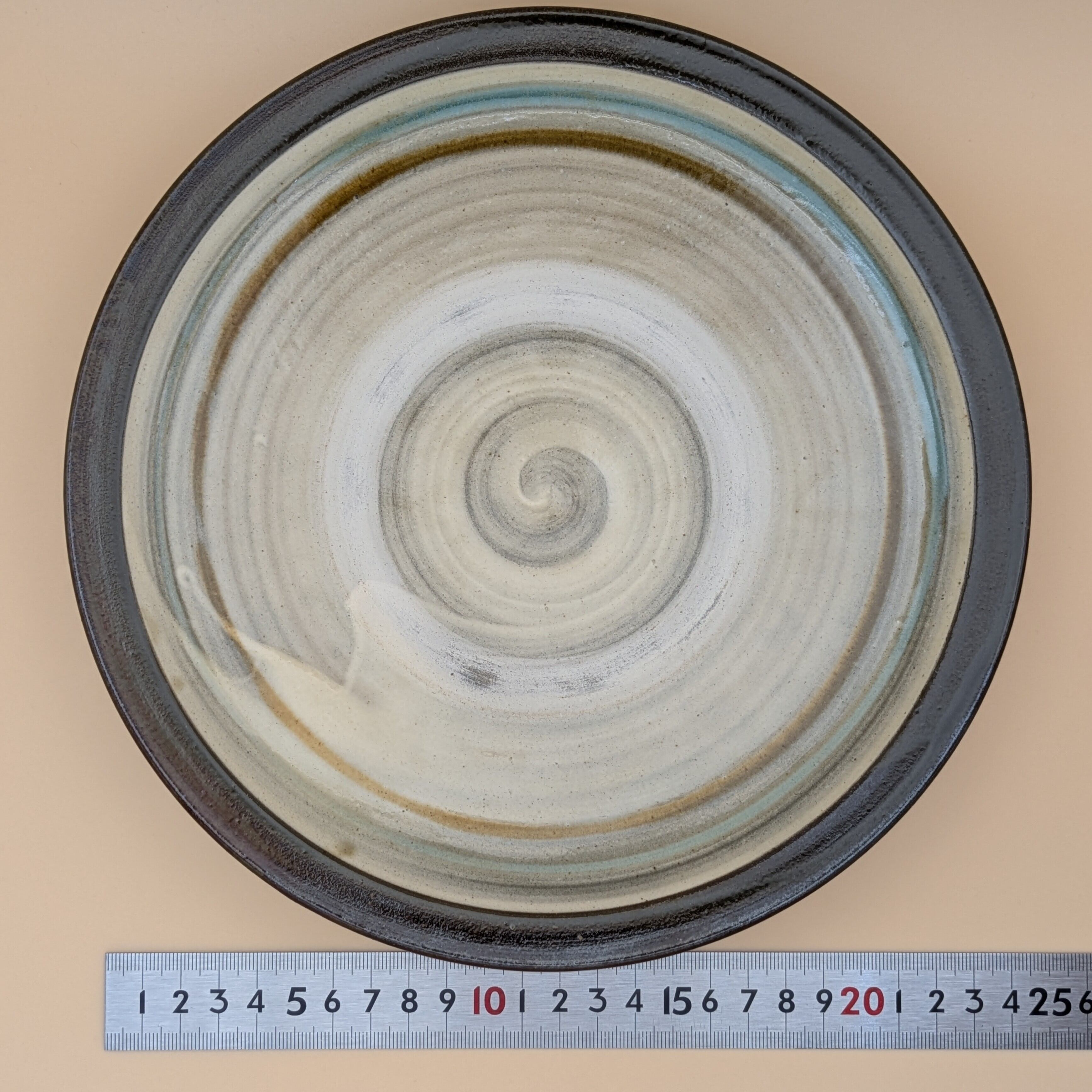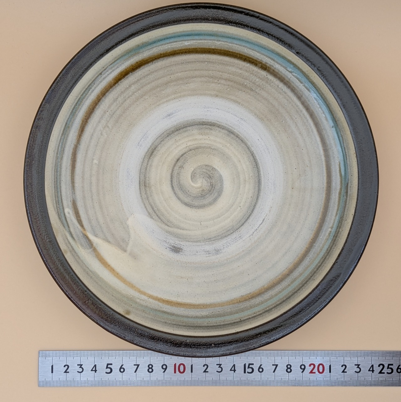 深皿8寸 小鹿田焼(縁三彩・白) 直径24.0cm 高さ4.0cm 重量632g