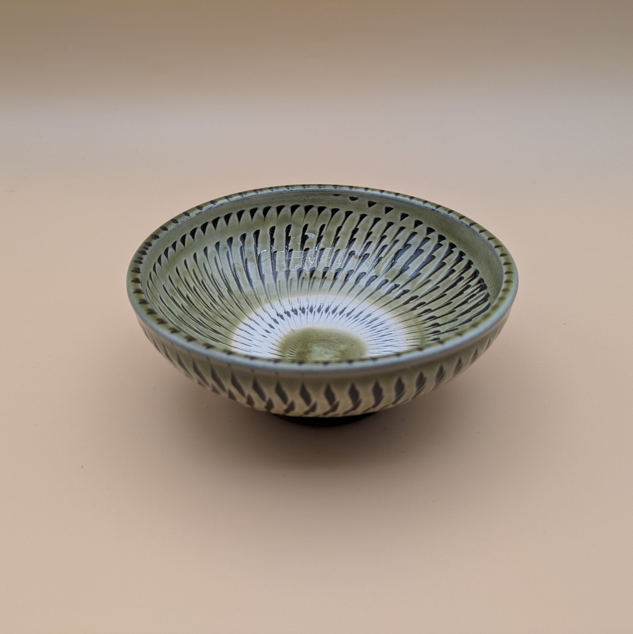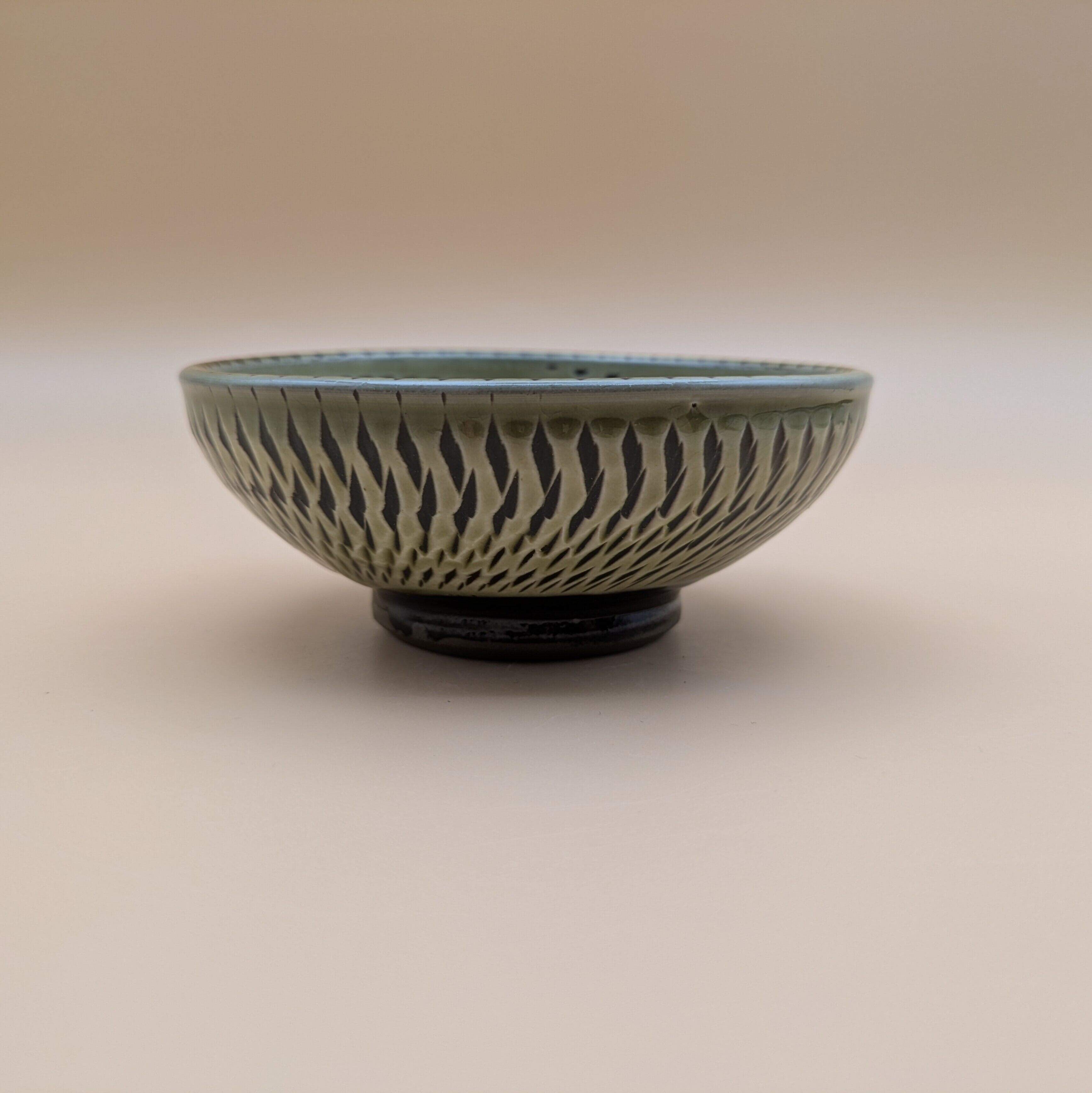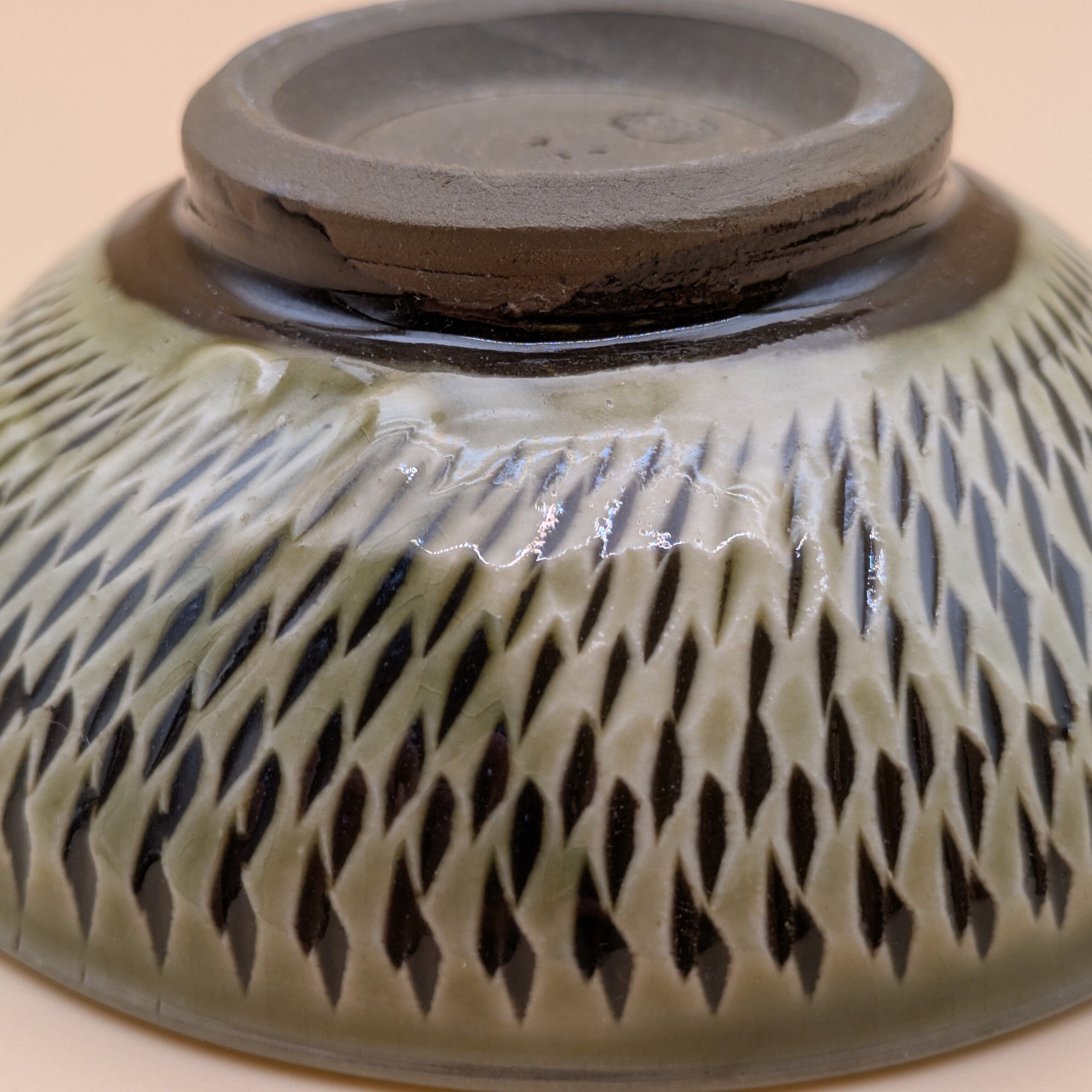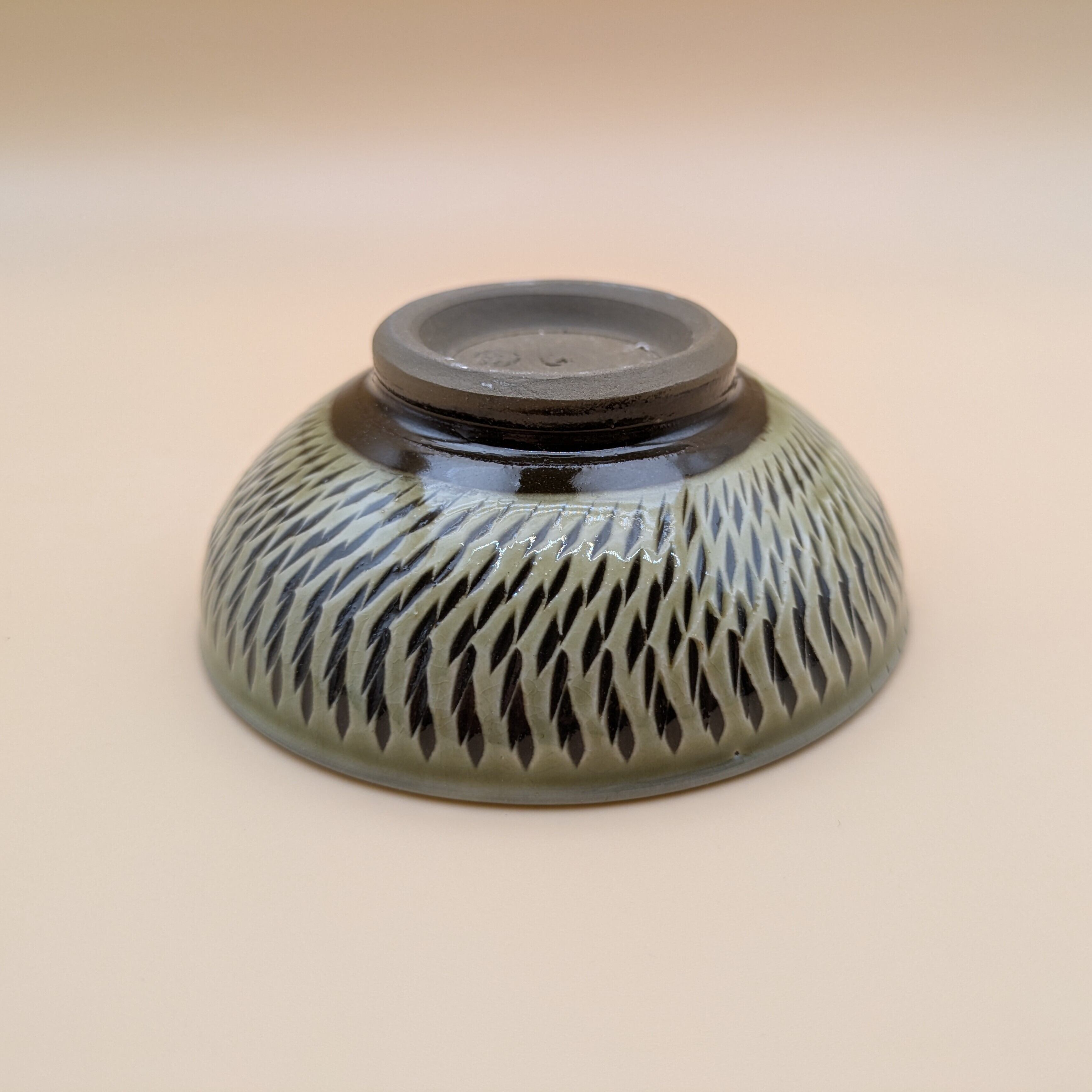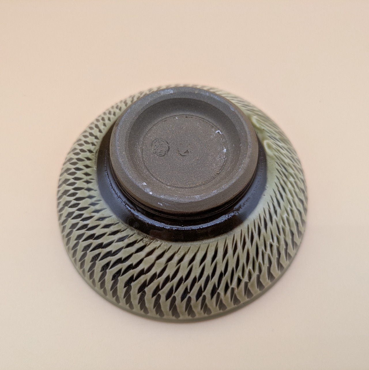 盛皿3.5寸 小鹿田焼(縁・表裏飛び鉋)直径11cm高台直径5.5cm 高さ4.5cm 重量166g