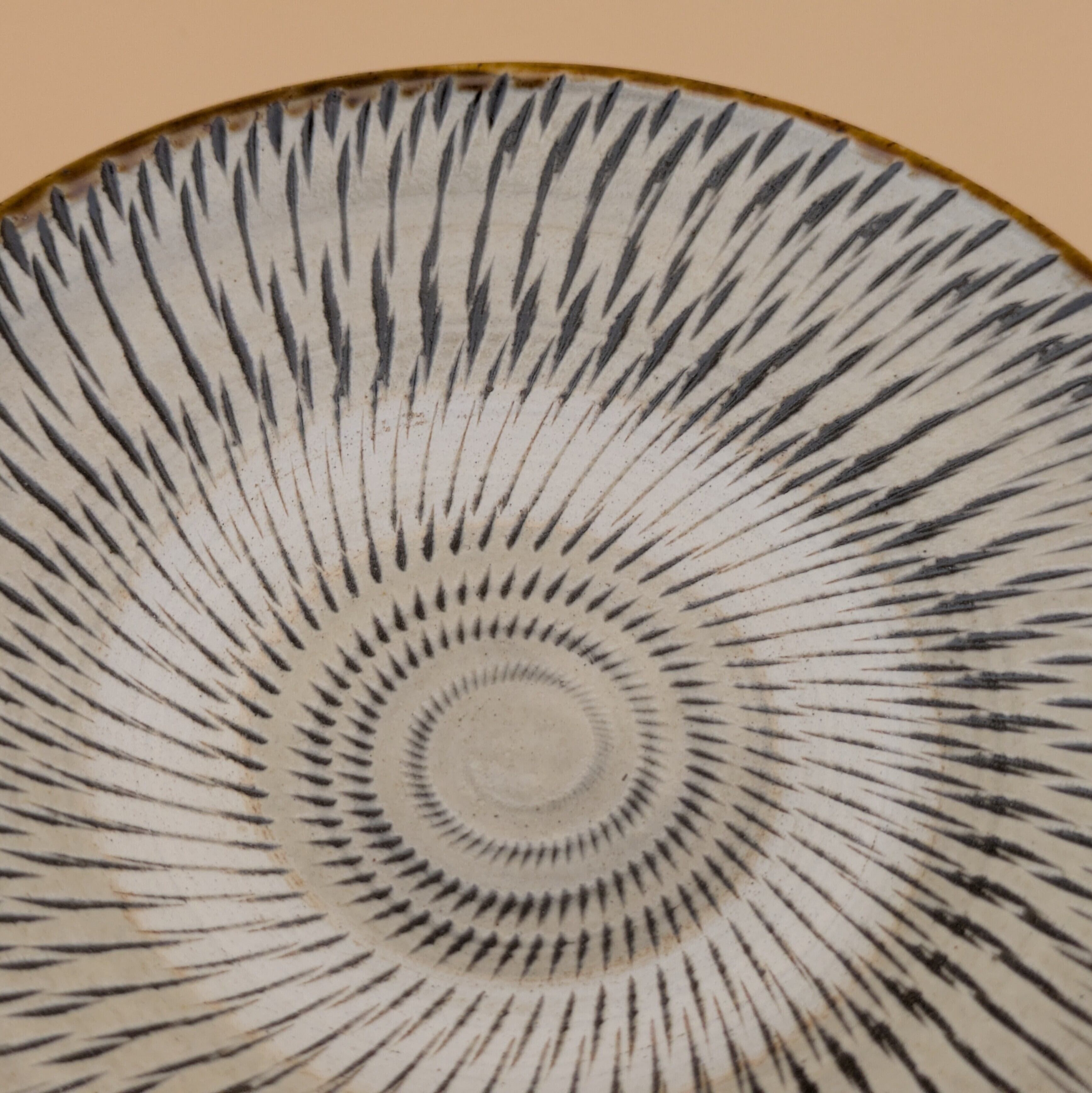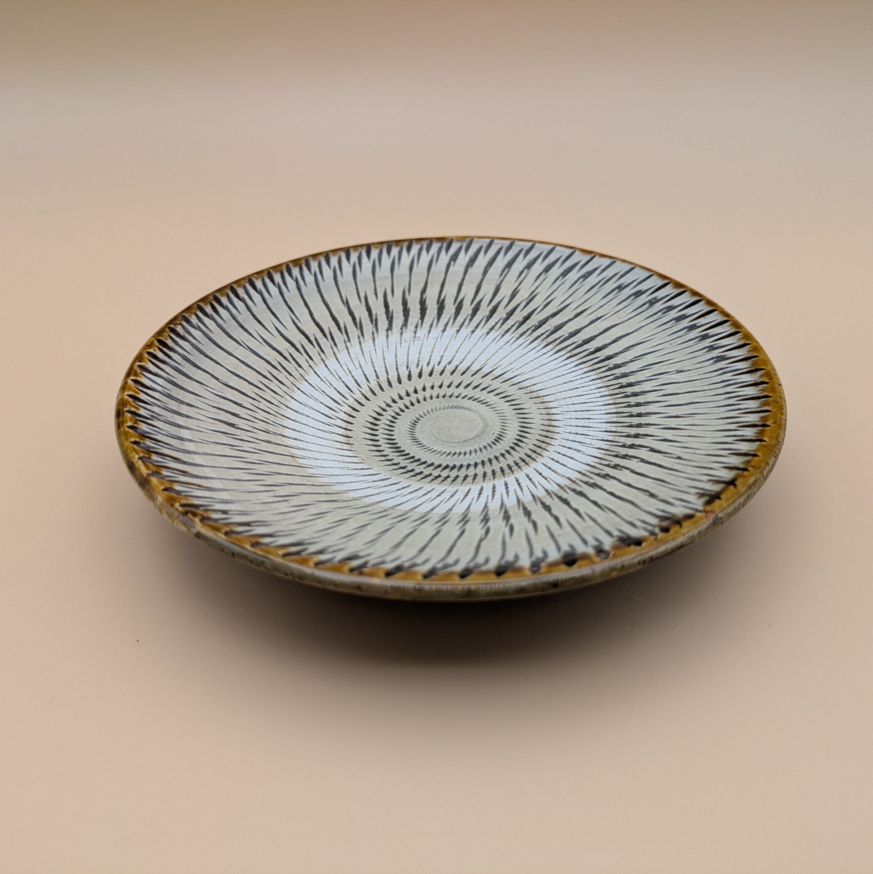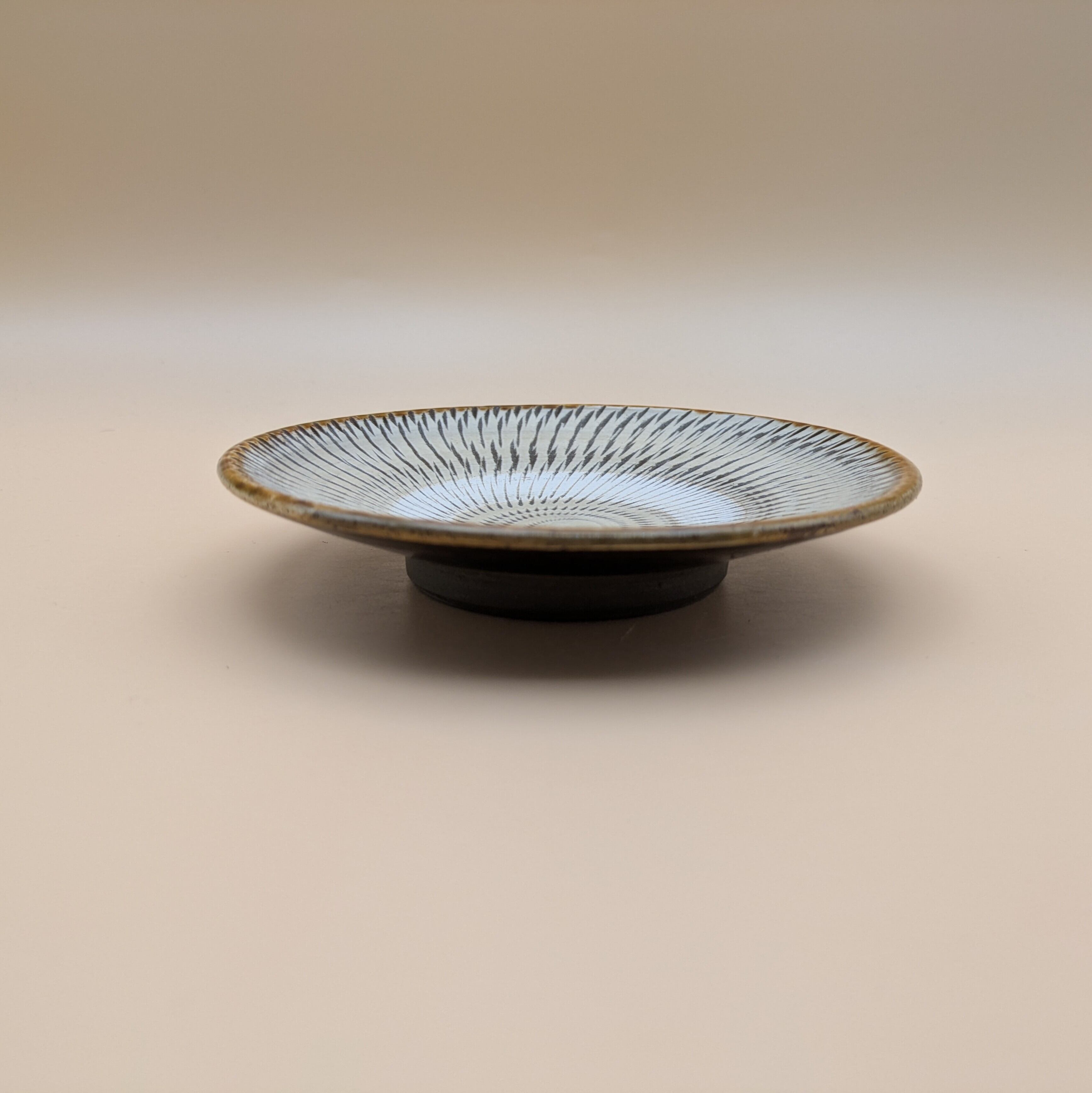 深皿4.5寸 小鹿田焼(白 飛び鉋01) 直径13.5cm 高さ2.6cm 重量169g