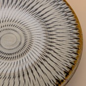 縁に施された山吹色の釉が、食卓に上品な彩りを添えます。また、飛び鉋の特徴的な磁器素地が、料理の見栄えを一段と引き立てます。お料理を盛り付けるのに適したサイズで、美食を演出する一皿となることでしょう。