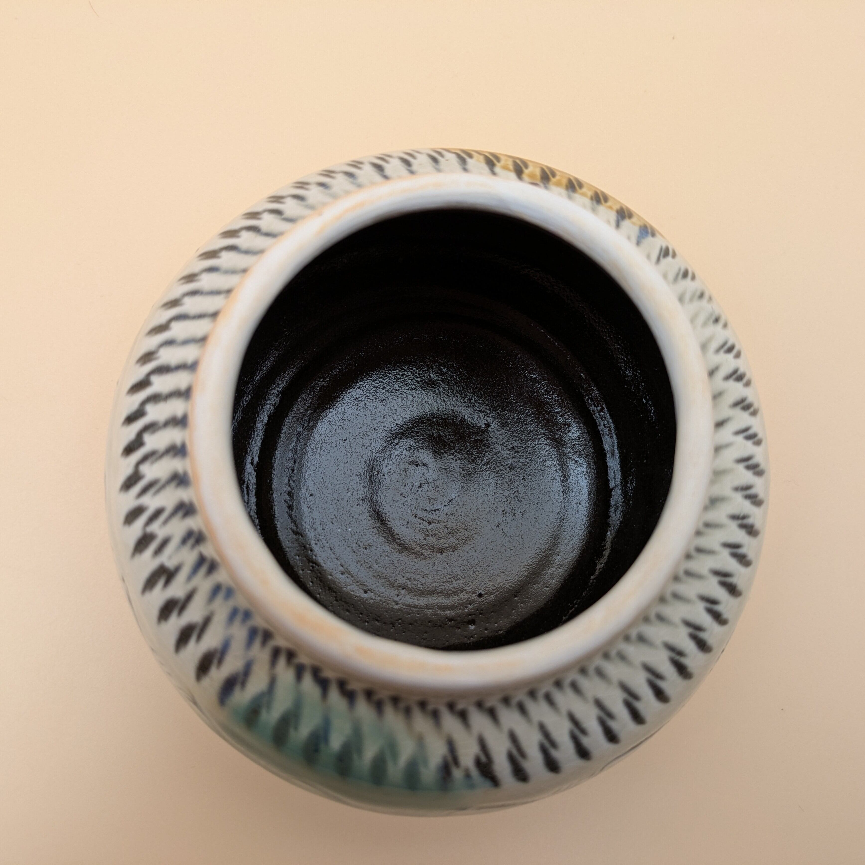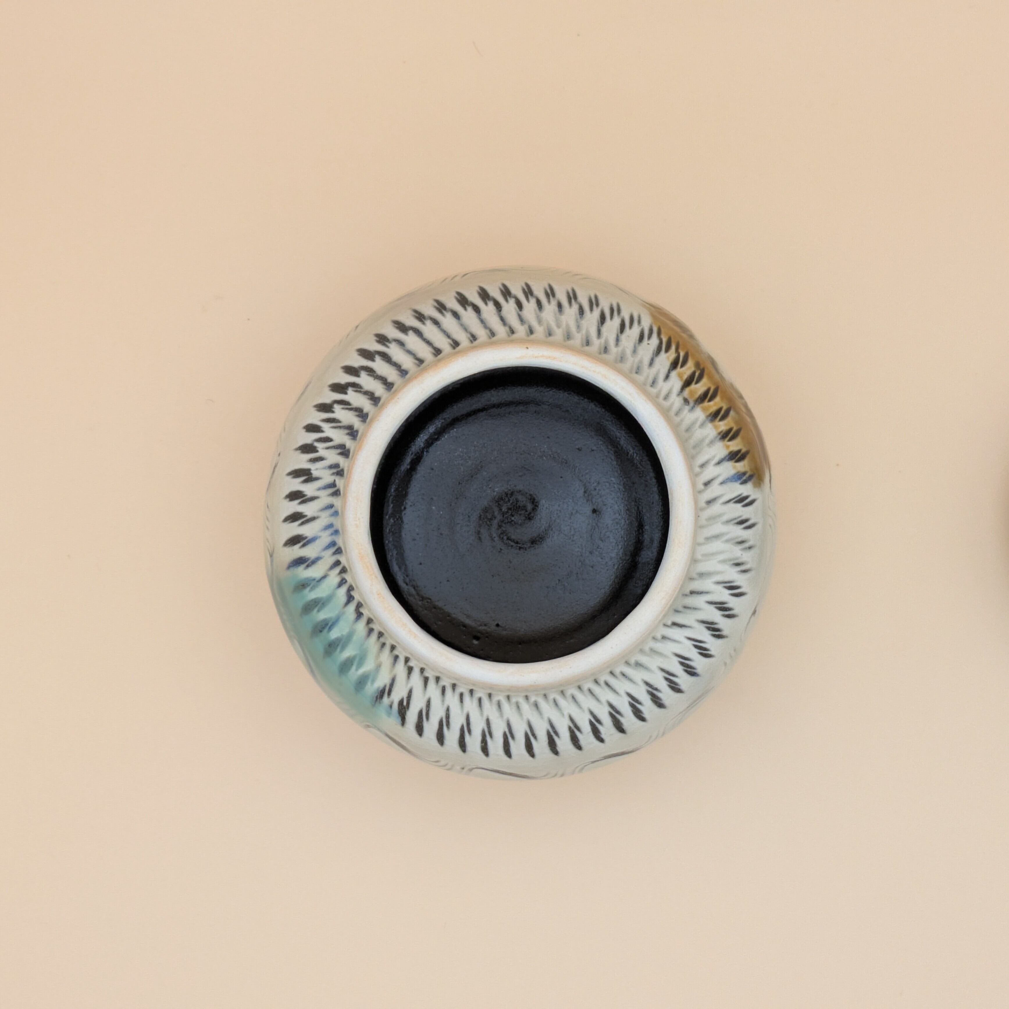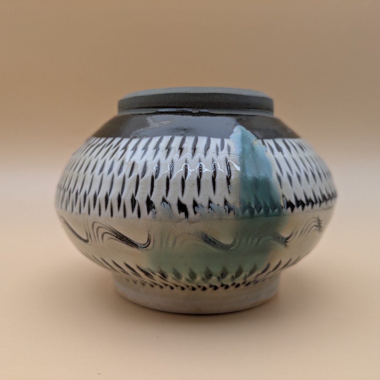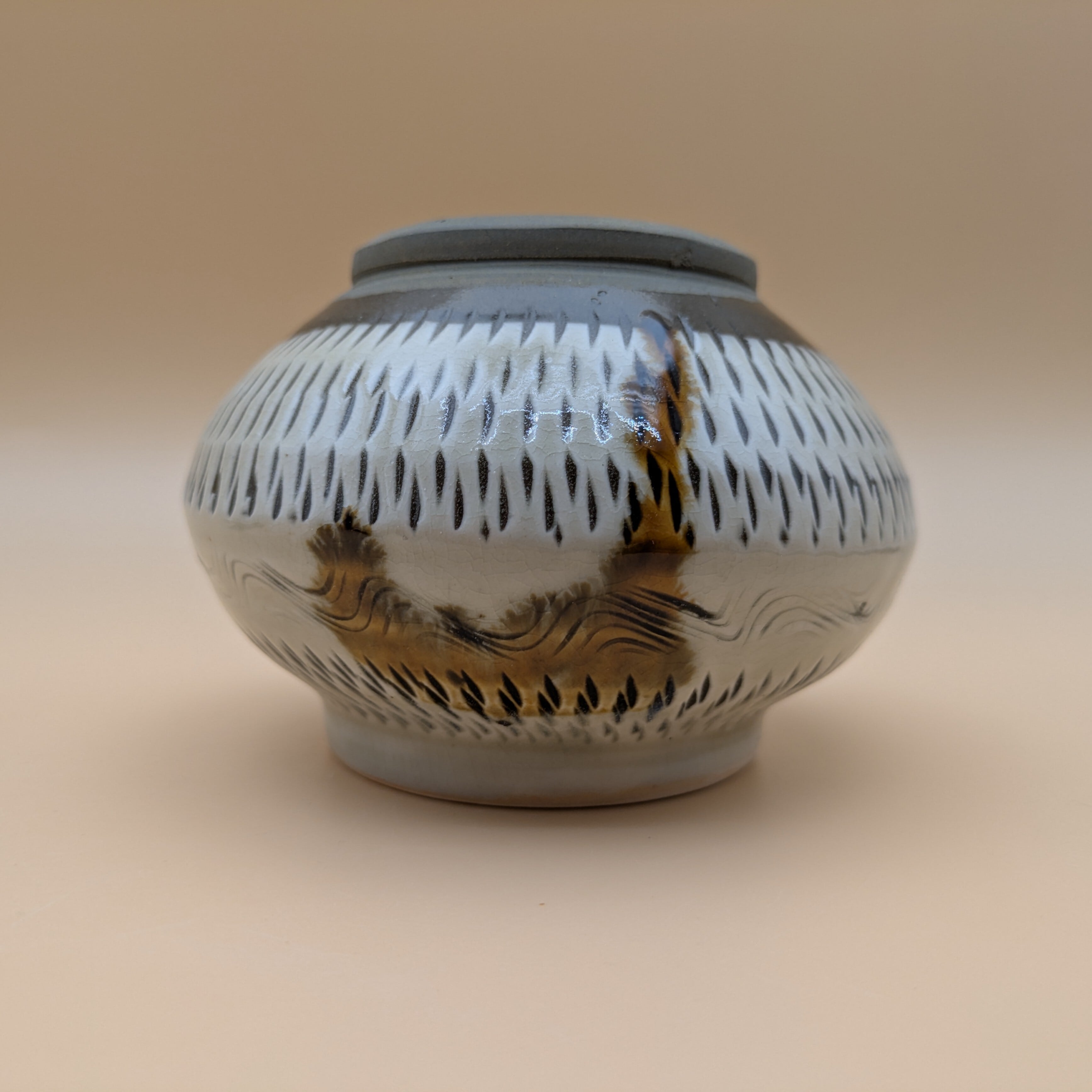 蓋つき壺 小鹿田焼(三彩・飛び鉋) 最大径12.5cm 開口部外径7.4cm内径6.0cm