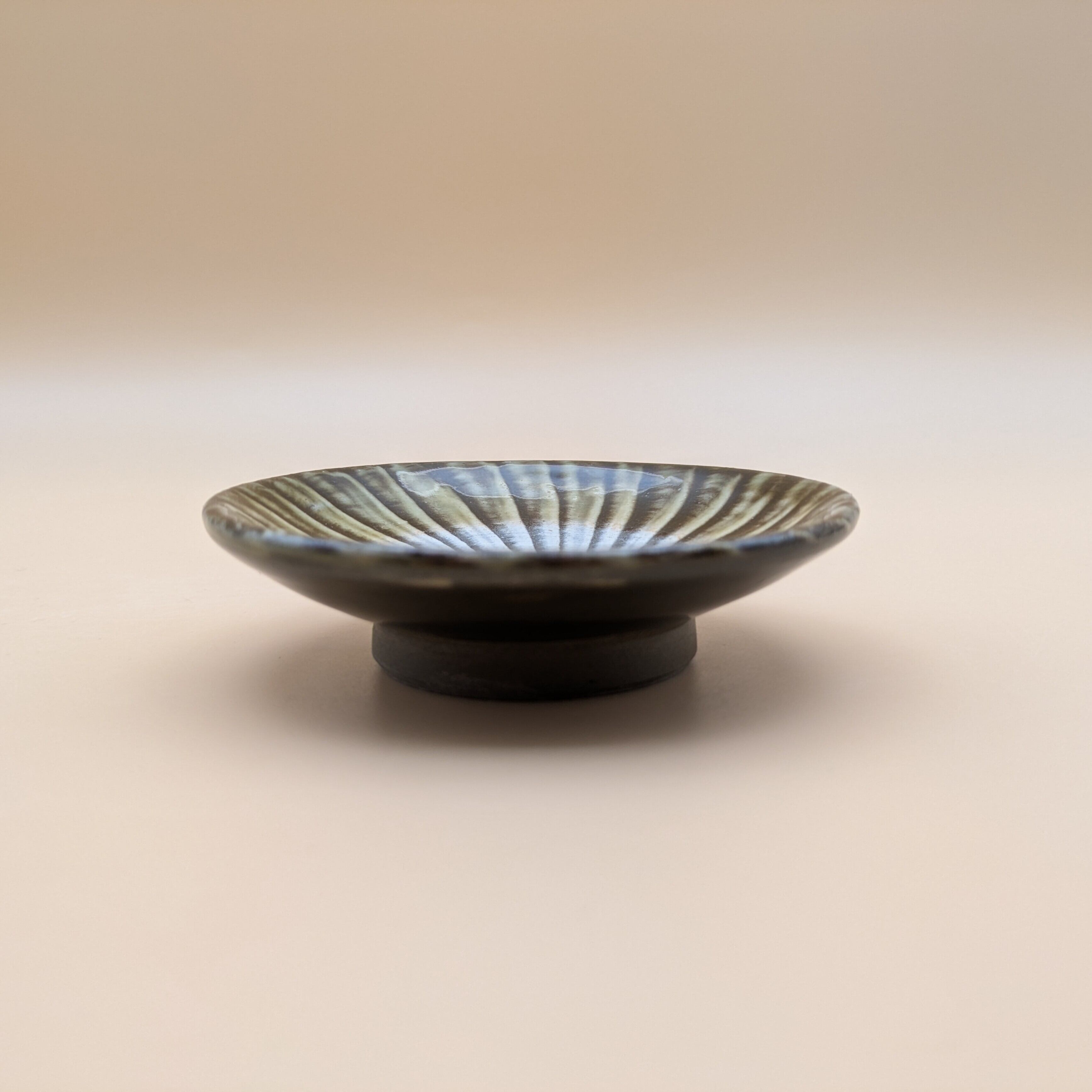 これは、小鹿田焼の職人たちの技術と情熱が注がれて生まれた一品です。昔ながらの製法と現代的なデザインが融合し、一つ一つ手作業で仕上げられています。そのため、同じ商品でも一つ一つ表情が異なり、個性的な豆皿としてお楽しみいただけます。