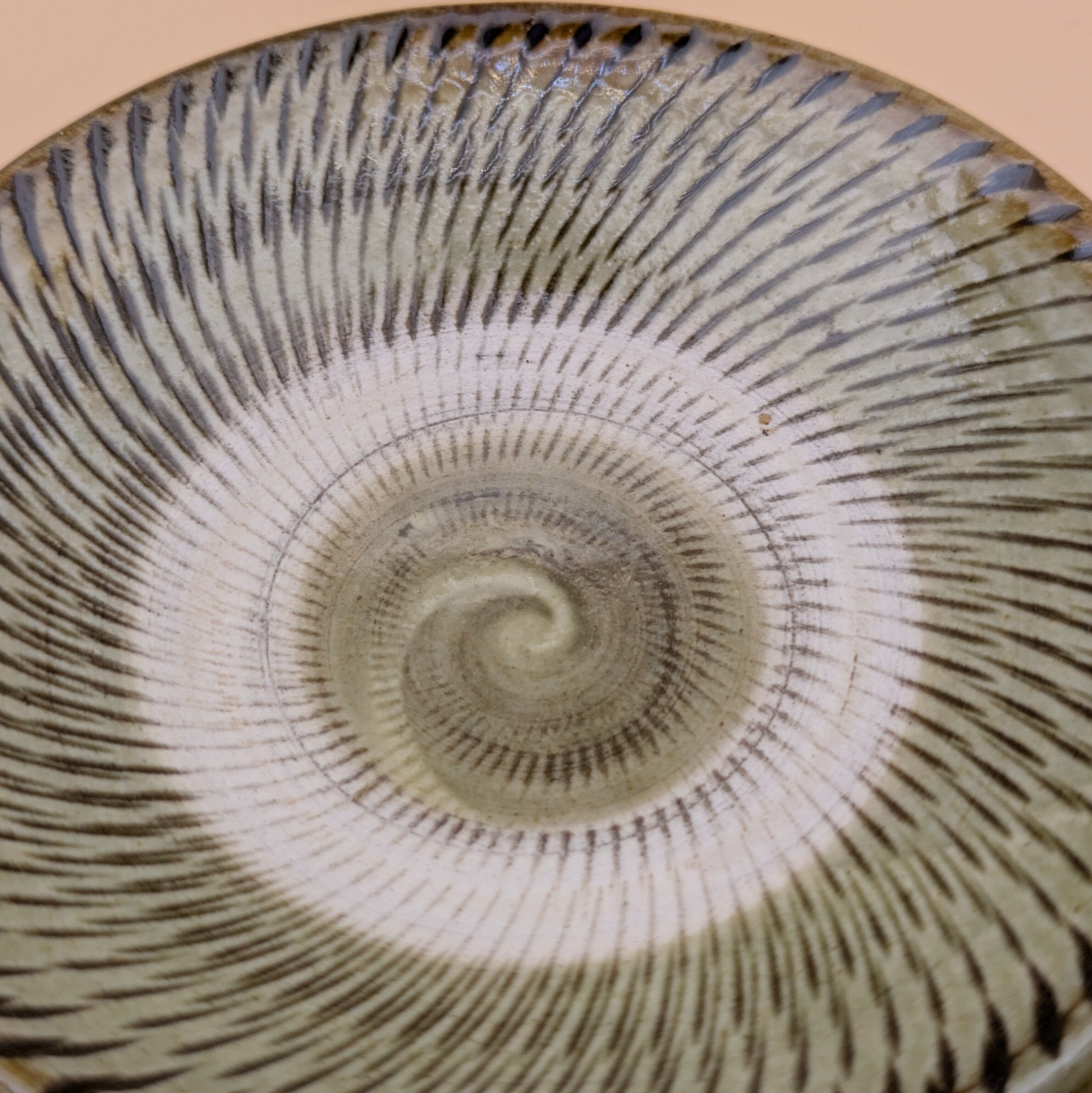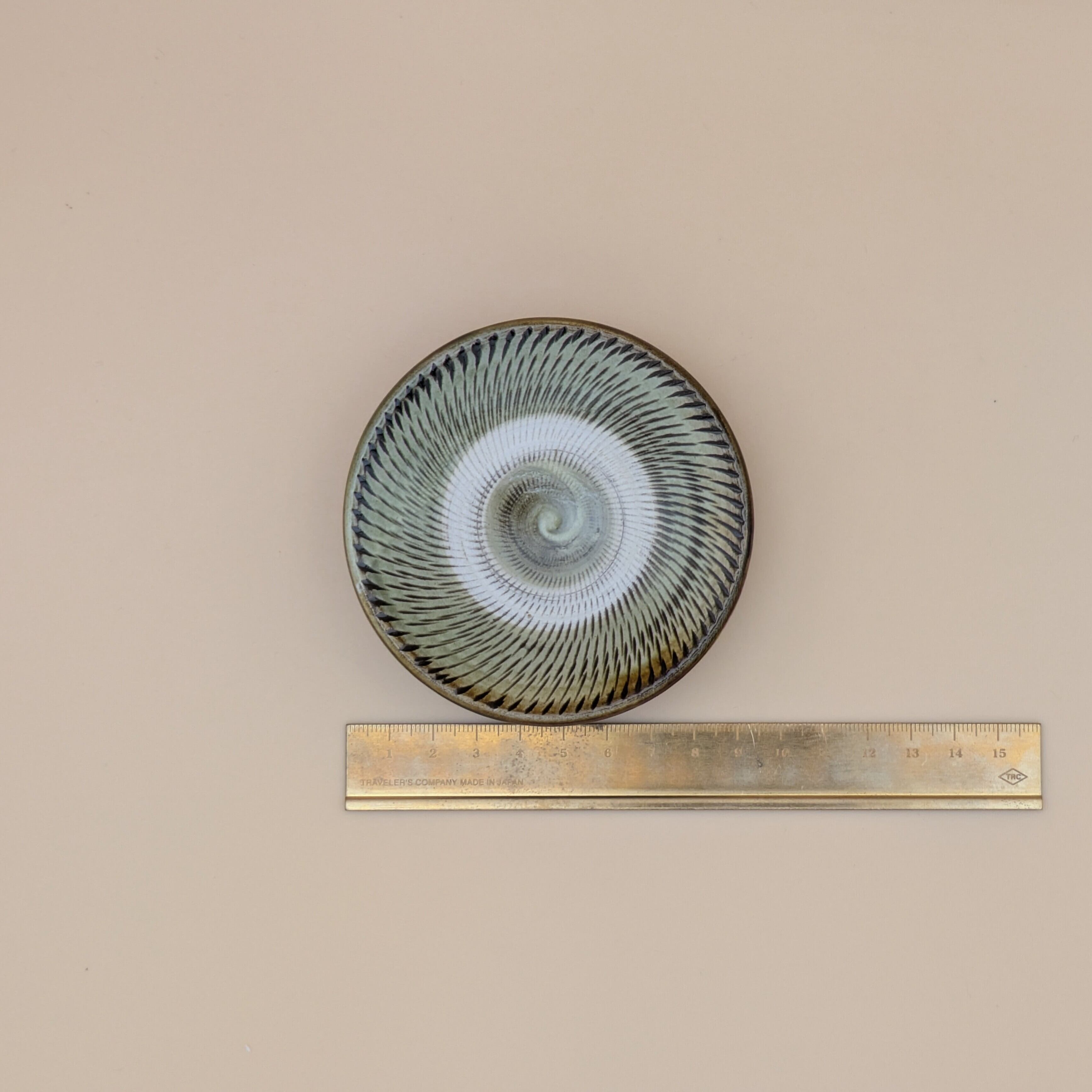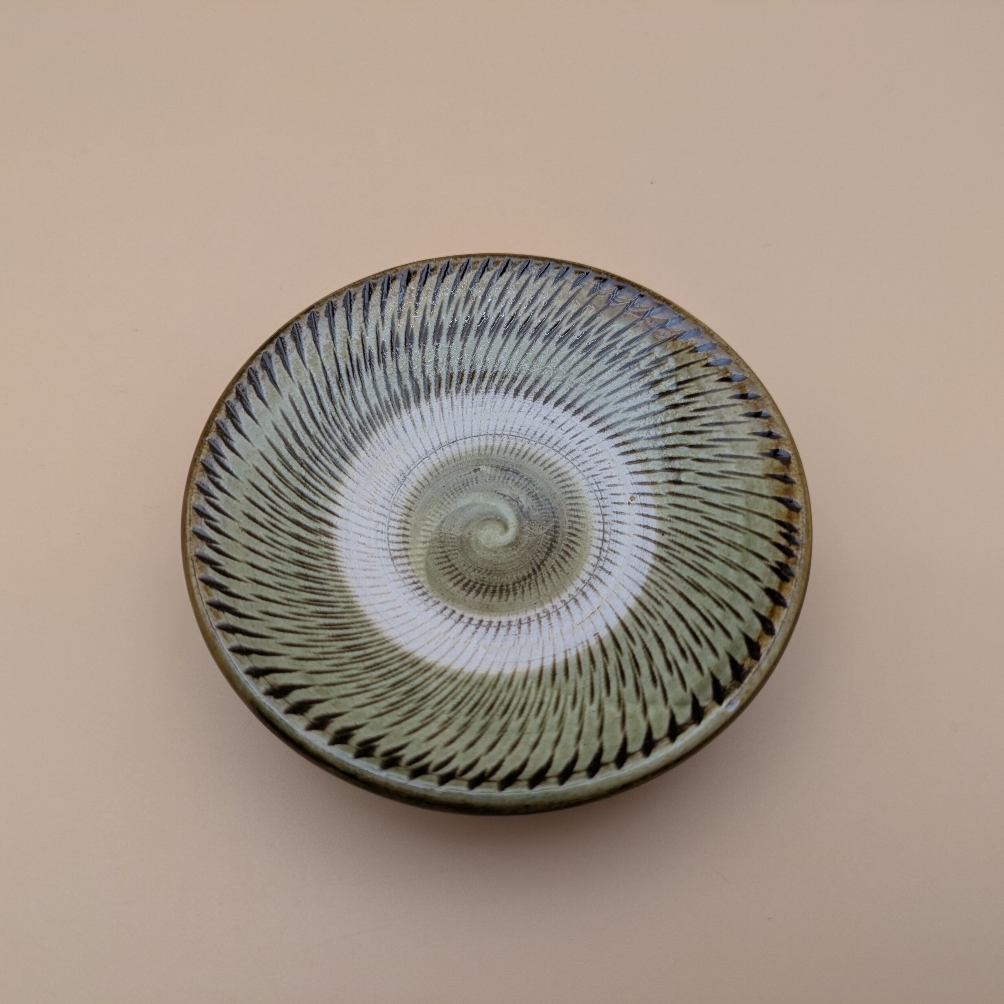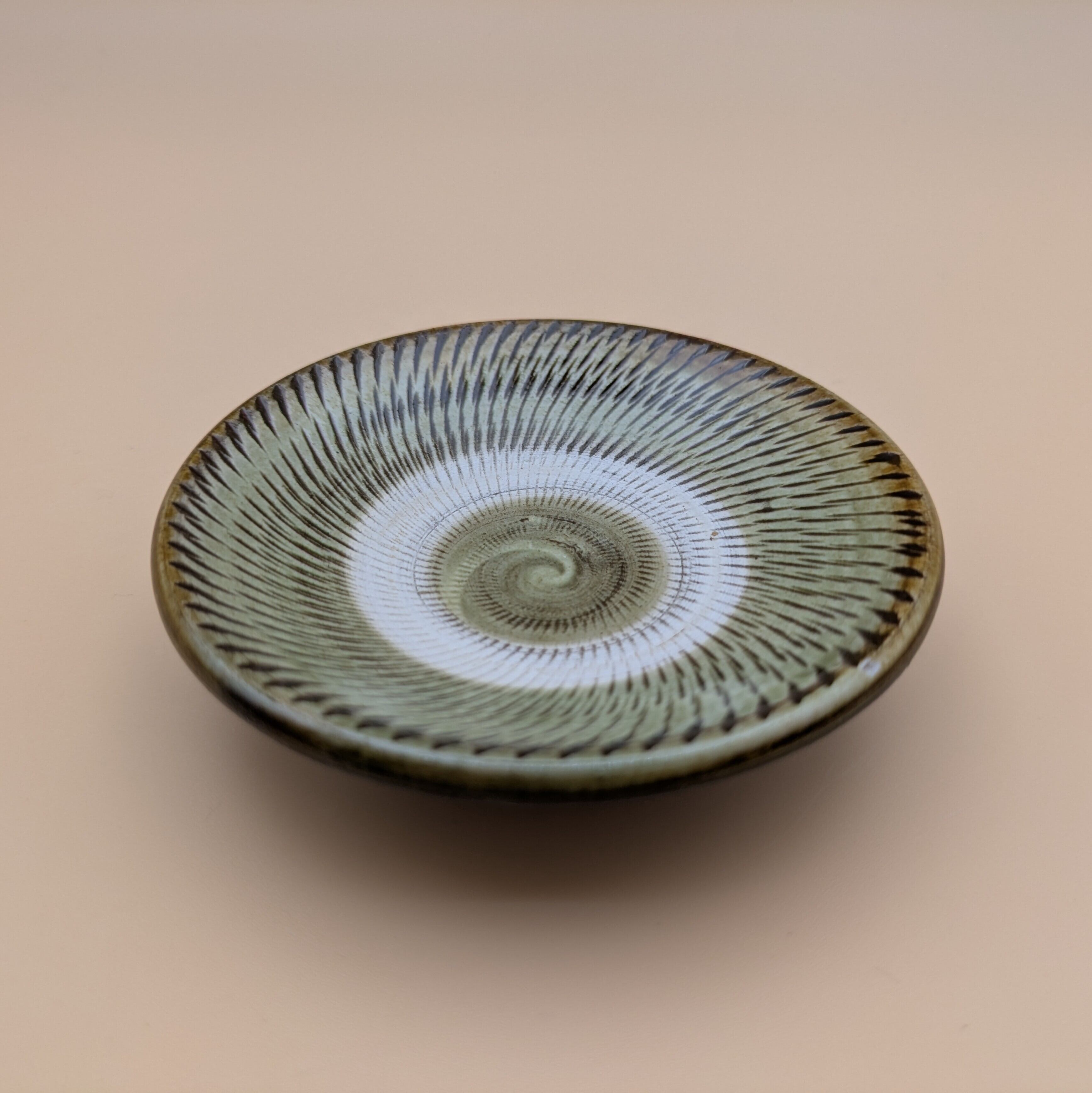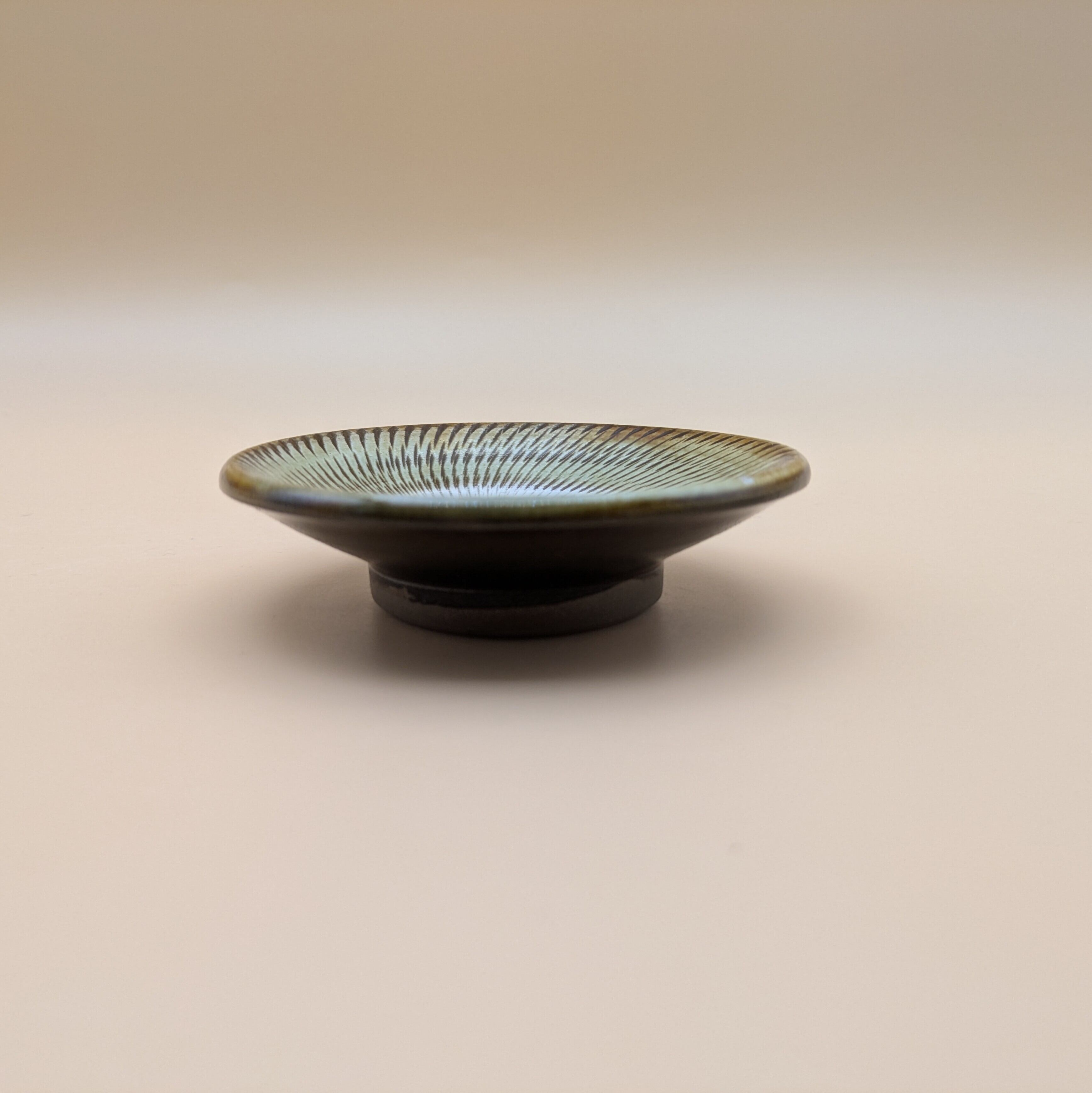 豆皿 小鹿田焼(薄緑 飛び鉋01) 直径9.0cm 高さ2.3m 重量90g