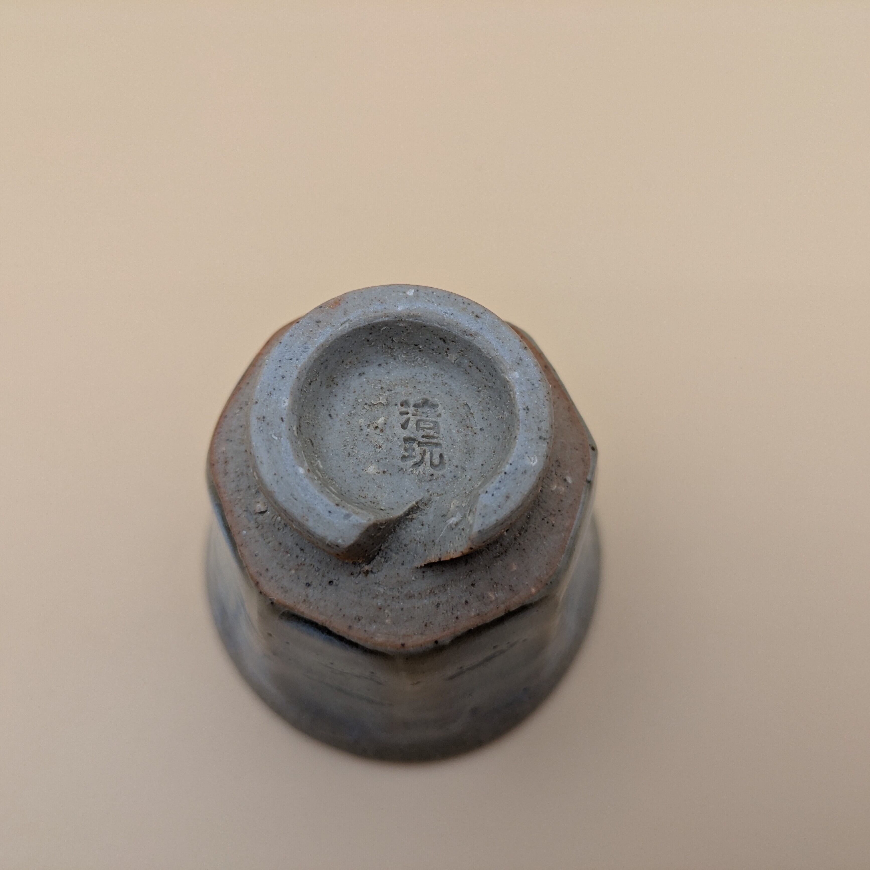 湯呑(小) 萩焼(灰青 面取01) 直径6.3cm 高さ5.5cm 重量89g