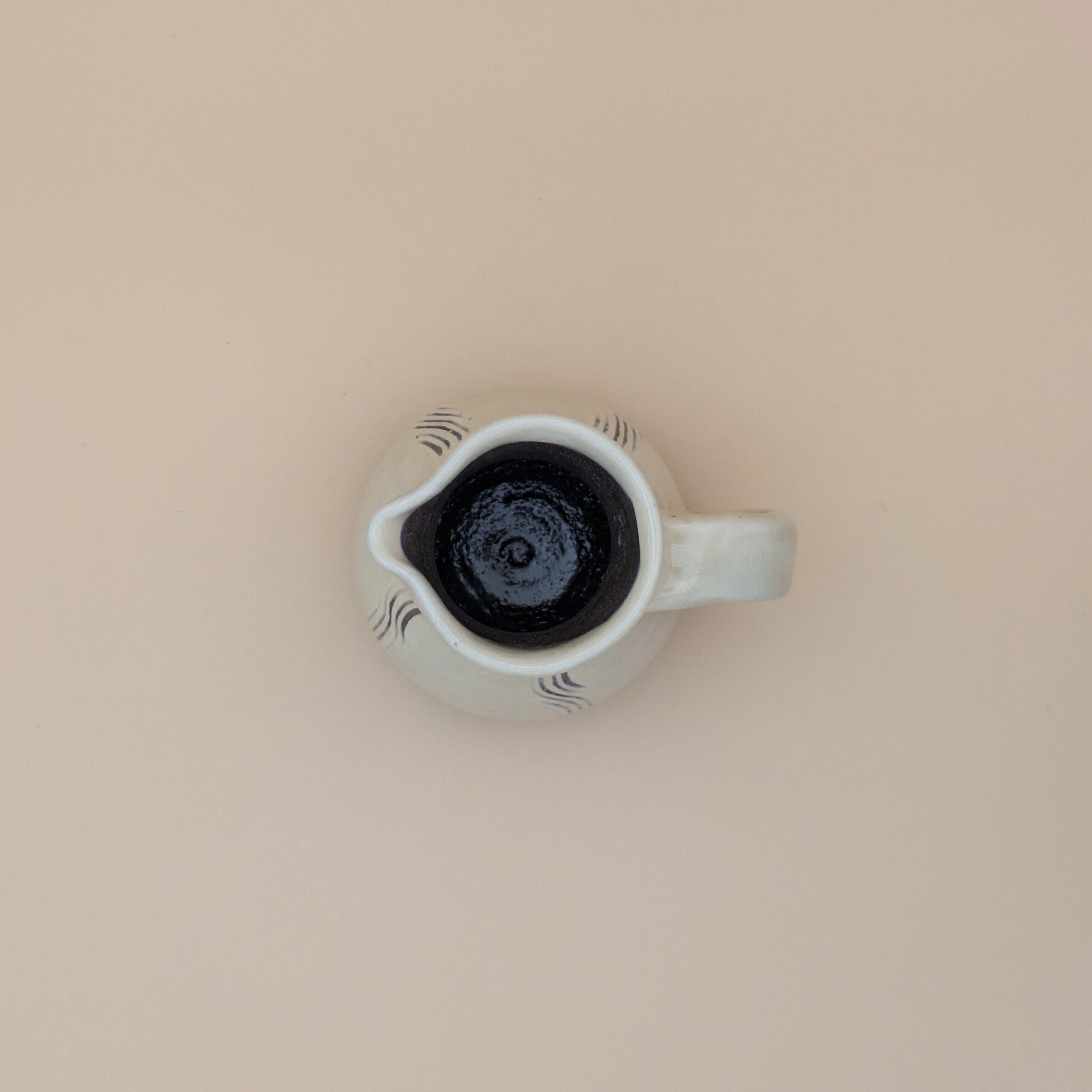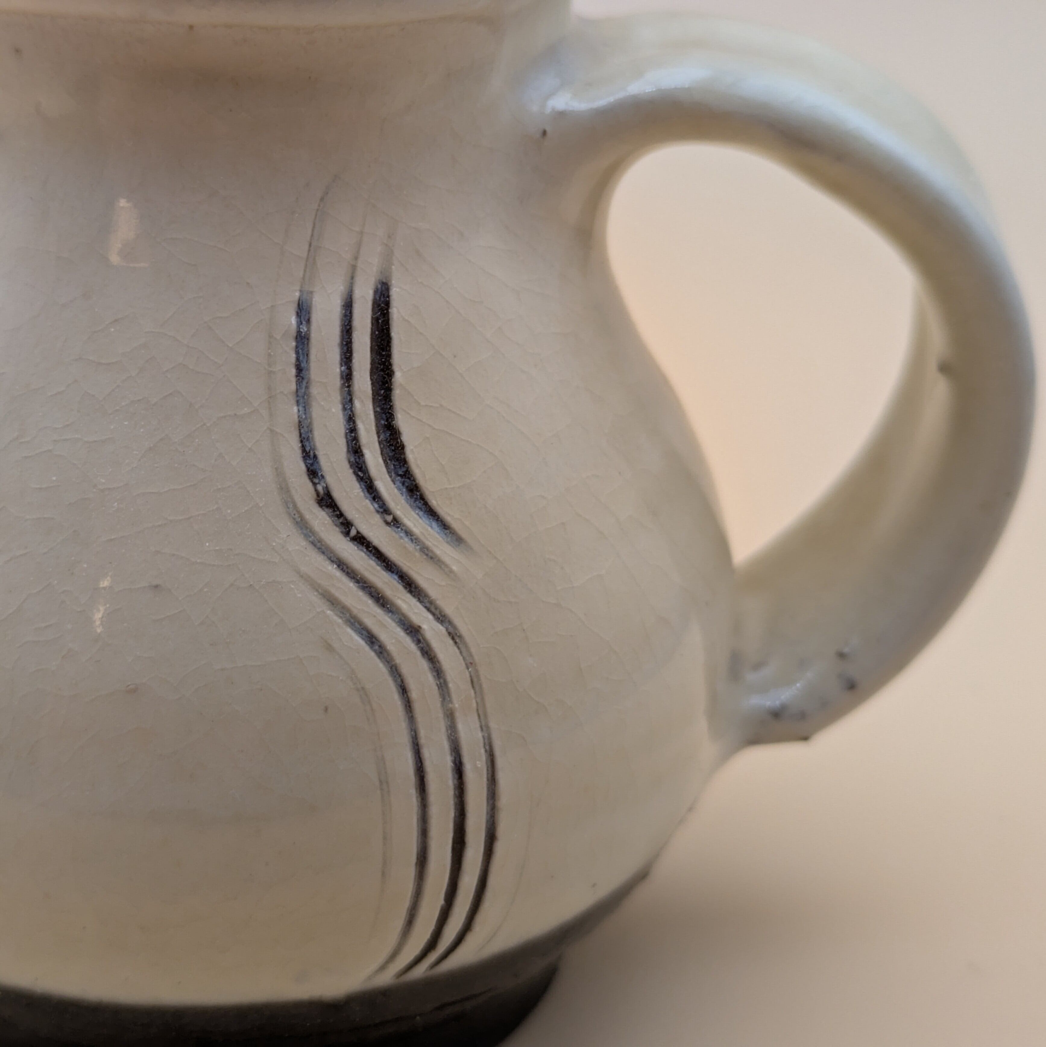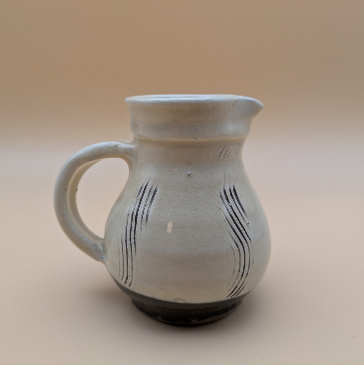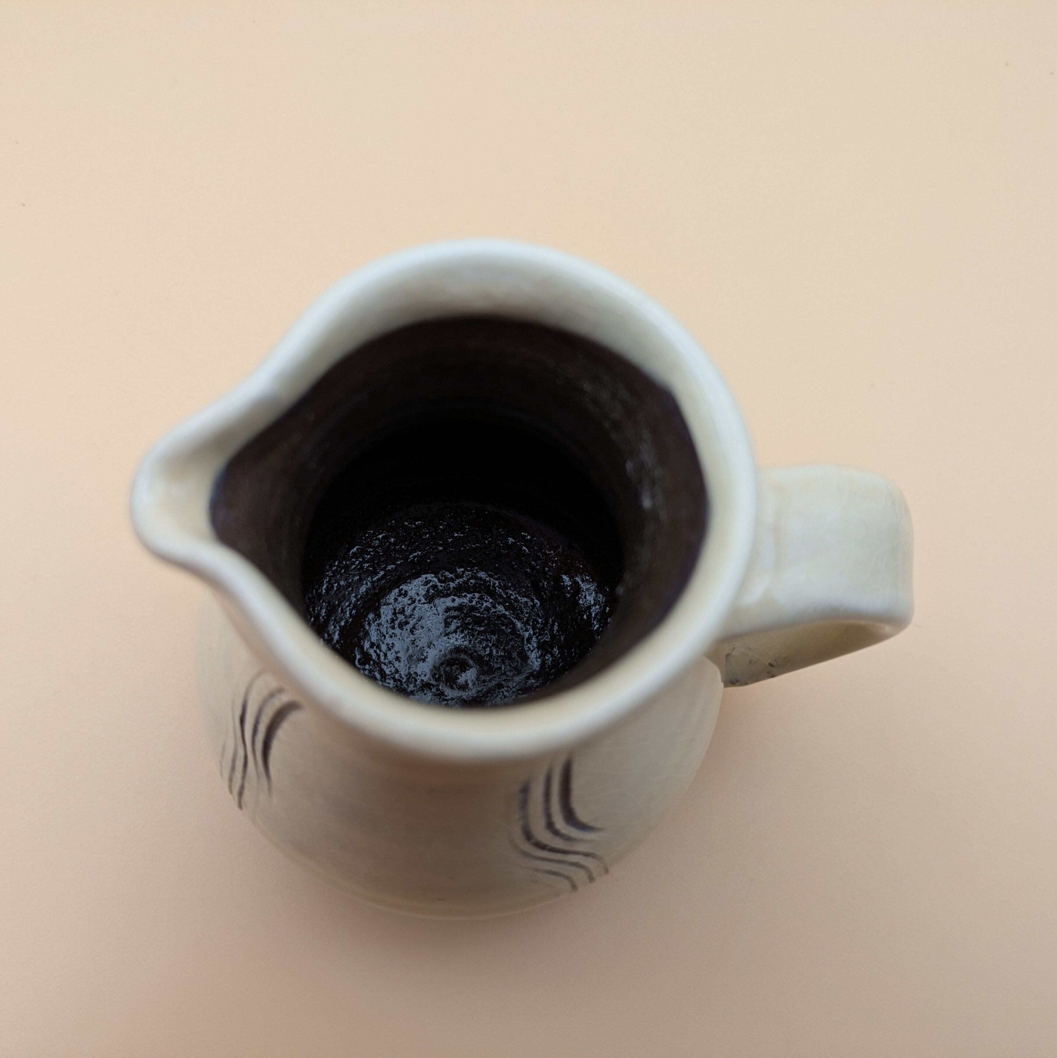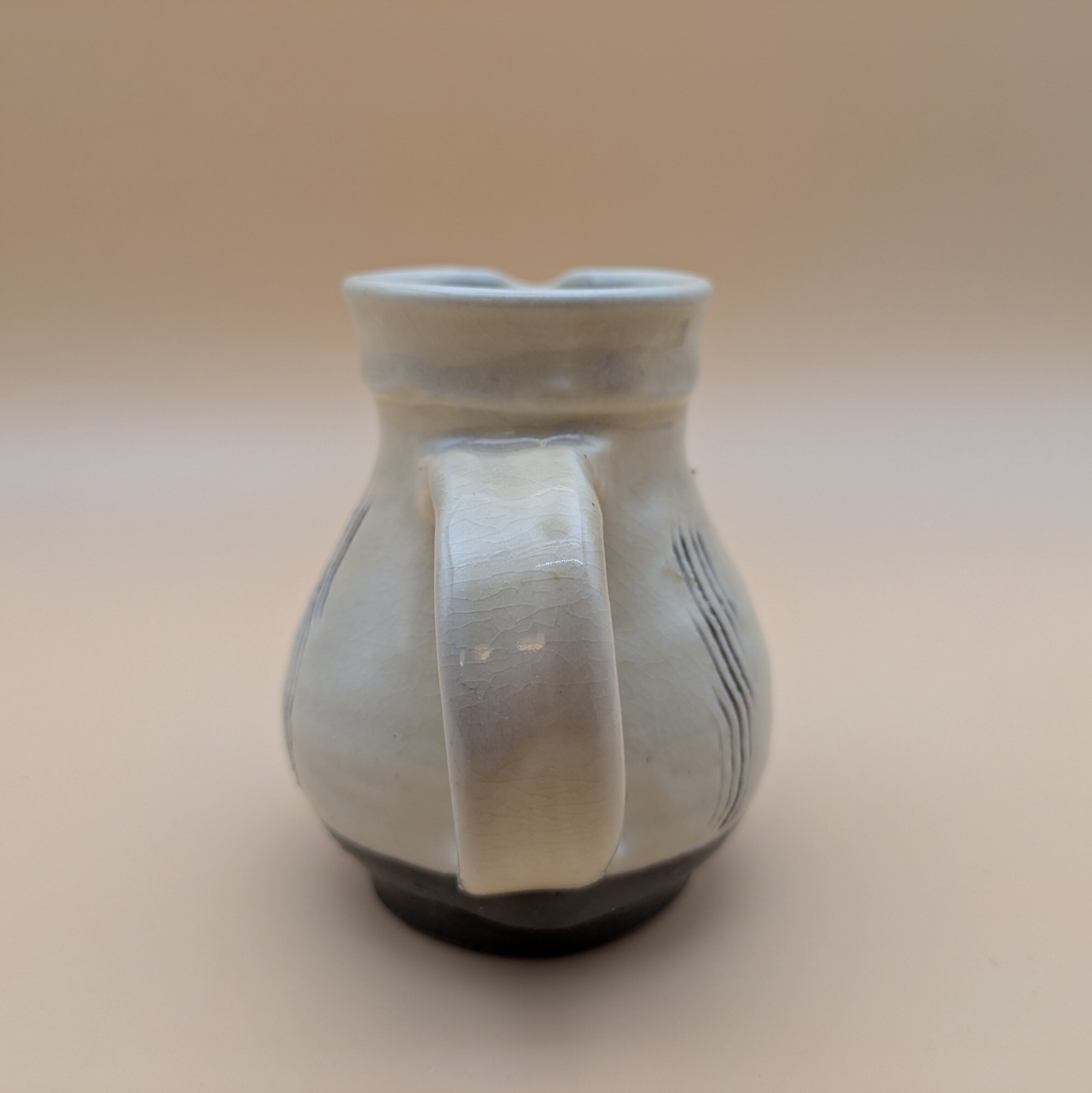 ピッチャー(中) 小鹿田焼(白 櫛描き) 最大径(取っ手含む)9.0cm 高さ9.5cm