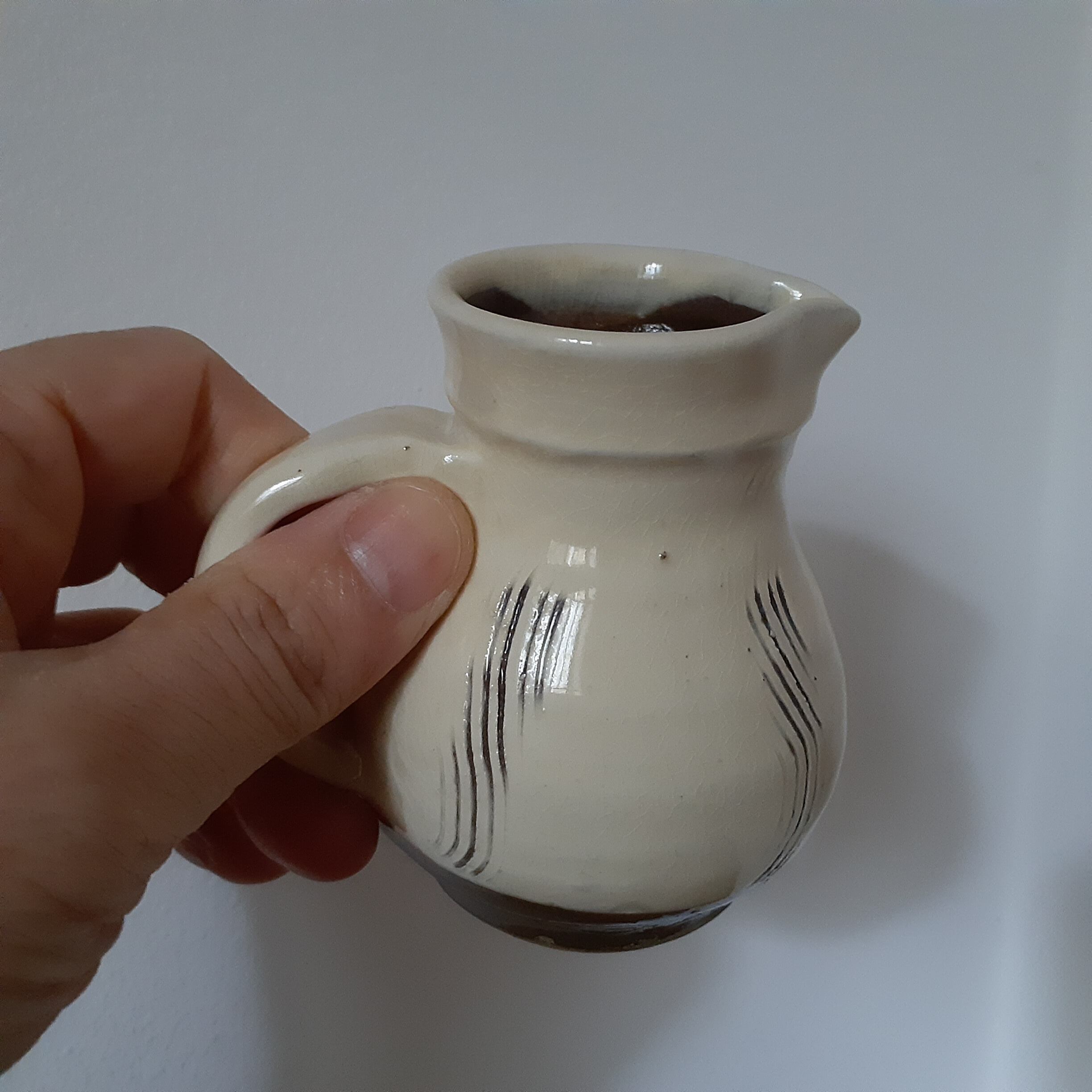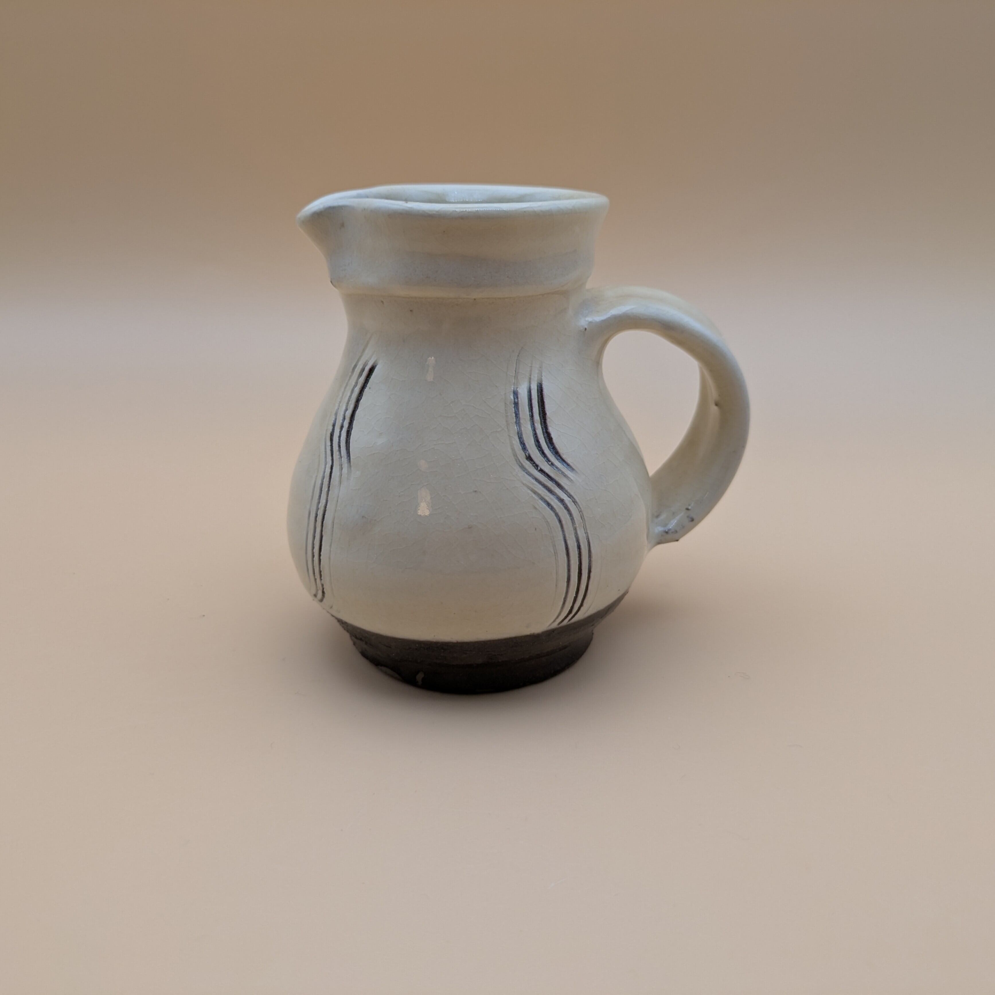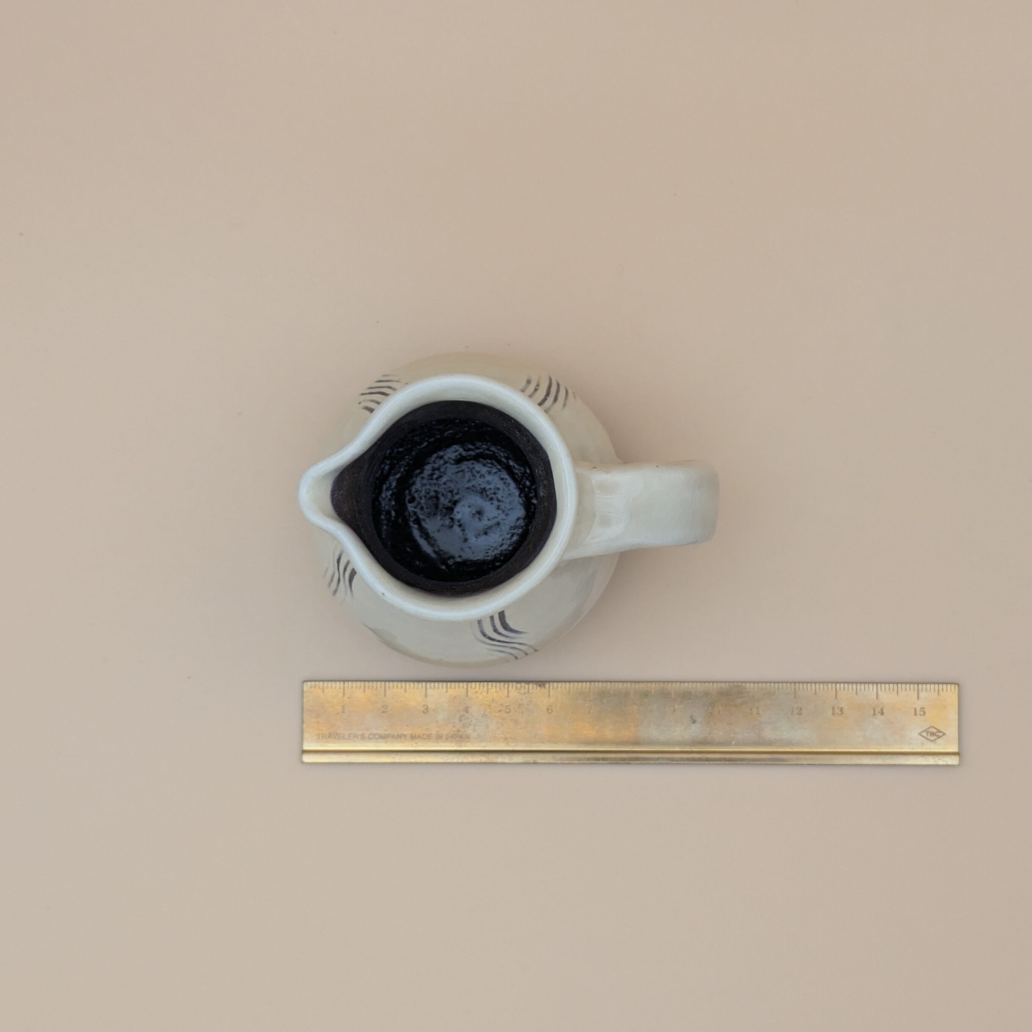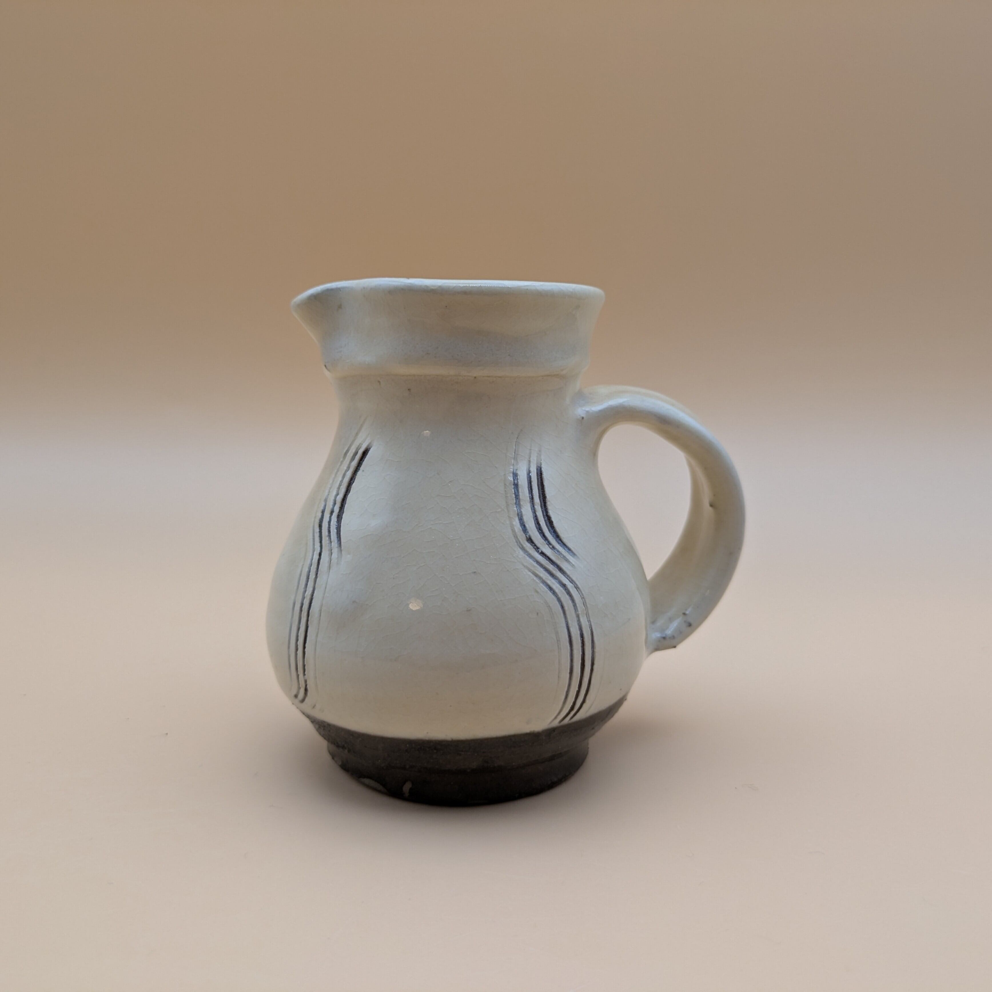 ピッチャー(中) 小鹿田焼(白 櫛描き) 最大径(取っ手含む)9.0cm 高さ9.5cm