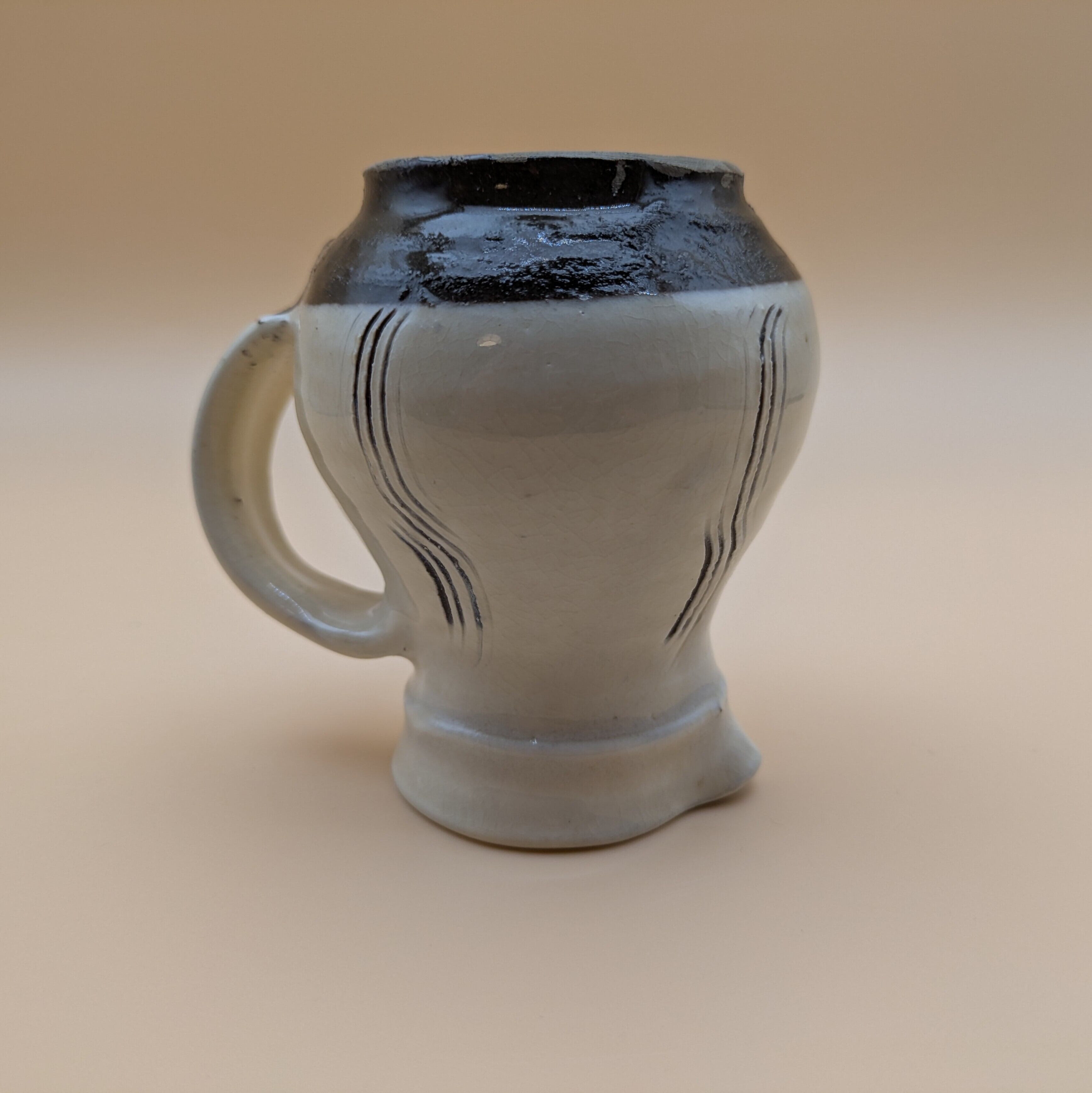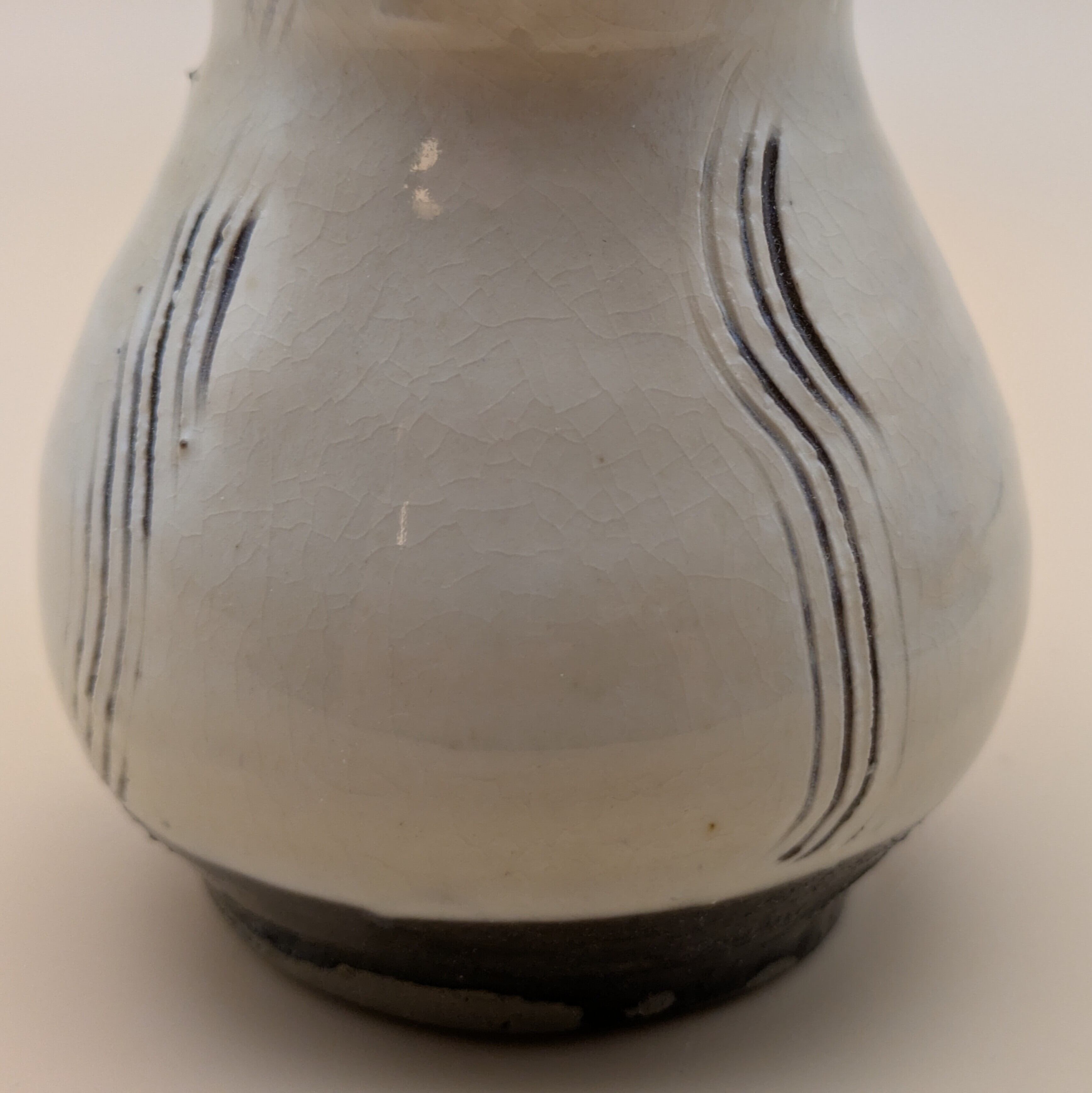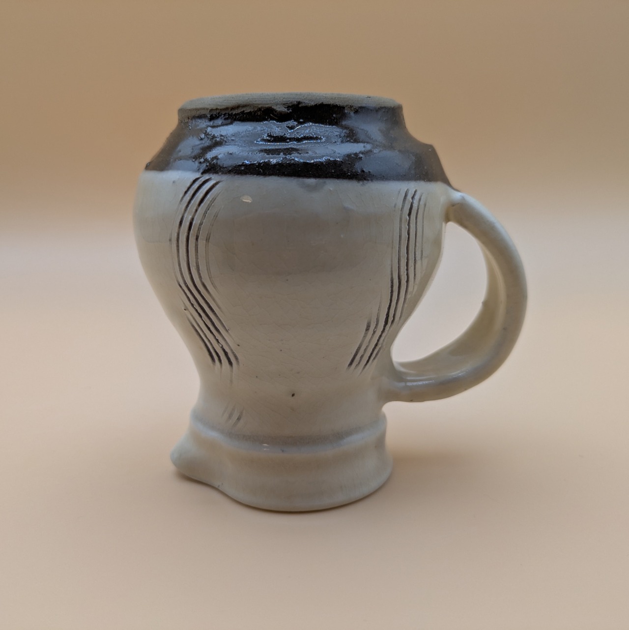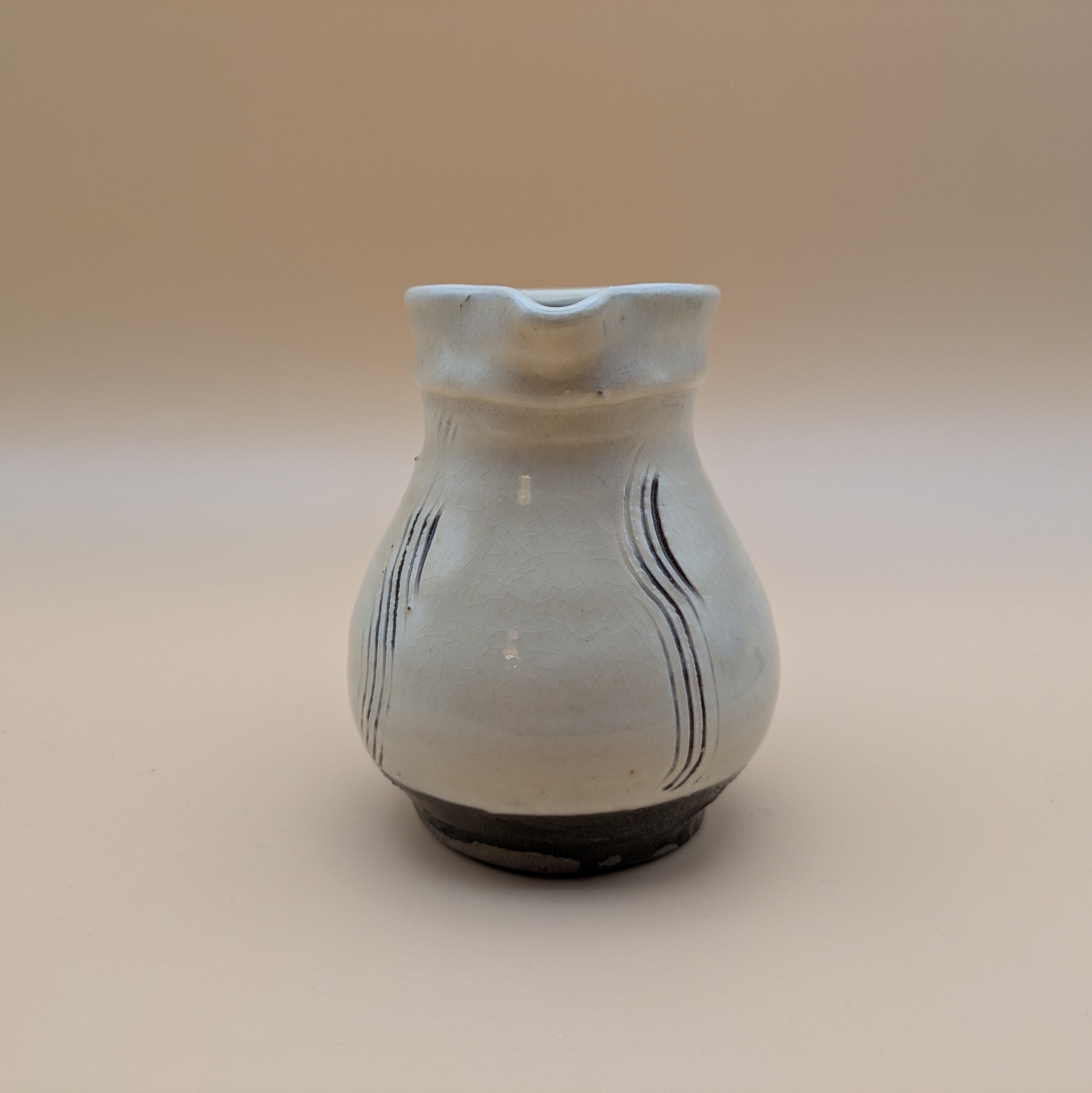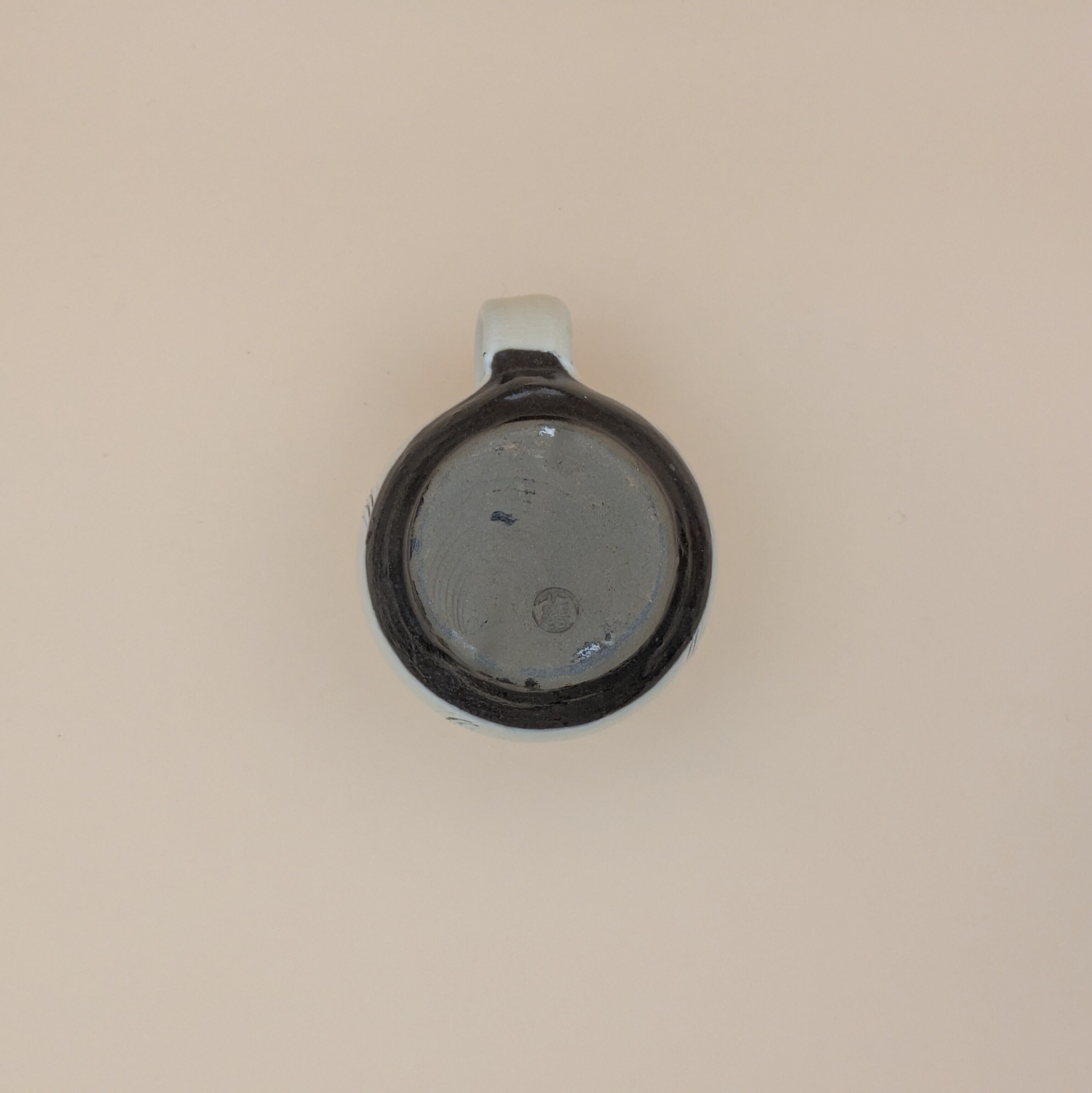ピッチャー(中) 小鹿田焼(白 櫛描き) 最大径(取っ手含む)9.0cm 高さ9.5cm