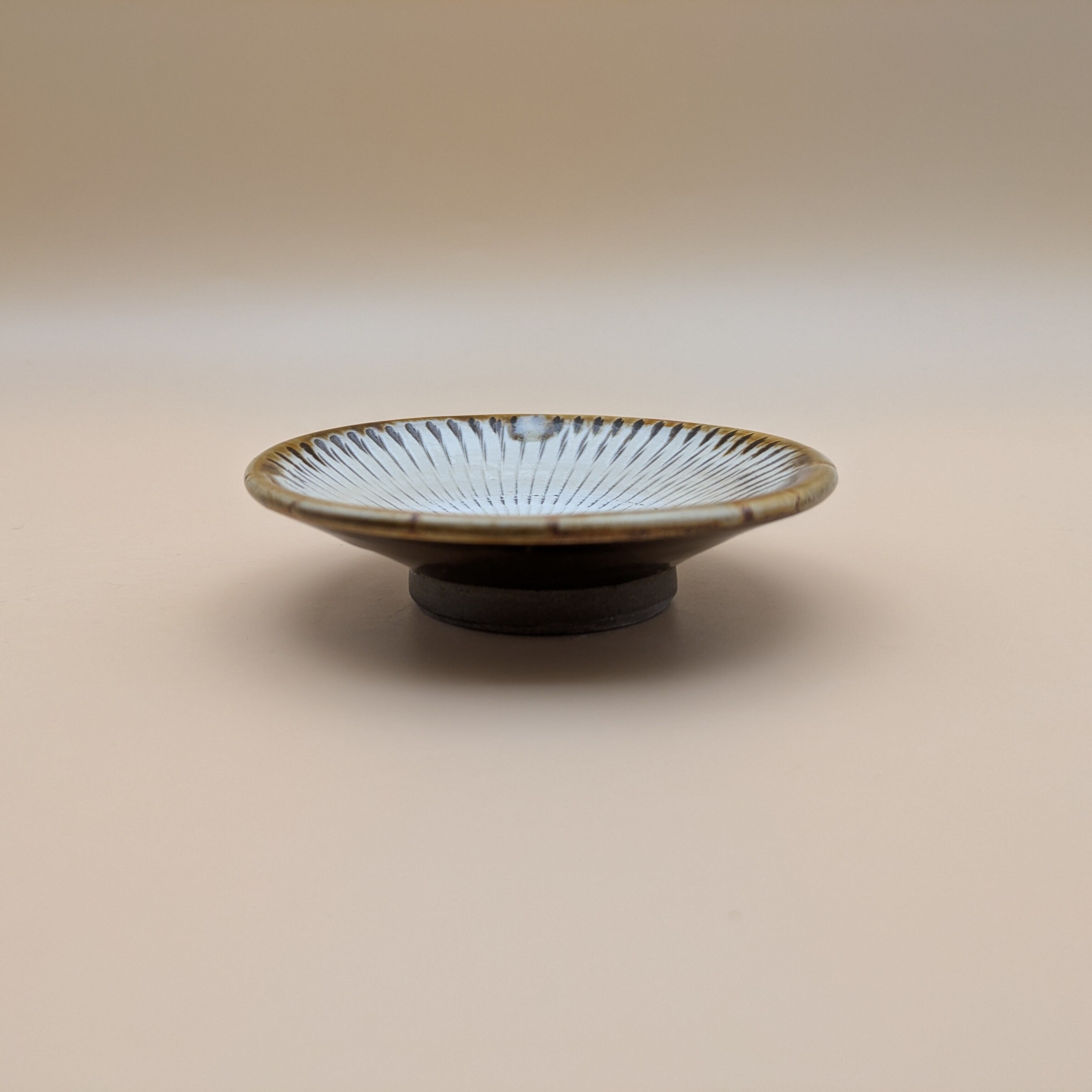 これは、小鹿田焼の職人たちの技術と情熱が注がれて生まれた一品です。昔ながらの製法と現代的なデザインが融合し、一つ一つ手作業で仕上げられています。そのため、同じ商品でも一つ一つ表情が異なり、個性的な豆皿としてお楽しみいただけます。