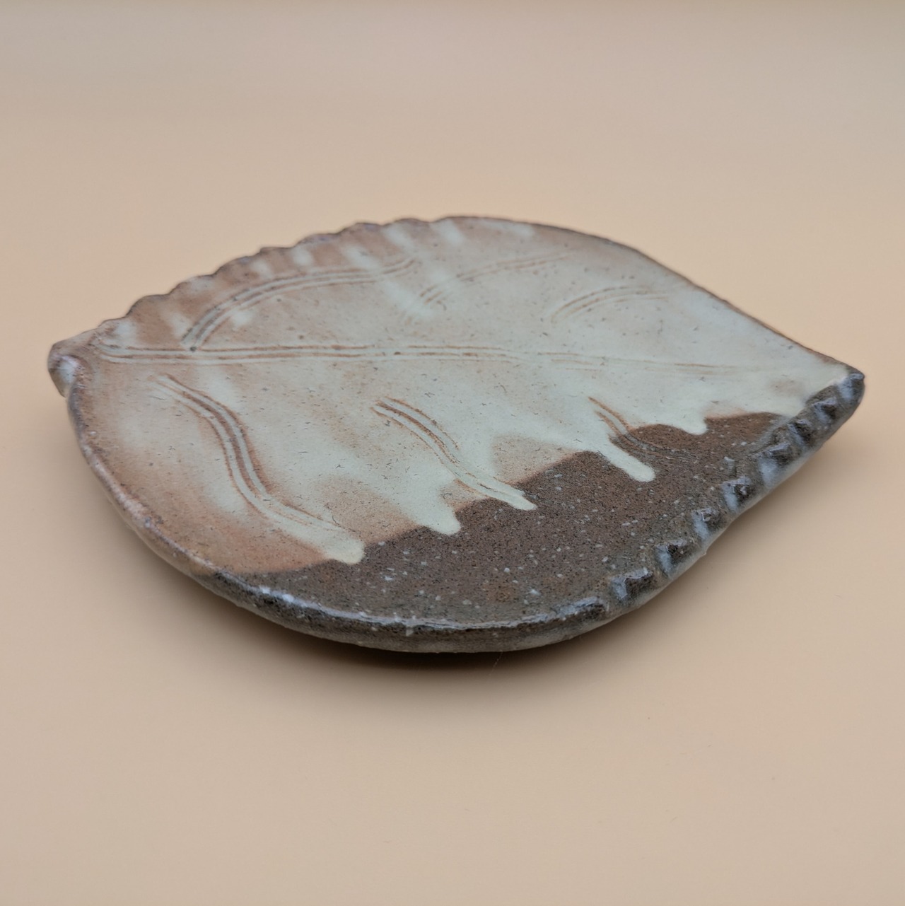 木の葉皿 萩焼(ほたる) 縦13.0cm 横15.6cm 高さ2.0cm 重量238g