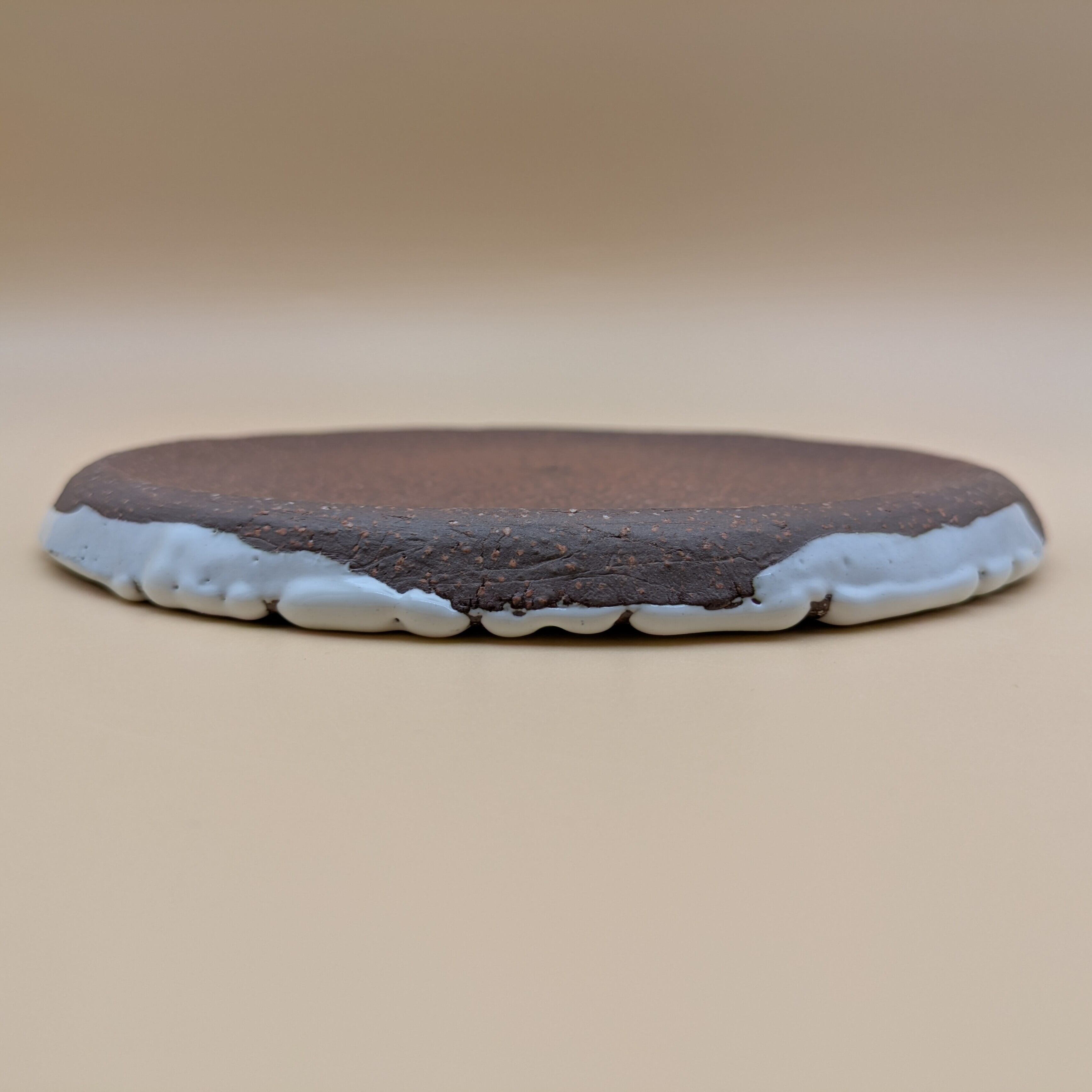 鬼萩の紋様で上品な風合いが特徴の丸平皿です。萩焼の伝統的な技法により、美しい仕上がりとなっています。