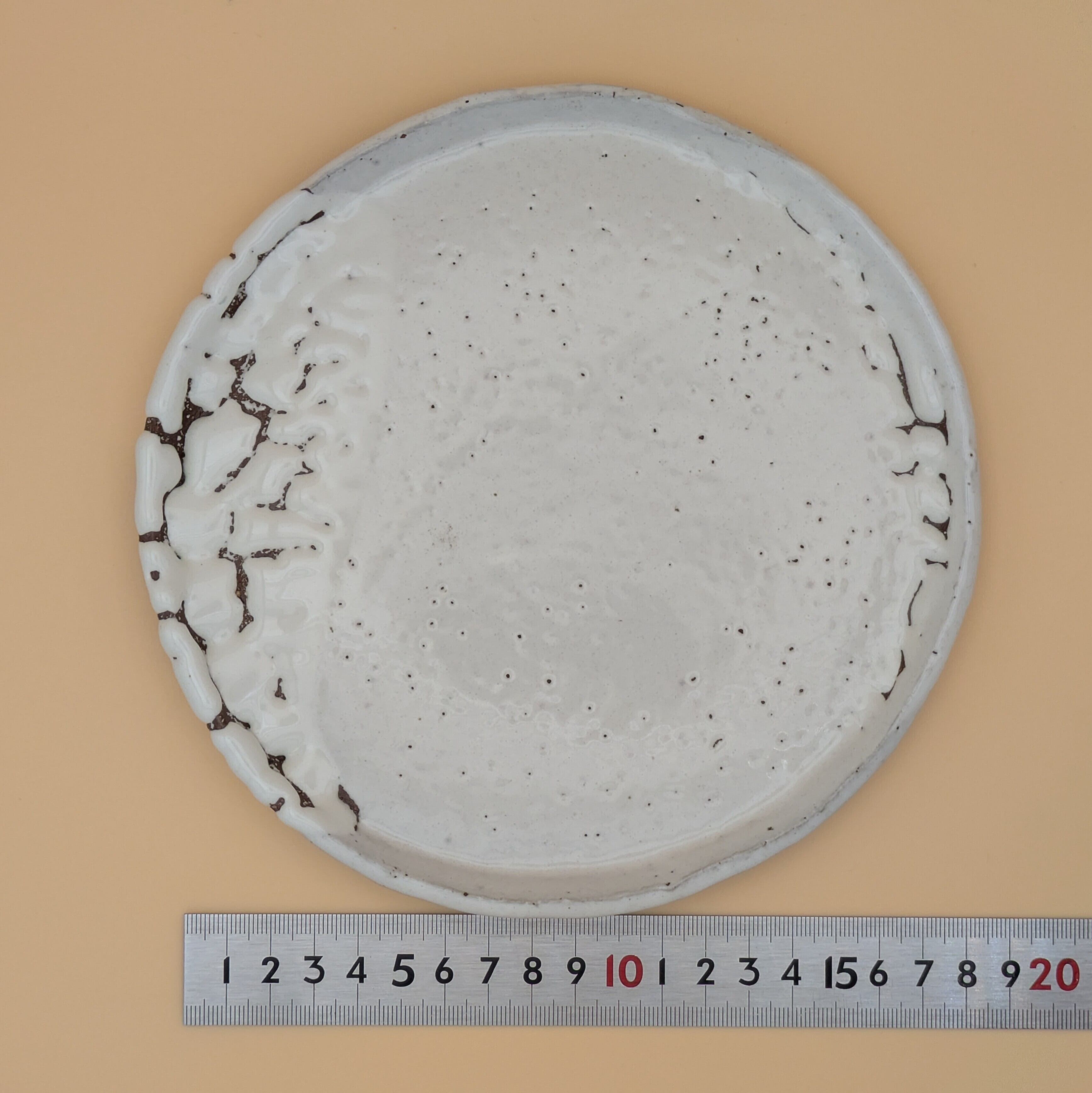 丸平皿6寸 萩焼(白 鬼萩01) 直径19.0cm 高さ1.5cm 重量393g